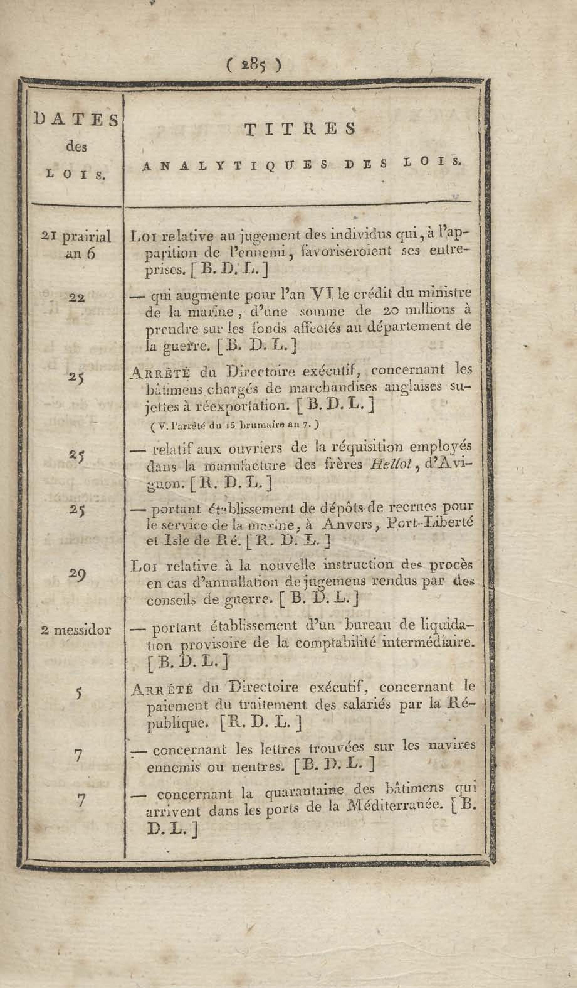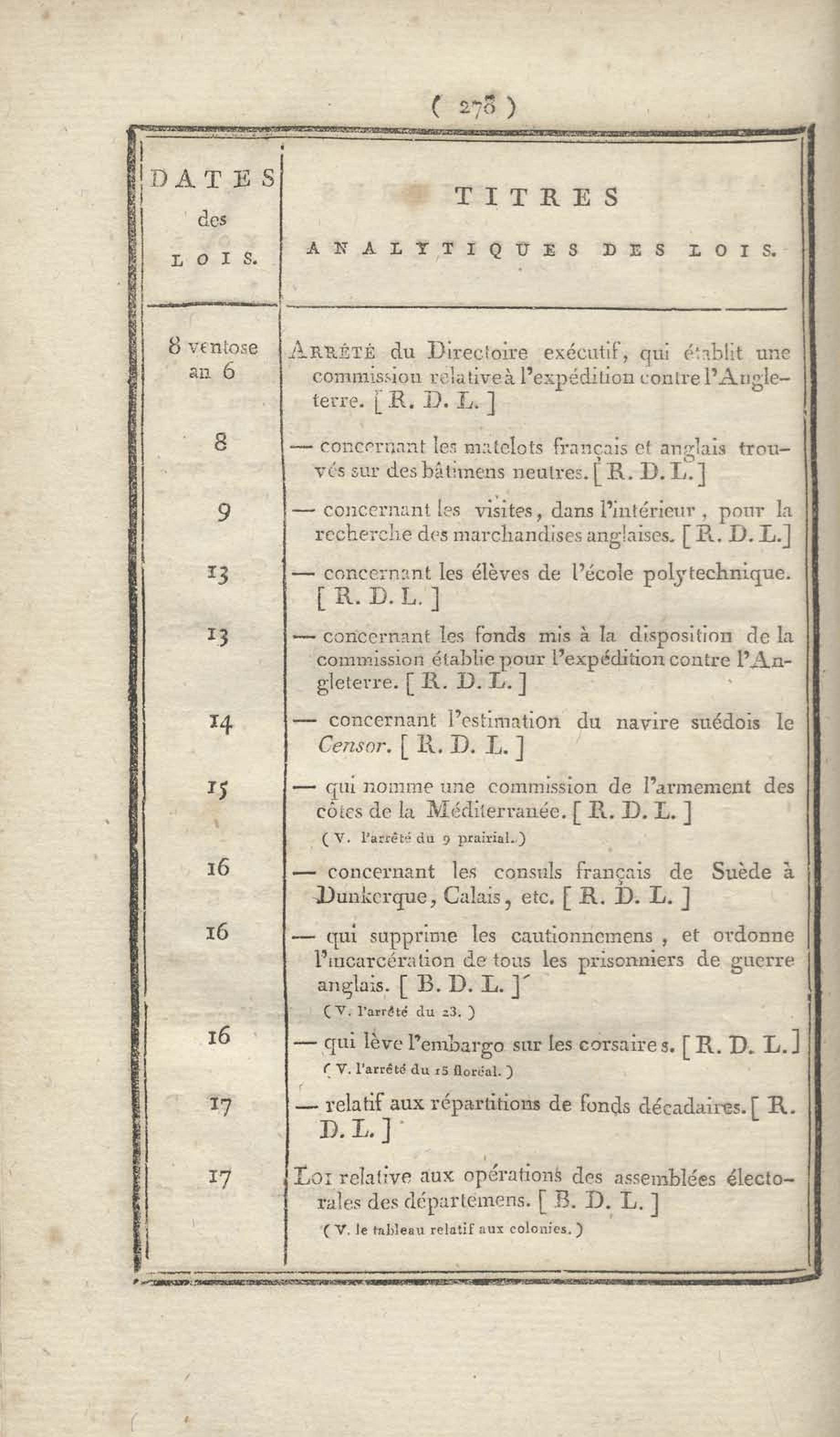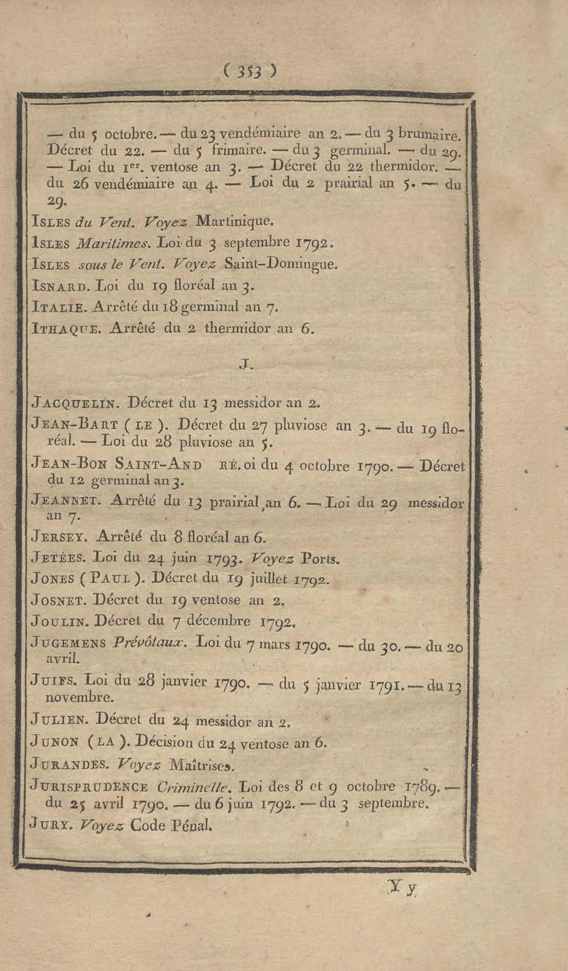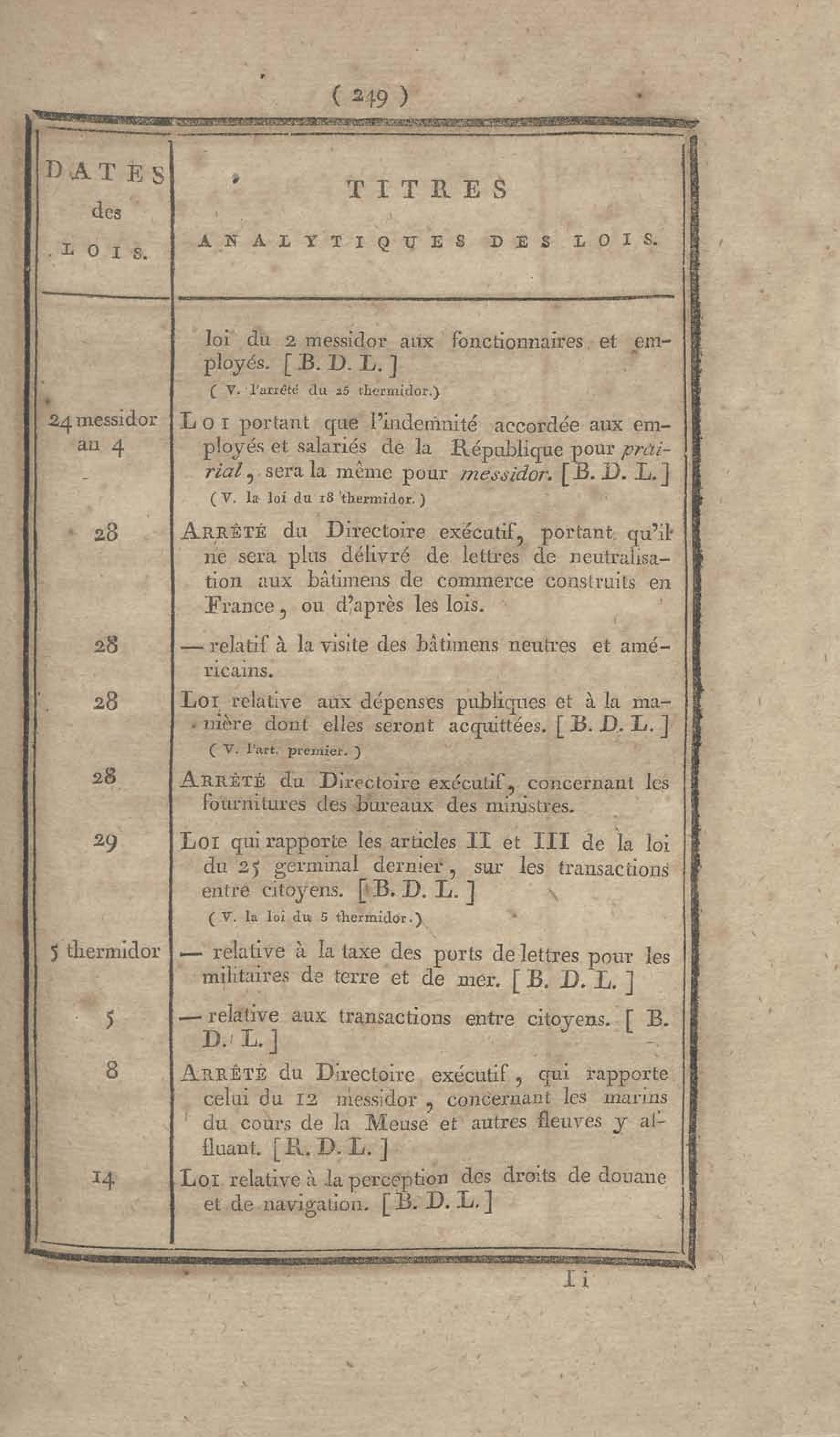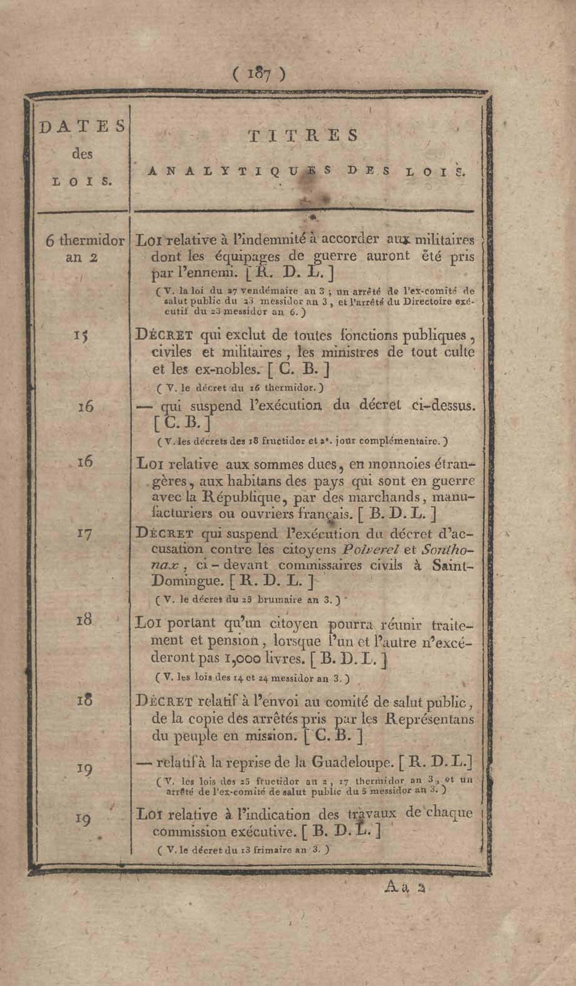 - Table chronologique et analytique des lois rendues depuis 1789 concernant la marine et les colonies