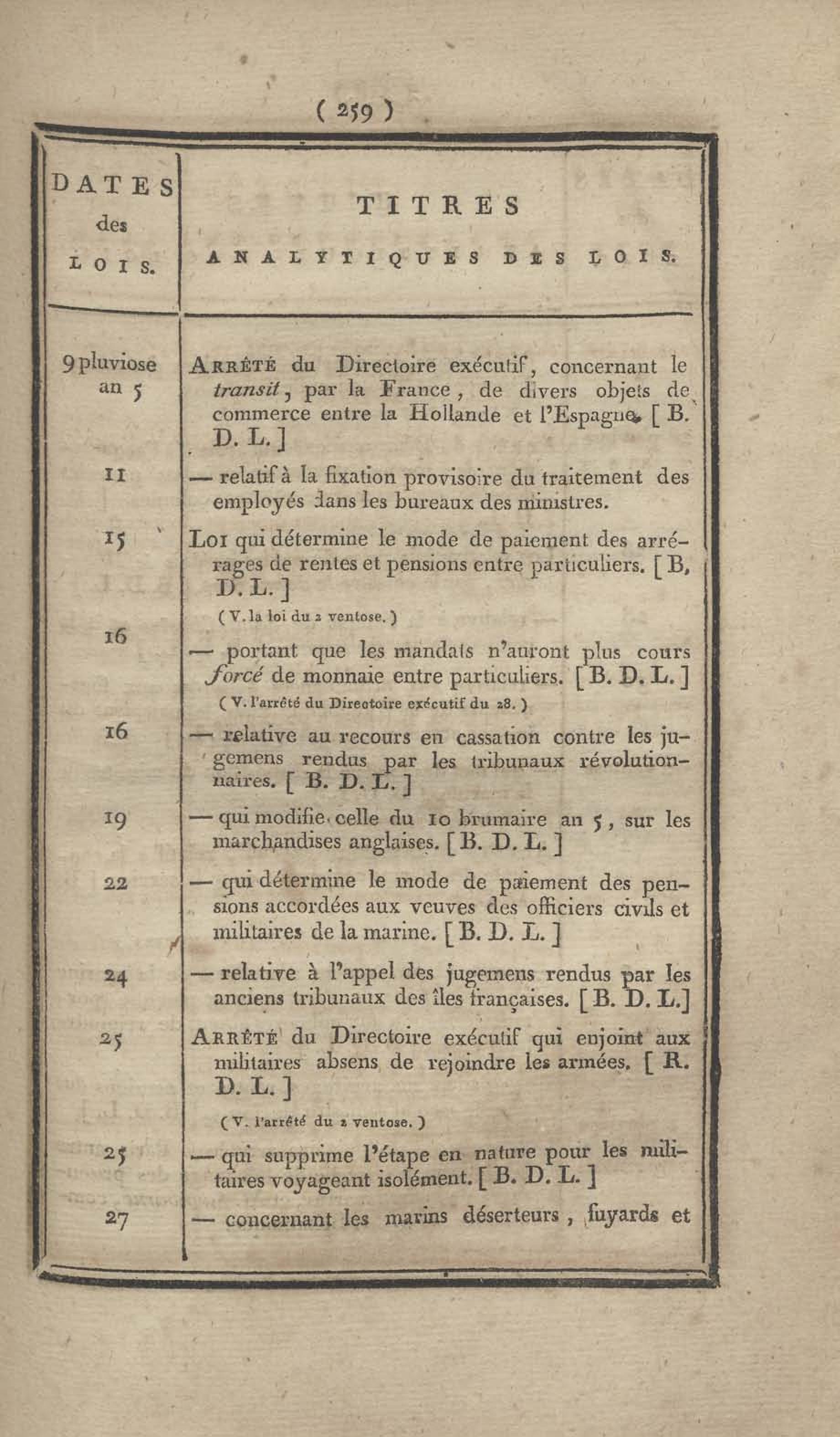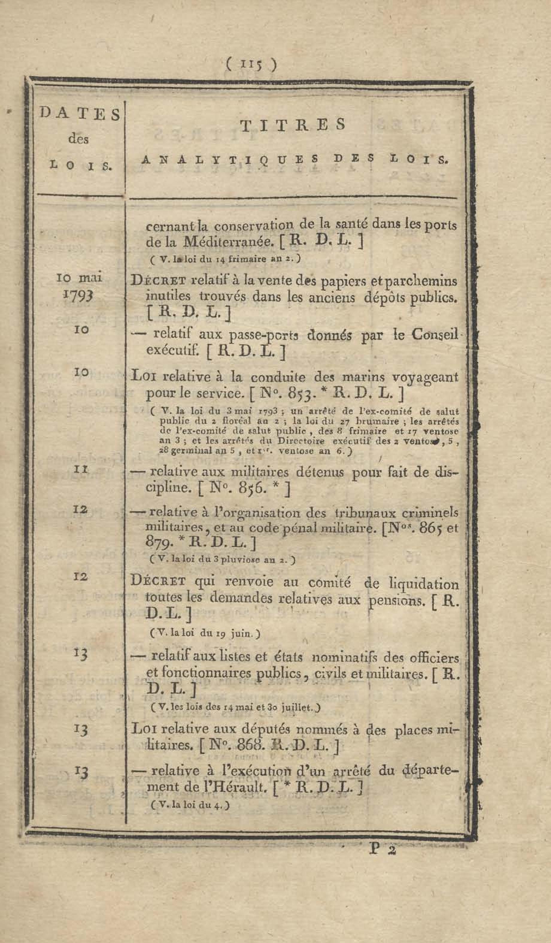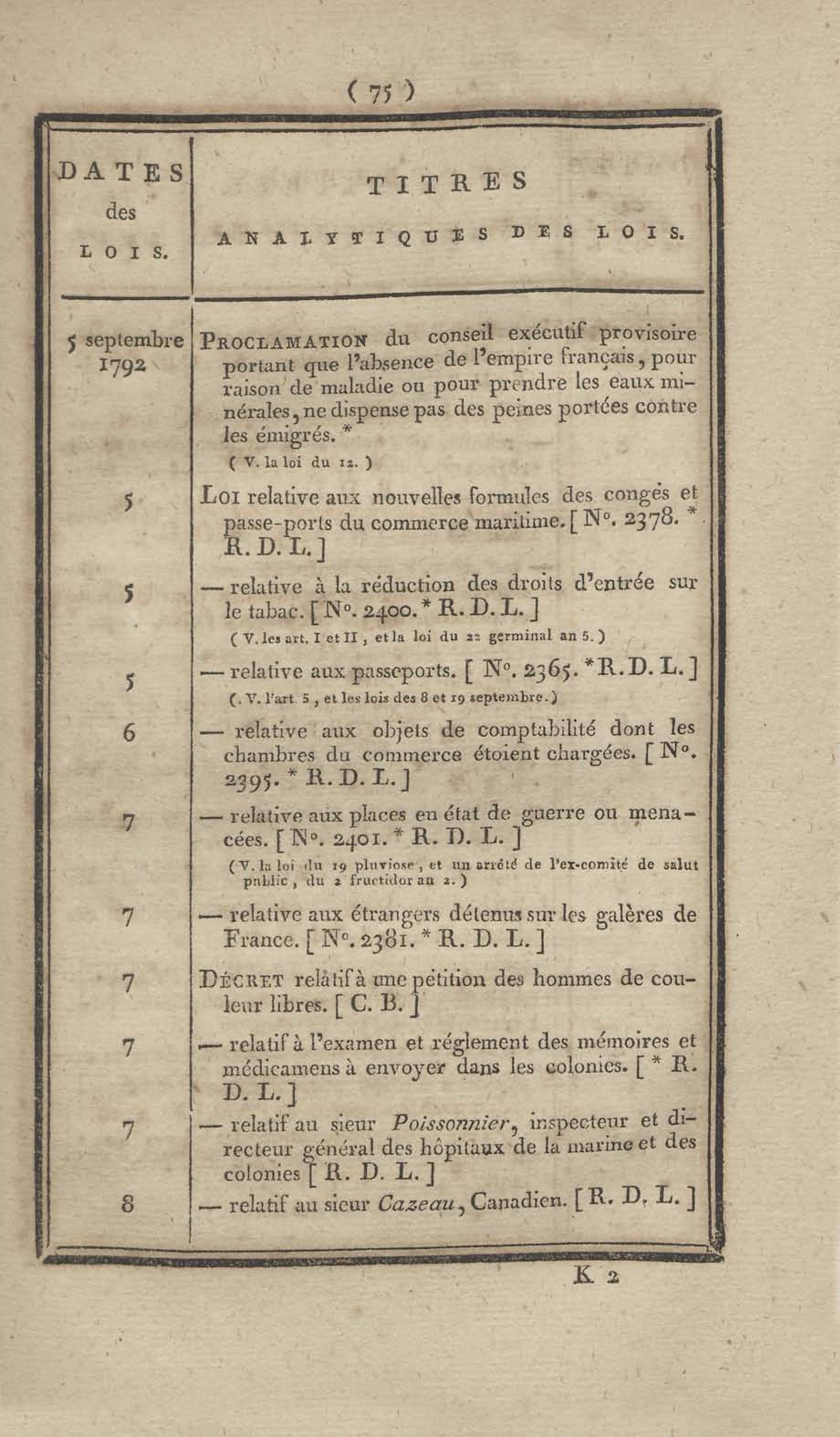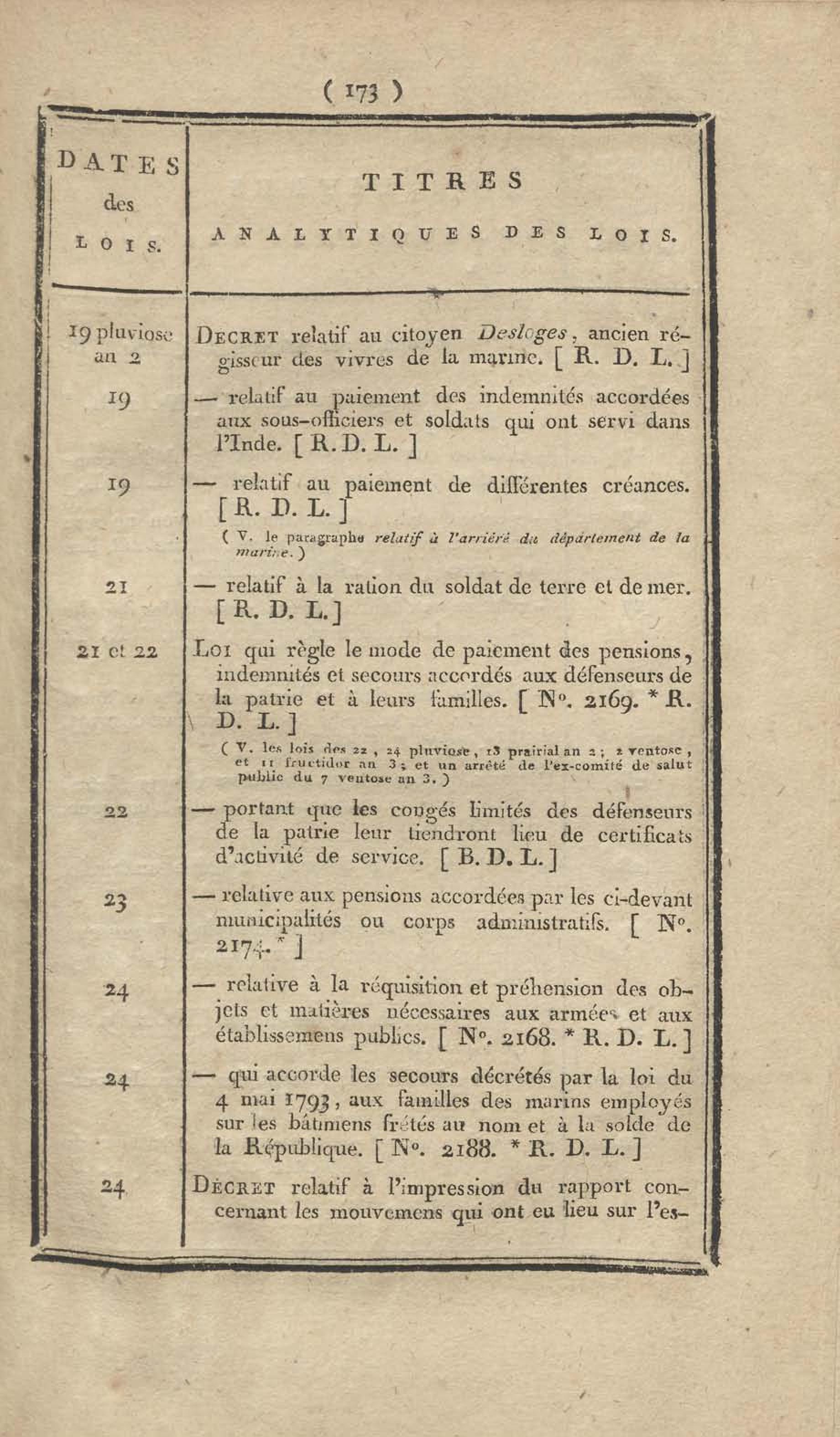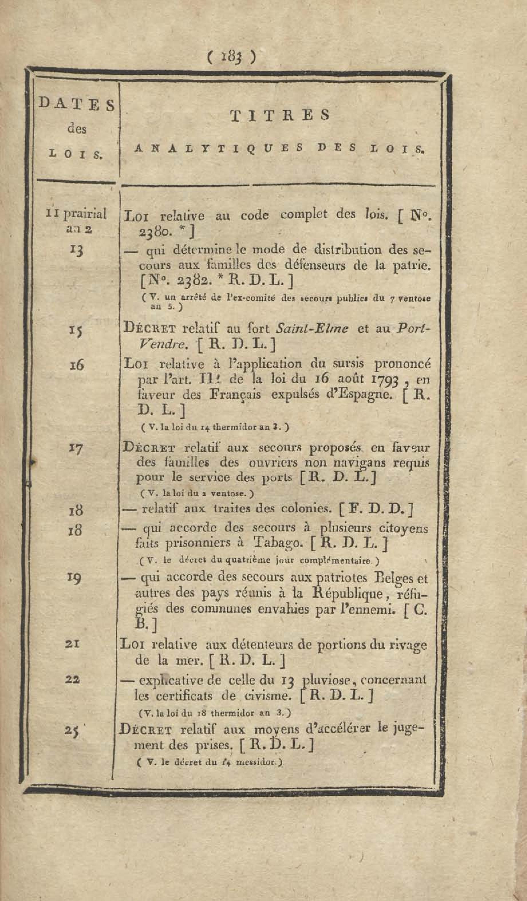 - Table chronologique et analytique des lois rendues depuis 1789 concernant la marine et les colonies