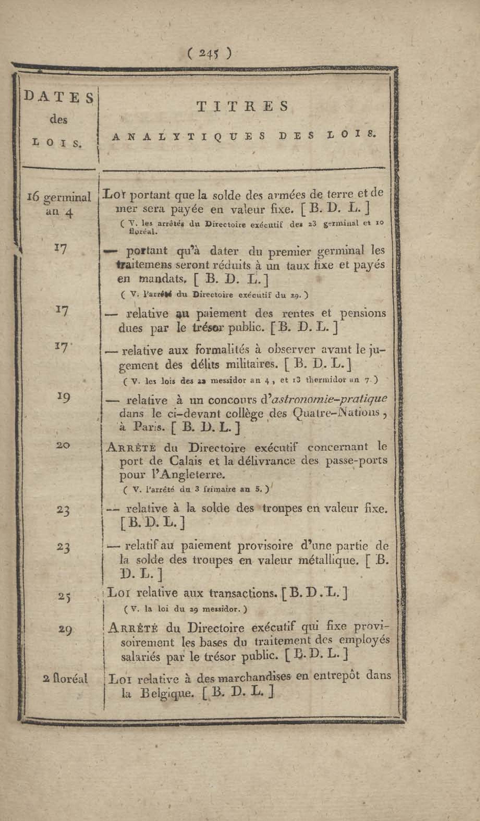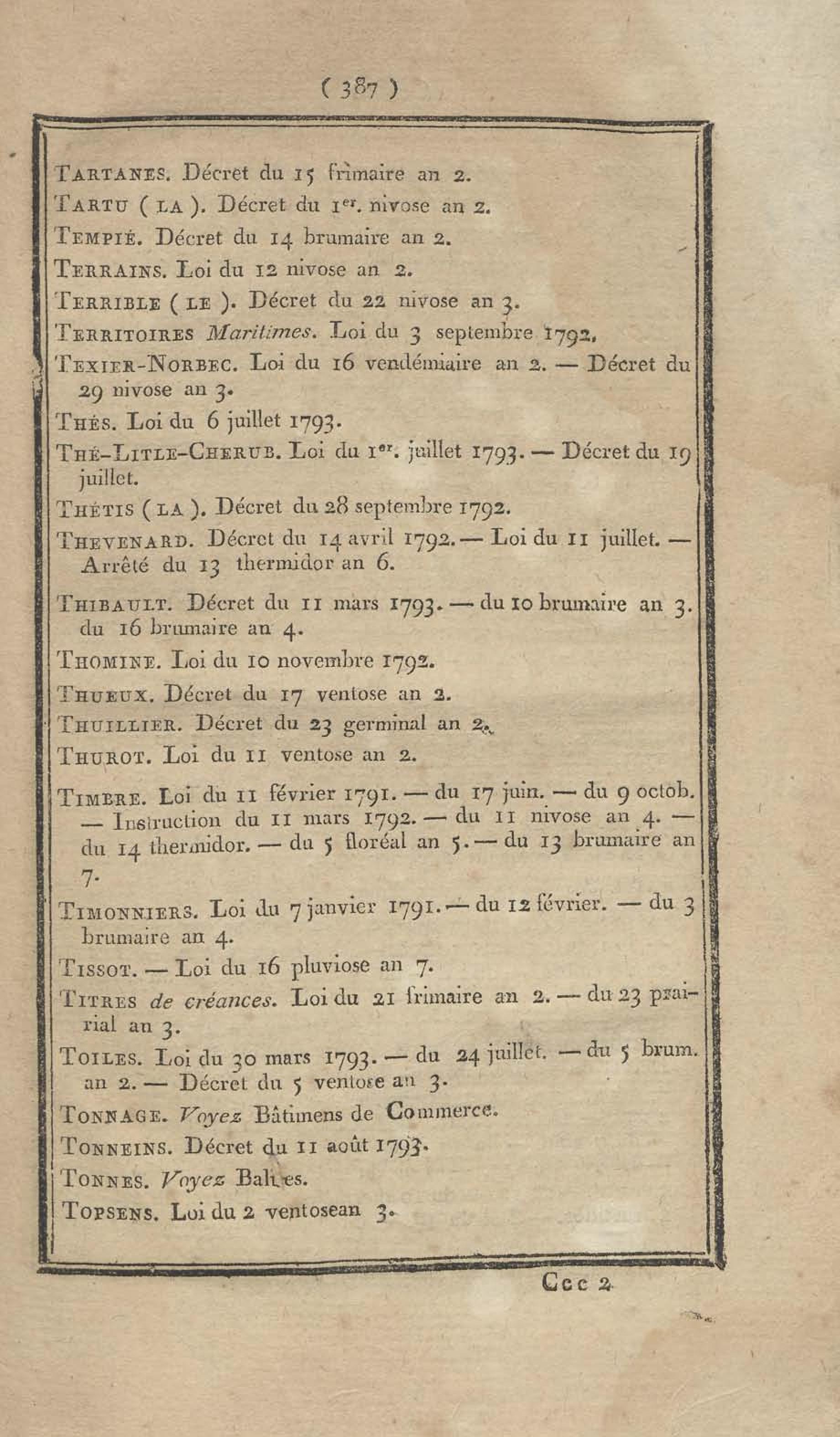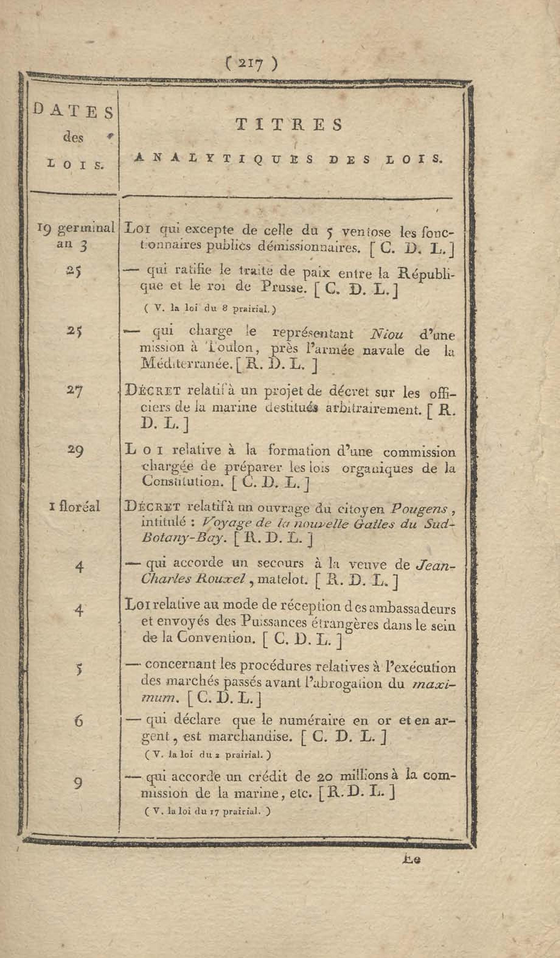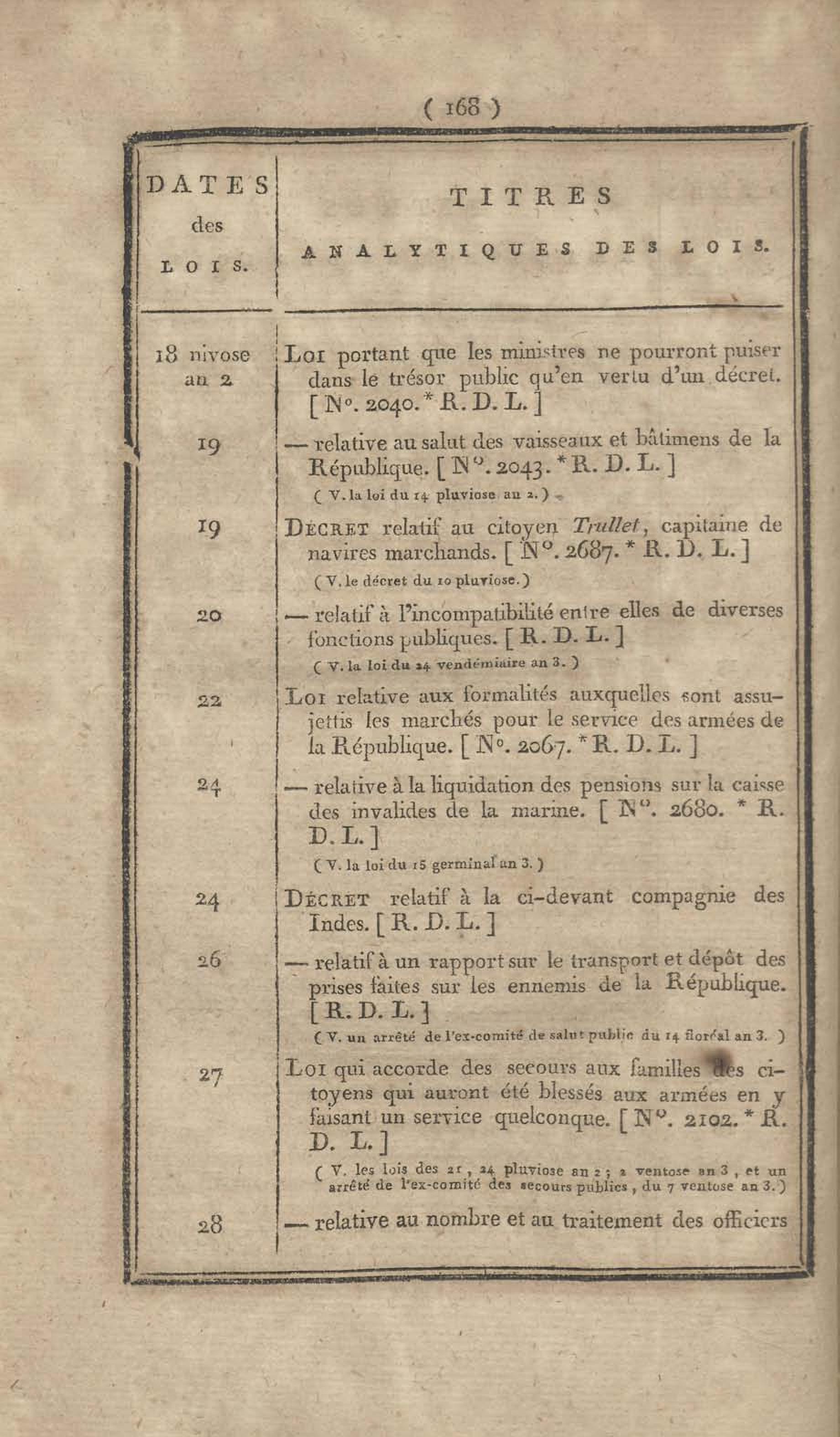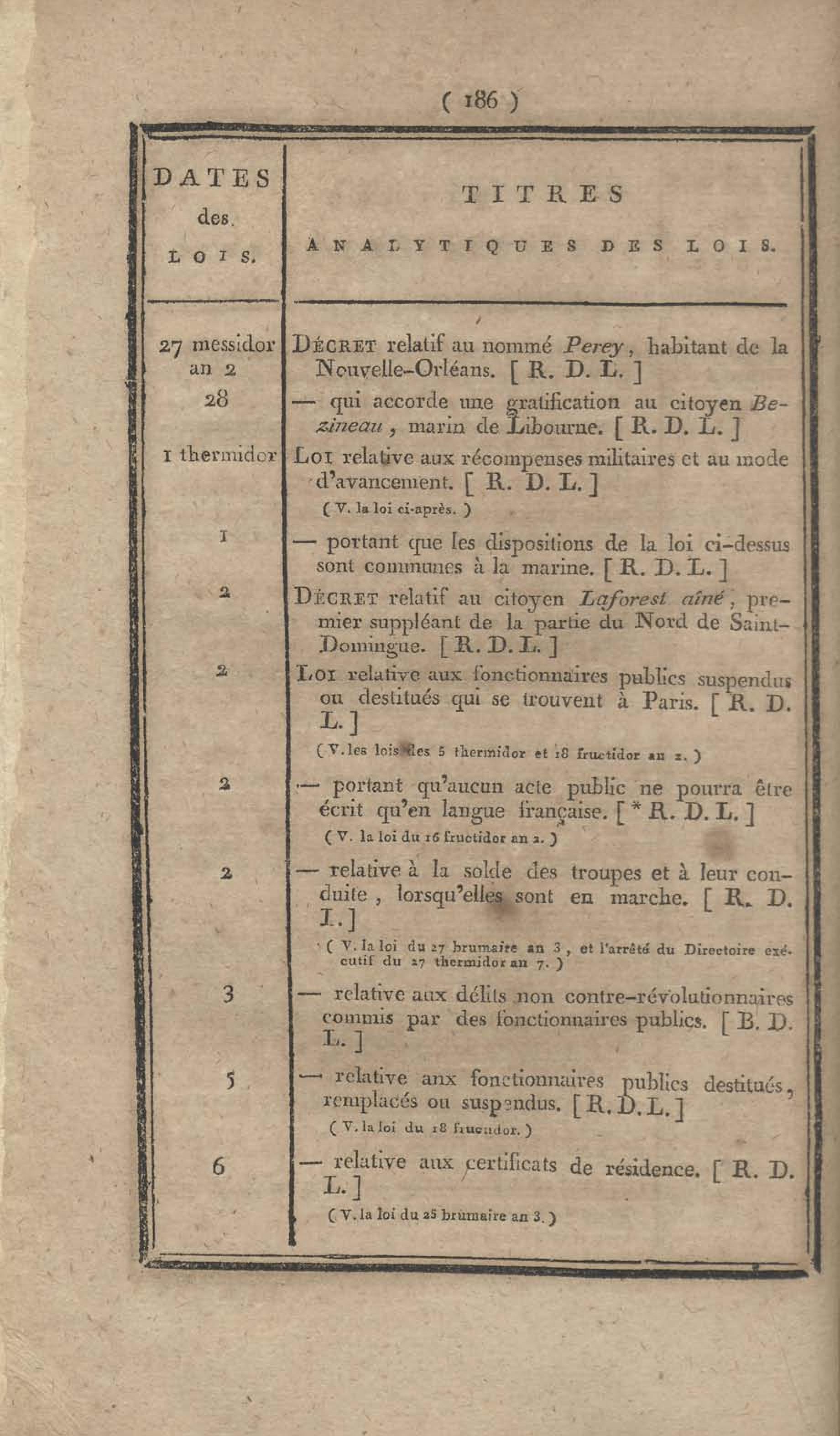 - Table chronologique et analytique des lois rendues depuis 1789 concernant la marine et les colonies
