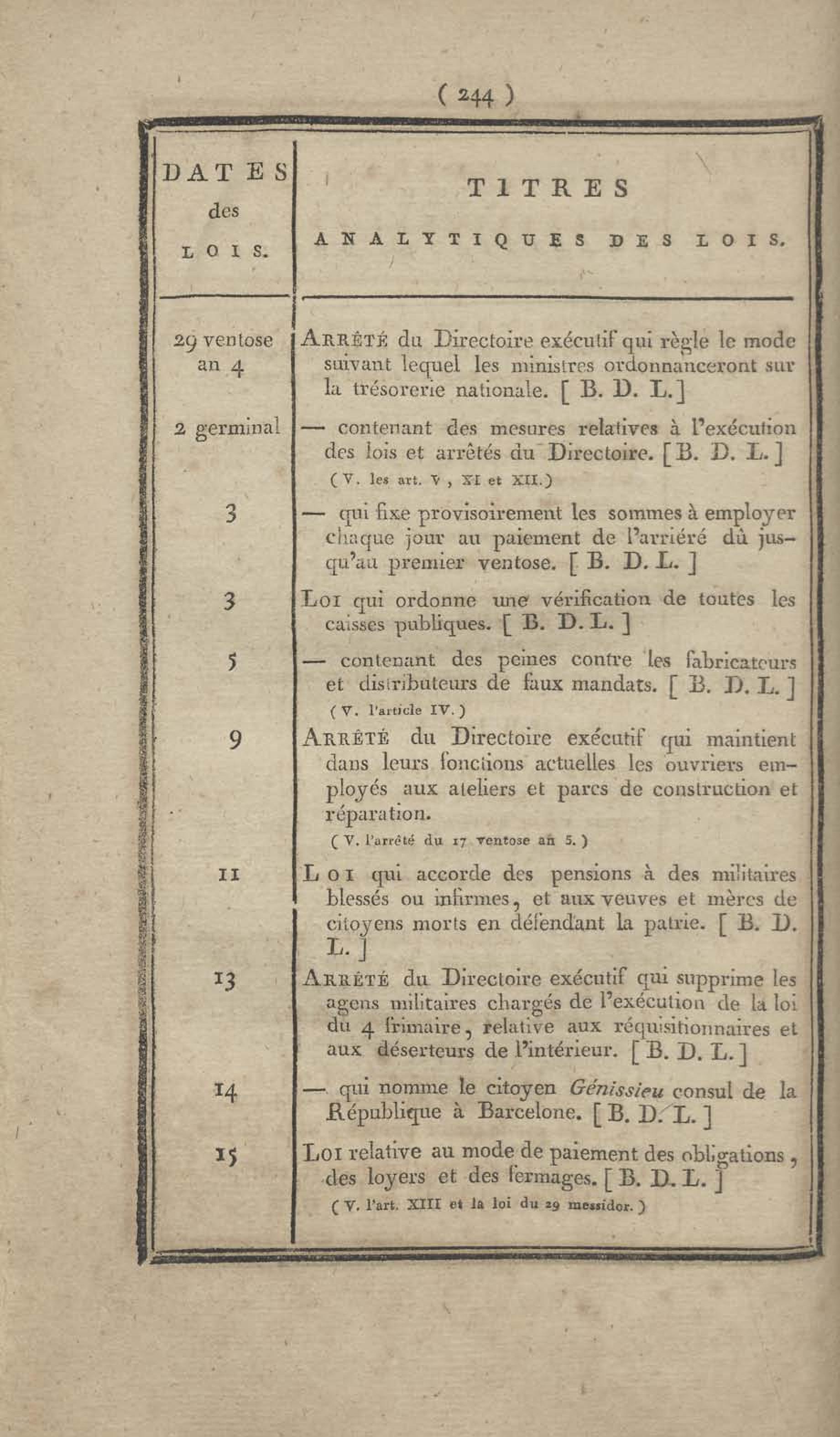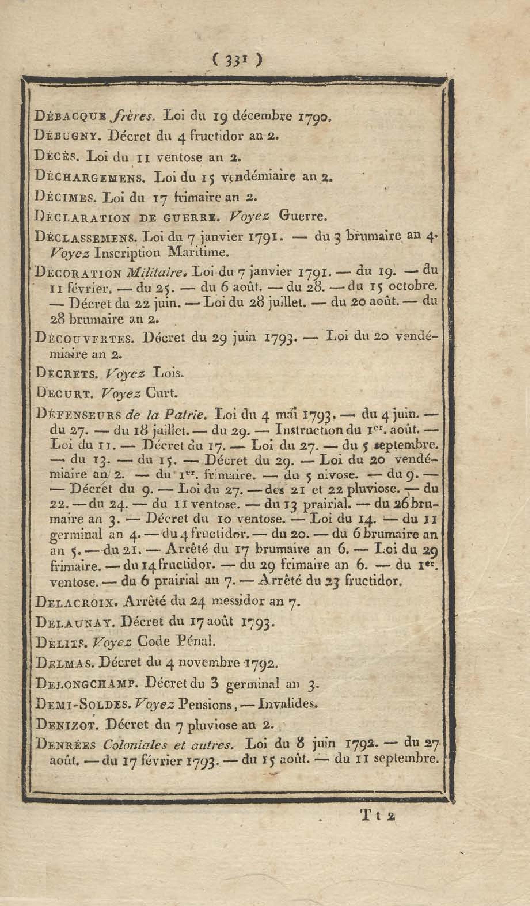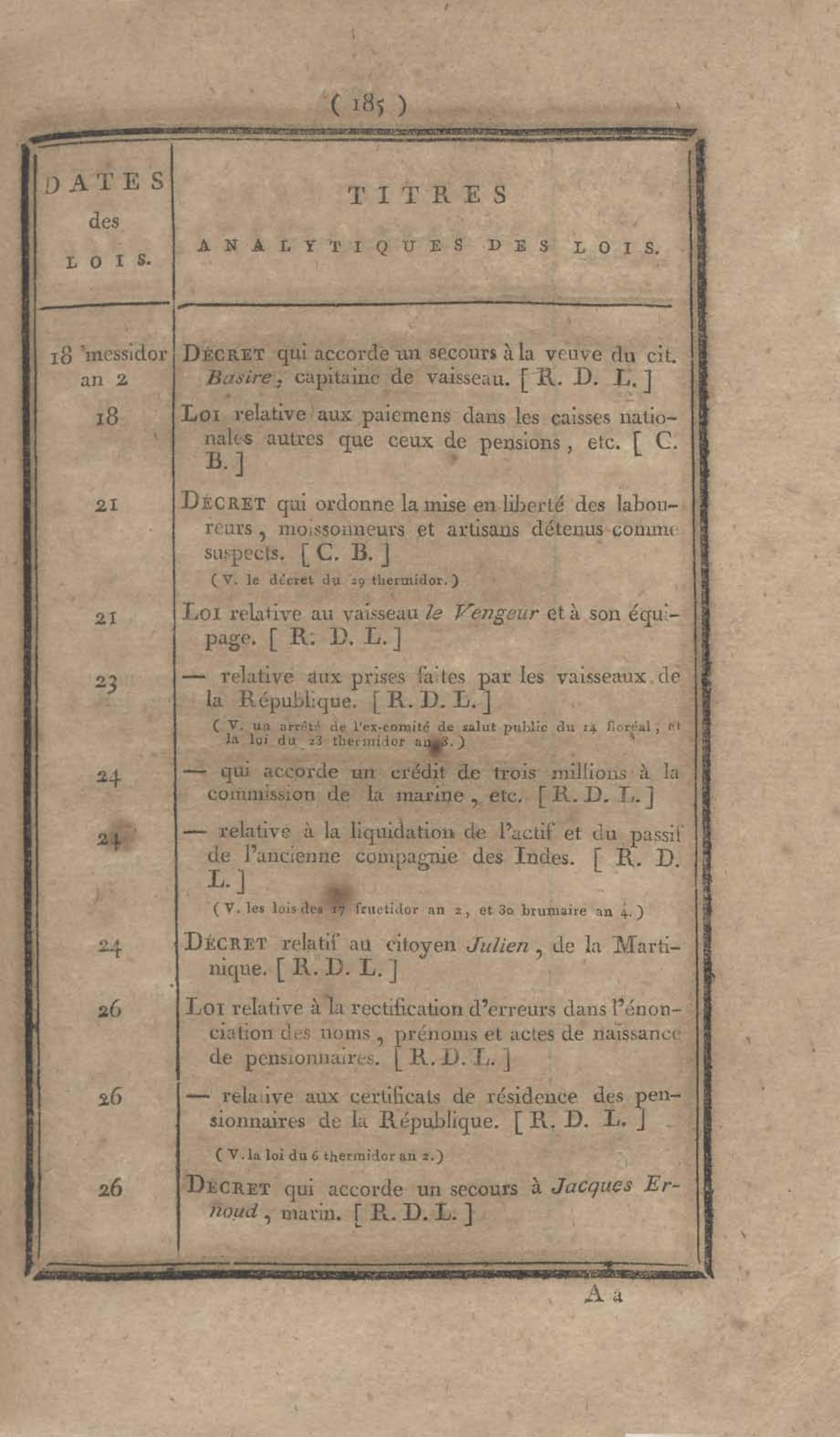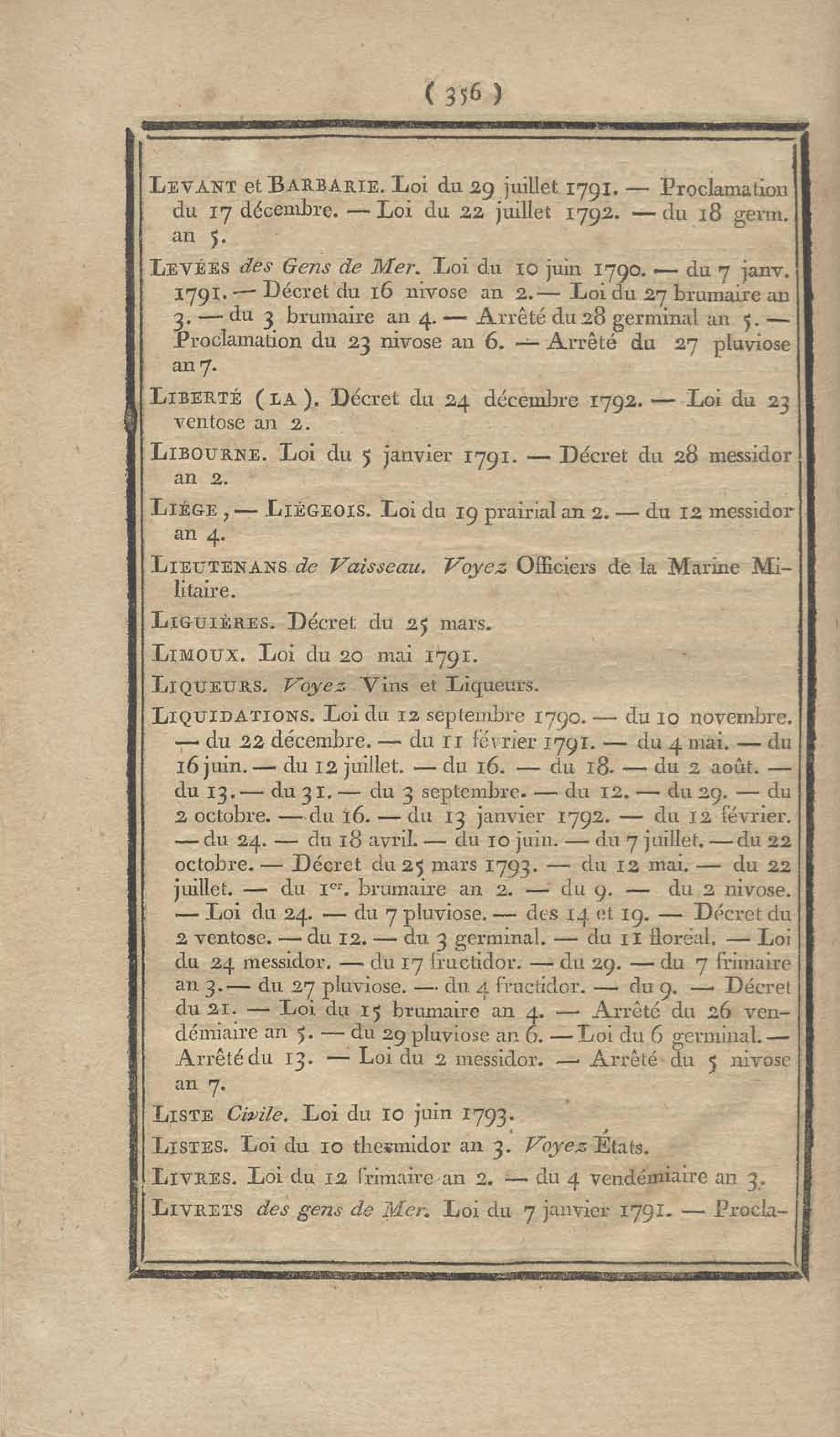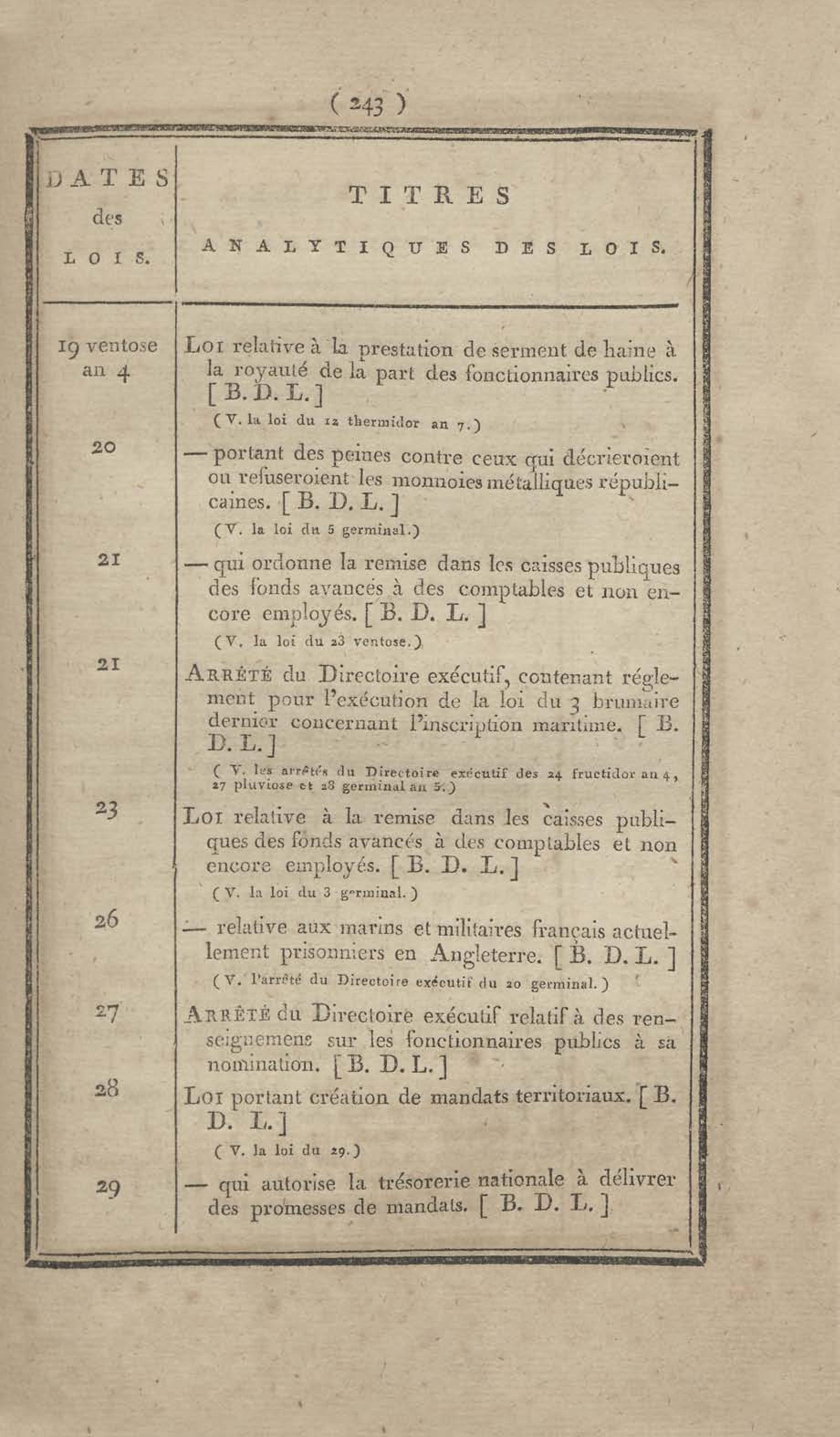 - Table chronologique et analytique des lois rendues depuis 1789 concernant la marine et les colonies