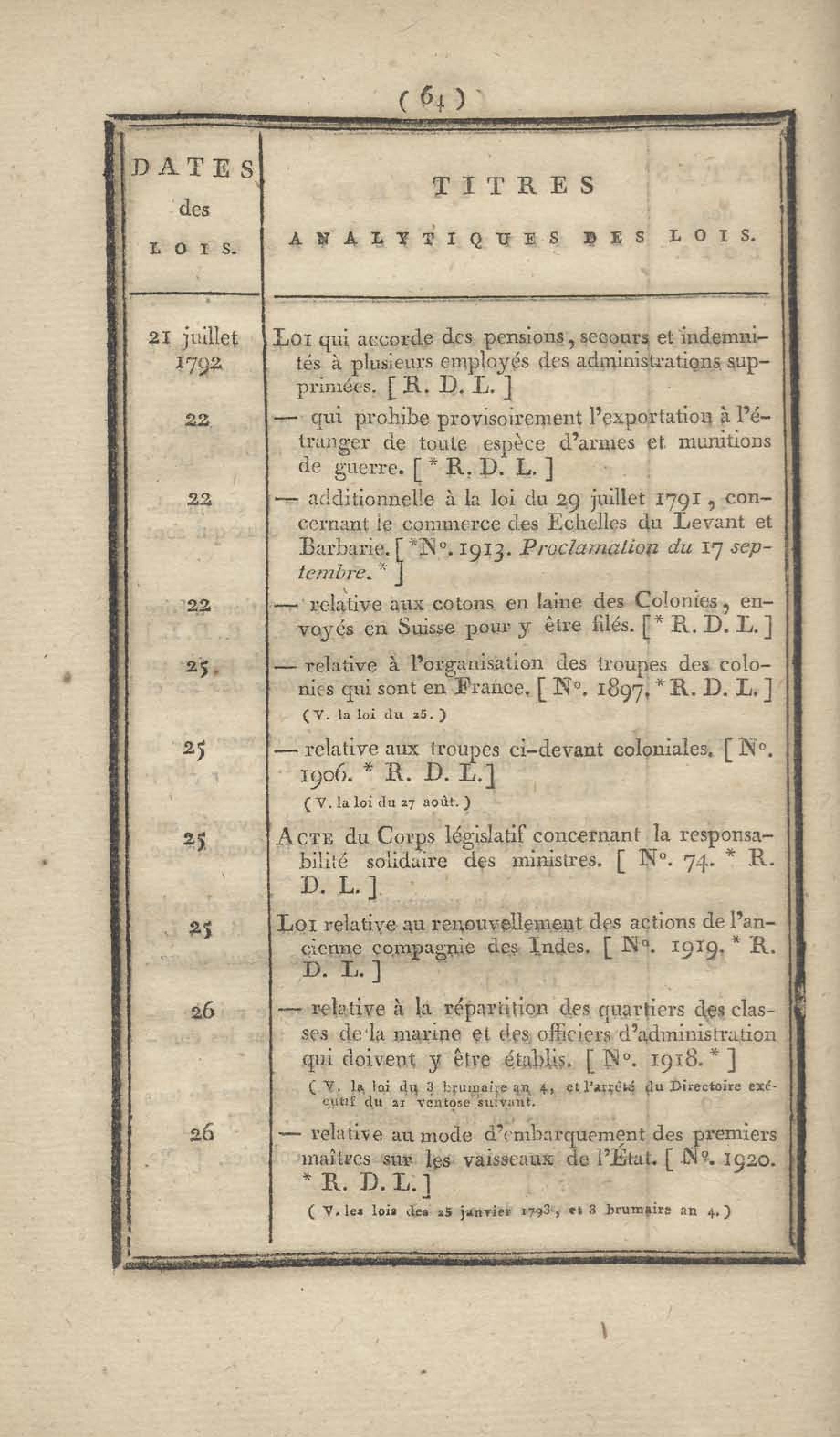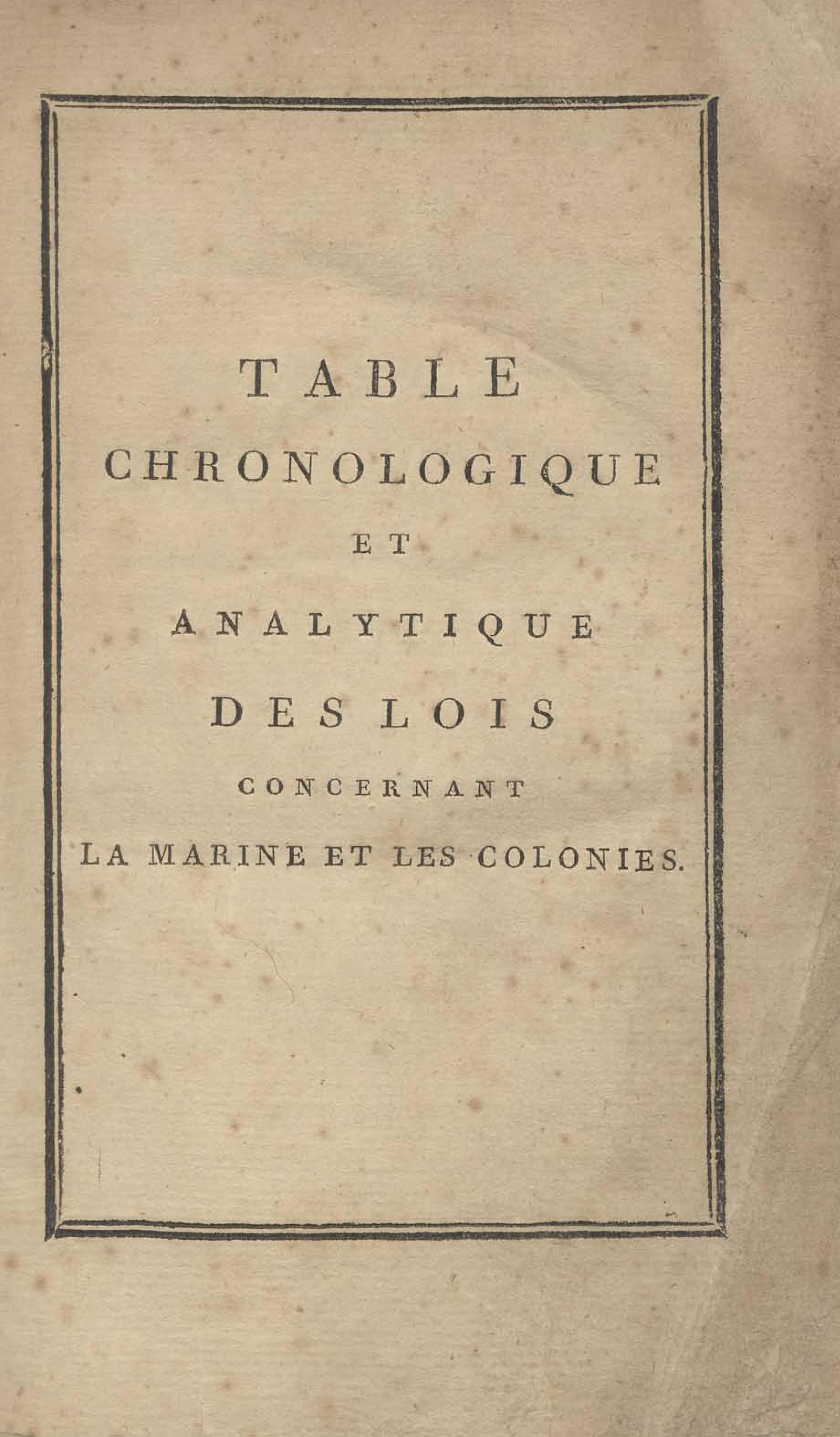 Table chronologique et analytique des lois rendues depuis 1789 concernant la marine et les colonies