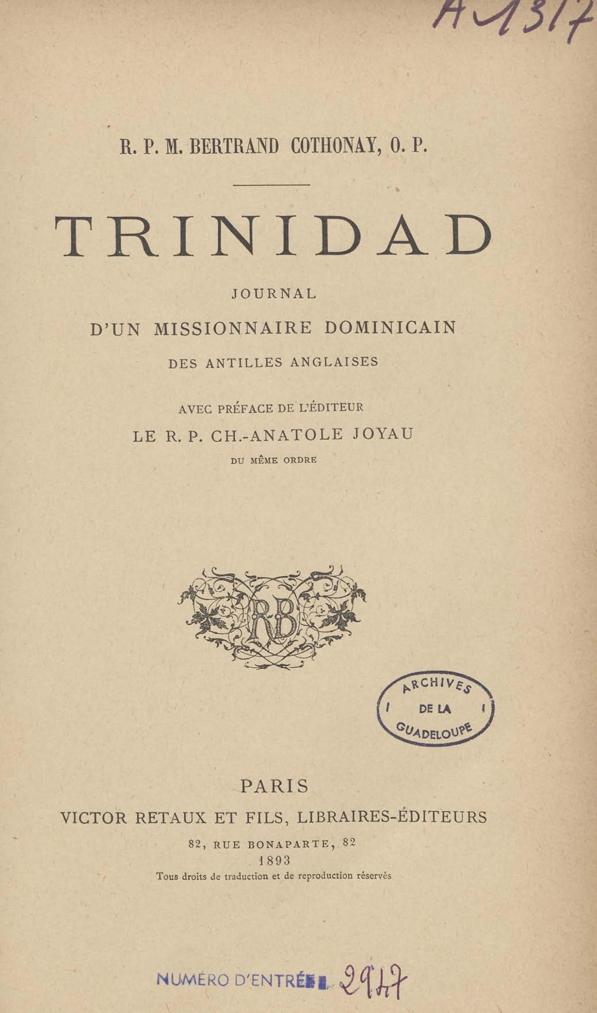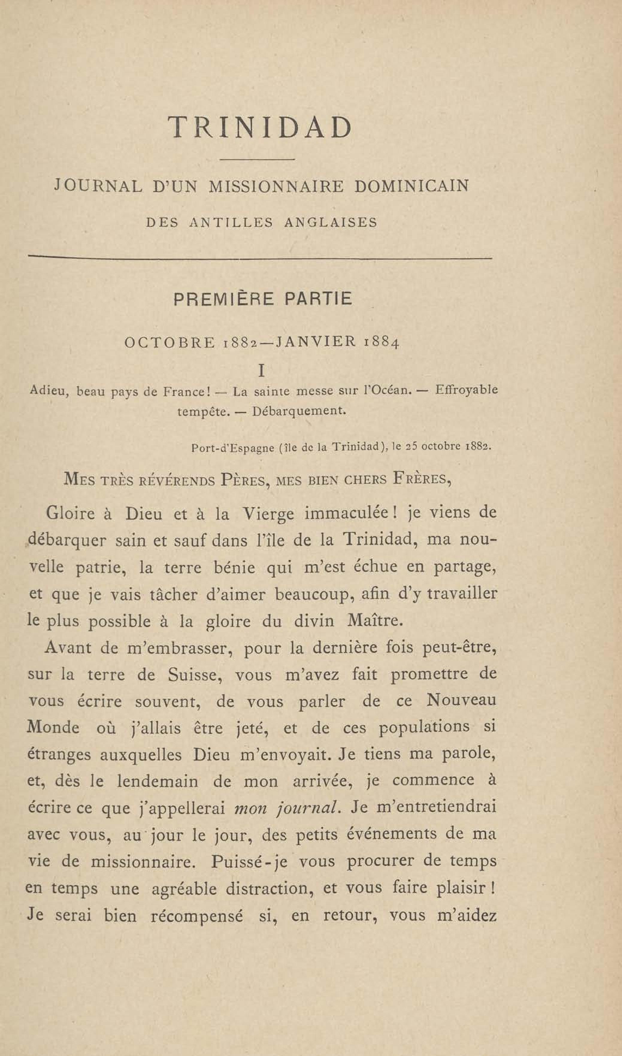 - Trinidad, journal d'un missionnaire dominicain des Antilles anglaises