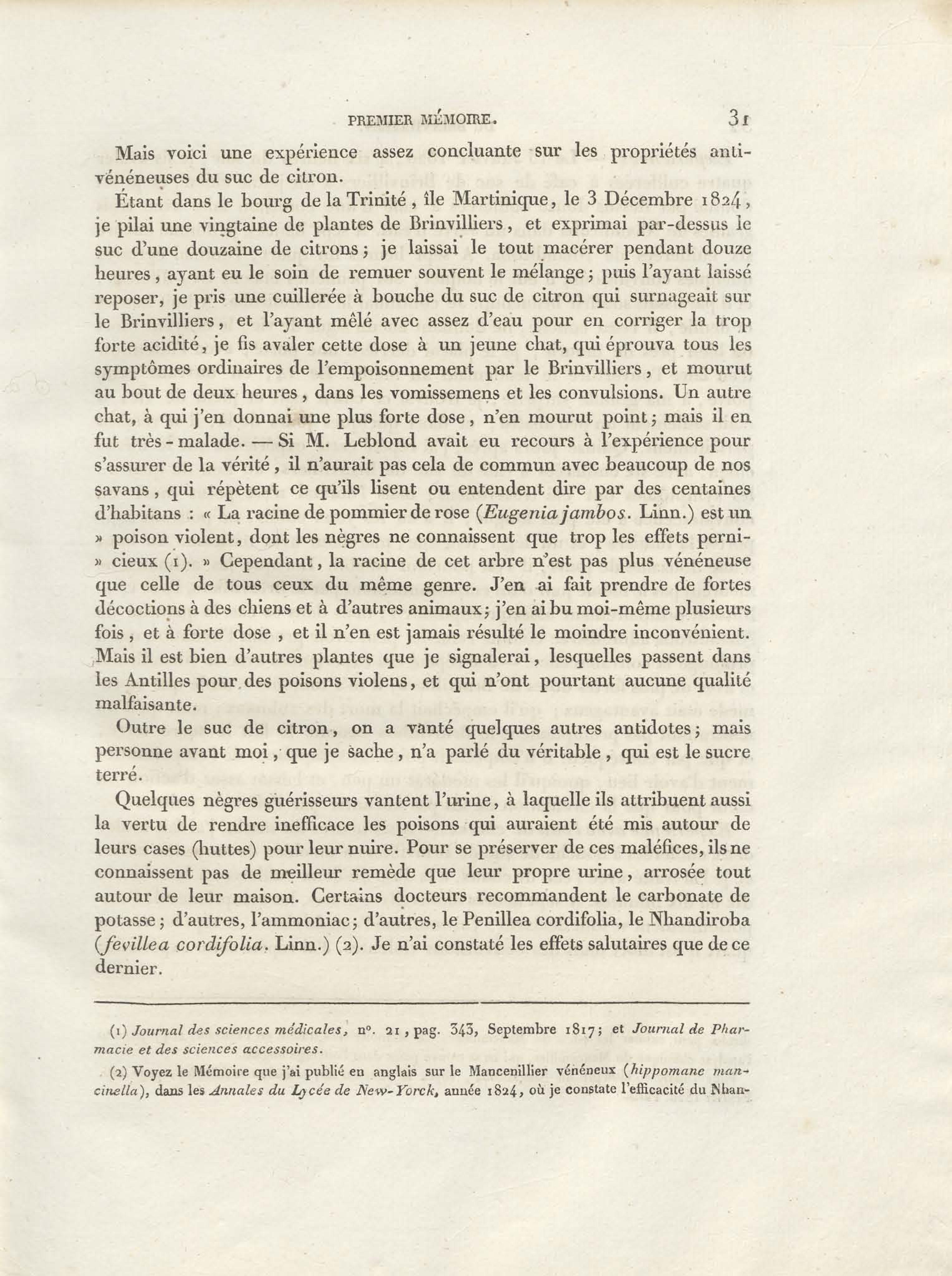 - Recherches et expériences sur les poisons d'Amérique, tirés des trois règnes de la nature, et envisagés sous les rapports de l'histoire naturelle, de la physiologie, de la pathologie et de la chimie
