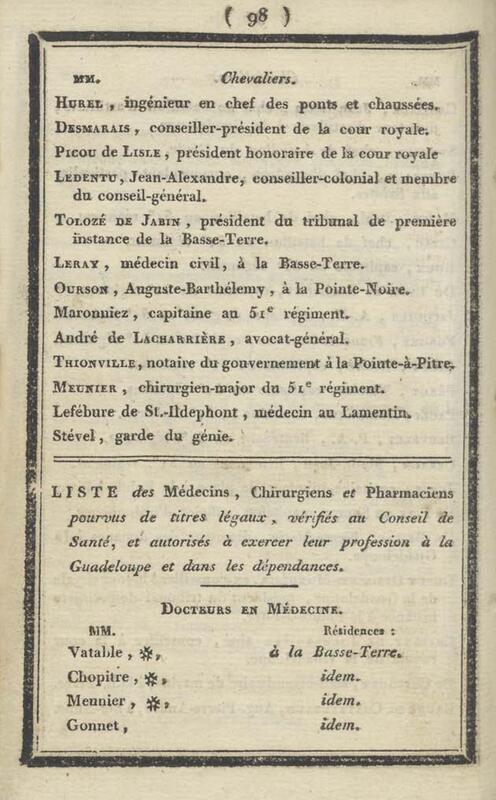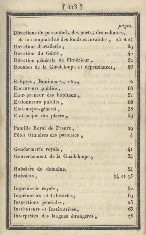 - Almanach de la Guadeloupe et dépendances pour l'année commune 1829 suivi de notices statistiques sur la Guadeloupe et dépendances