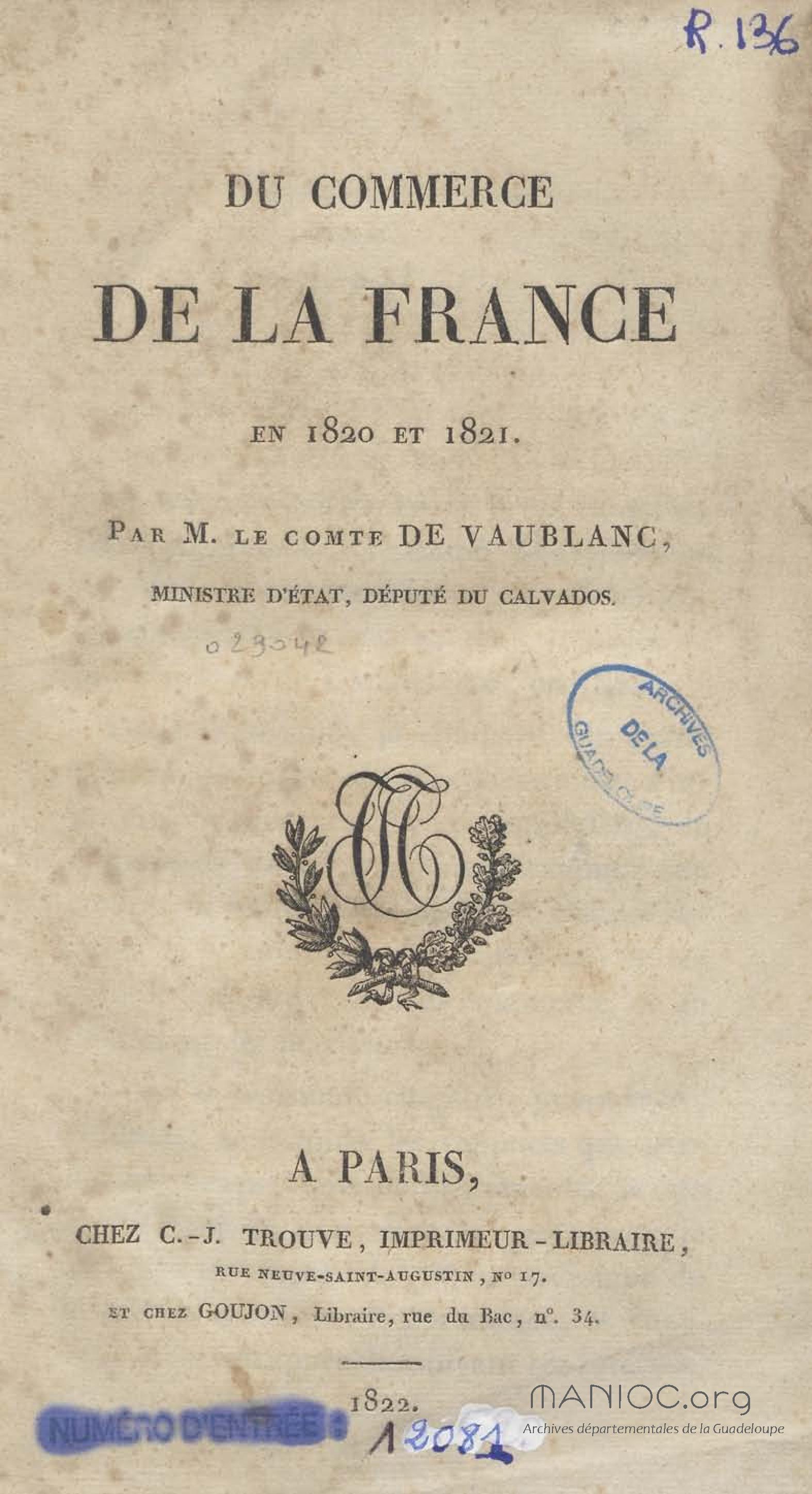 - Du commerce de la France en 1820 et 1821