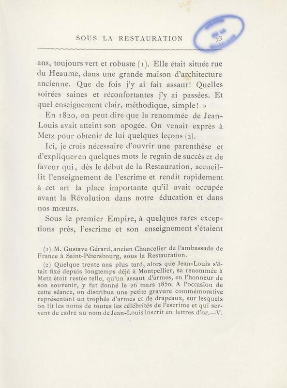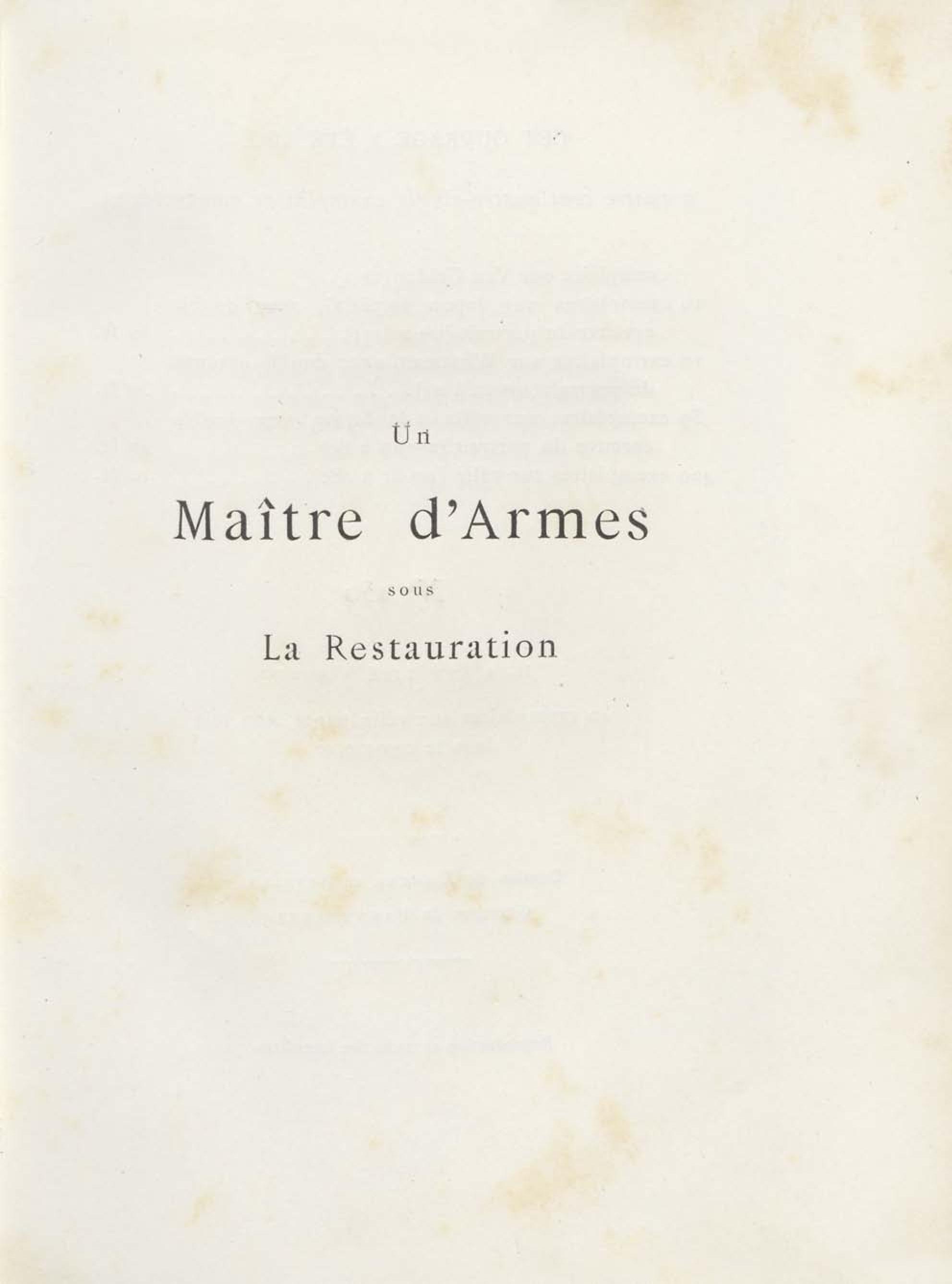 - Un maître d'armes sous la Restauration