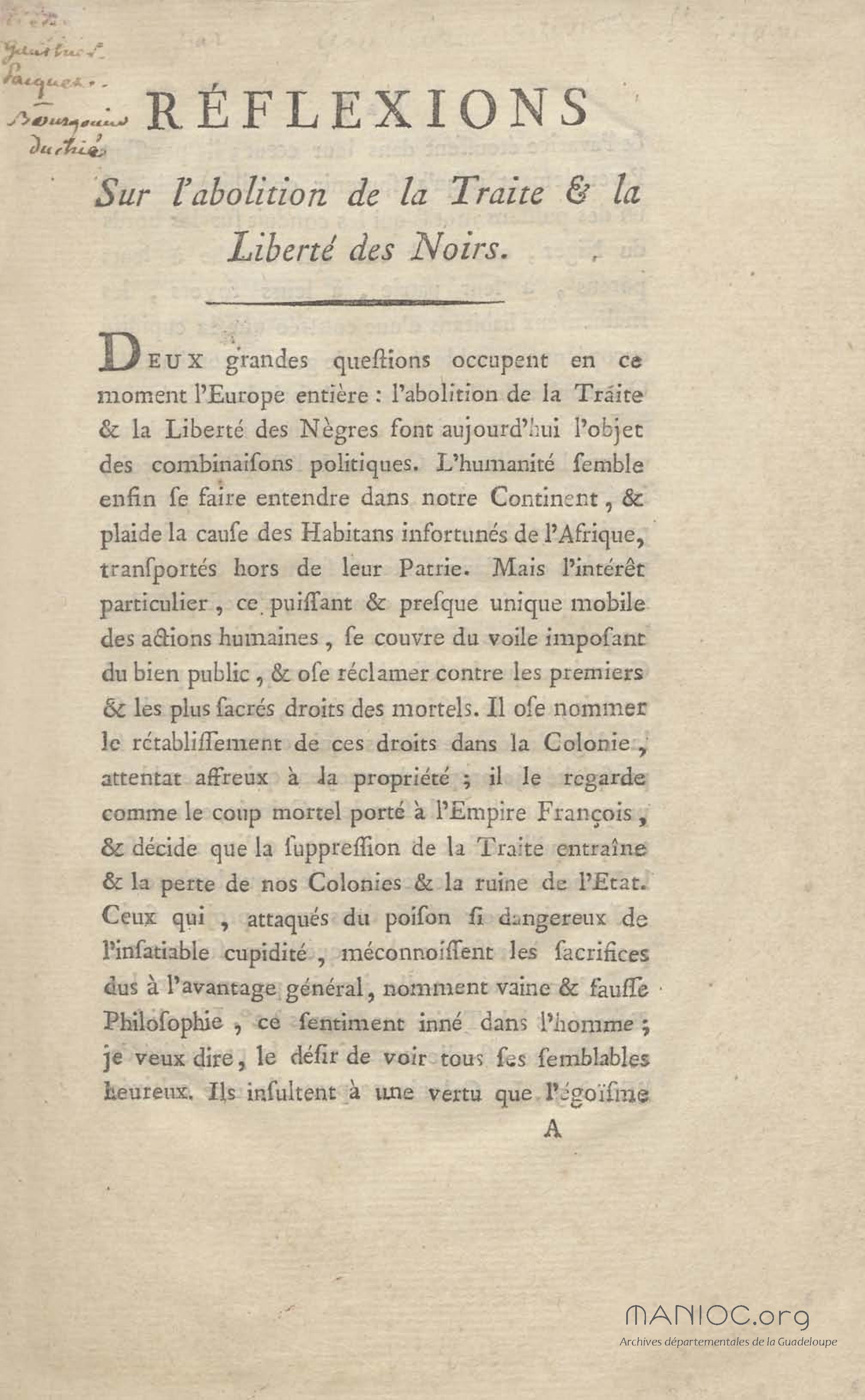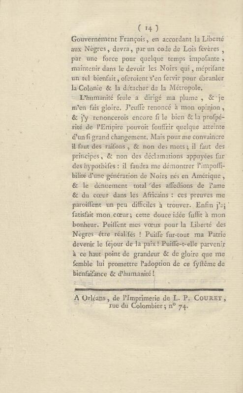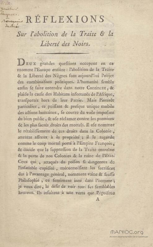 - Réflexions sur l’abolition de la traite et la liberté des Noirs