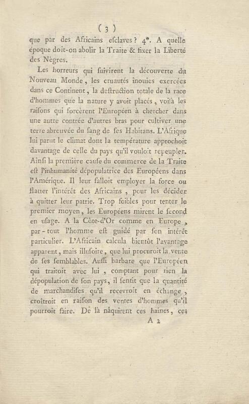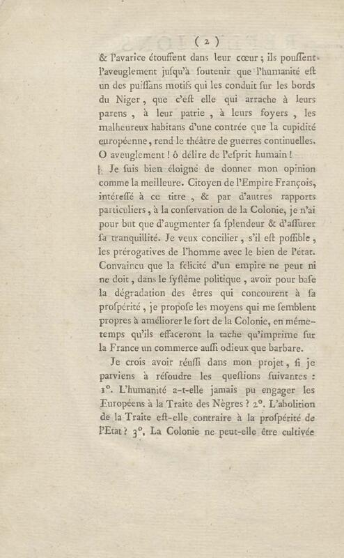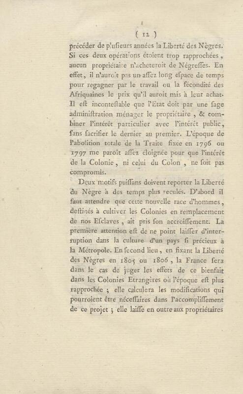 Réflexions sur l’abolition de la traite et la liberté des Noirs