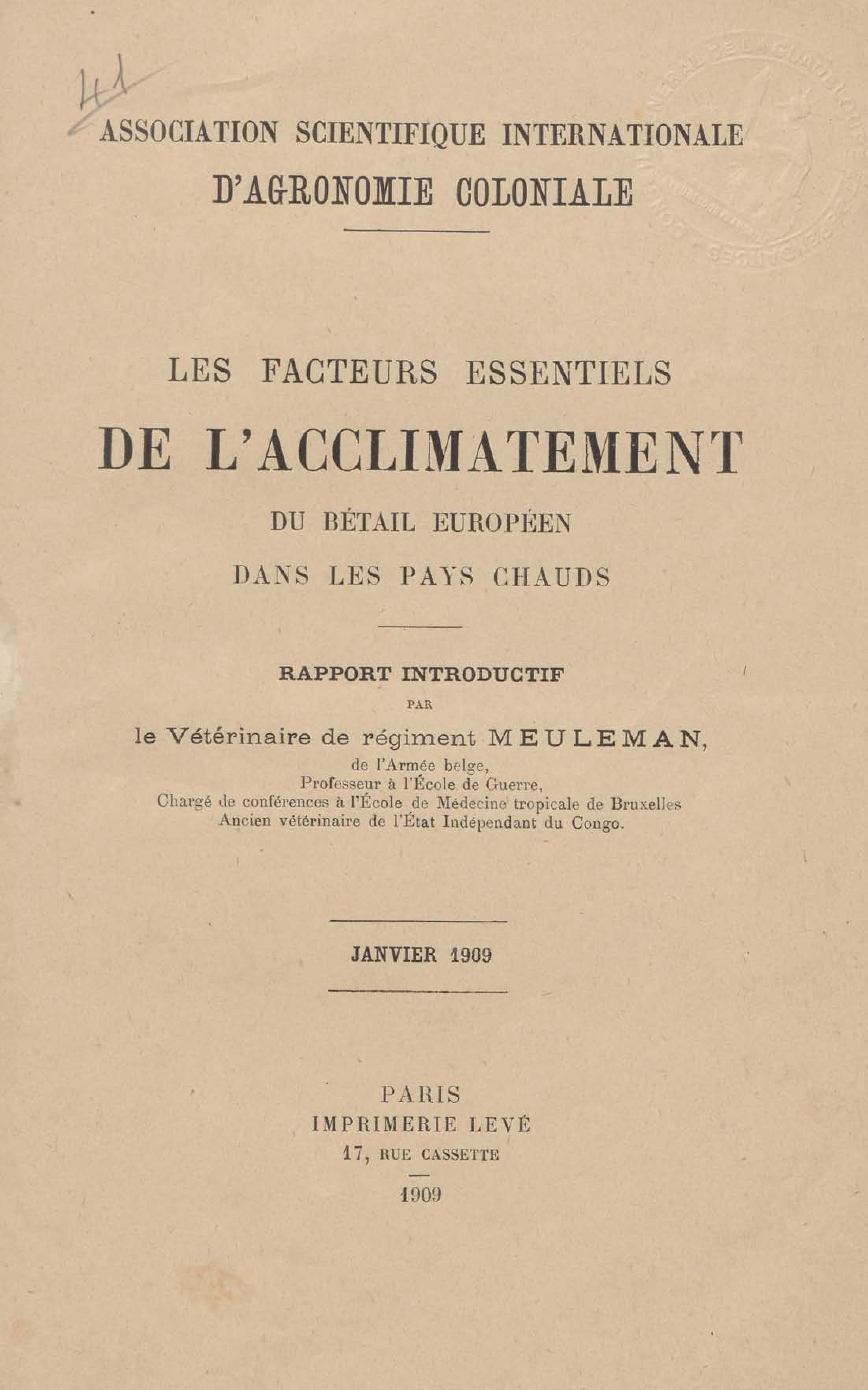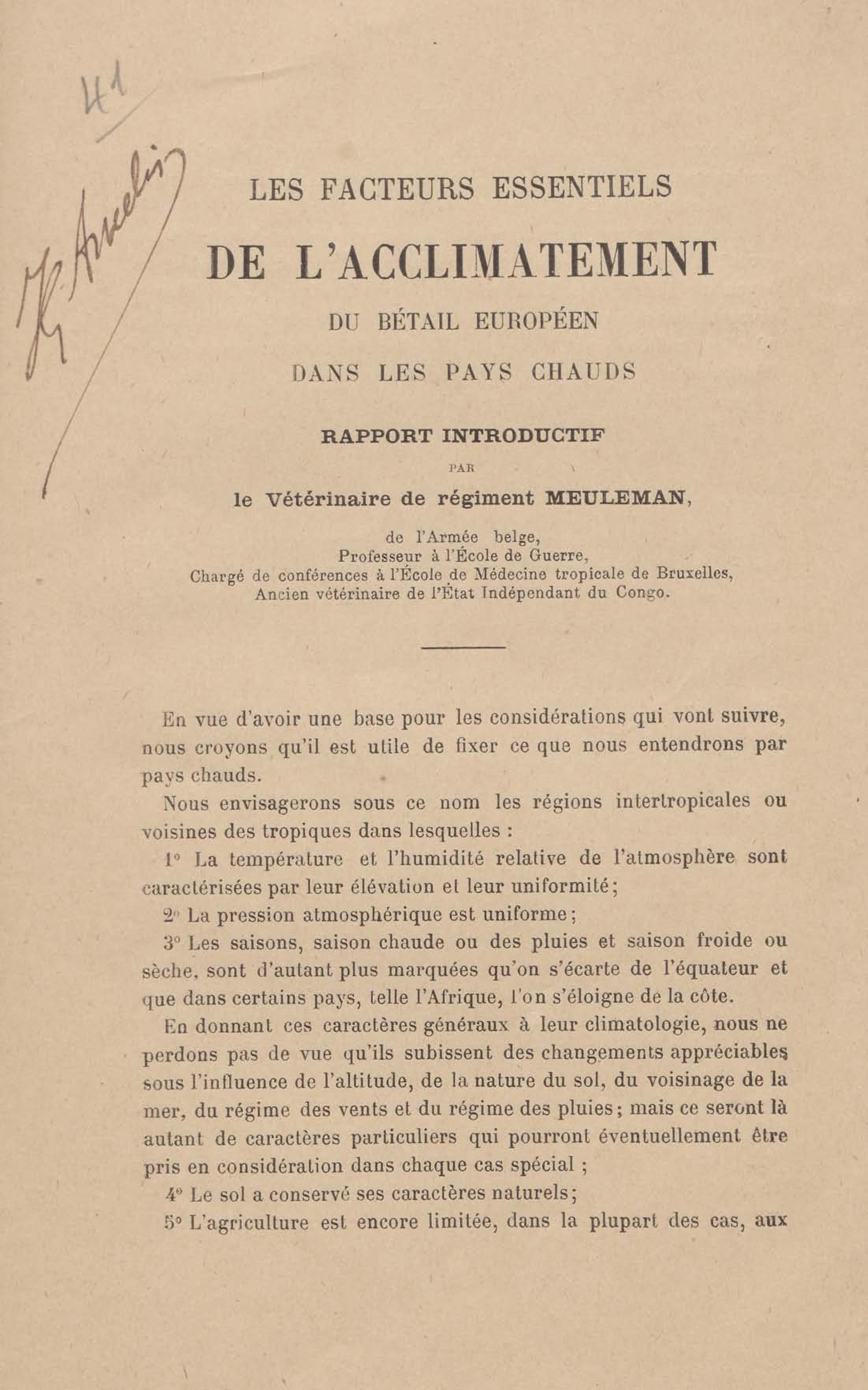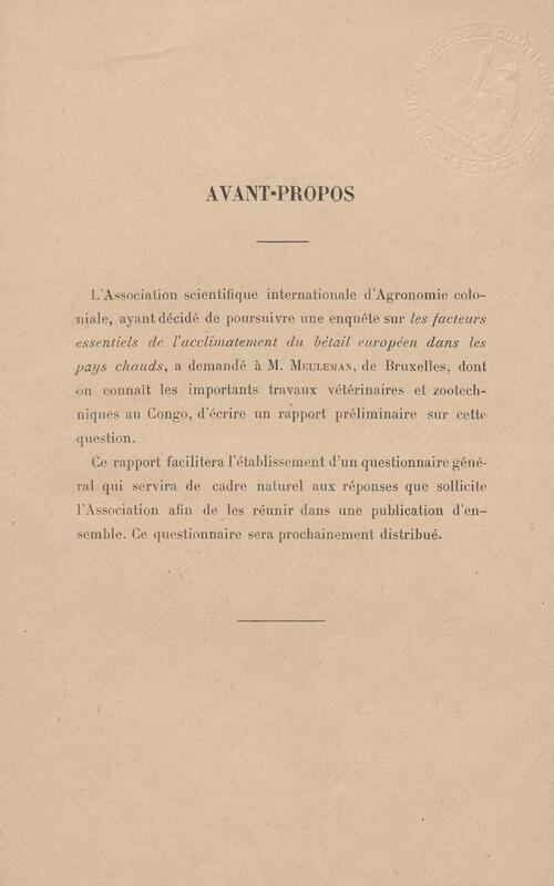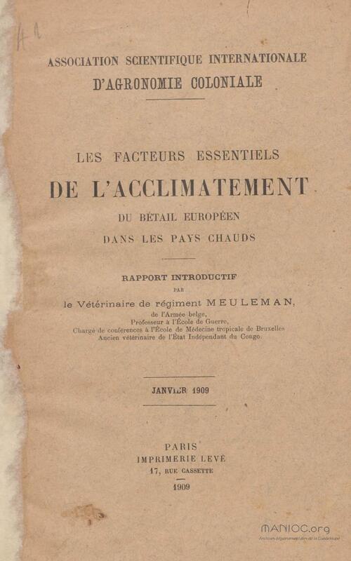 - Les facteurs essentiels de l'acclimatement du bétail européen dans les pays chauds
