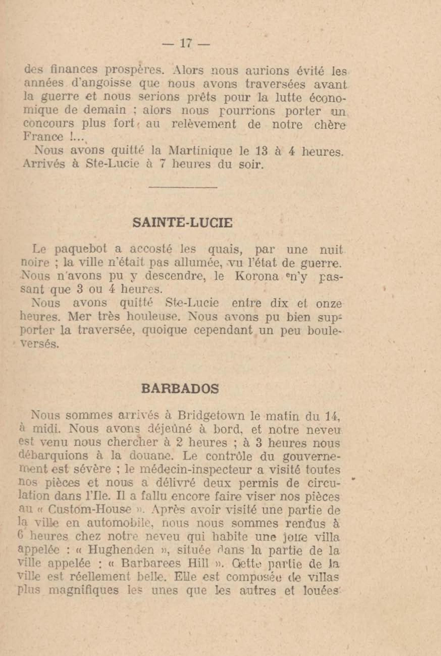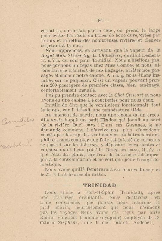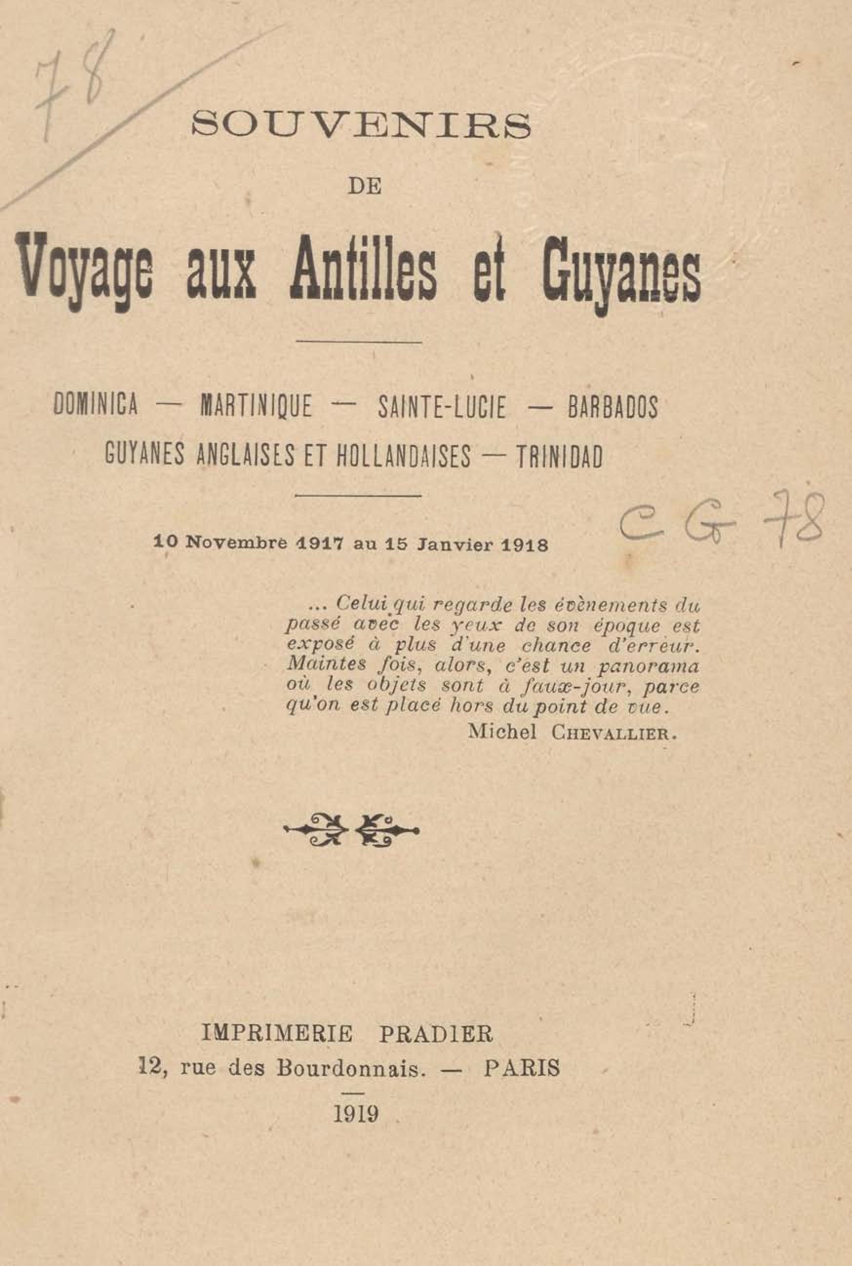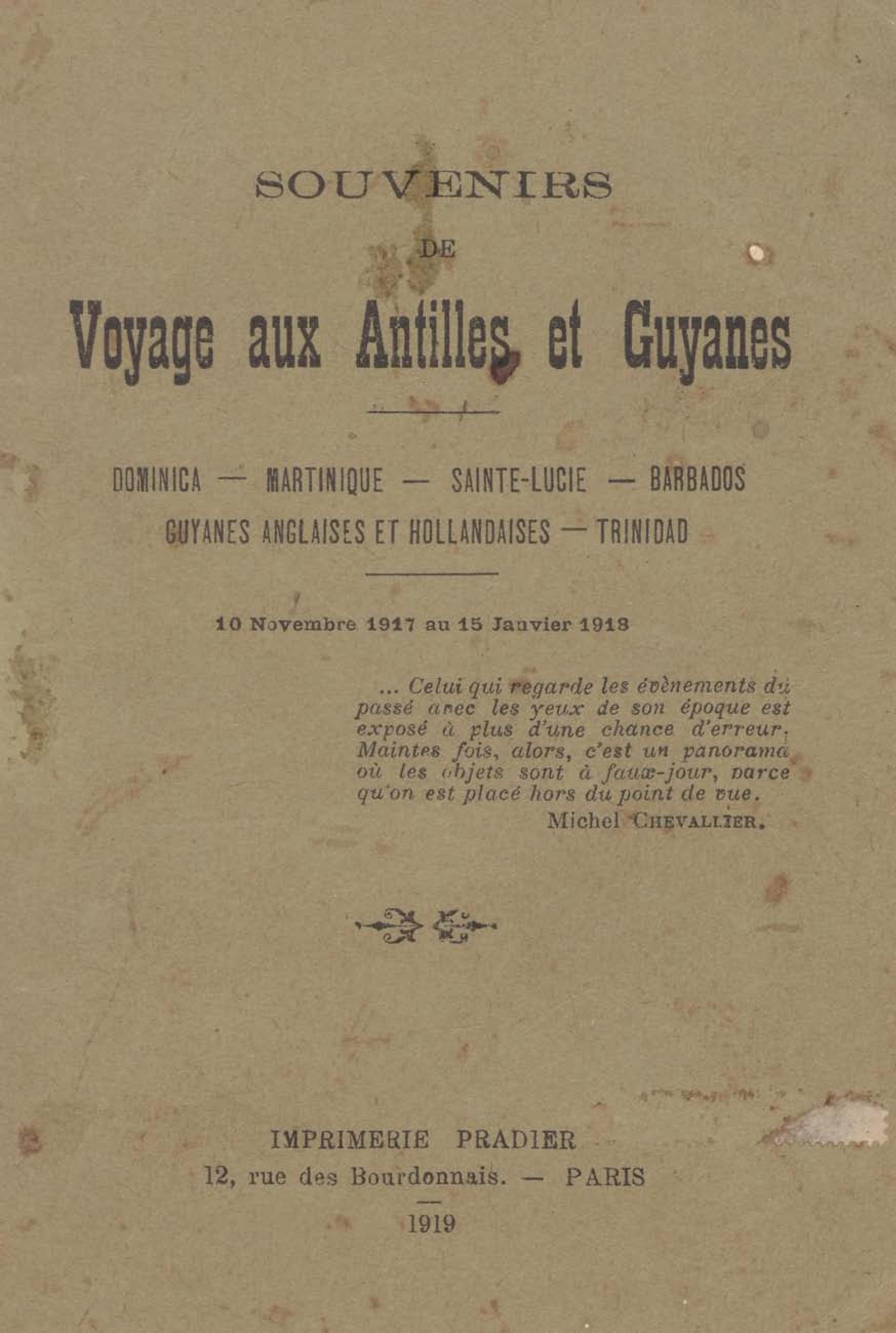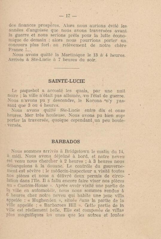 - Souvenirs de Voyage aux Antilles et Guyanes : Dominica-Martinique-Sainte-Lucie-Barbados-Guyanes Anglaises et Hollandaises-Trinidad (10 novembre 1917 au 15 janvier 1918)
