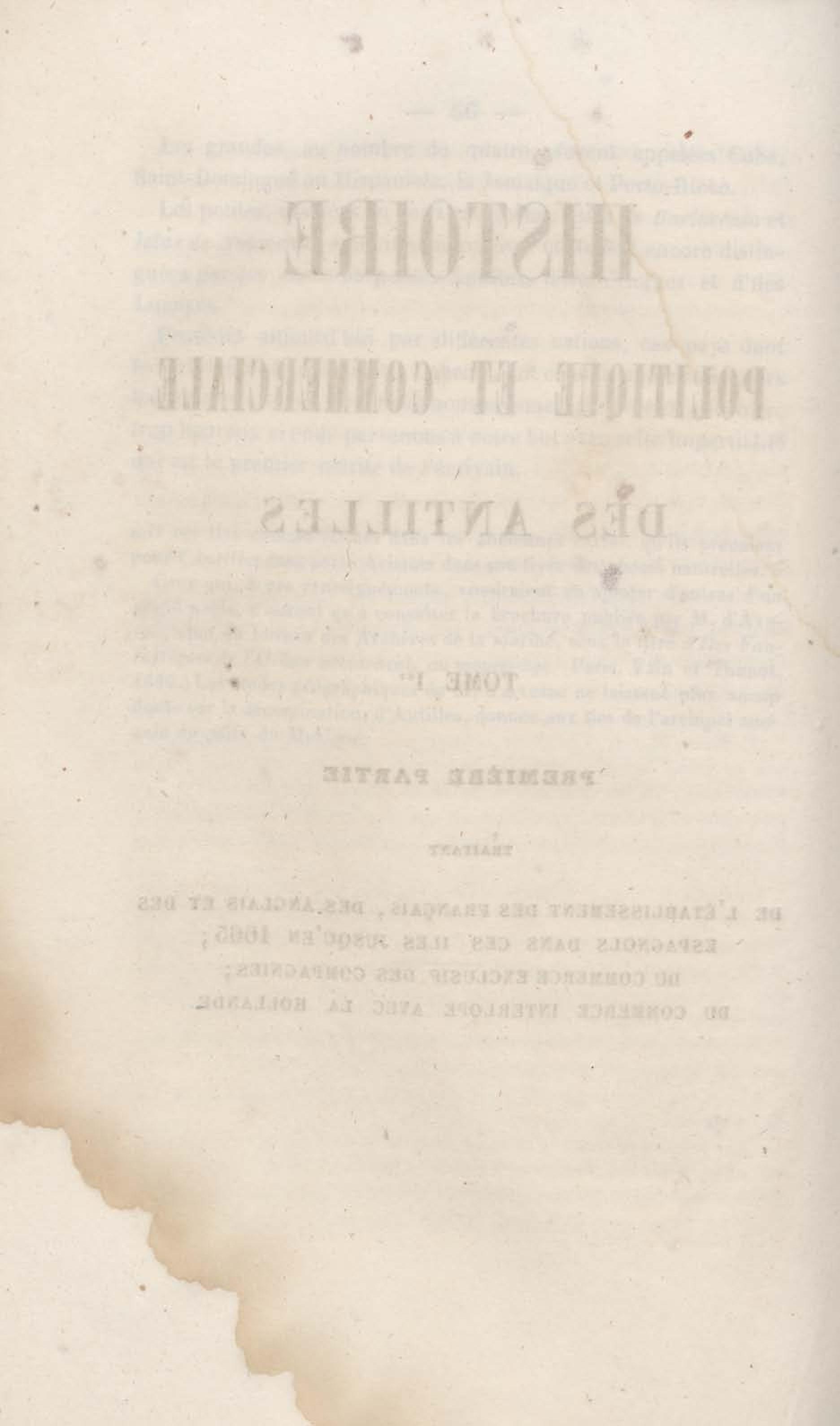 - Histoire générale des Antilles Tome premier de la première série