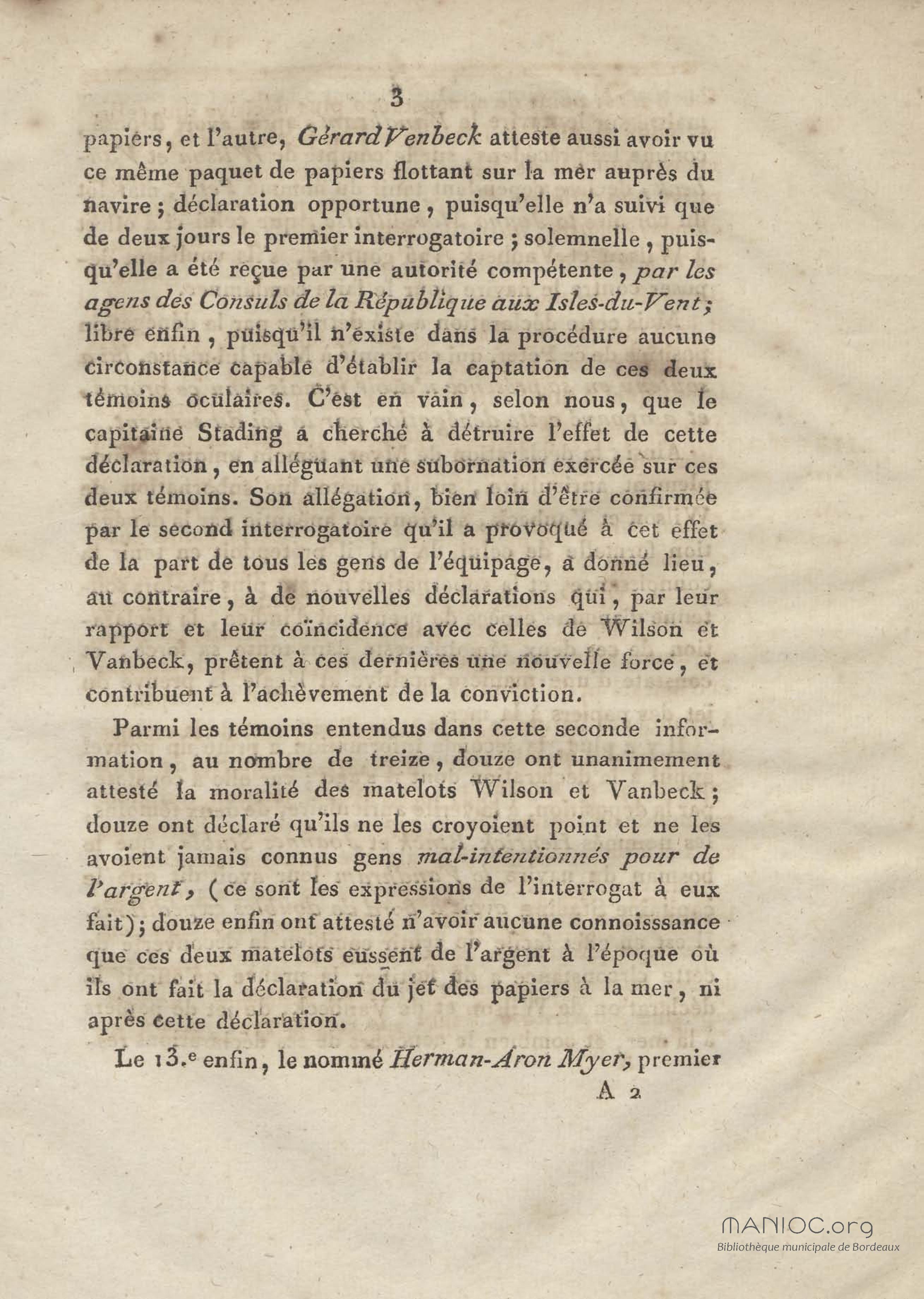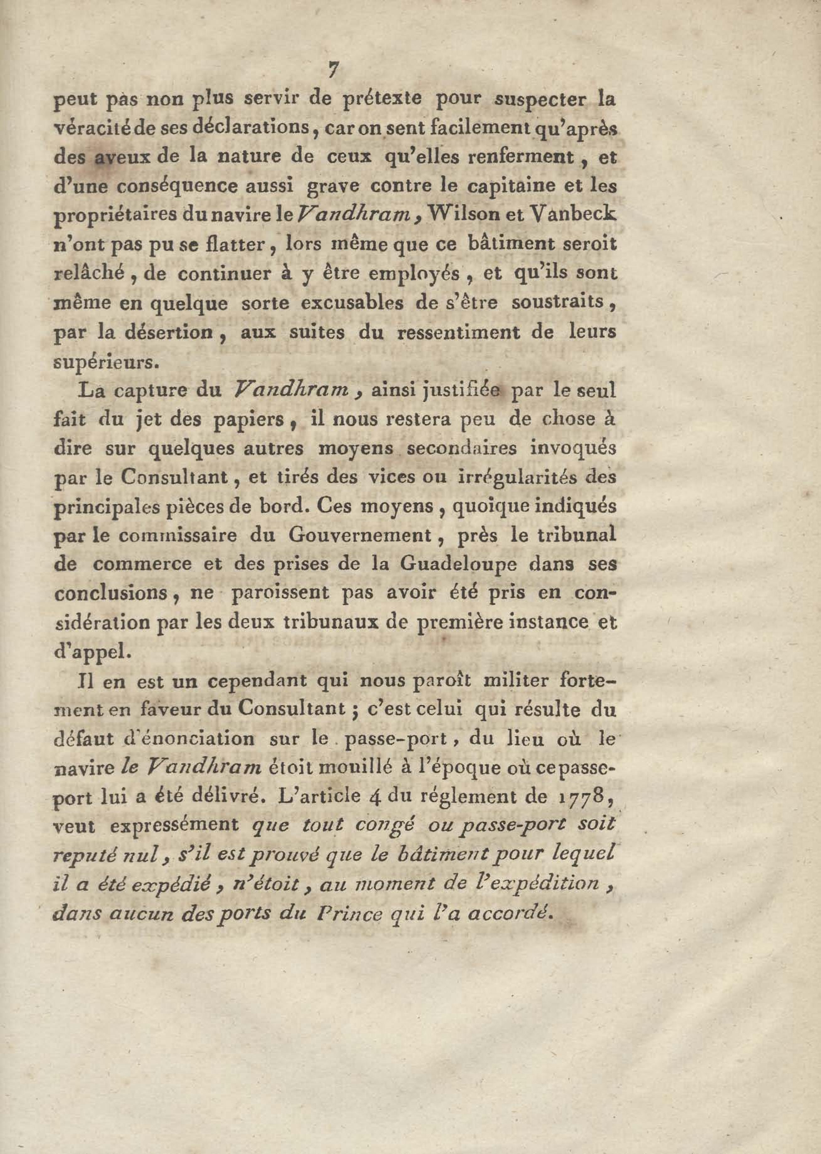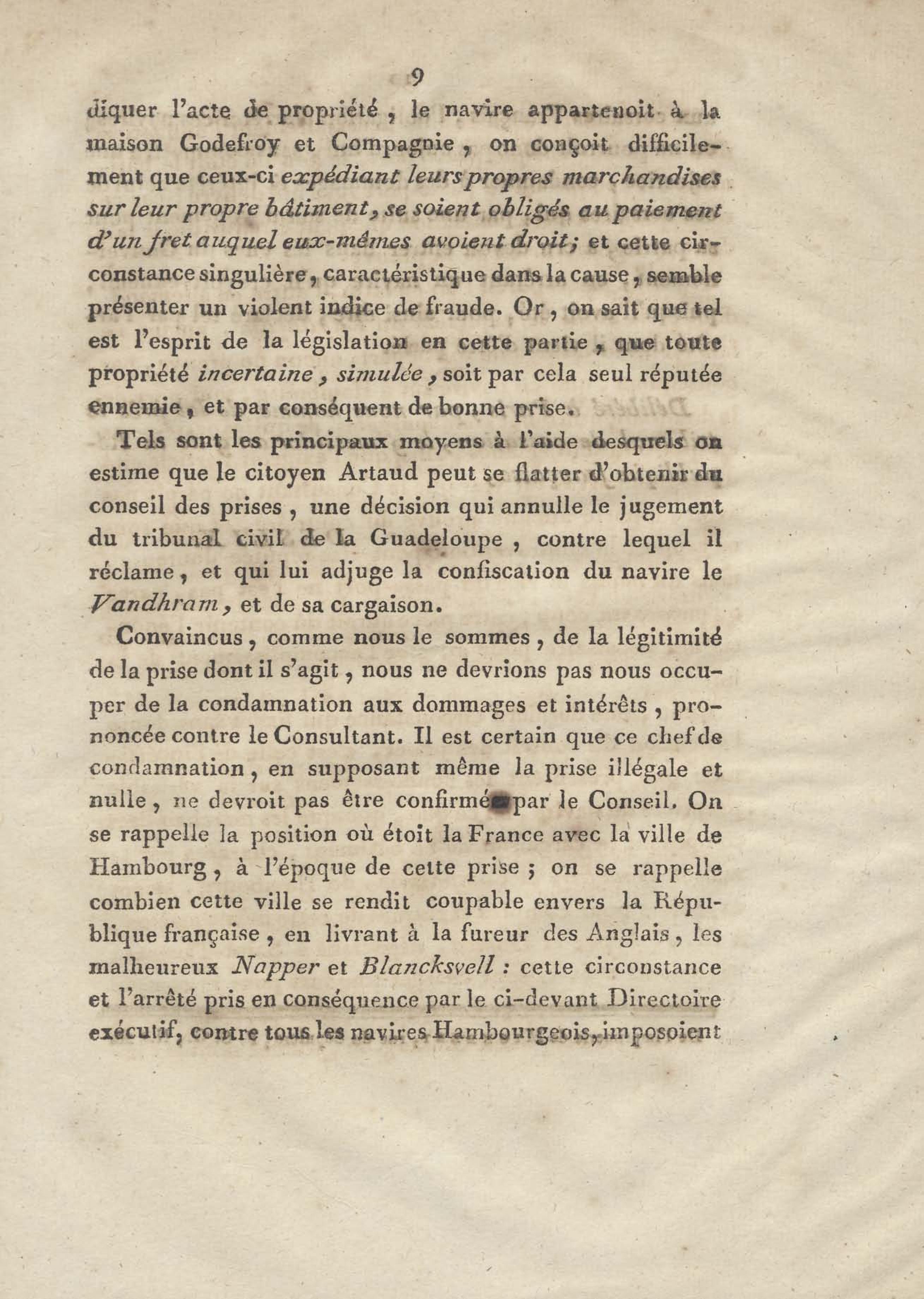 Consultation pour le citoyen Artaud, négociant de la Guadeloupe, armateur du corsaire la Jeune Marseillaise. contre le nommé Stading, capitaine du navire capturé le Vandrham
