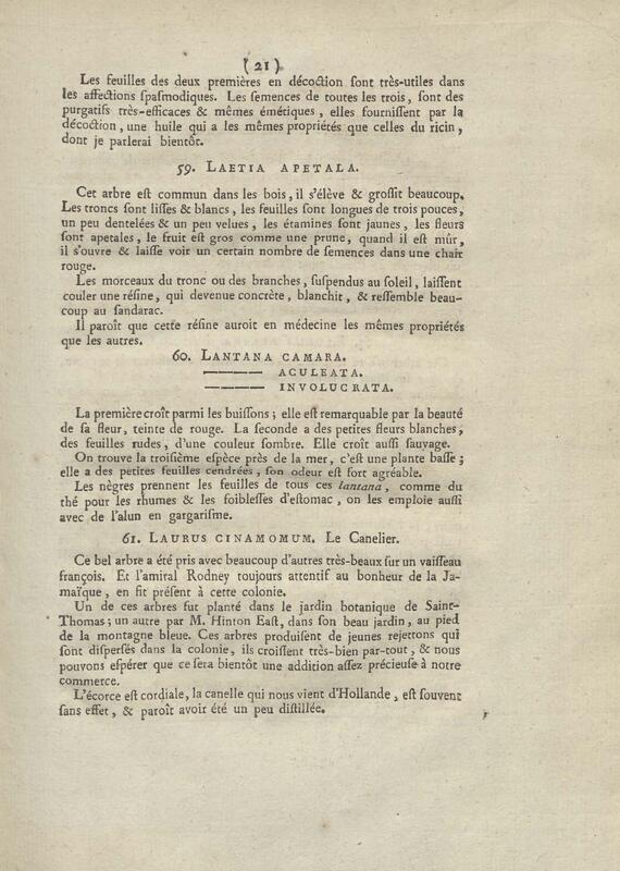 Essai sur les plantes usuelles de la Jamaïque. Extrait de Journal de physique. Mai 1788