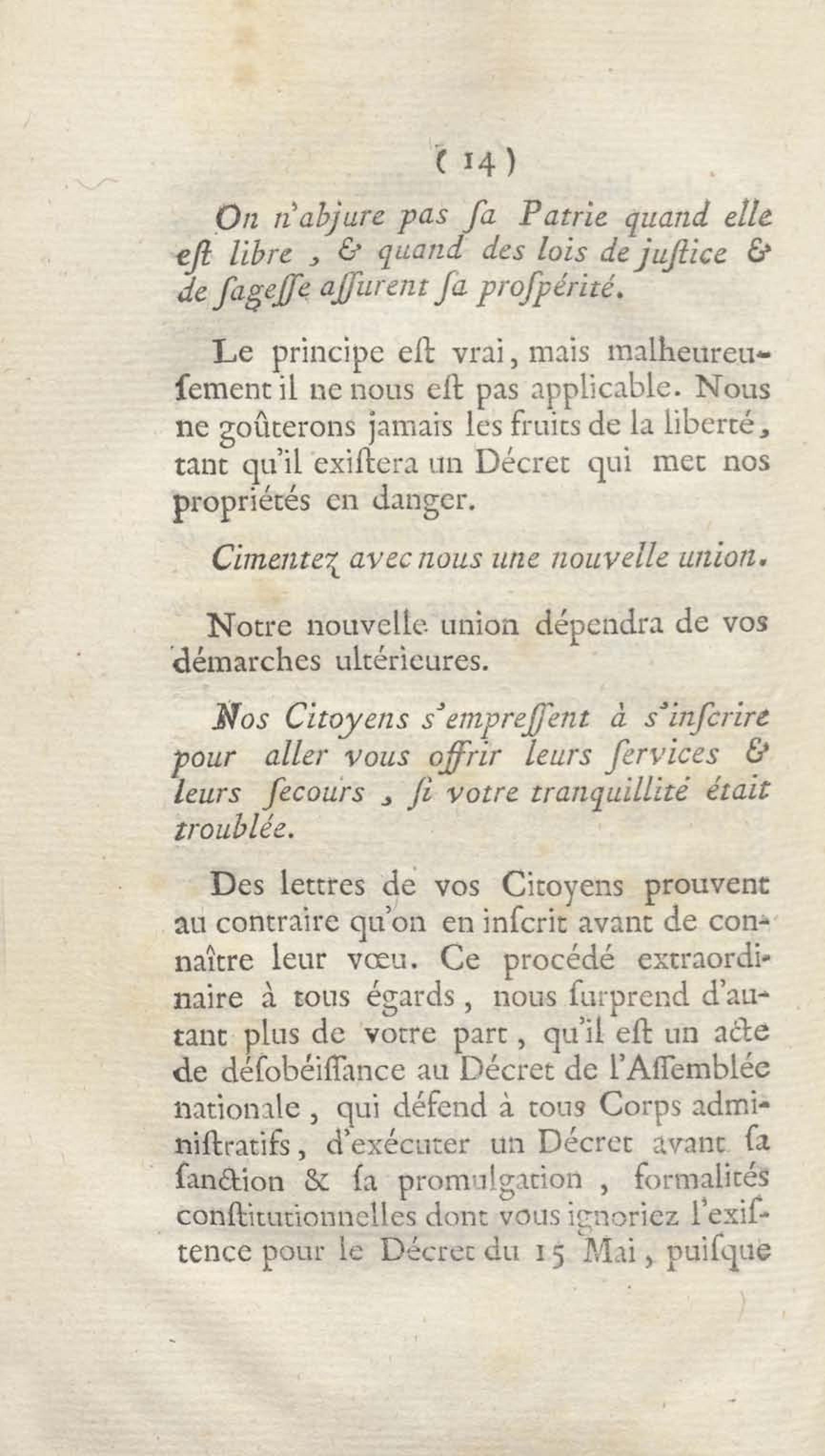 Réponse de l'Assemblée provinciale du Nord de Saint-Domingue à la lettre du Directoire du département de la Gironde