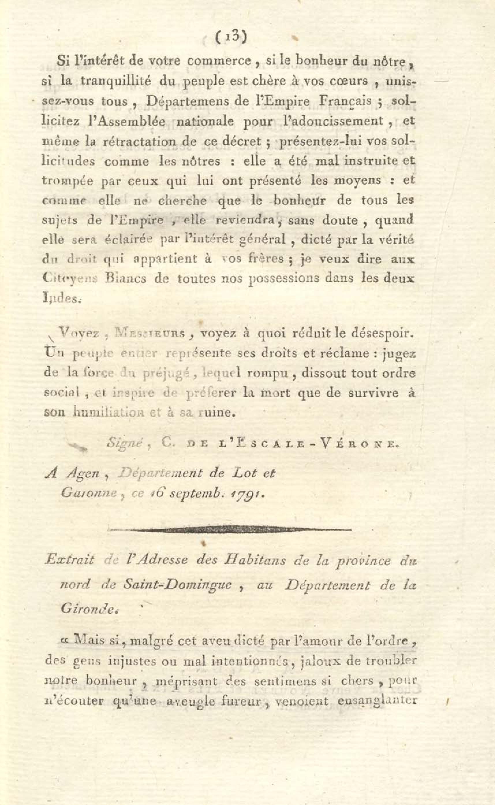 Adresse aux quatre-vingt-trois départemens de l'Empire français, par un habitant de St-Domingue & du département de Lot et Garonne.