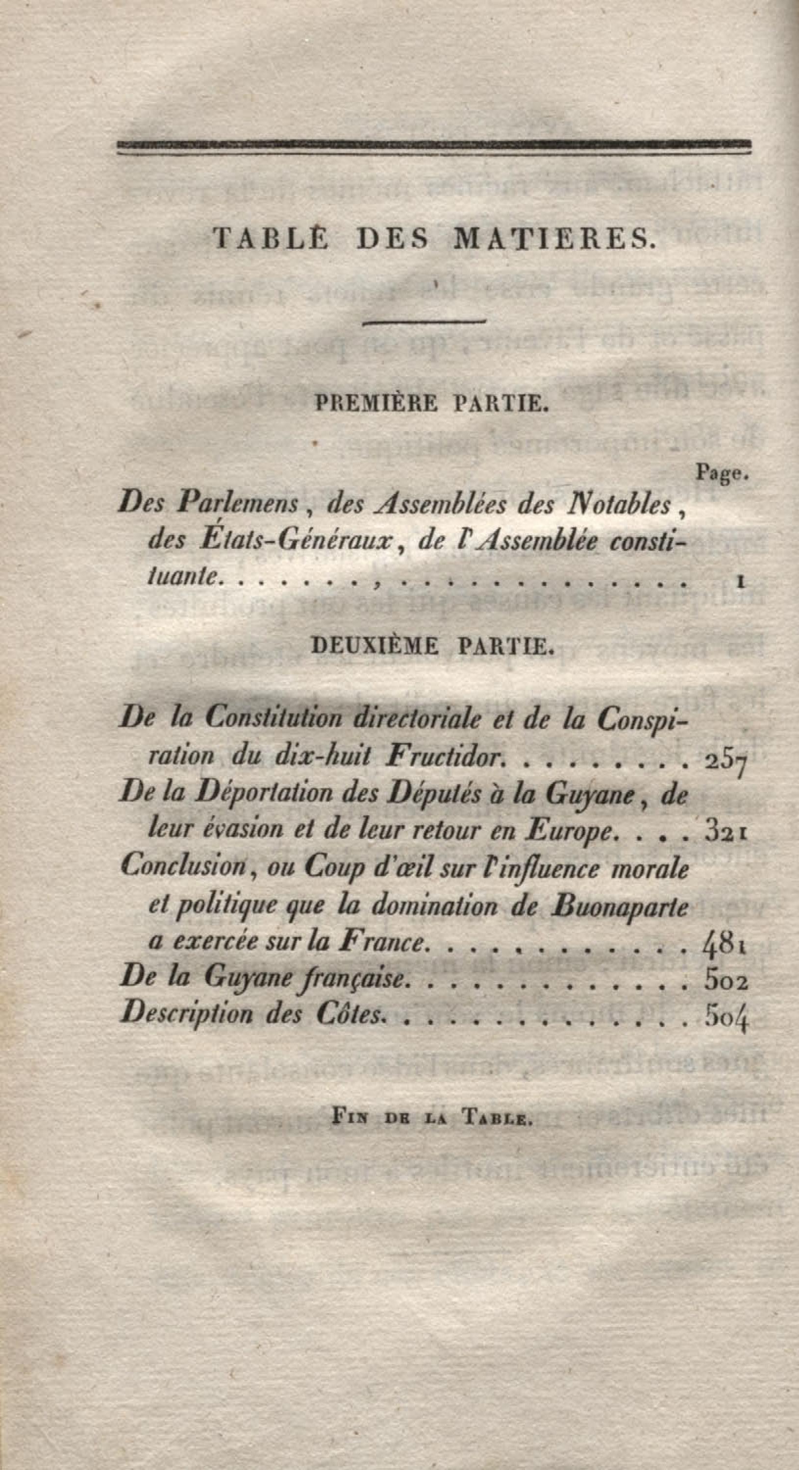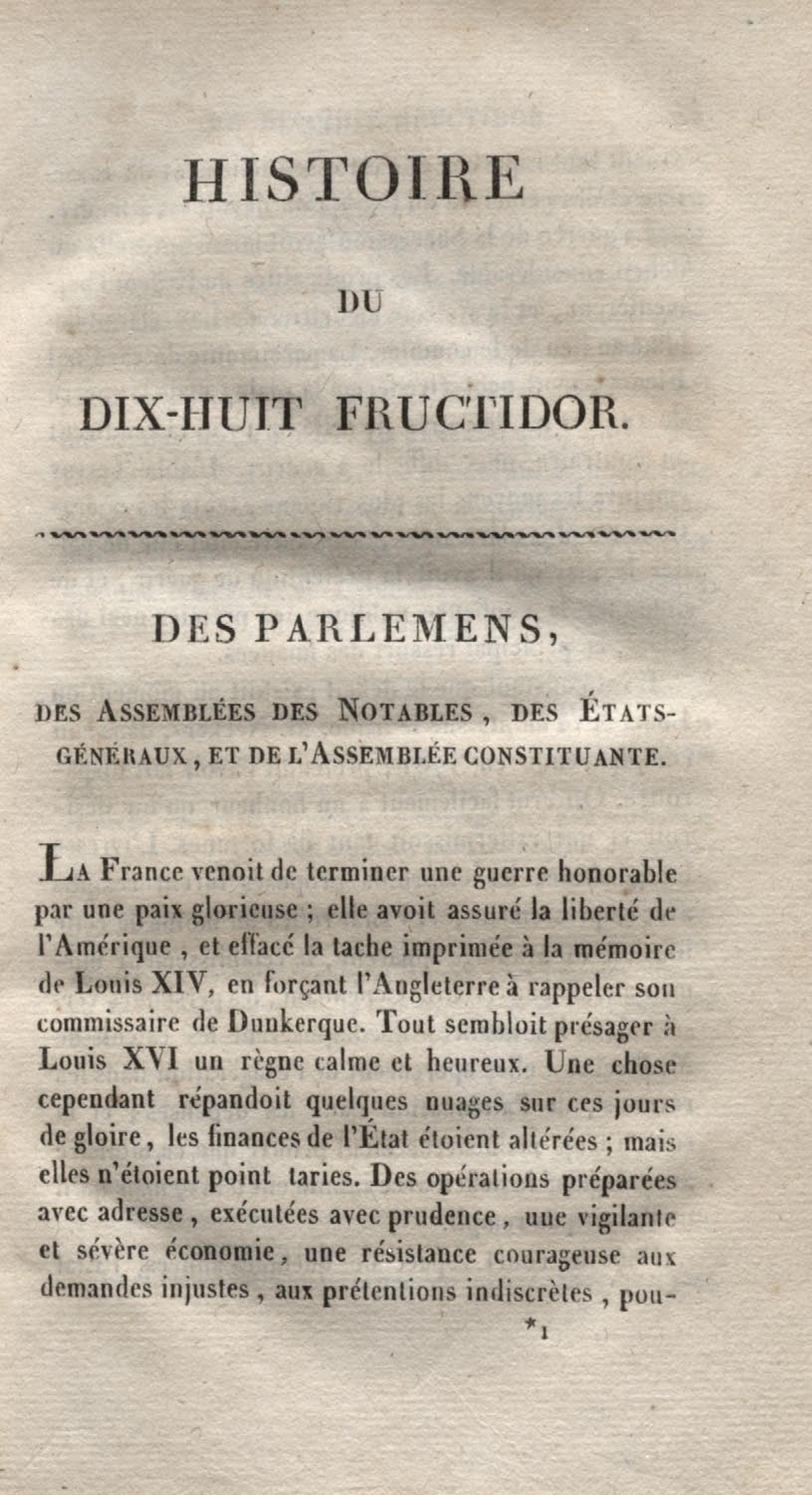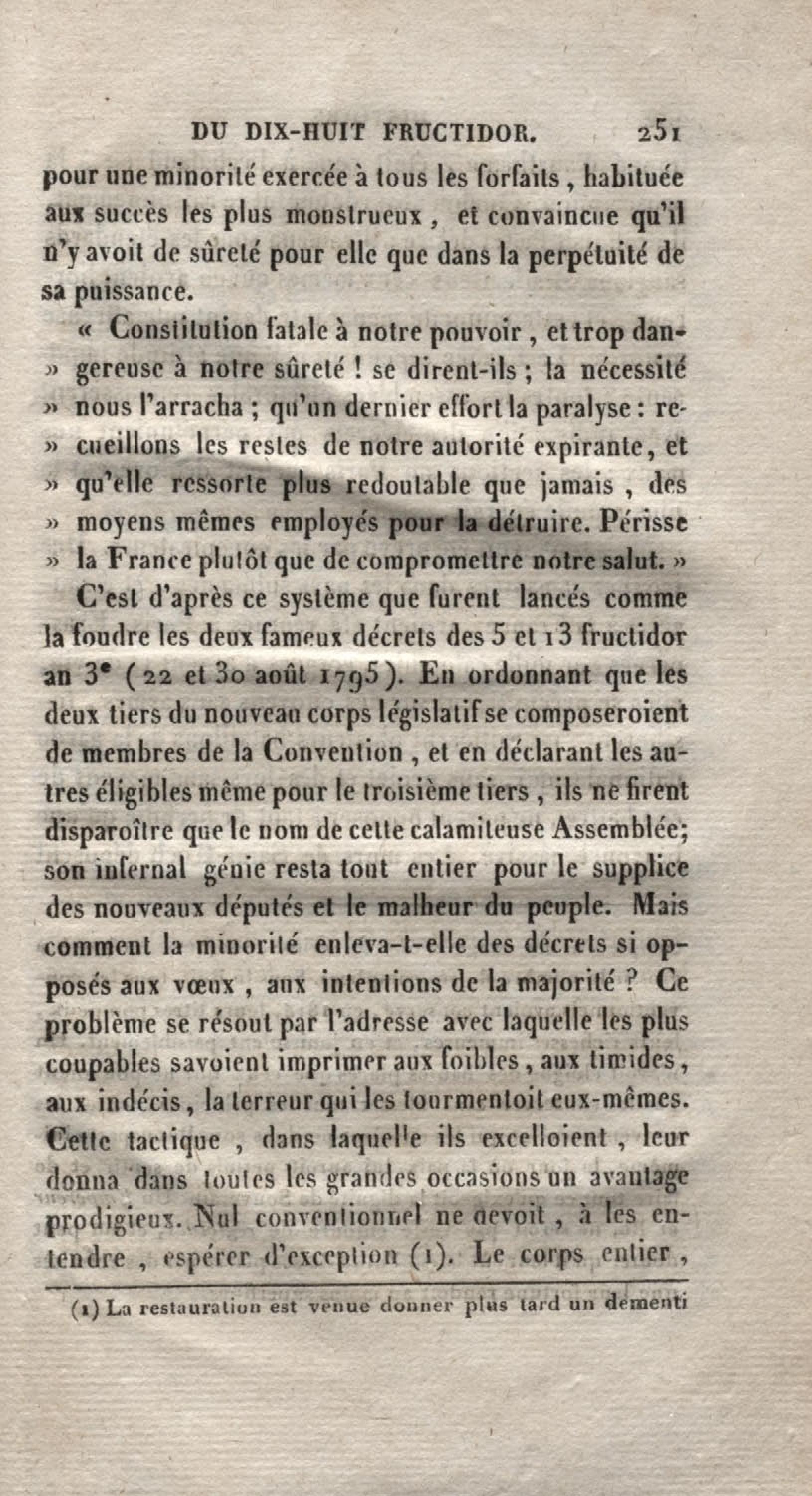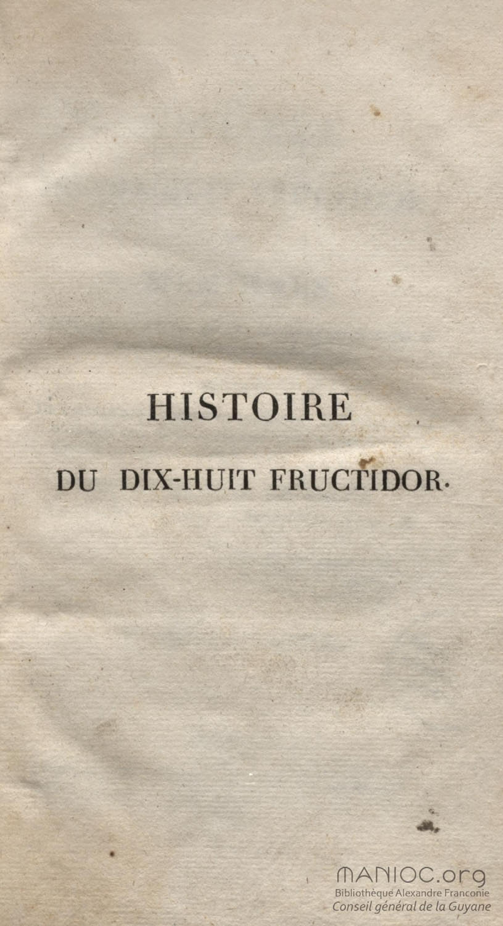 Histoire du dix-huit fructidor ou Mémoires contenant la vérité sur les divers évènemens qui se rattachent à cette conjuration : précédés du tableau des factions qui déchirent la France depuis quarante ans, et terminés par quelques détails sur la Guyane considérées comme colonie. Première partie