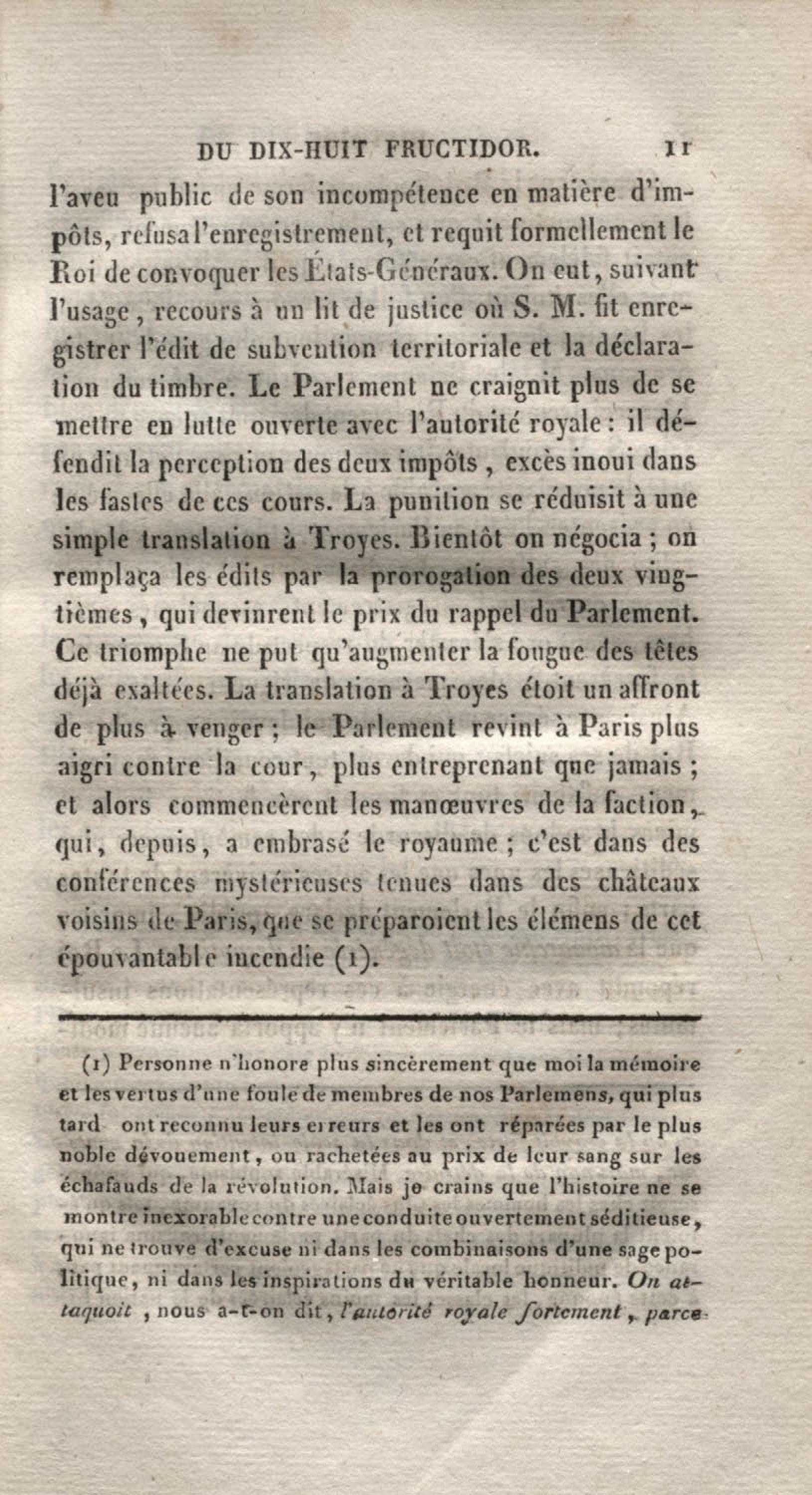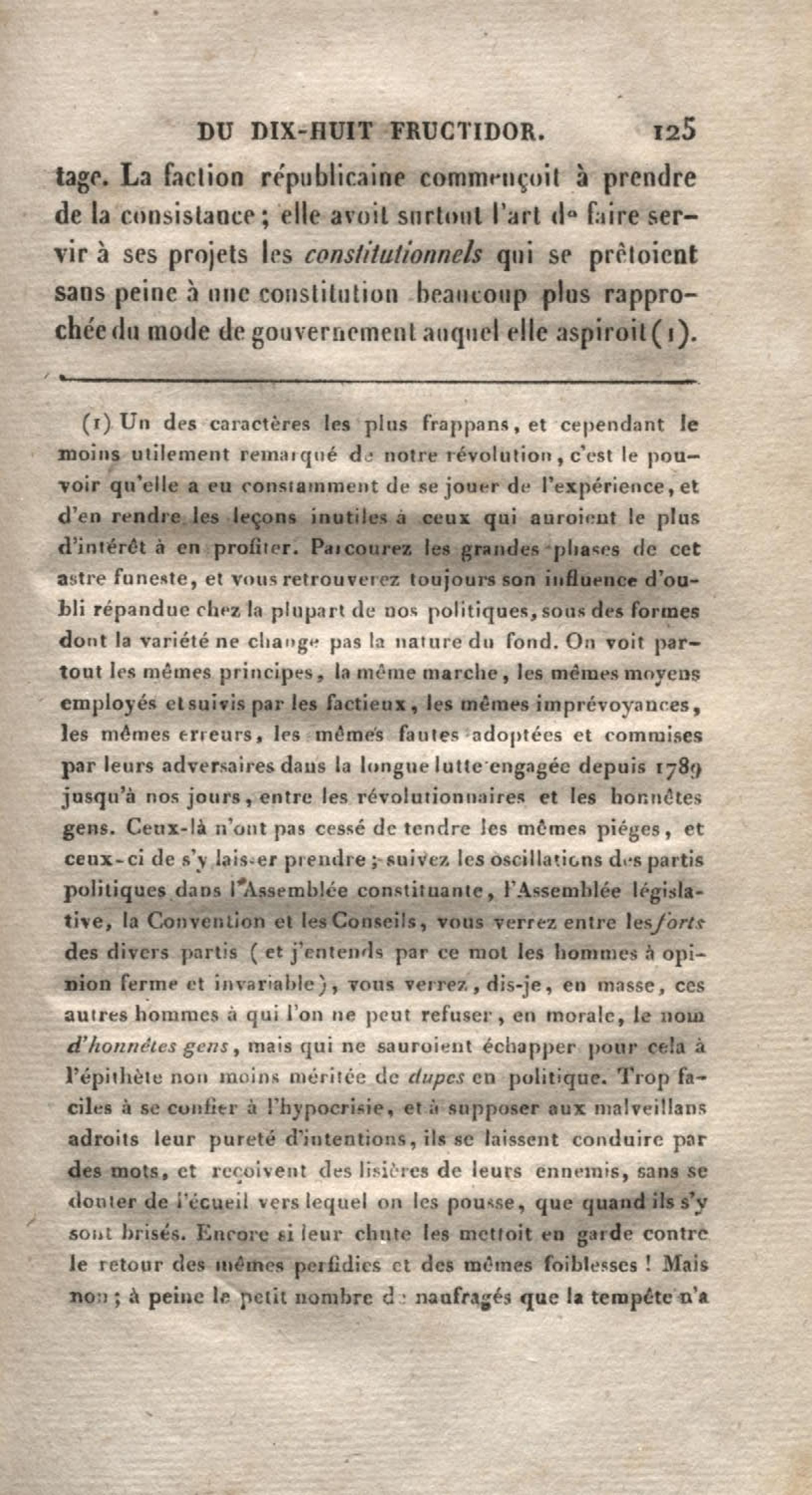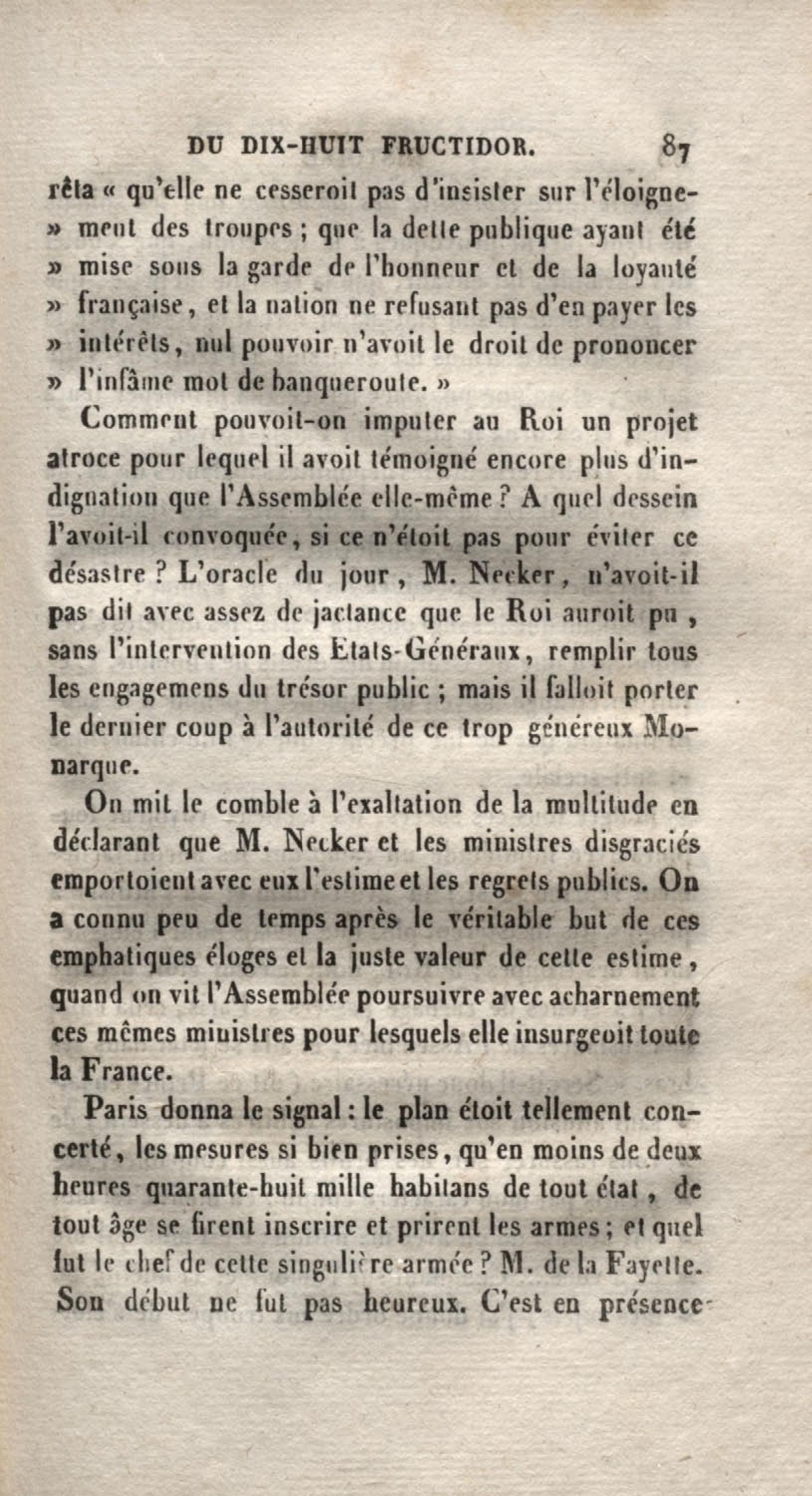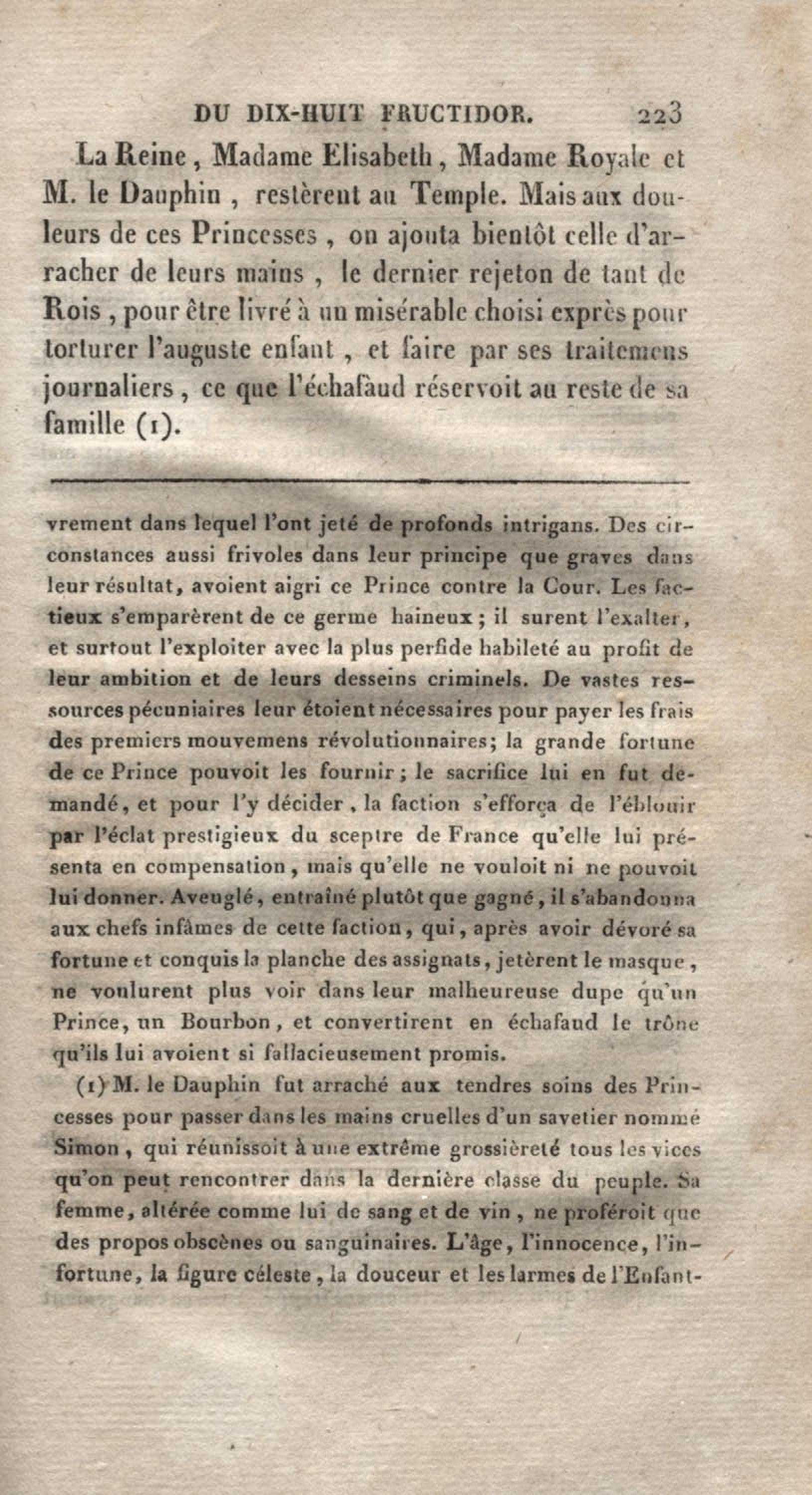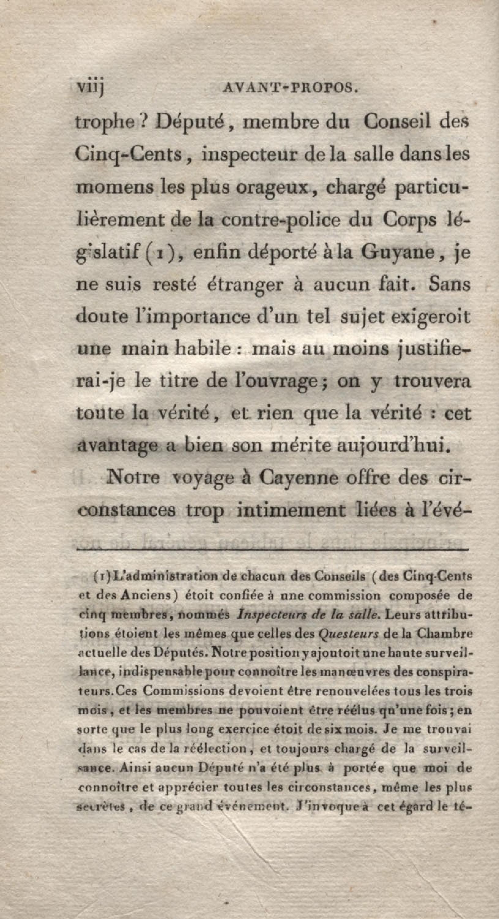 Histoire du dix-huit fructidor ou Mémoires contenant la vérité sur les divers évènemens qui se rattachent à cette conjuration : précédés du tableau des factions qui déchirent la France depuis quarante ans, et terminés par quelques détails sur la Guyane considérées comme colonie. Première partie