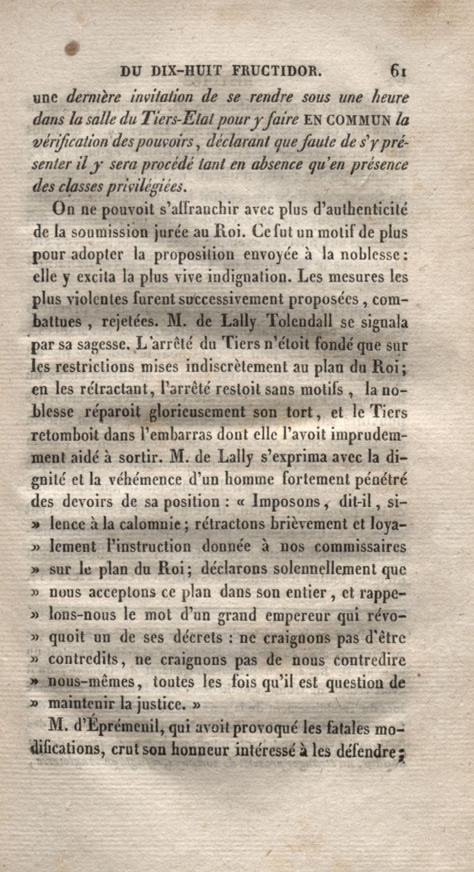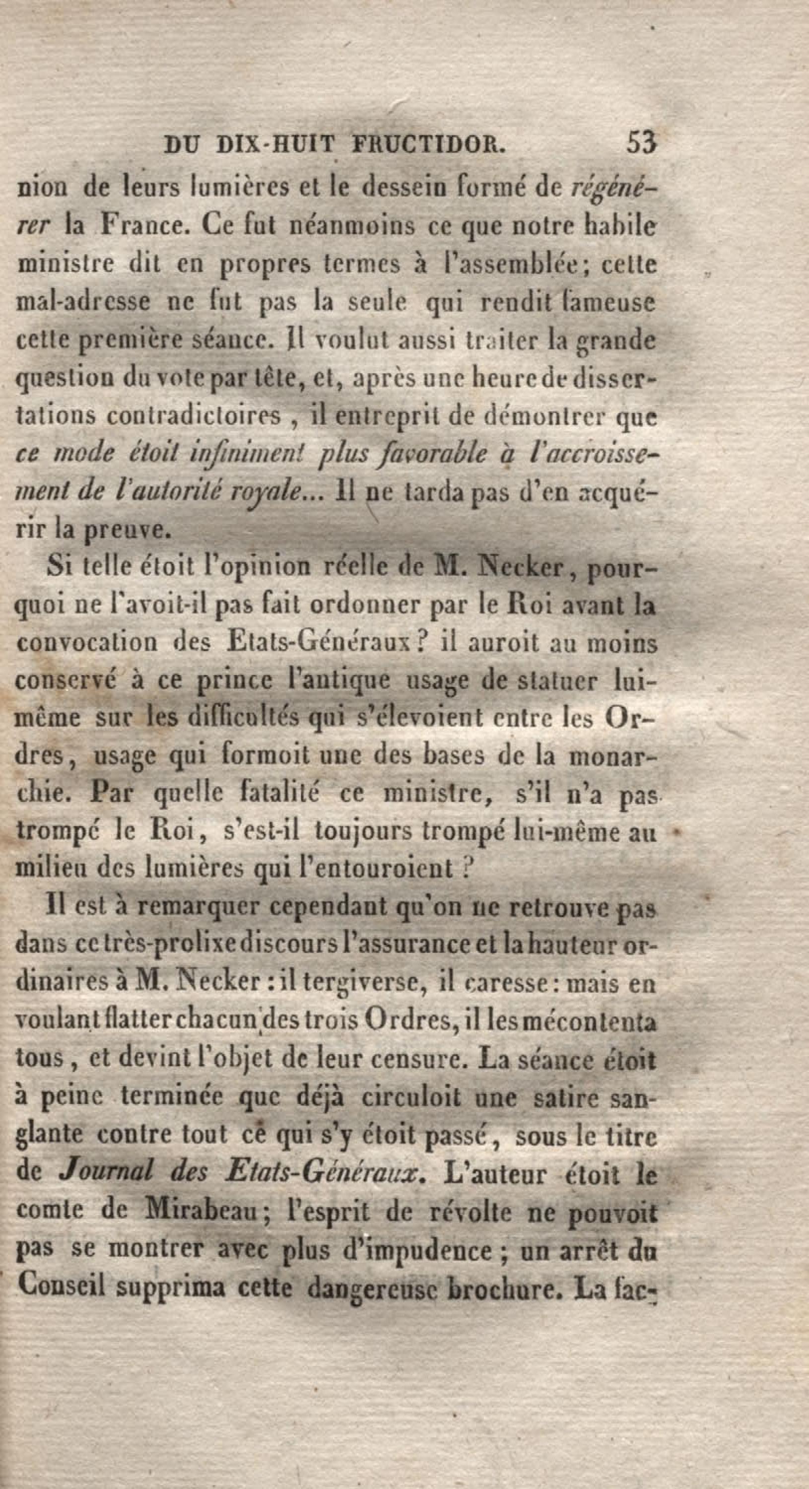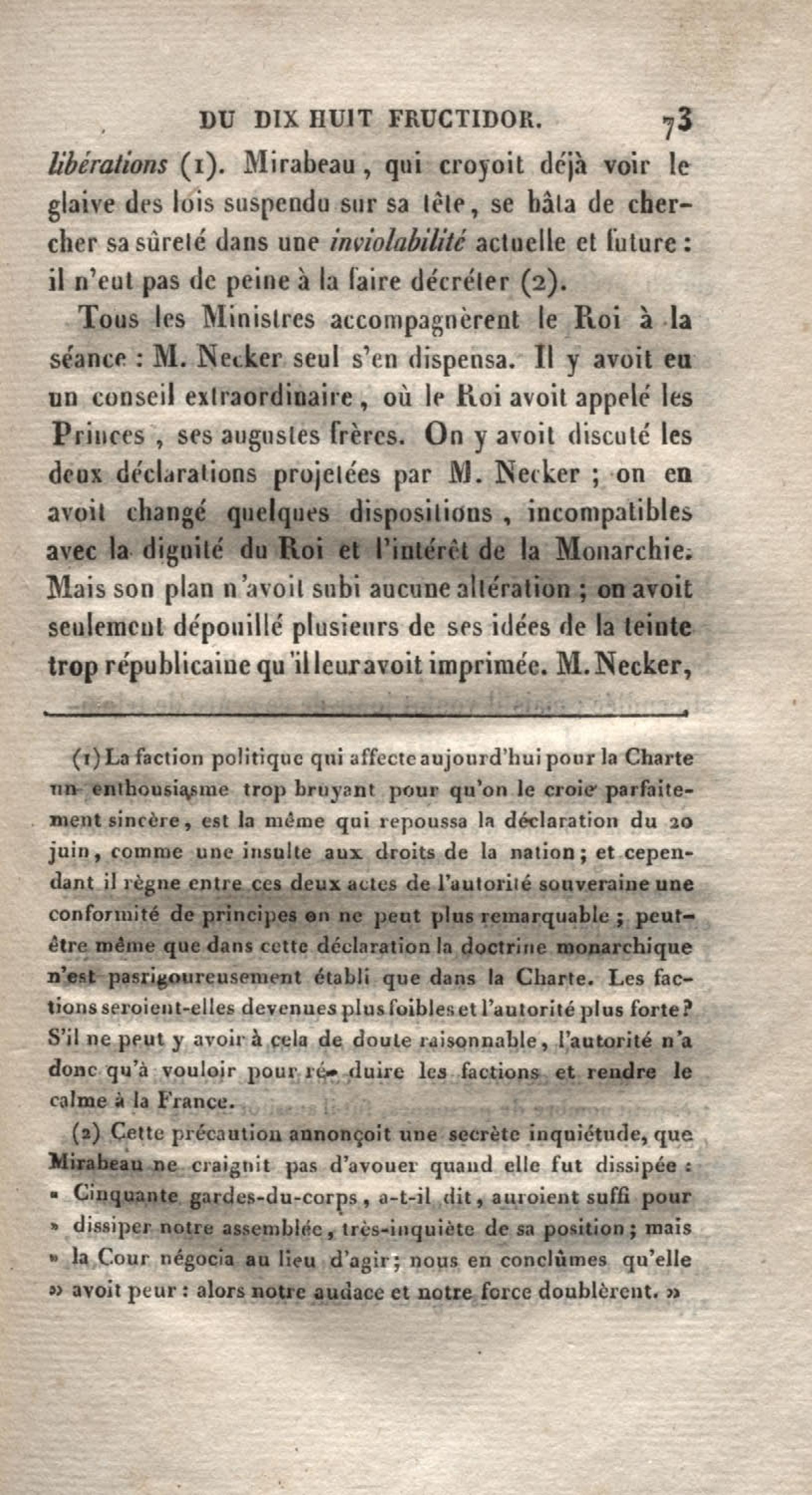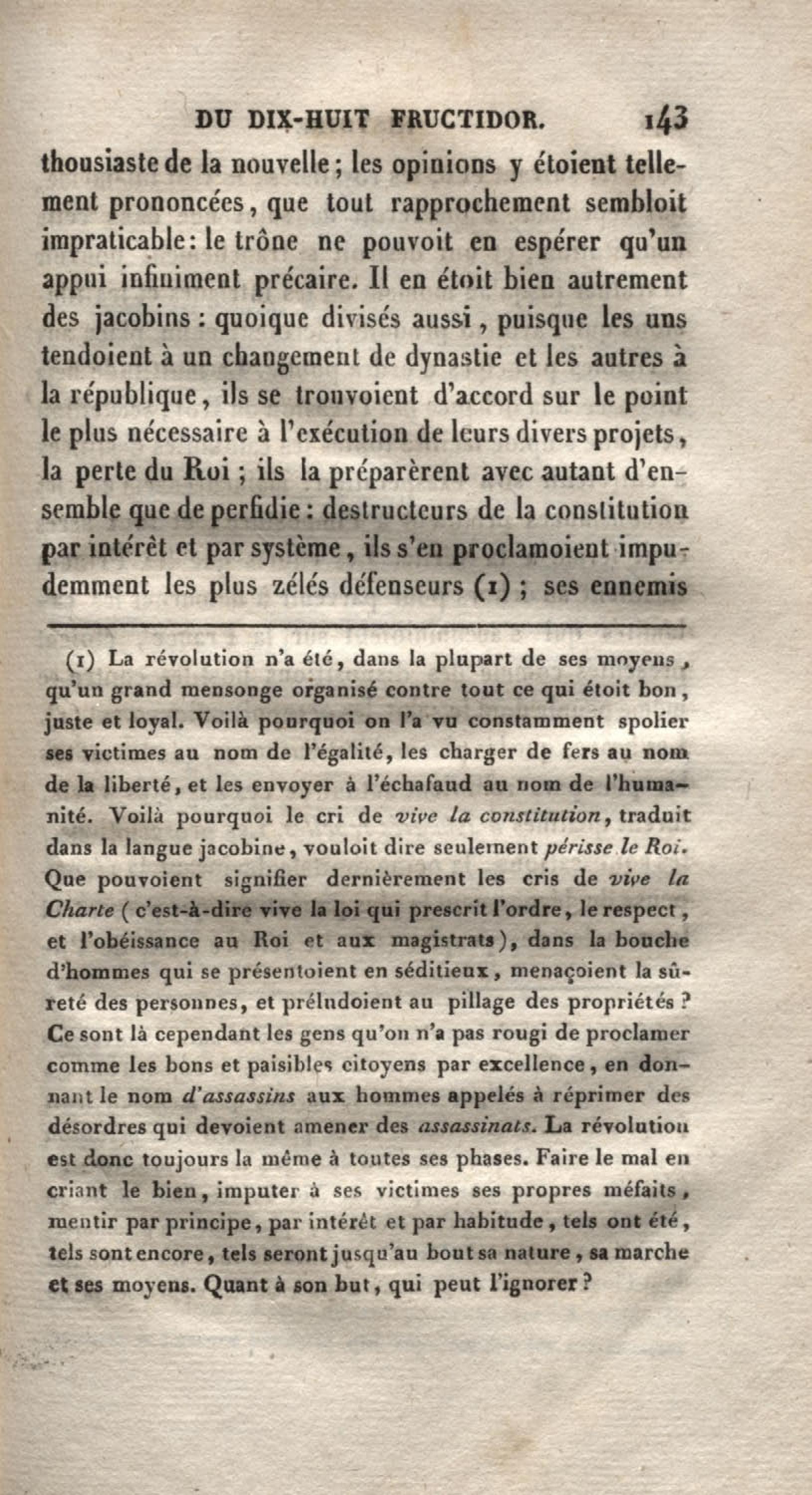 Histoire du dix-huit fructidor ou Mémoires contenant la vérité sur les divers évènemens qui se rattachent à cette conjuration : précédés du tableau des factions qui déchirent la France depuis quarante ans, et terminés par quelques détails sur la Guyane considérées comme colonie. Première partie