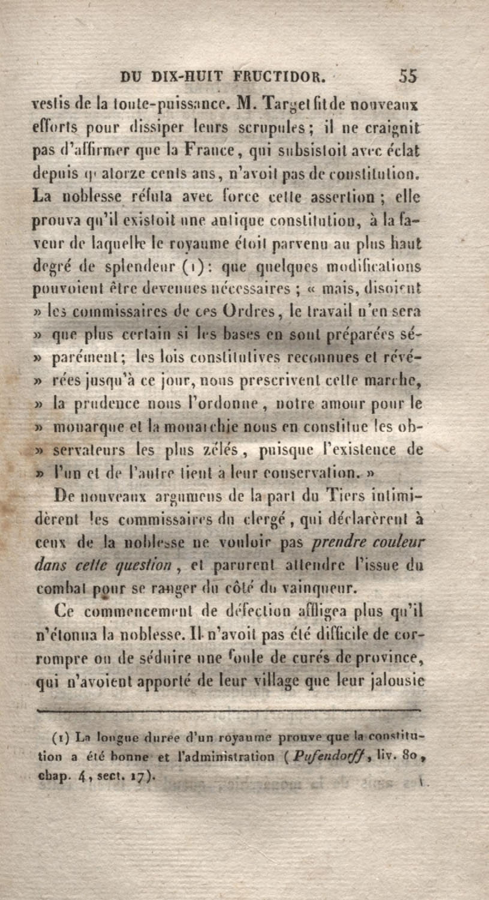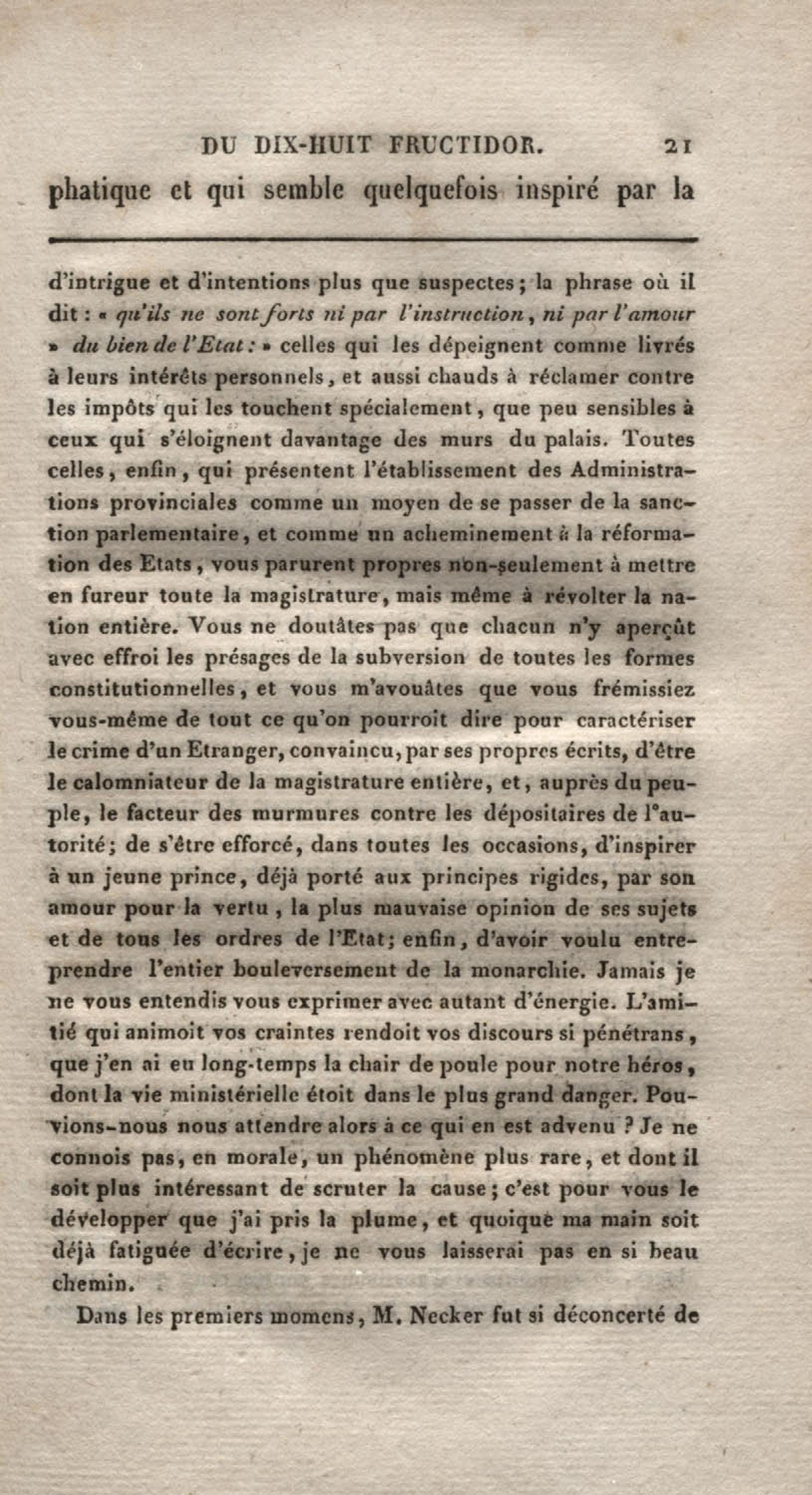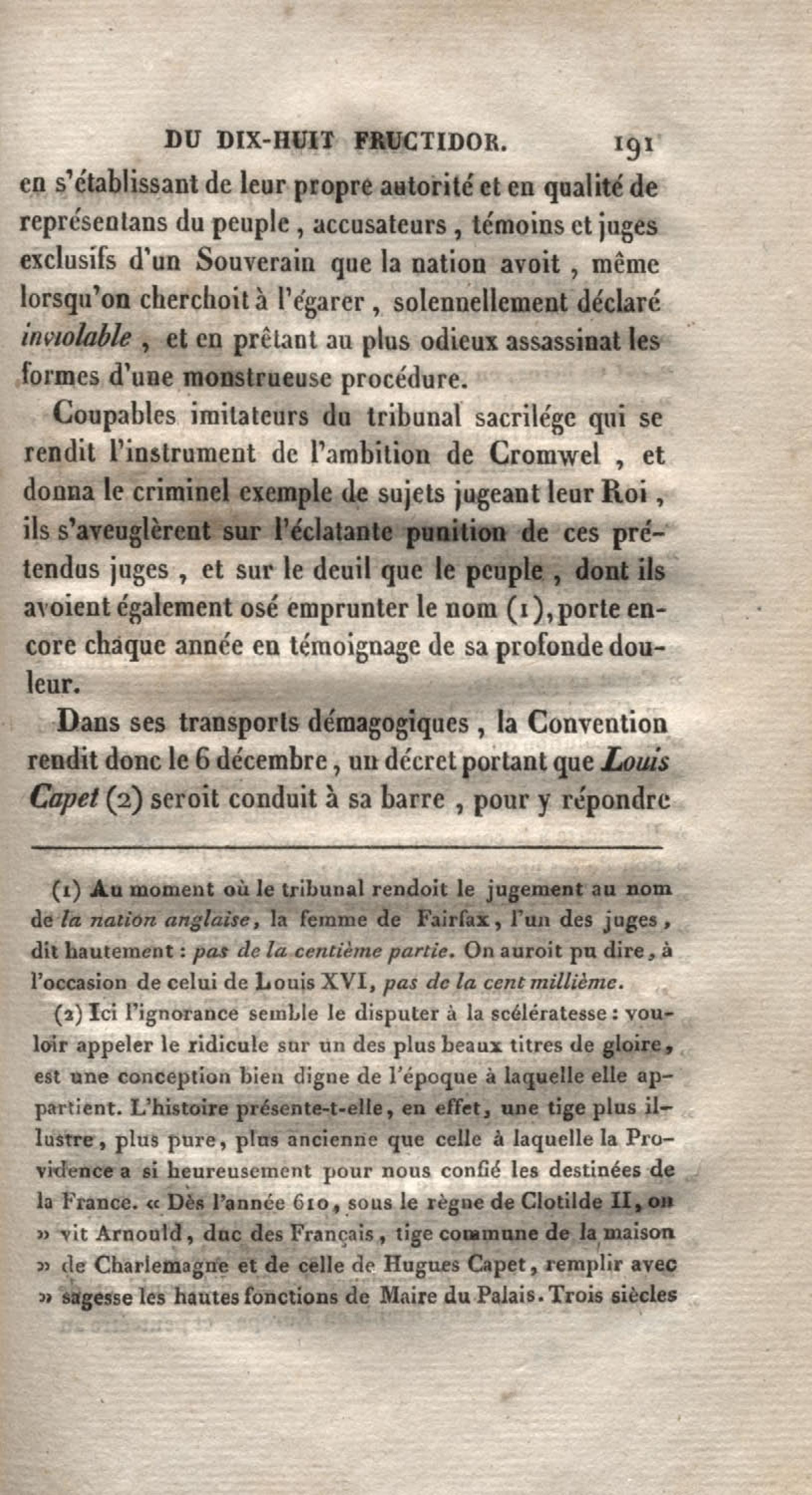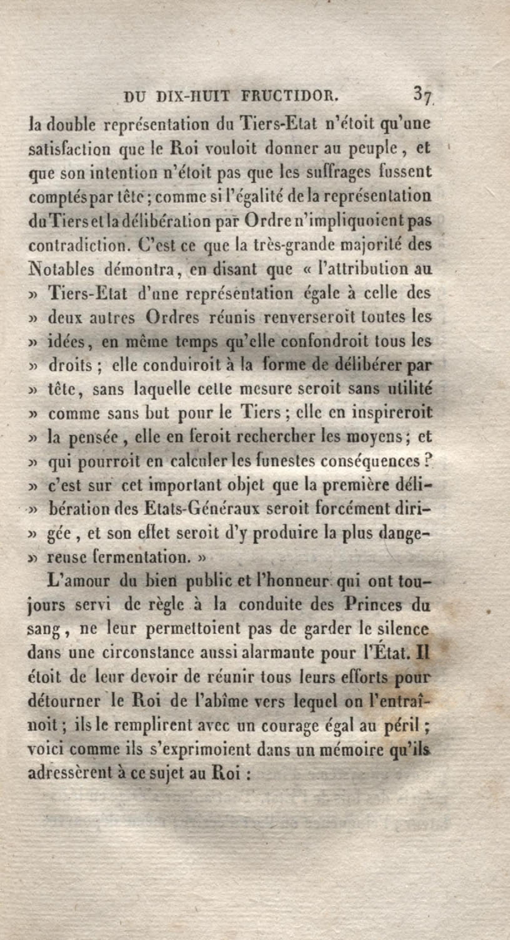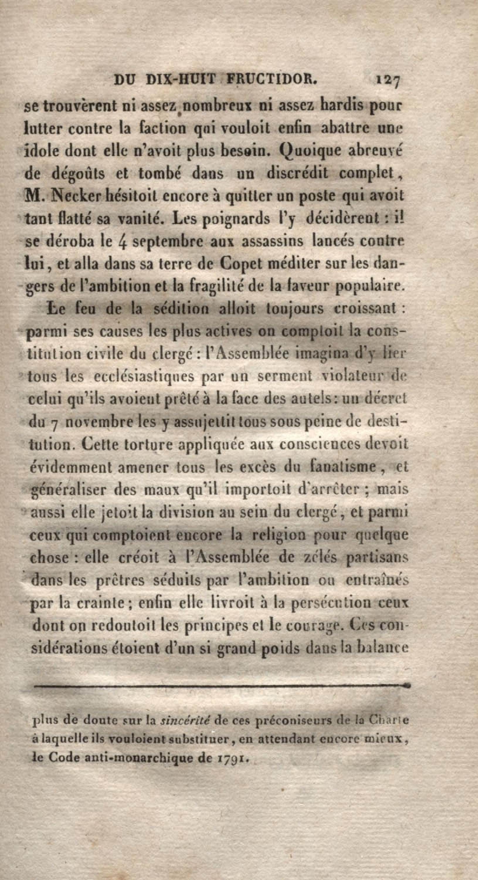 Histoire du dix-huit fructidor ou Mémoires contenant la vérité sur les divers évènemens qui se rattachent à cette conjuration : précédés du tableau des factions qui déchirent la France depuis quarante ans, et terminés par quelques détails sur la Guyane considérées comme colonie. Première partie