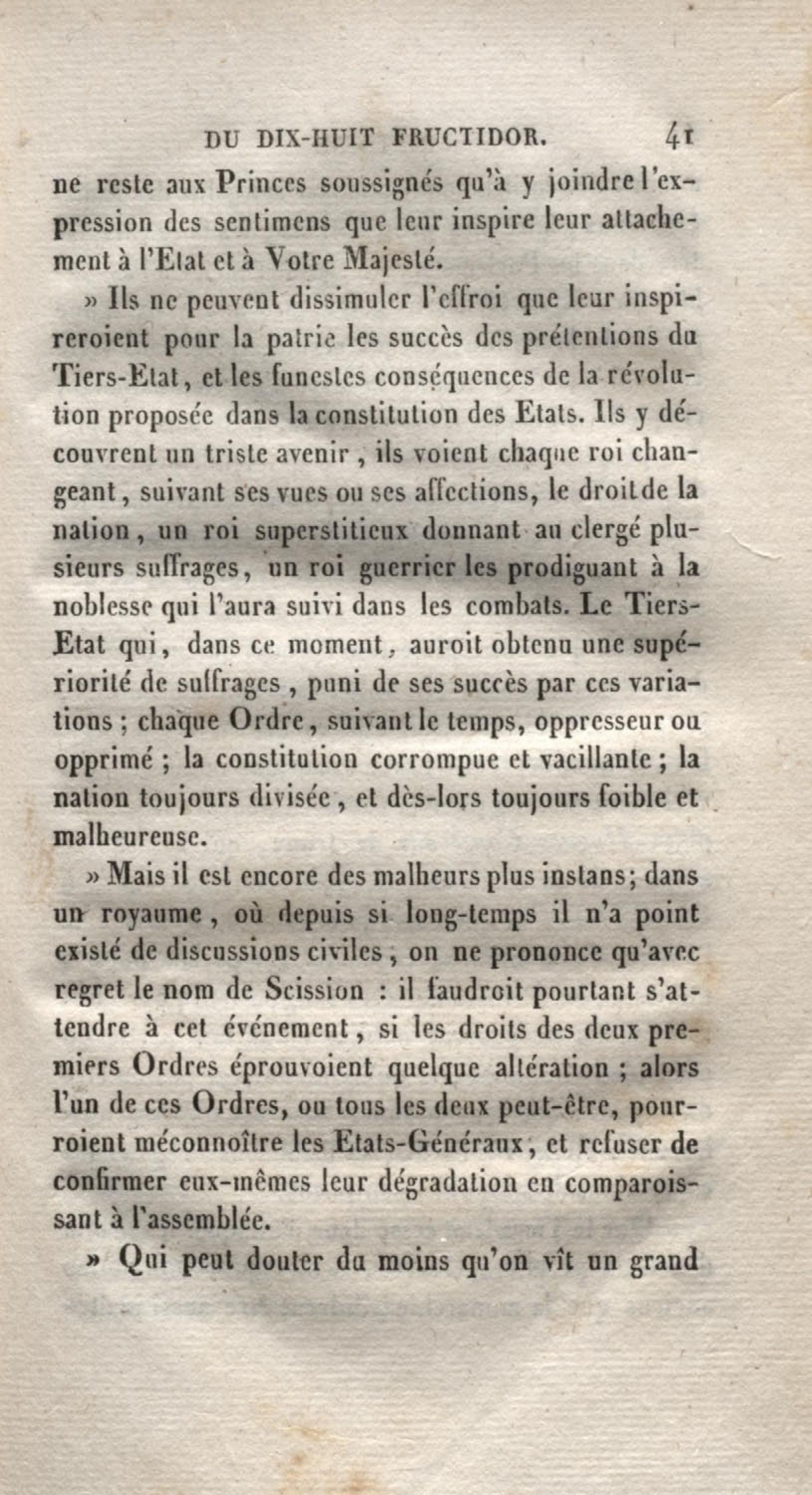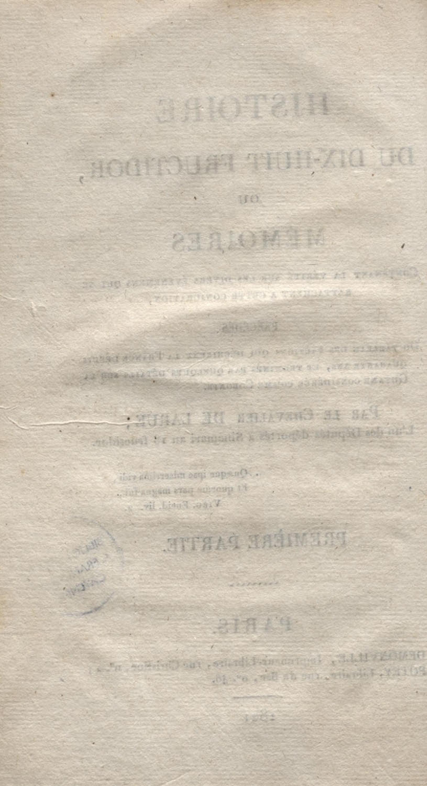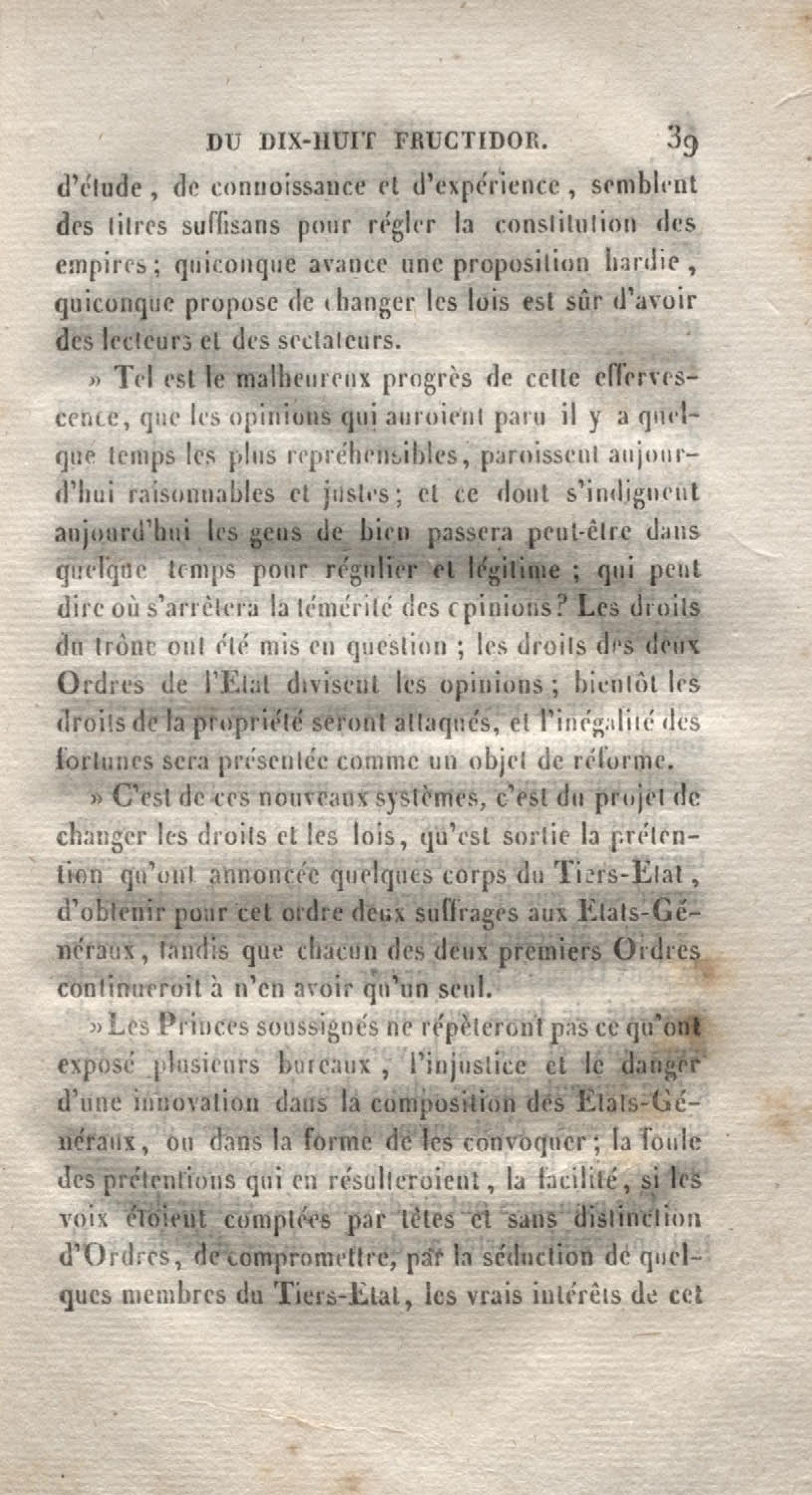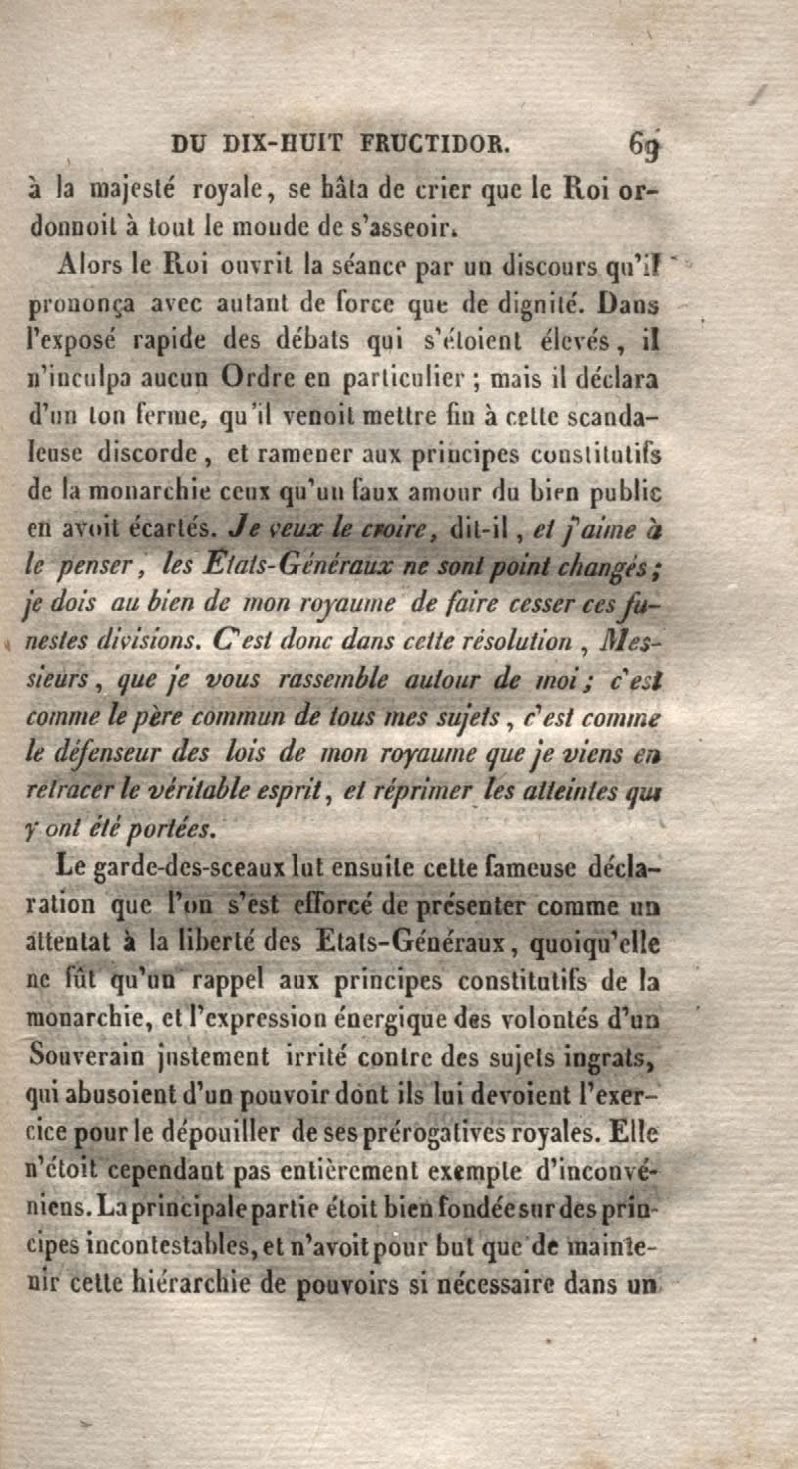 Histoire du dix-huit fructidor ou Mémoires contenant la vérité sur les divers évènemens qui se rattachent à cette conjuration : précédés du tableau des factions qui déchirent la France depuis quarante ans, et terminés par quelques détails sur la Guyane considérées comme colonie. Première partie