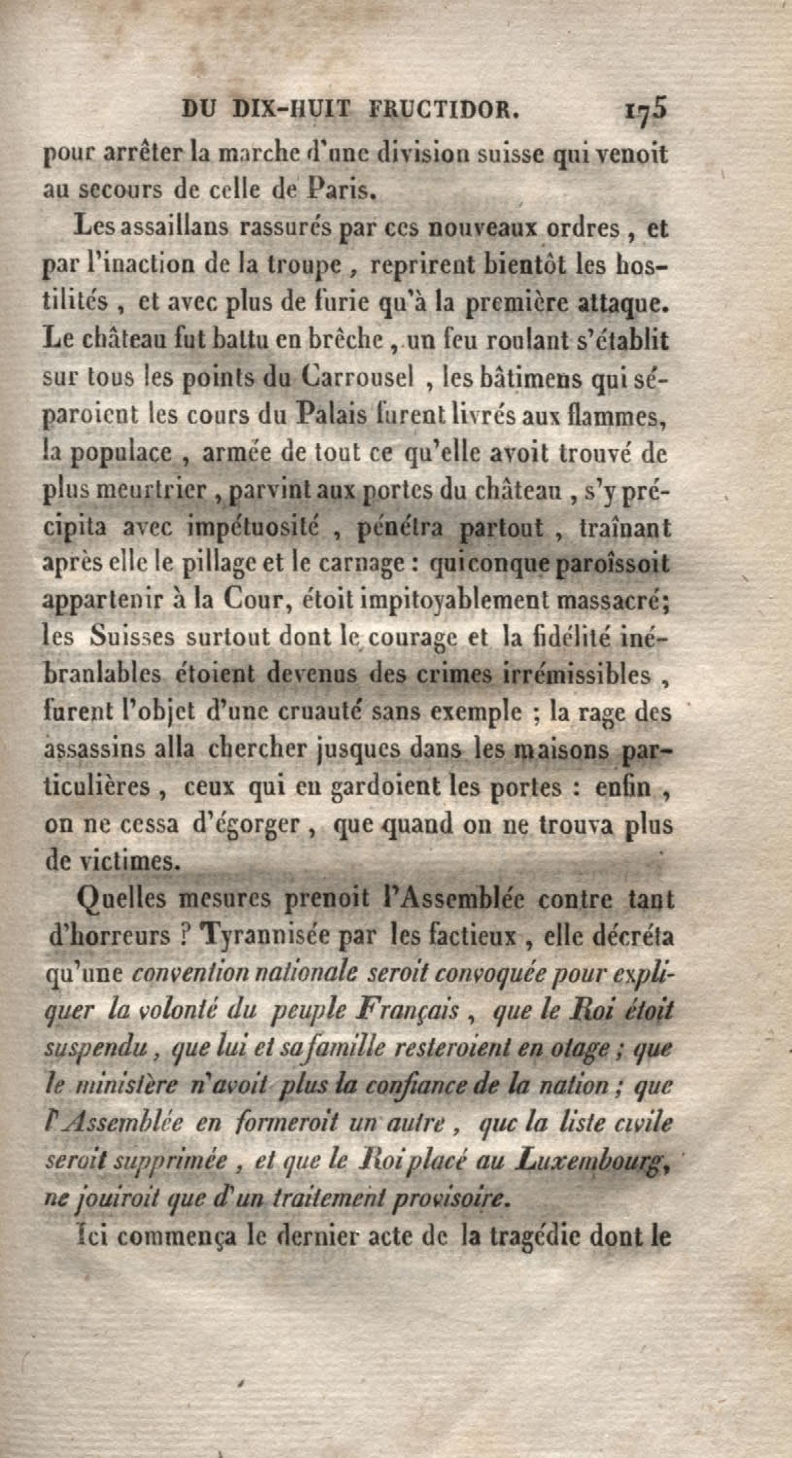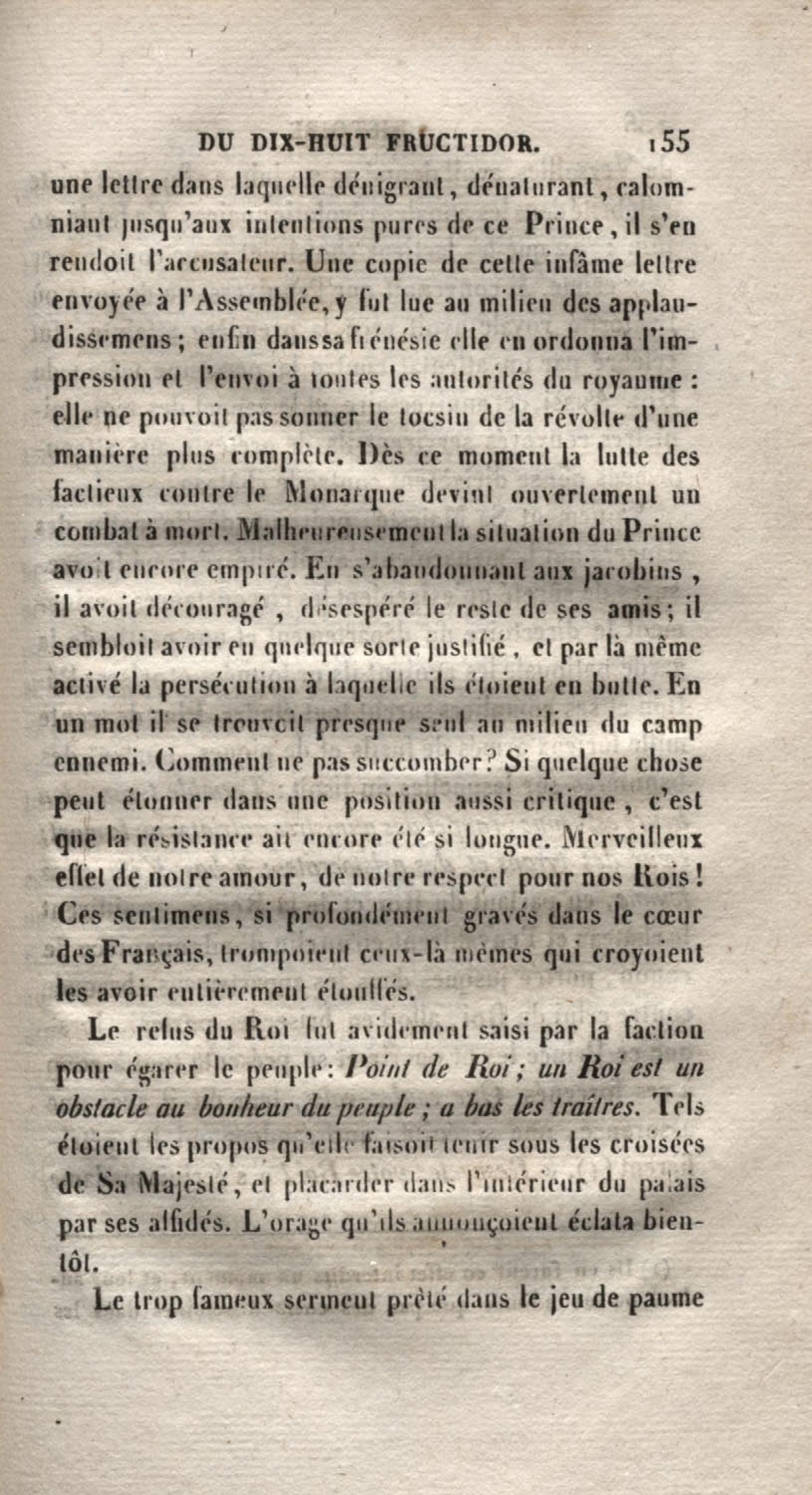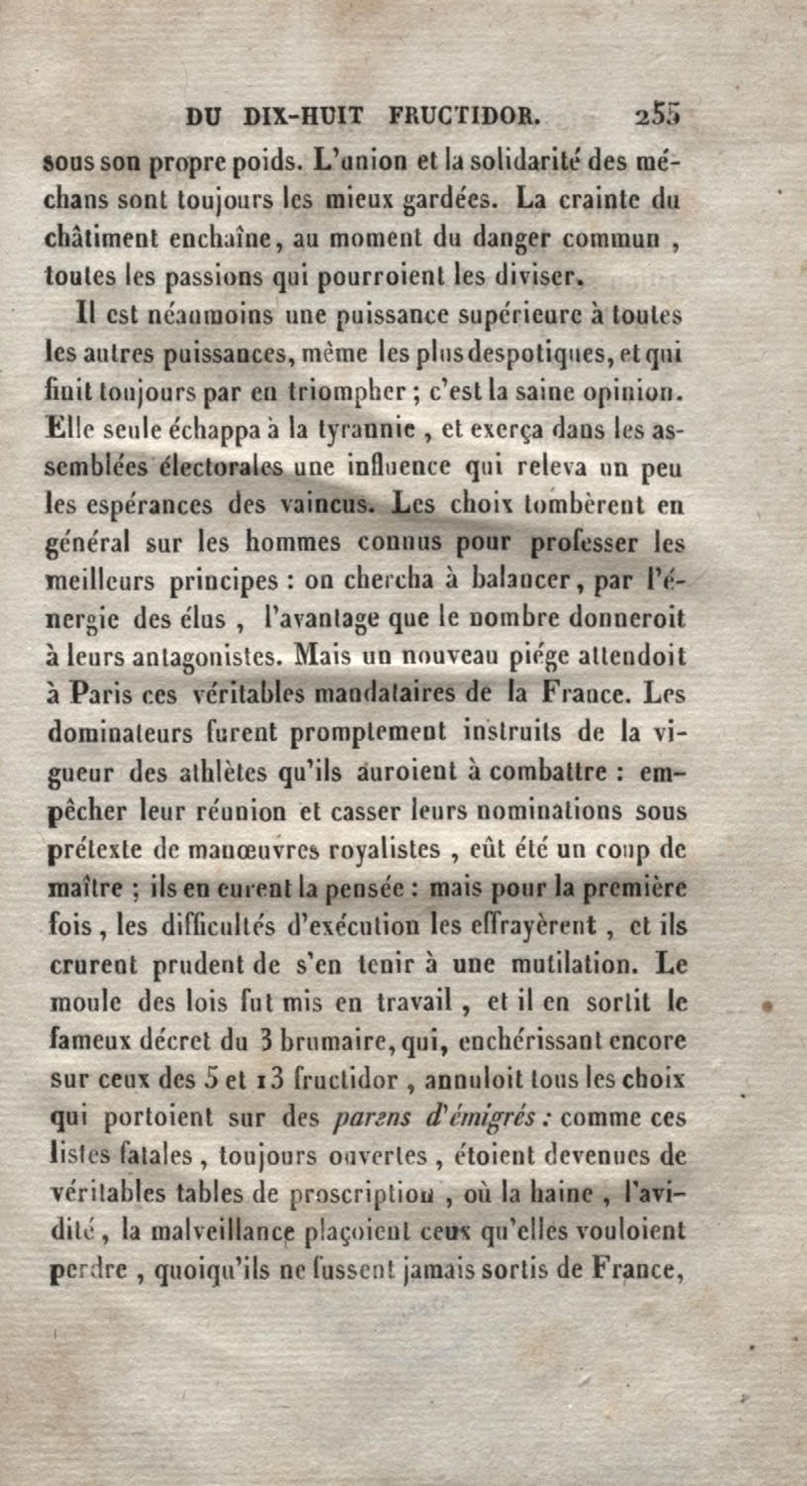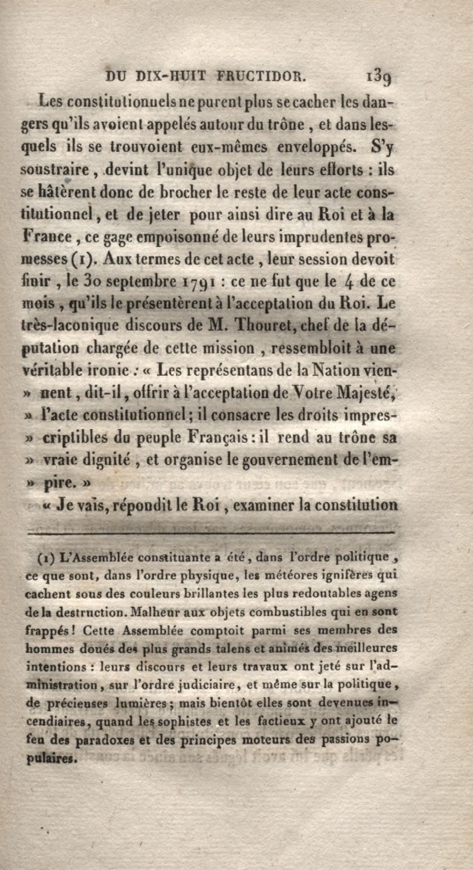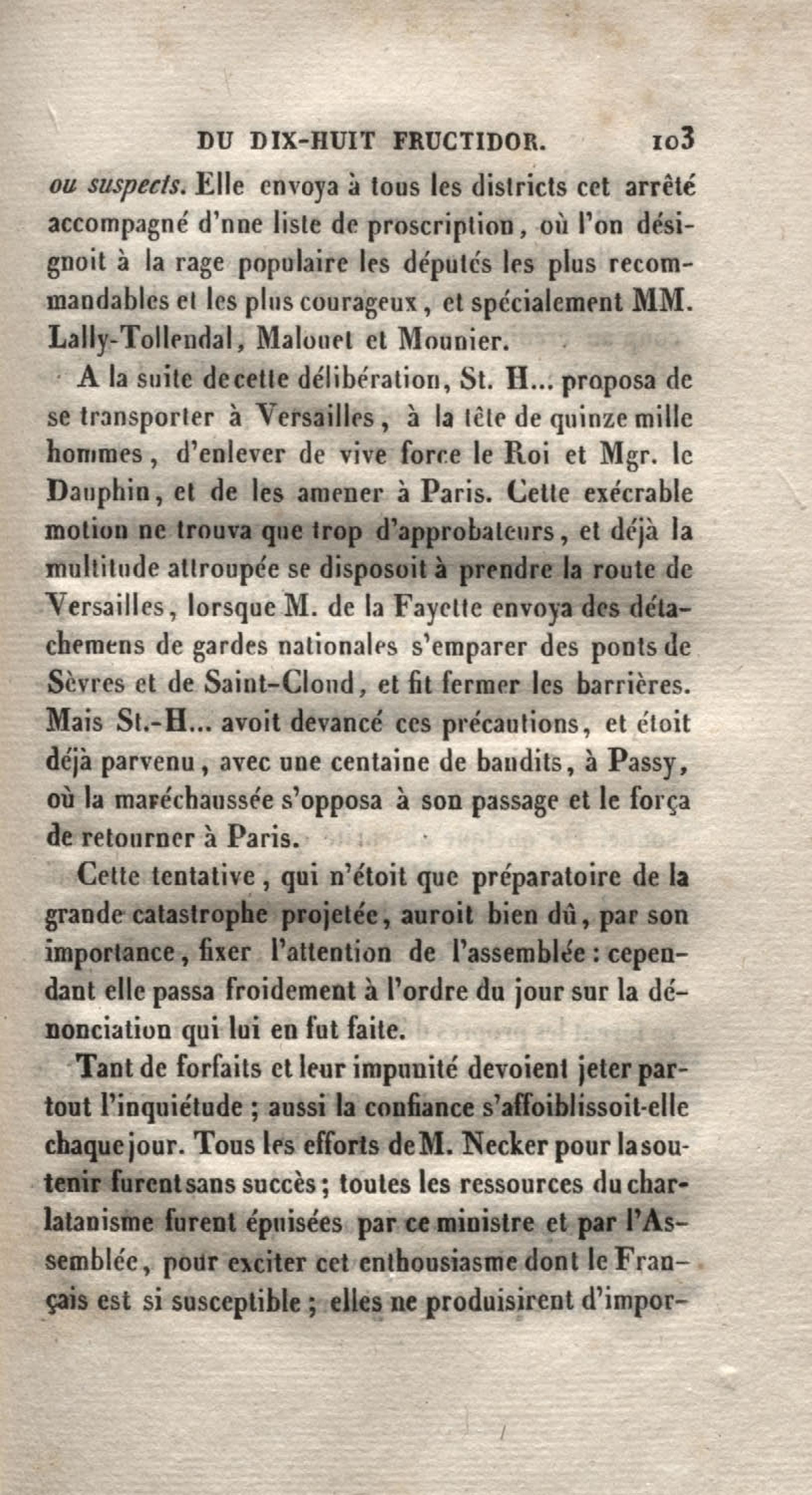 - Histoire du dix-huit fructidor ou Mémoires contenant la vérité sur les divers évènemens qui se rattachent à cette conjuration : précédés du tableau des factions qui déchirent la France depuis quarante ans, et terminés par quelques détails sur la Guyane considérées comme colonie. Première partie
