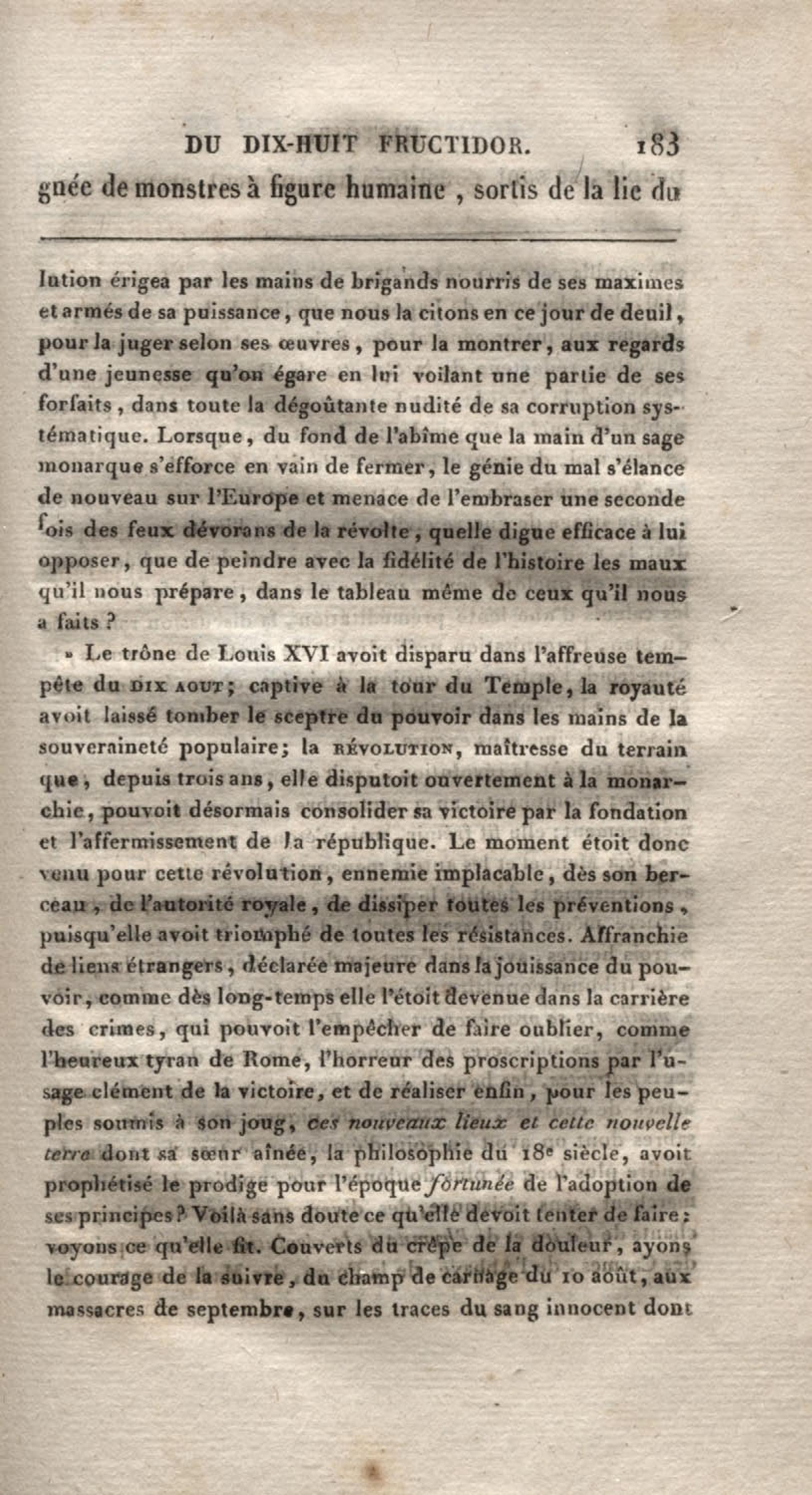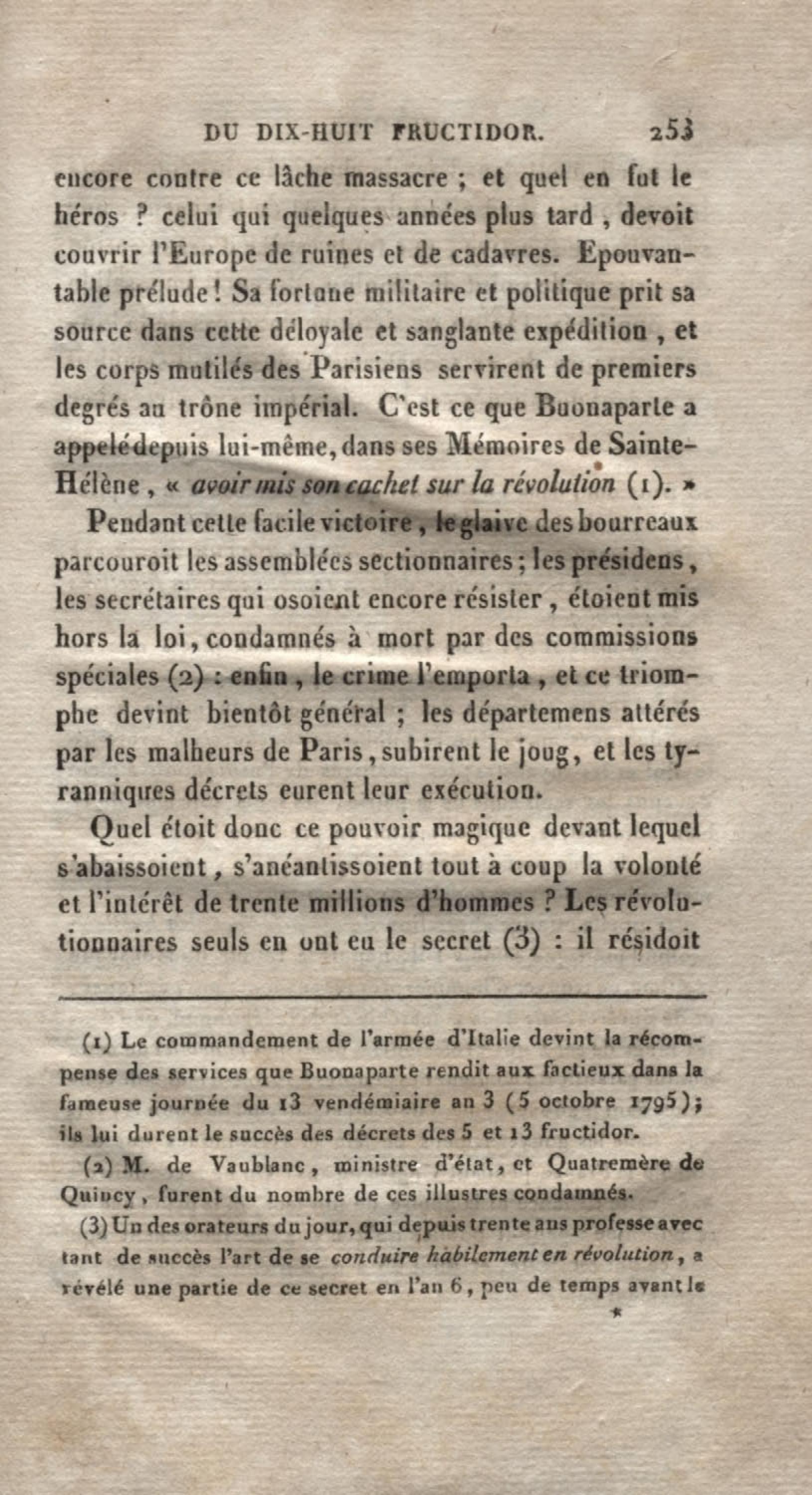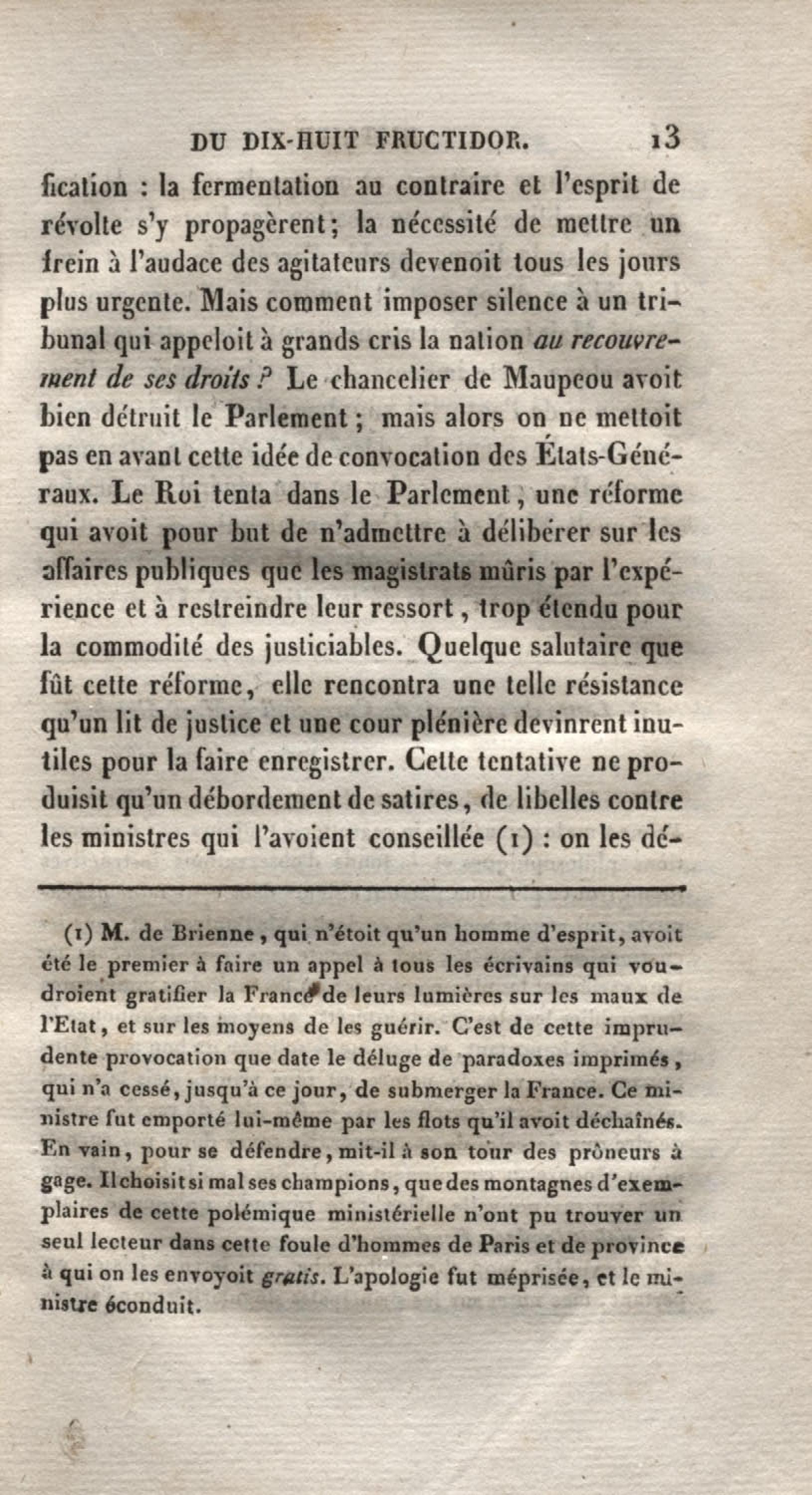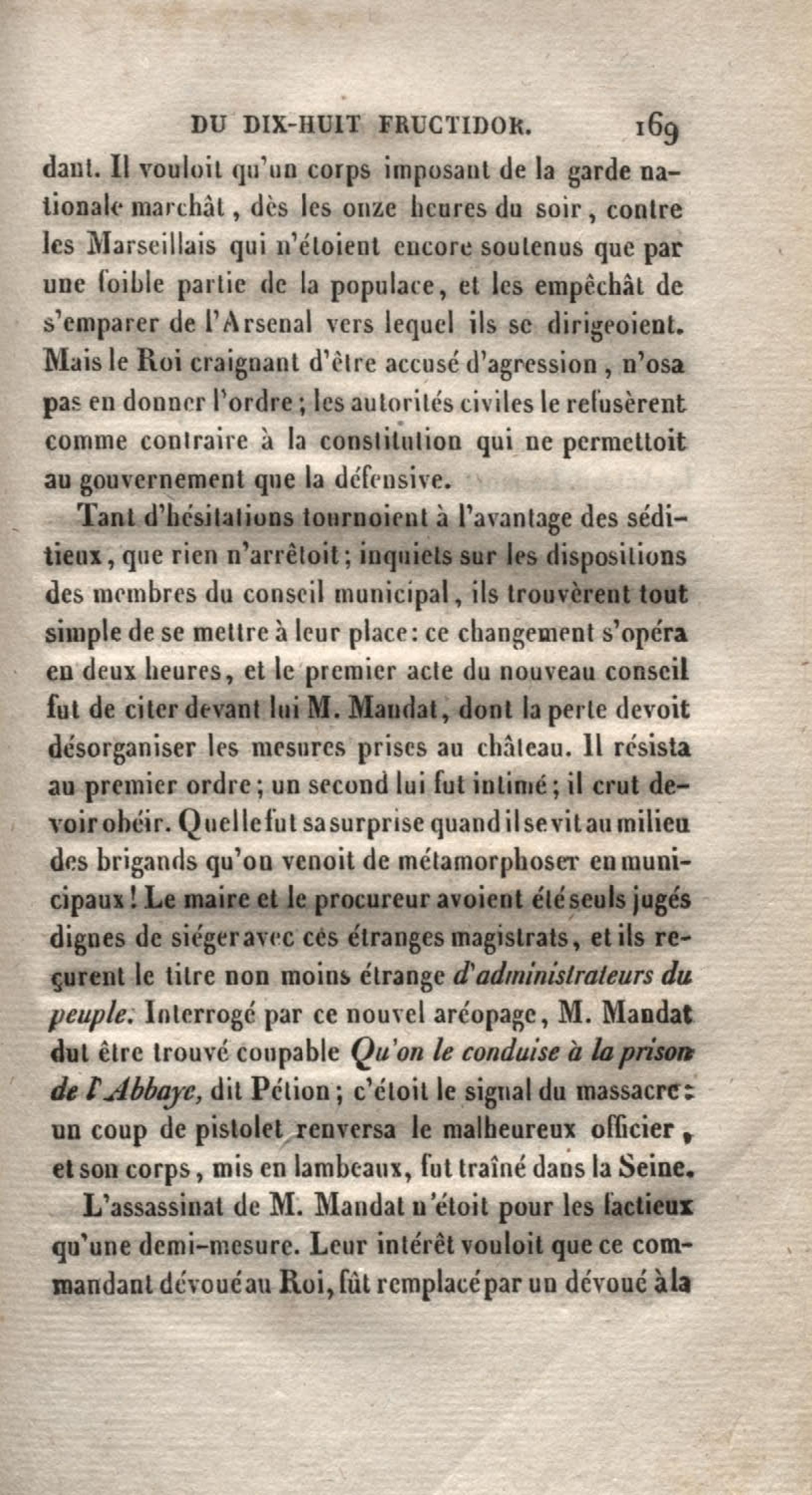 - Histoire du dix-huit fructidor ou Mémoires contenant la vérité sur les divers évènemens qui se rattachent à cette conjuration : précédés du tableau des factions qui déchirent la France depuis quarante ans, et terminés par quelques détails sur la Guyane considérées comme colonie. Première partie