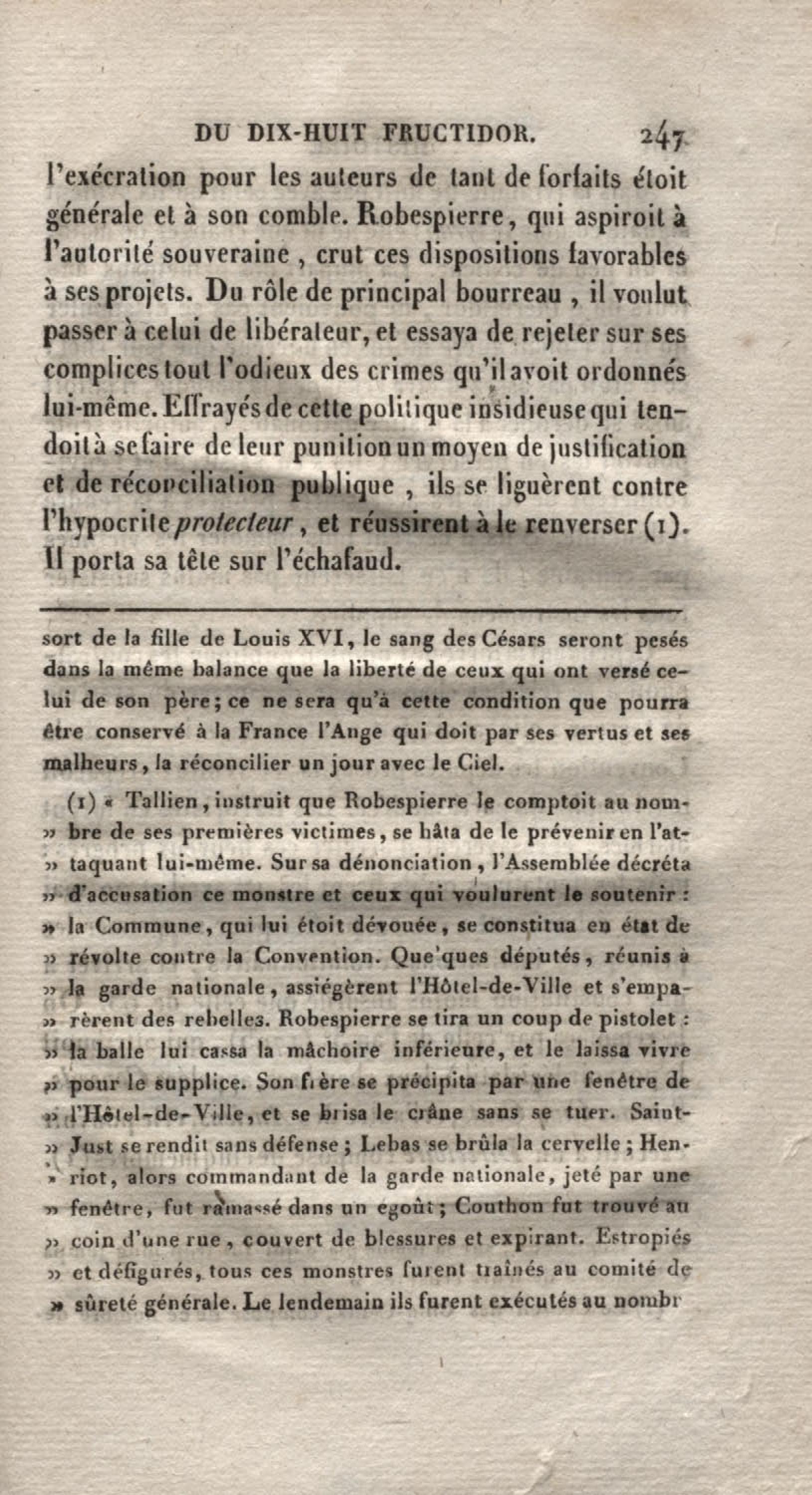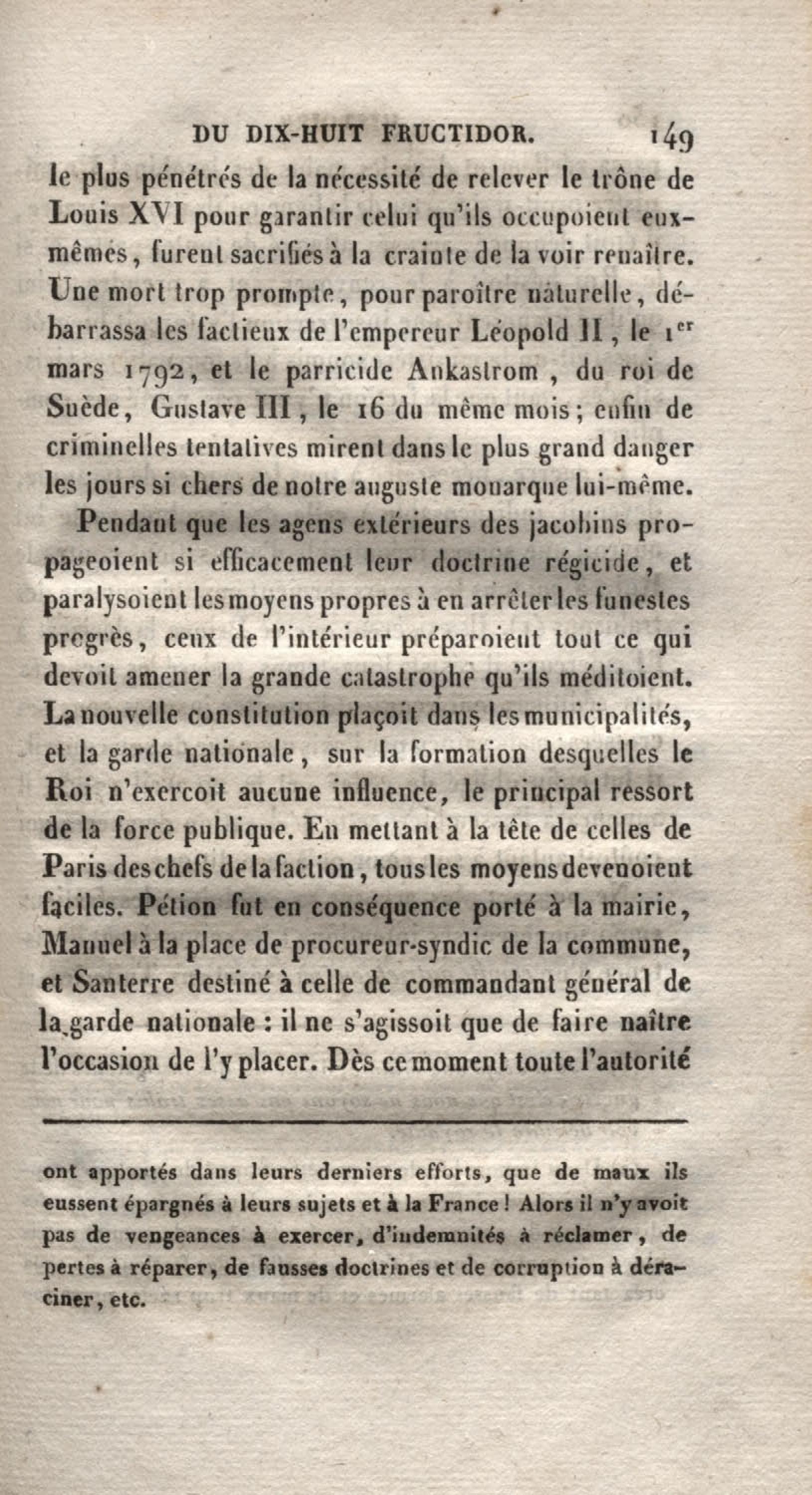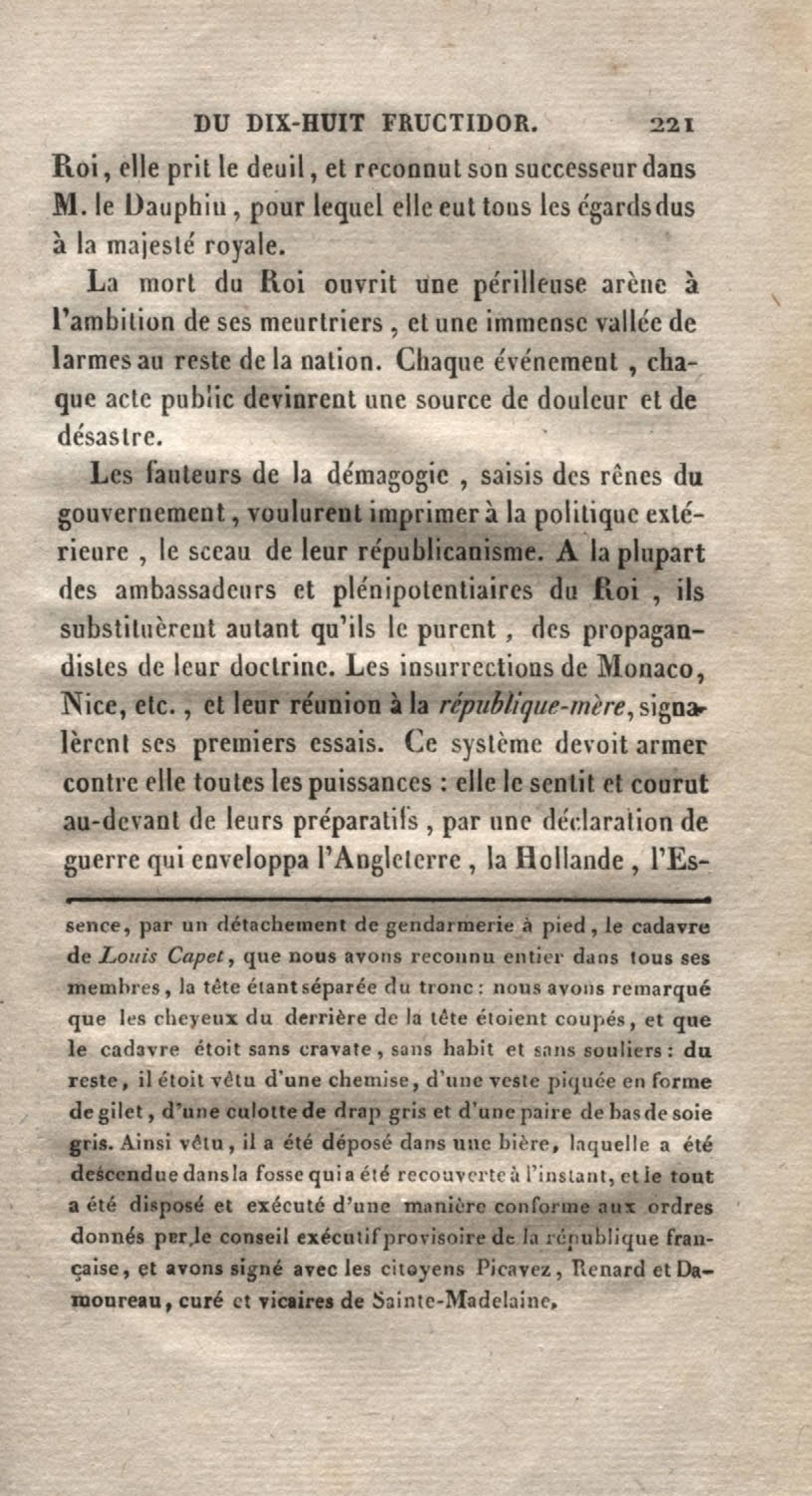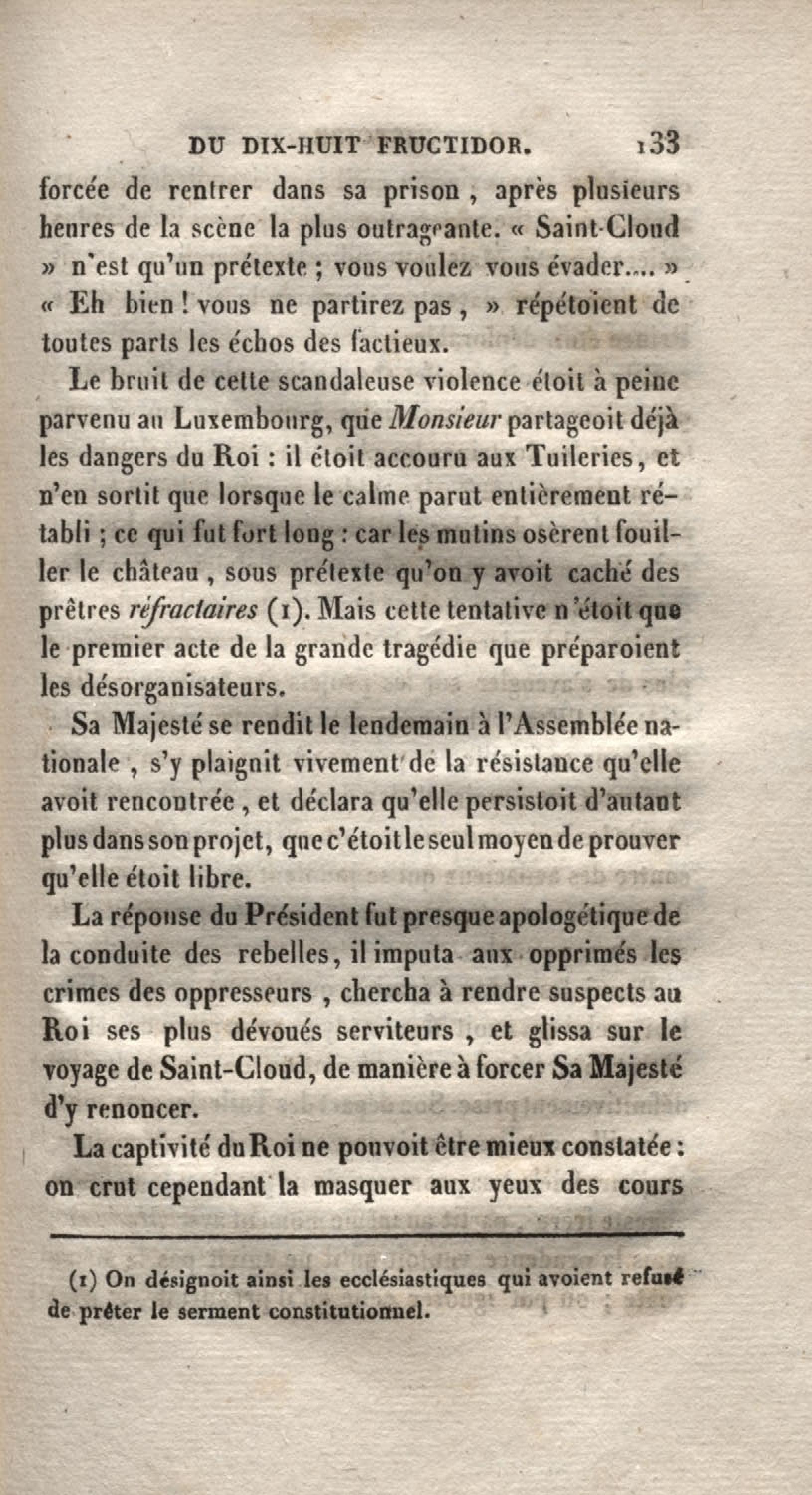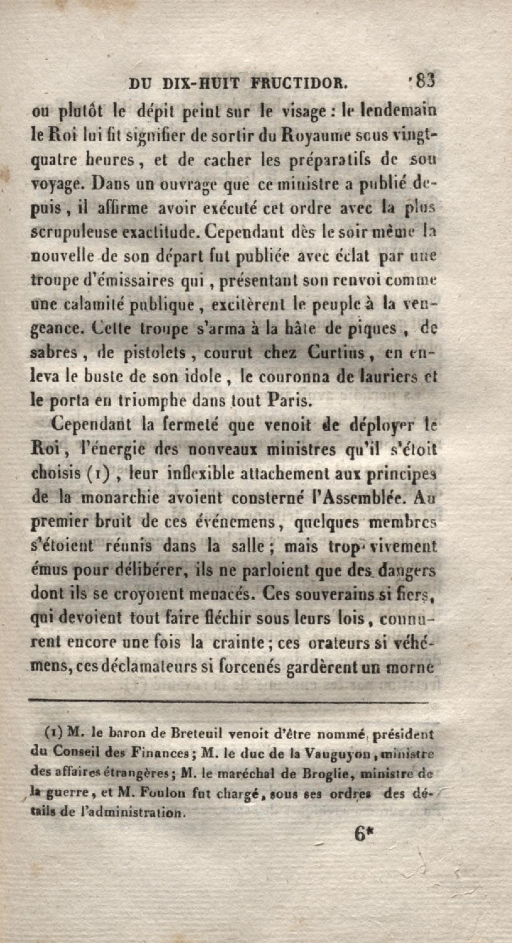 - Histoire du dix-huit fructidor ou Mémoires contenant la vérité sur les divers évènemens qui se rattachent à cette conjuration : précédés du tableau des factions qui déchirent la France depuis quarante ans, et terminés par quelques détails sur la Guyane considérées comme colonie. Première partie