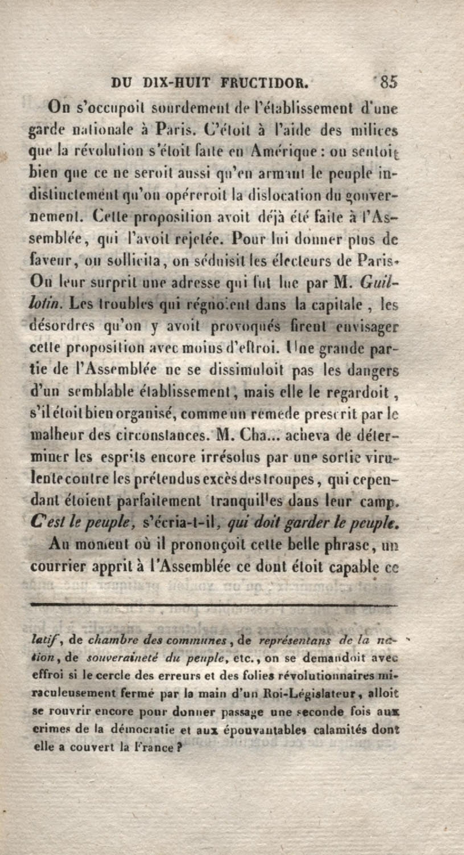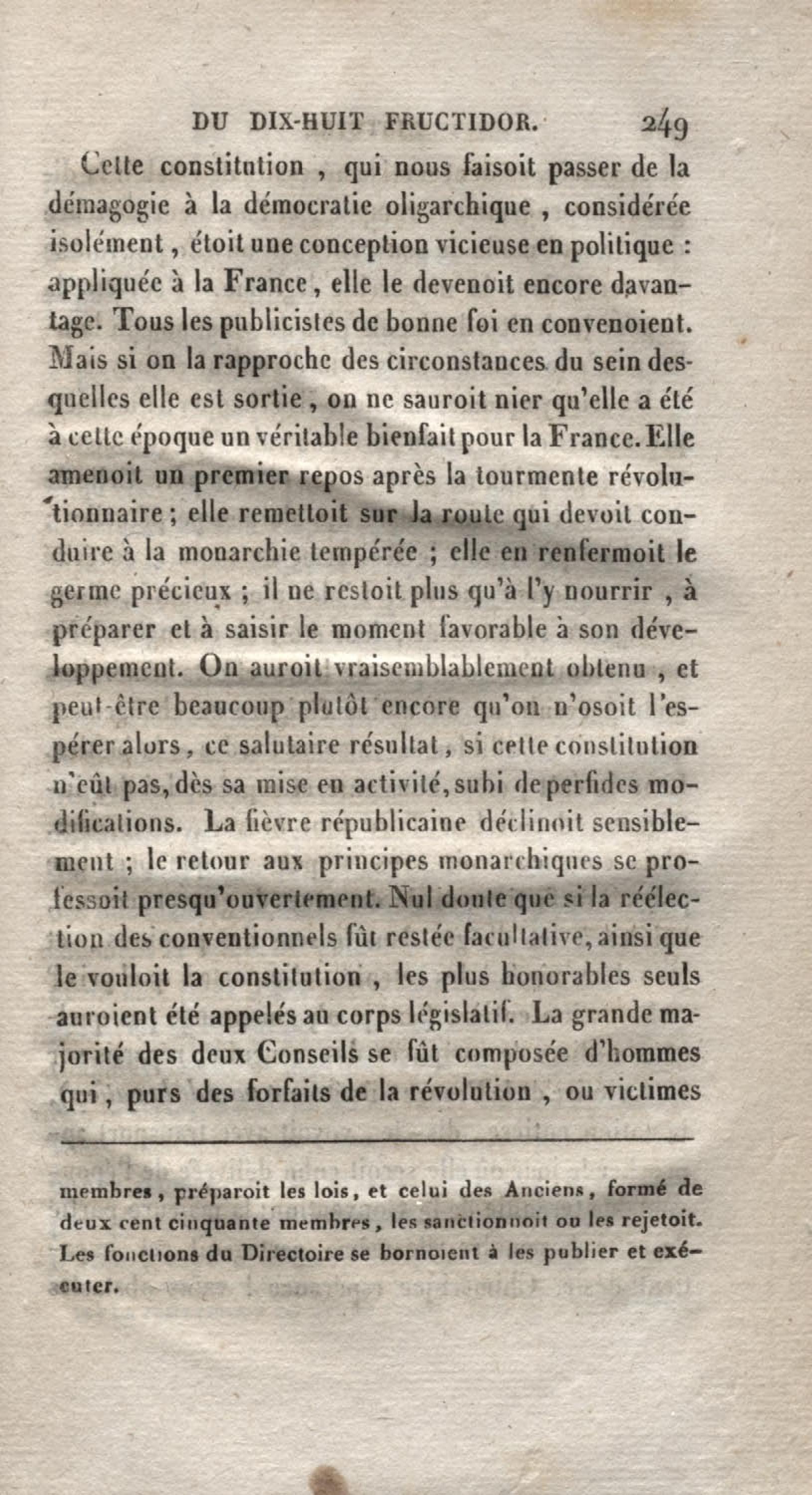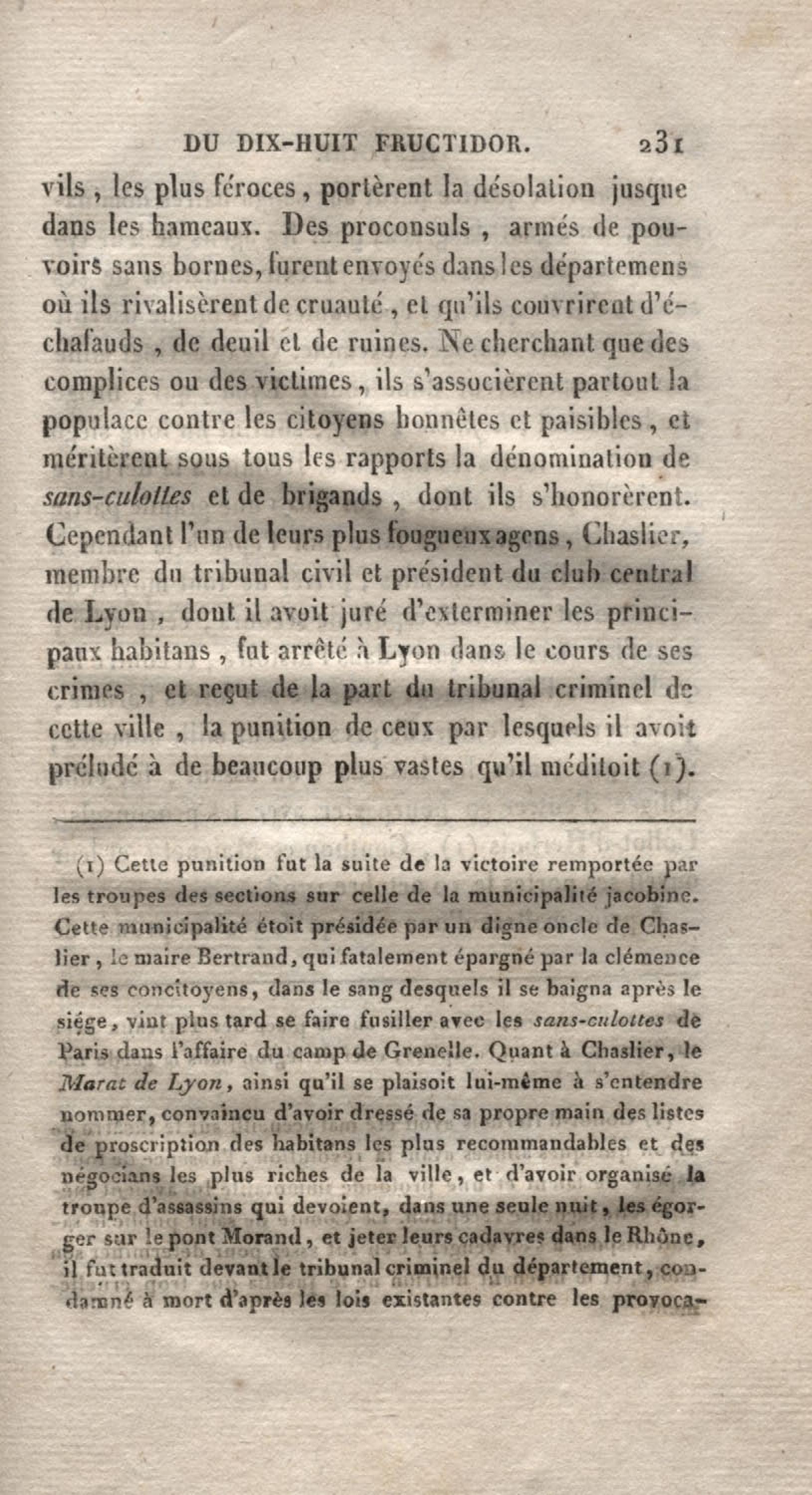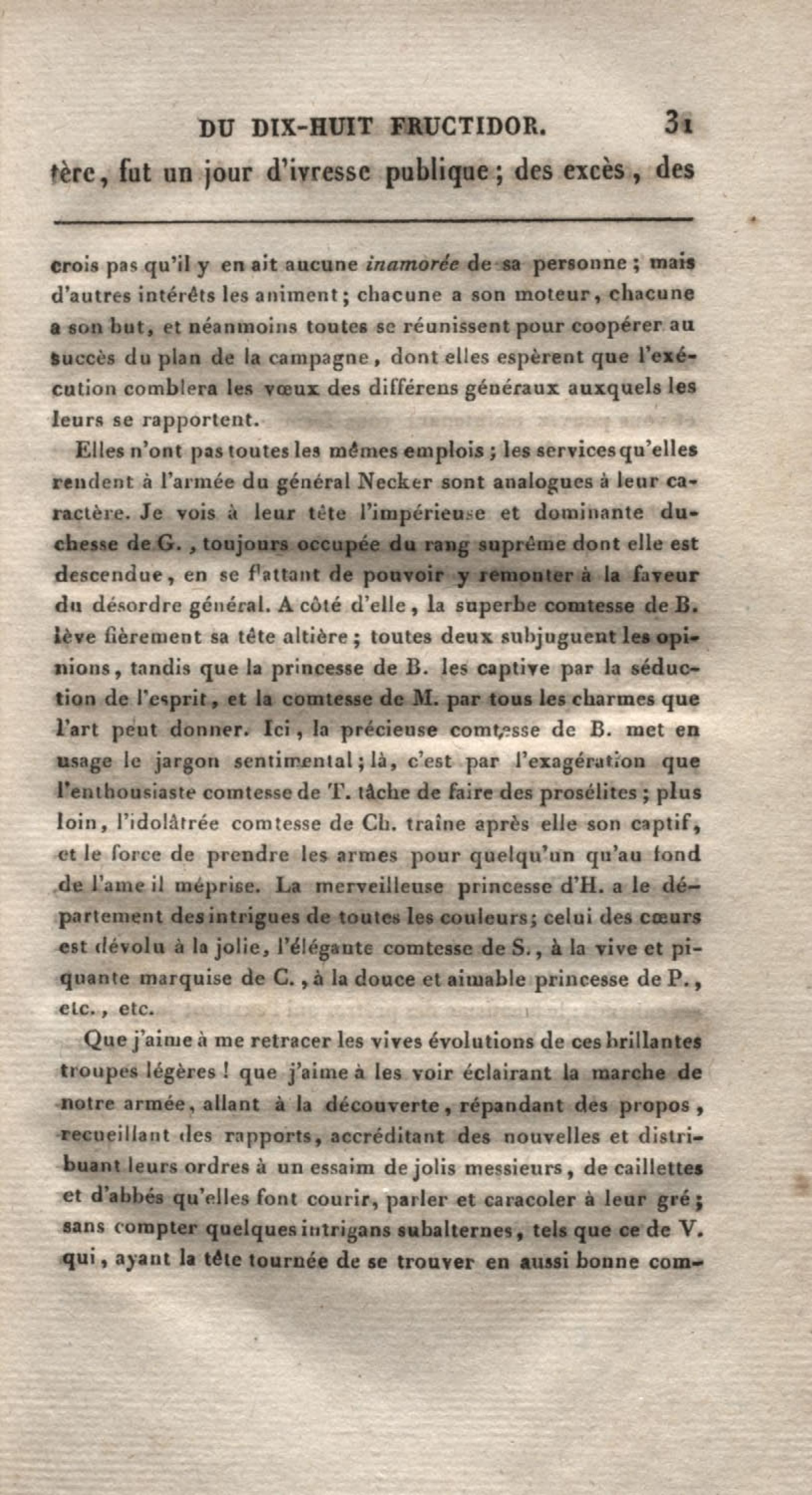 - Histoire du dix-huit fructidor ou Mémoires contenant la vérité sur les divers évènemens qui se rattachent à cette conjuration : précédés du tableau des factions qui déchirent la France depuis quarante ans, et terminés par quelques détails sur la Guyane considérées comme colonie. Première partie