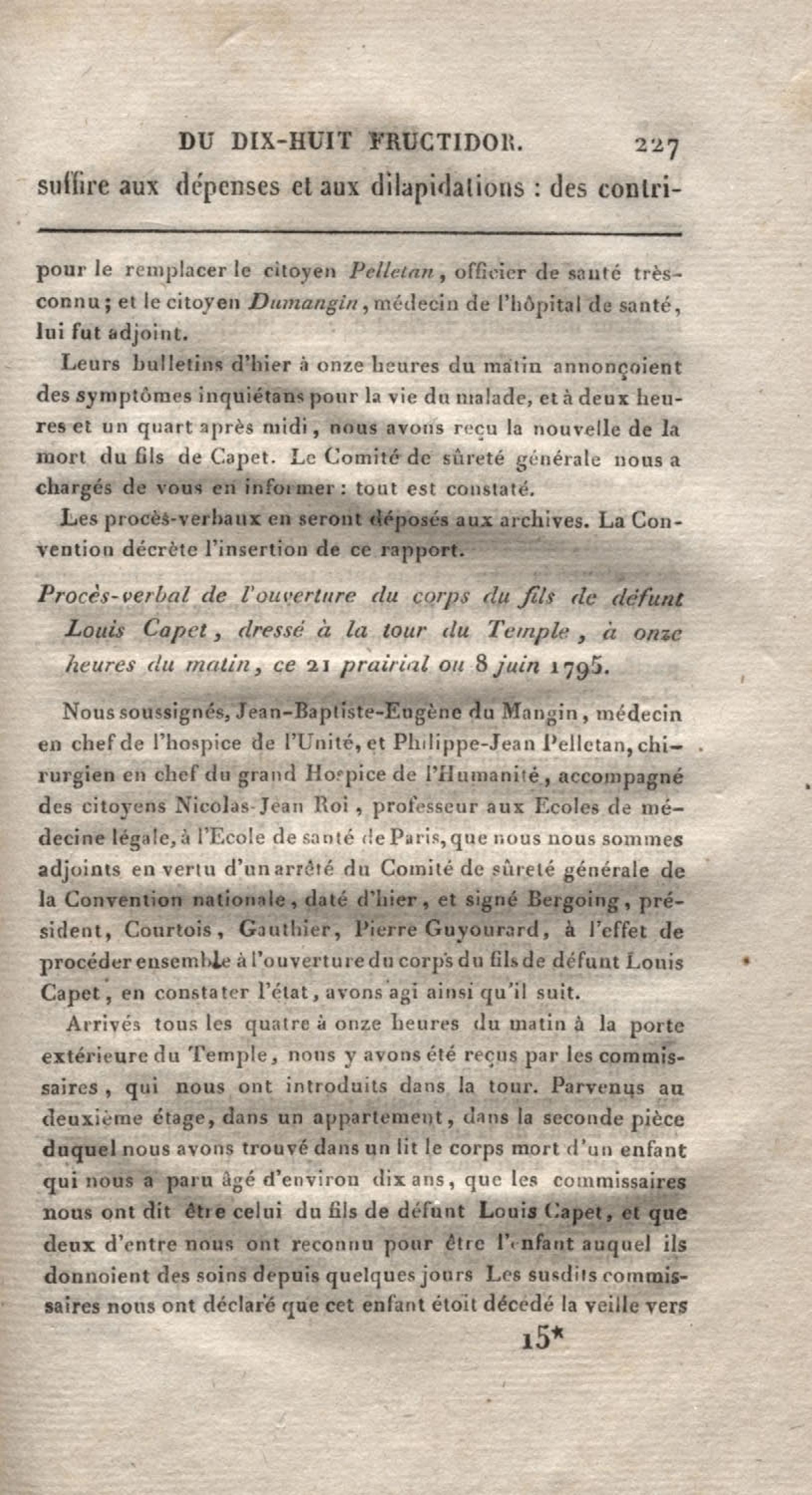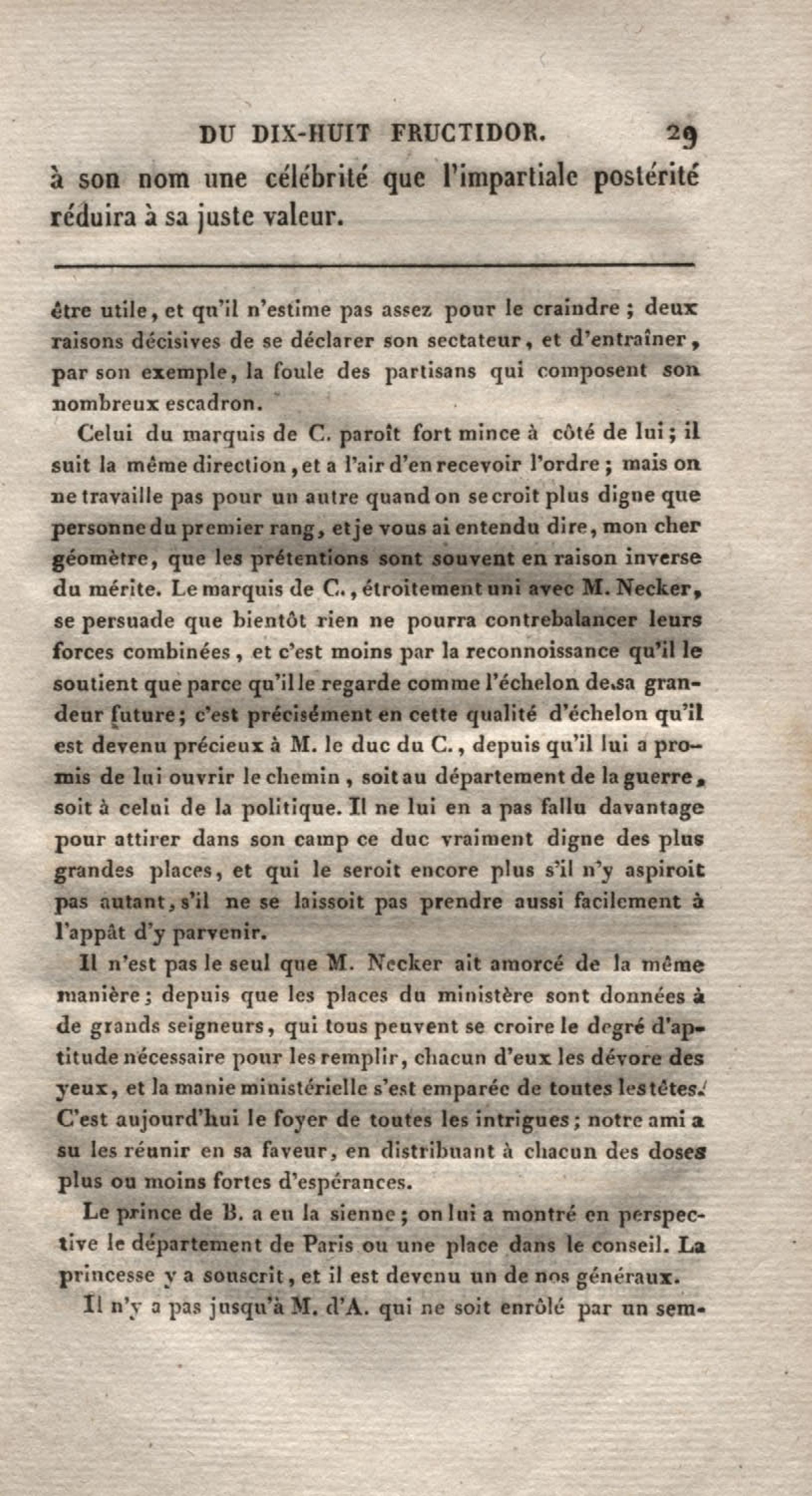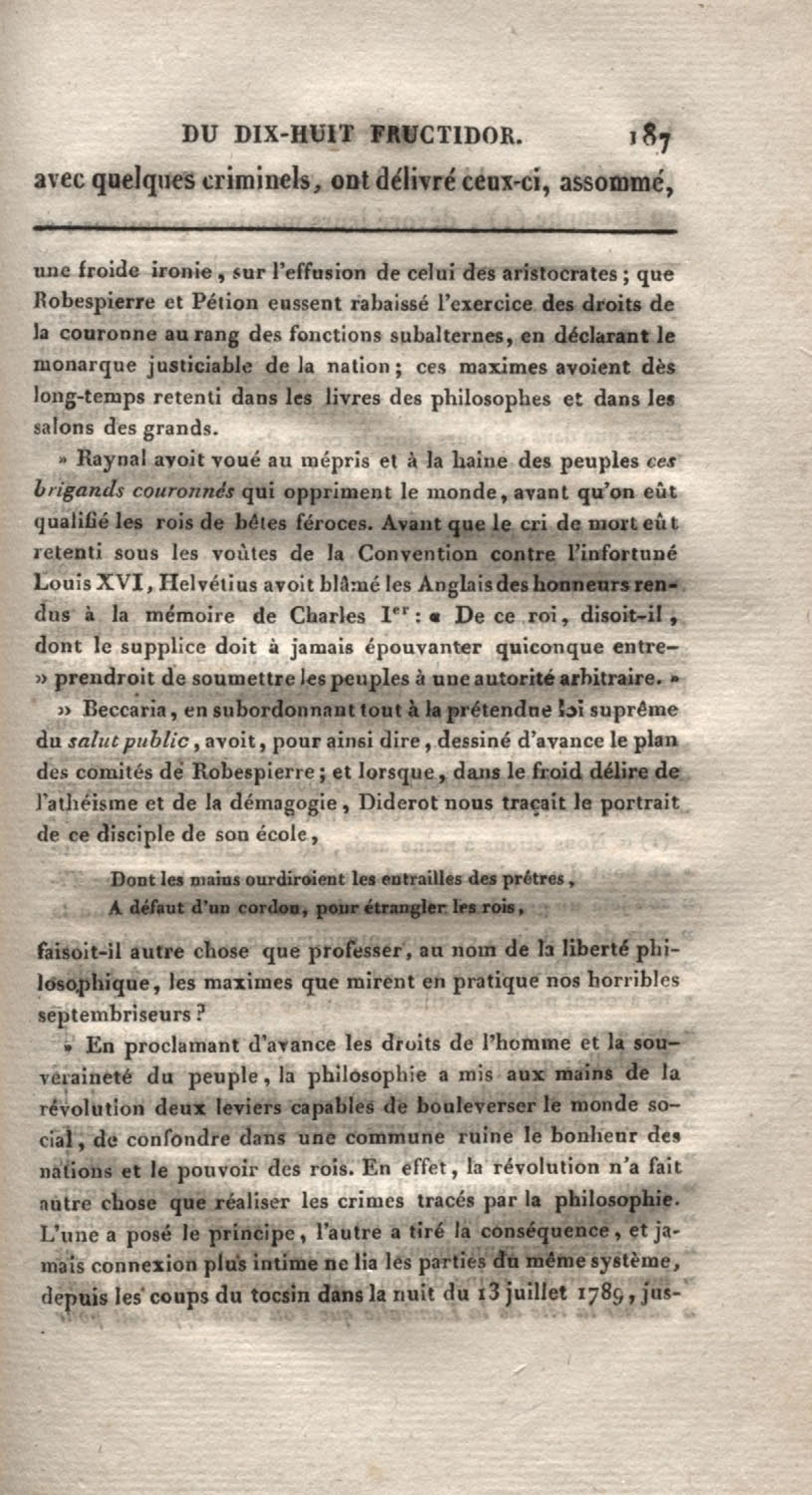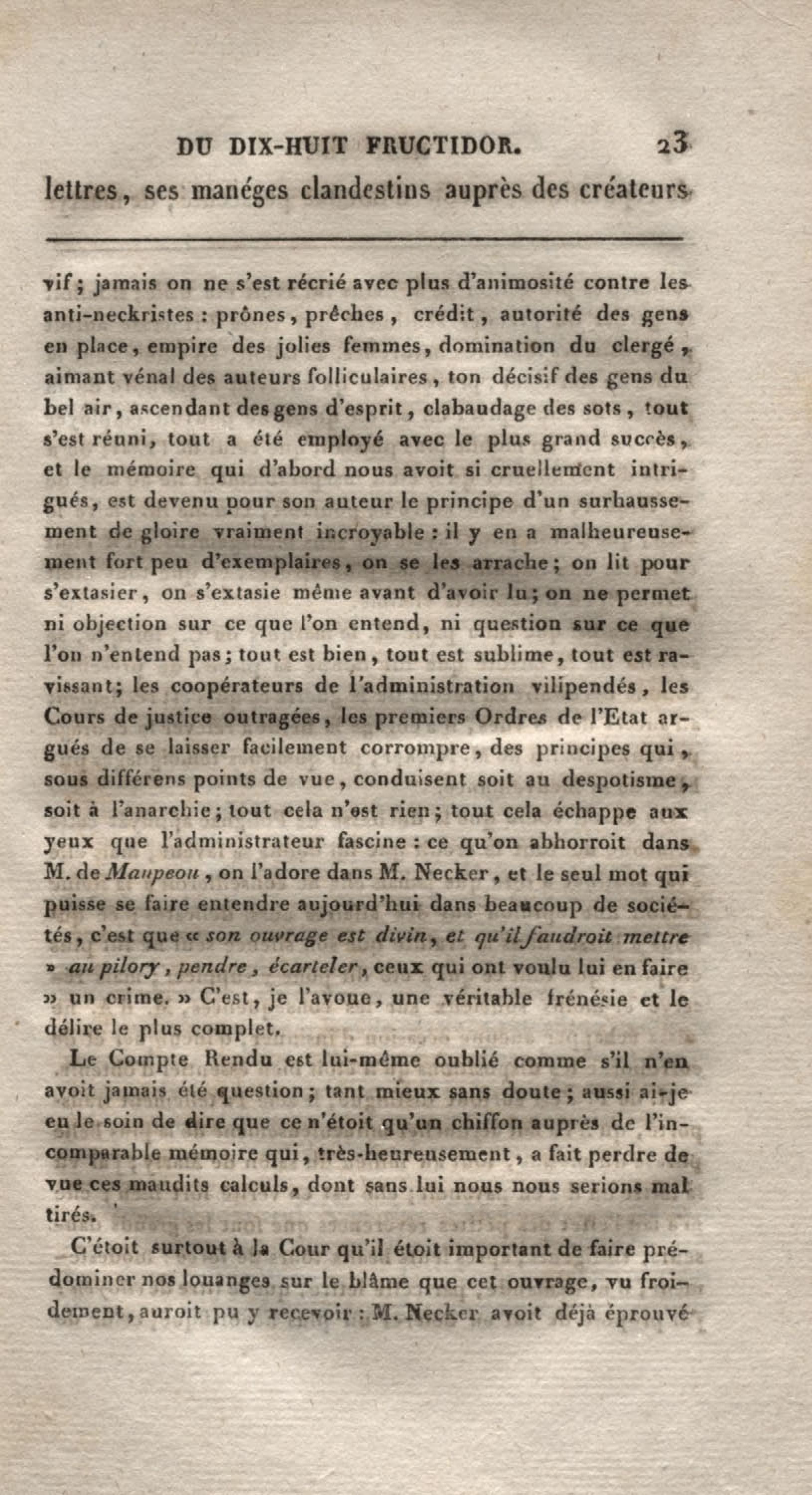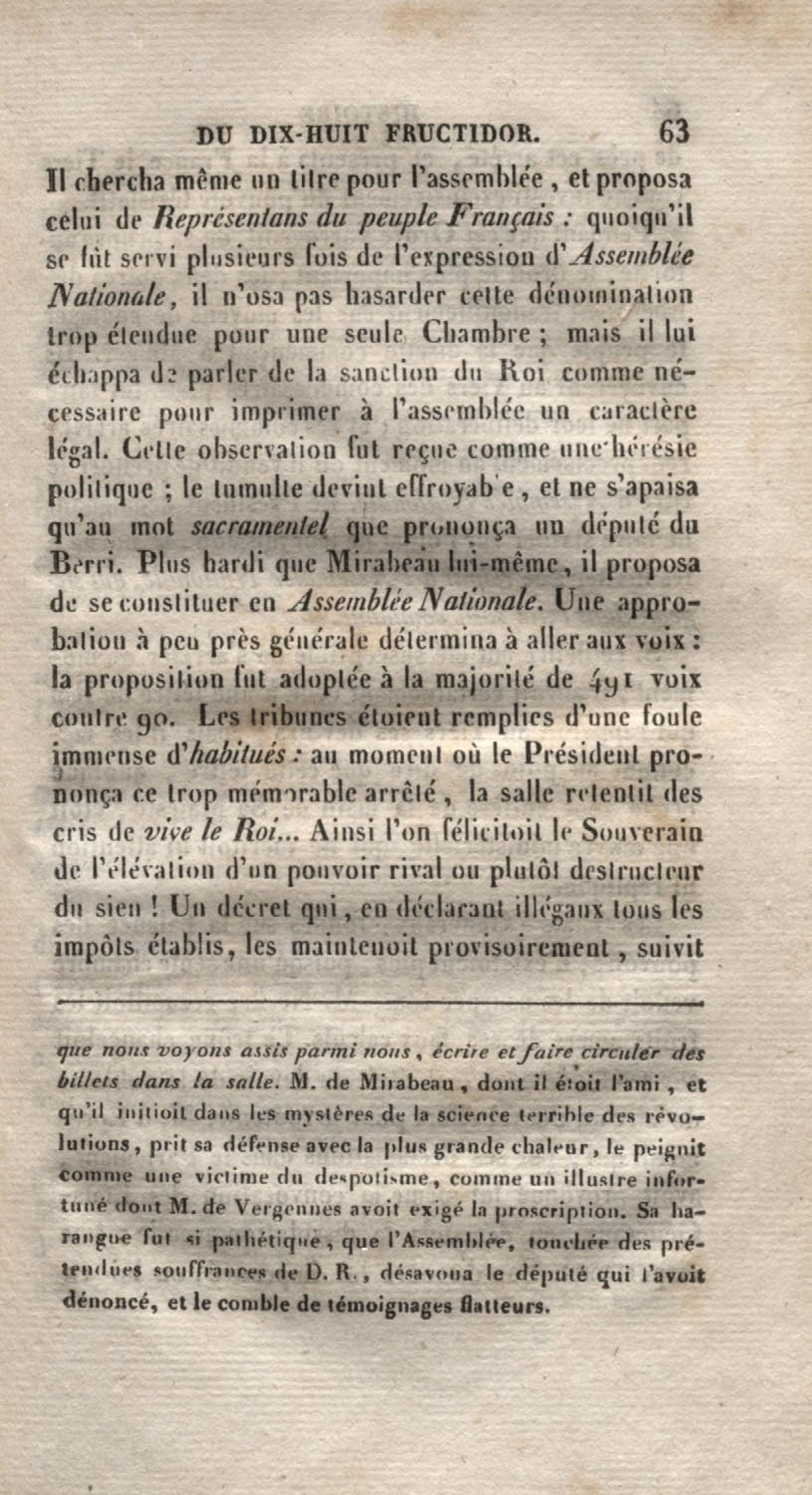 - Histoire du dix-huit fructidor ou Mémoires contenant la vérité sur les divers évènemens qui se rattachent à cette conjuration : précédés du tableau des factions qui déchirent la France depuis quarante ans, et terminés par quelques détails sur la Guyane considérées comme colonie. Première partie