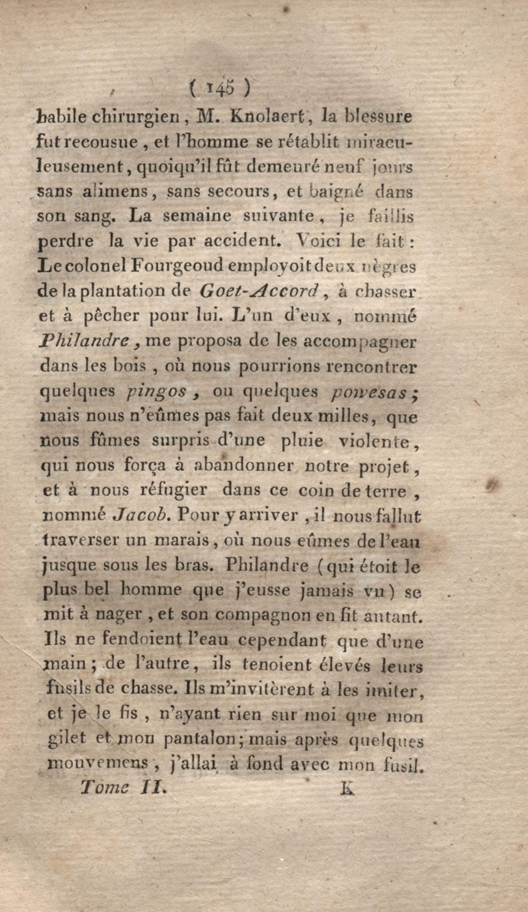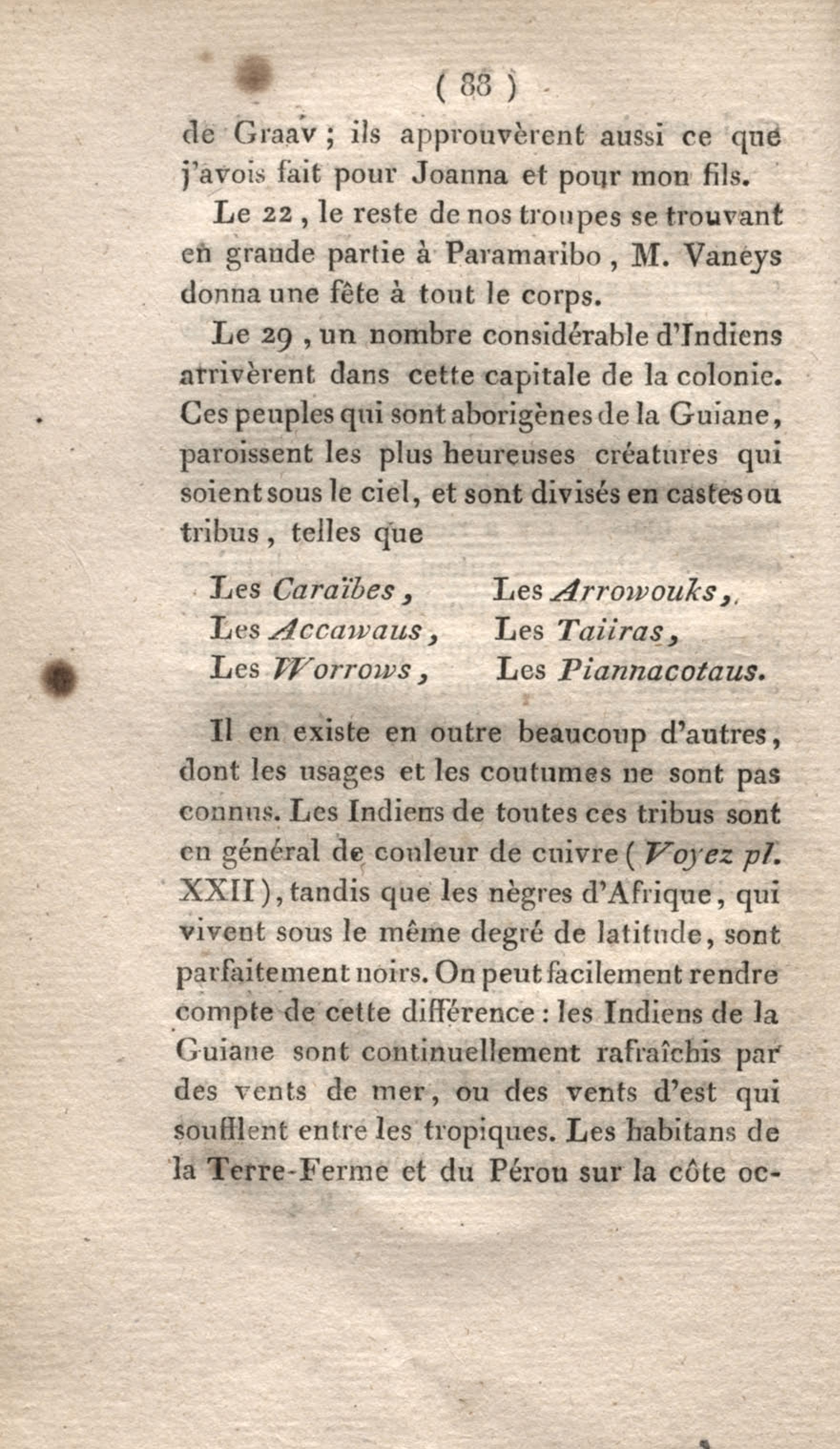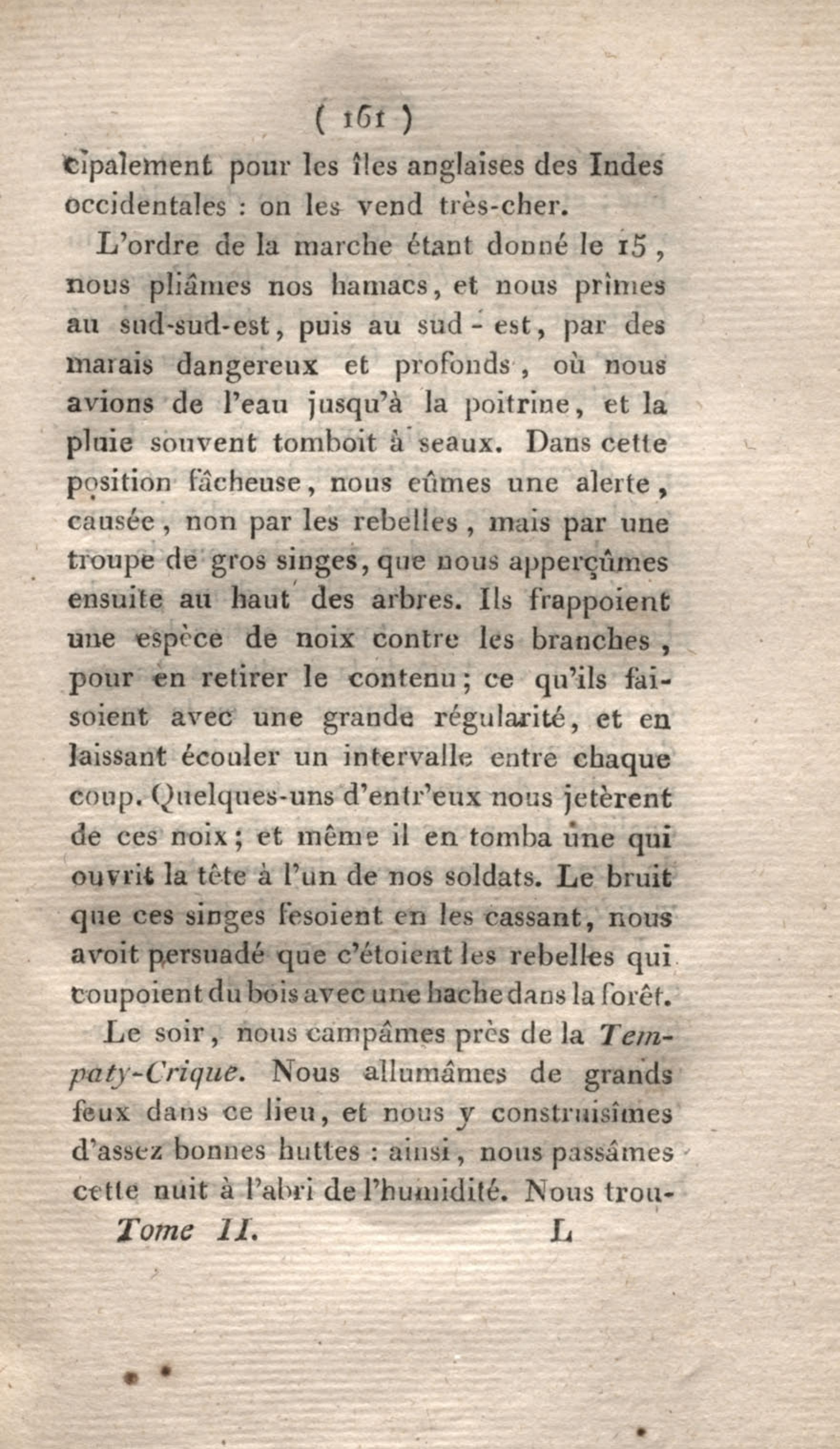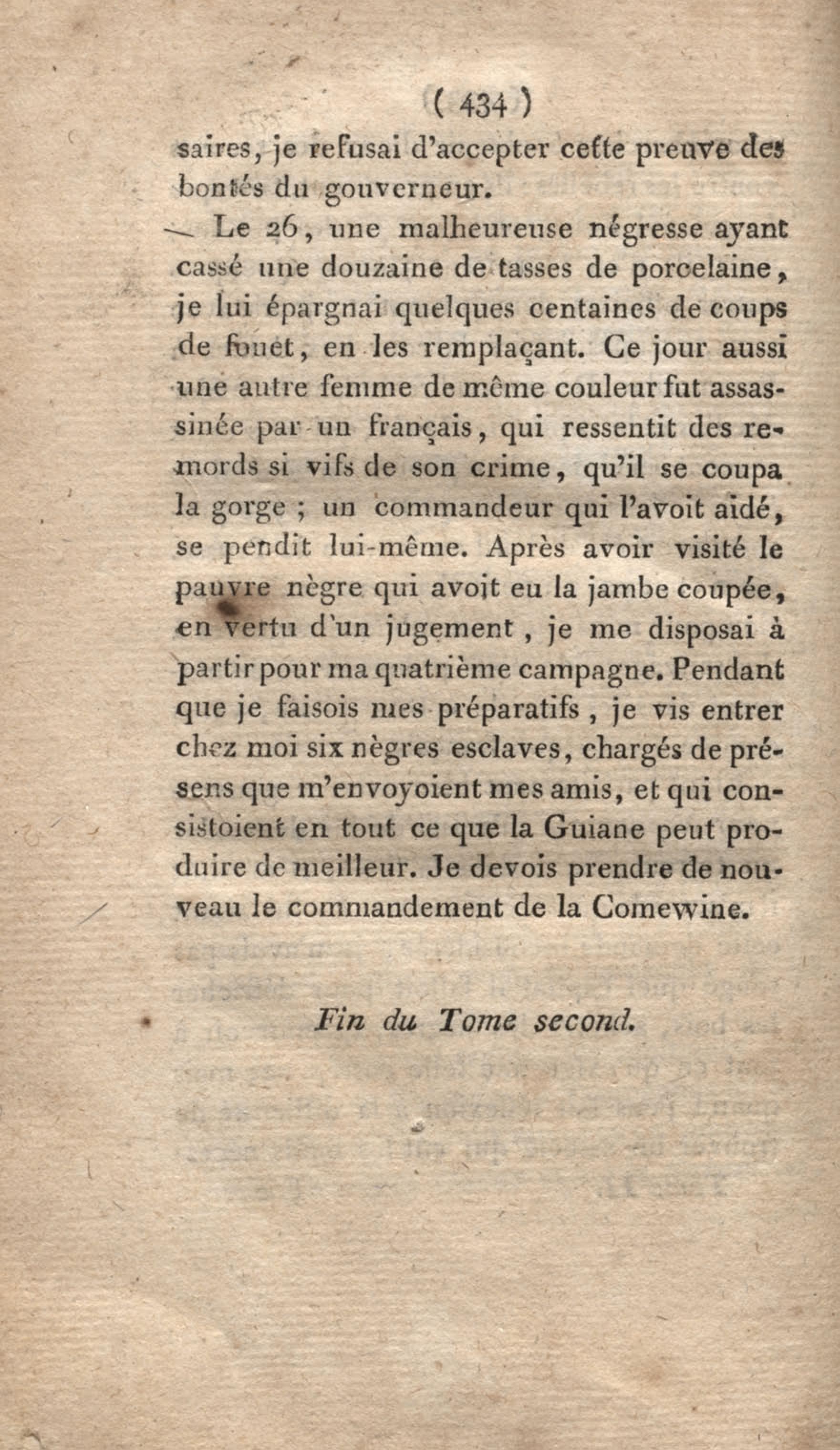 Voyage à Surinam et dans l'intérieur de la Guiane, contenant La Relation de cinq années de courses et d'observations faites dans cette contrée intéressante et peu connue, avec des détails sur les Indiens de la Guiane et les Nègres : suivi du Tableau de la Colonie française de Cayenne. Tome second
