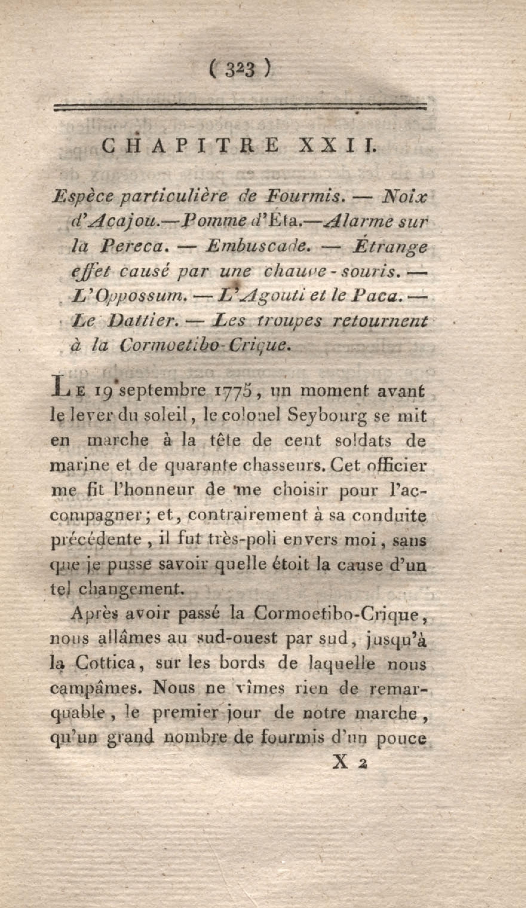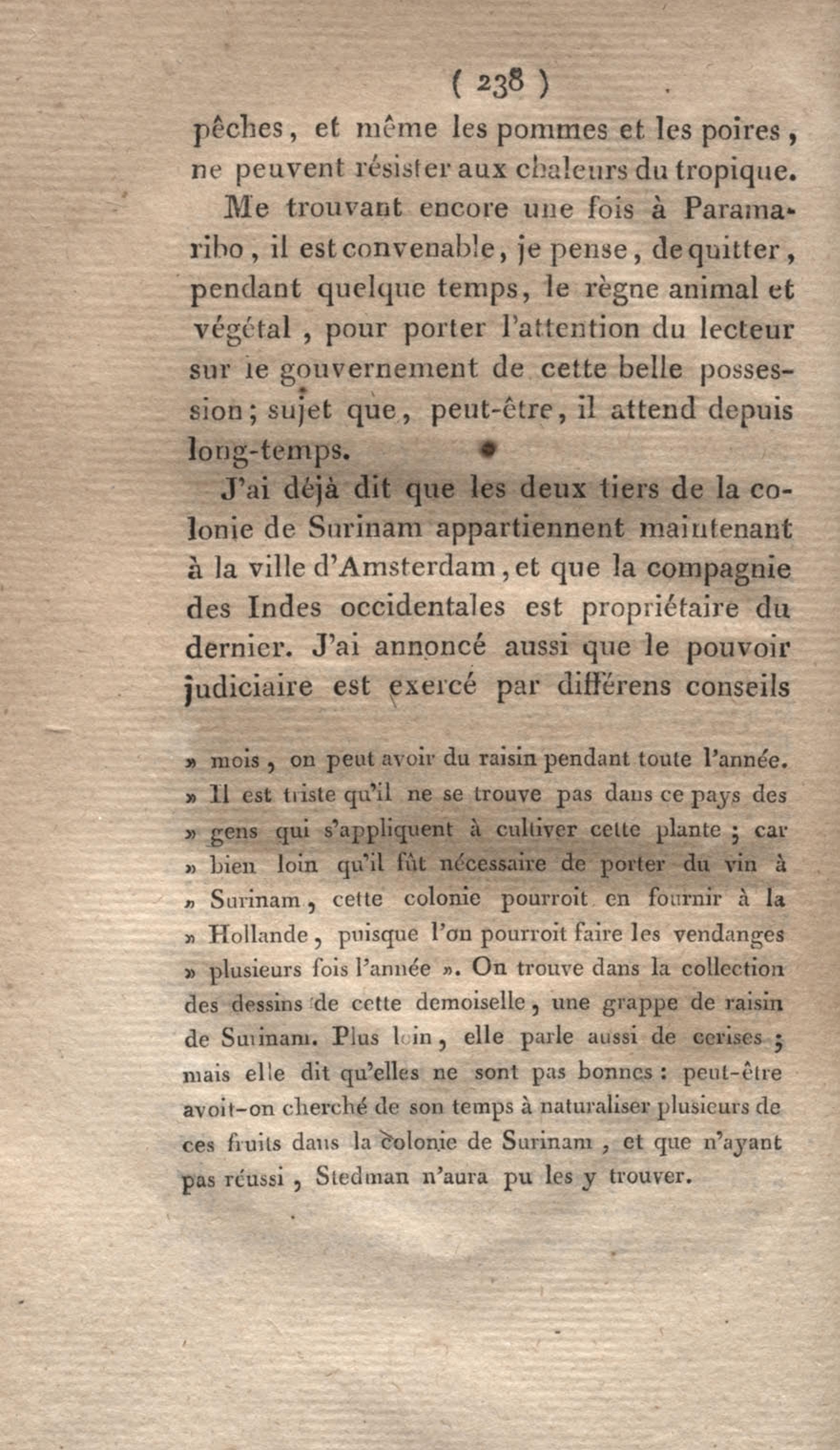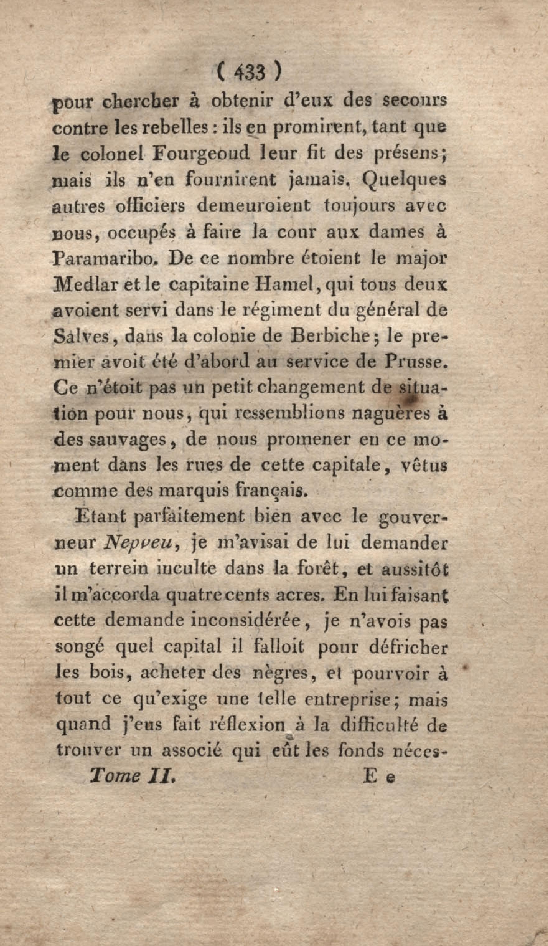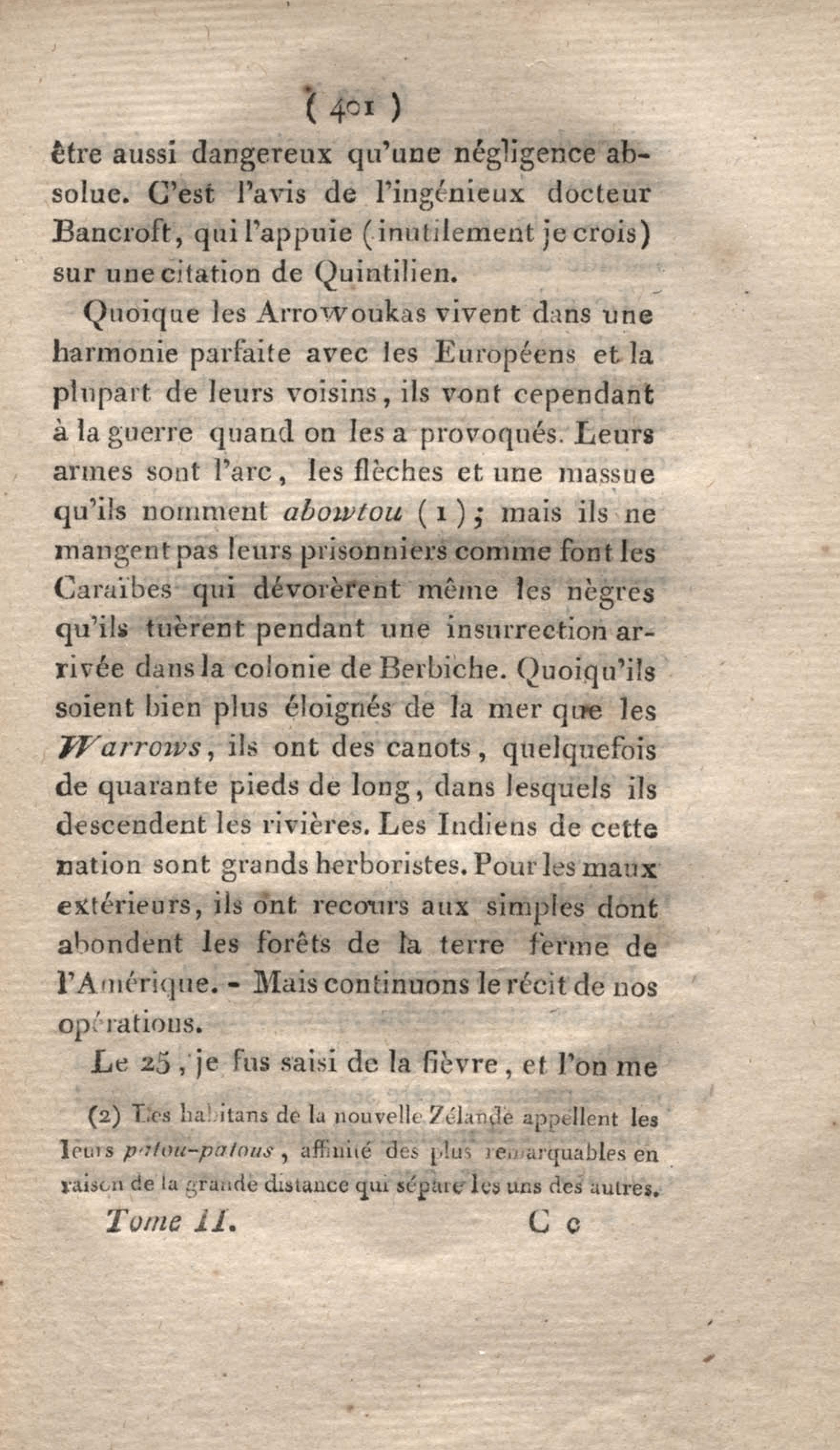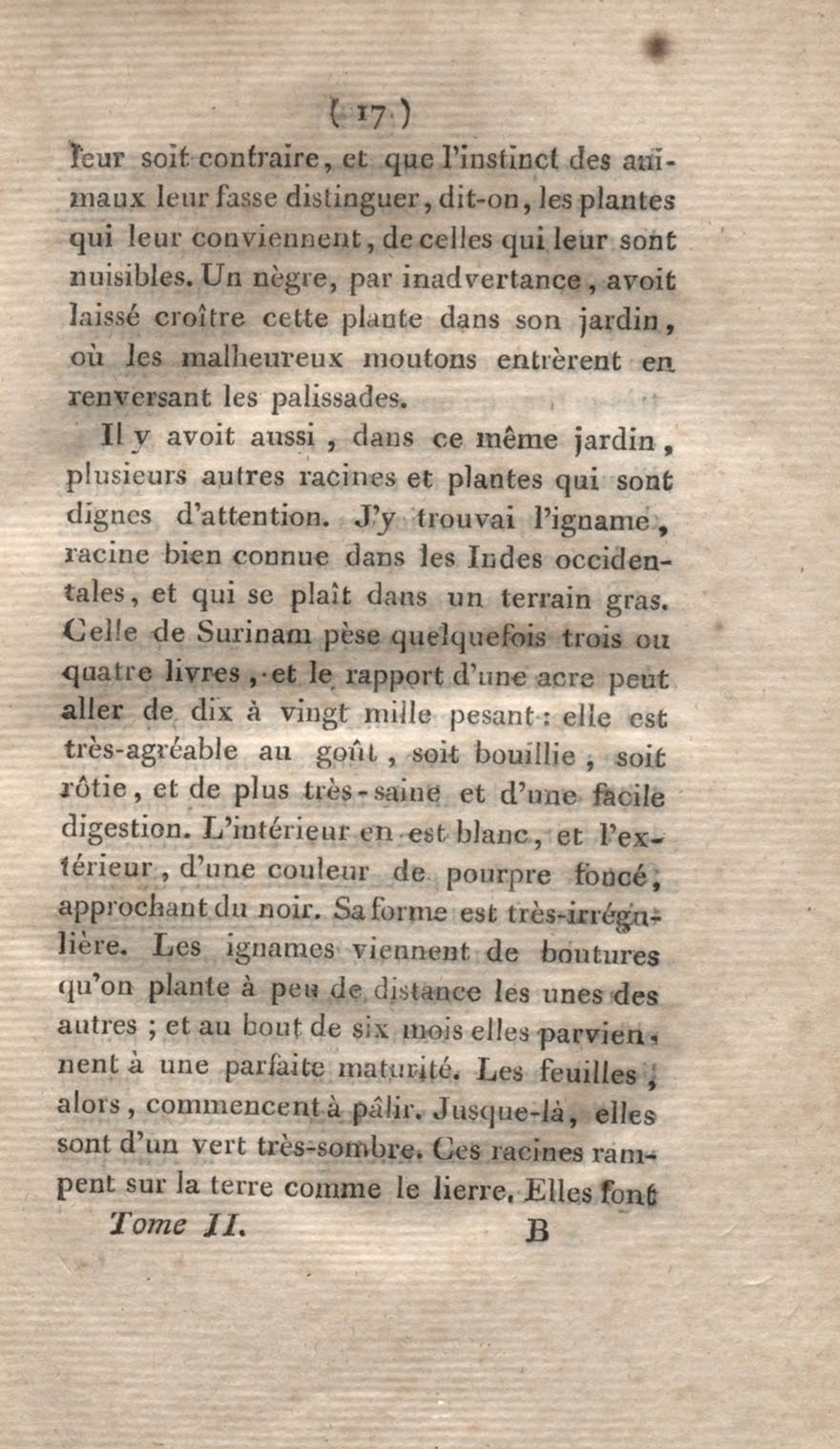 Voyage à Surinam et dans l'intérieur de la Guiane, contenant La Relation de cinq années de courses et d'observations faites dans cette contrée intéressante et peu connue, avec des détails sur les Indiens de la Guiane et les Nègres : suivi du Tableau de la Colonie française de Cayenne. Tome second