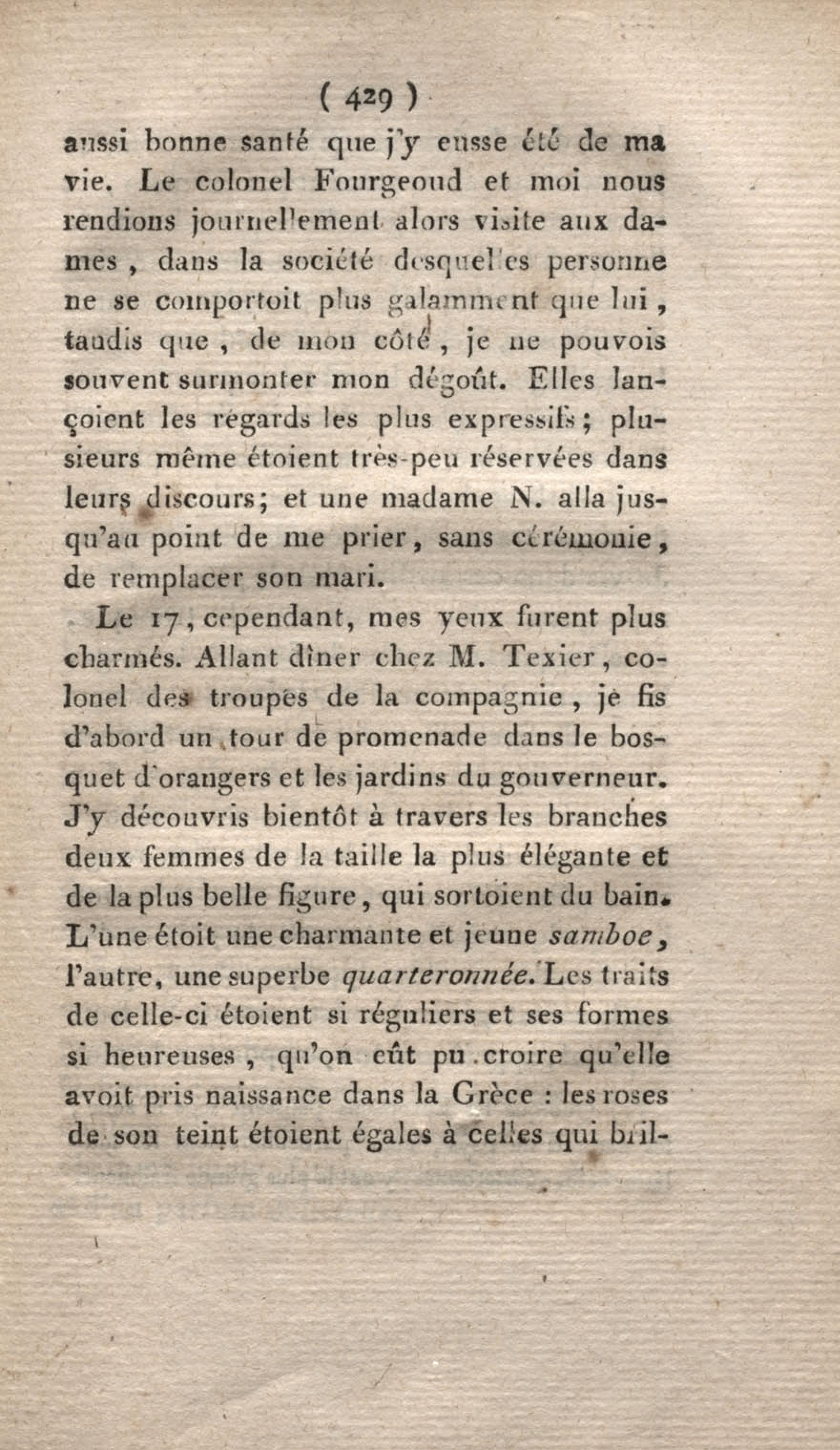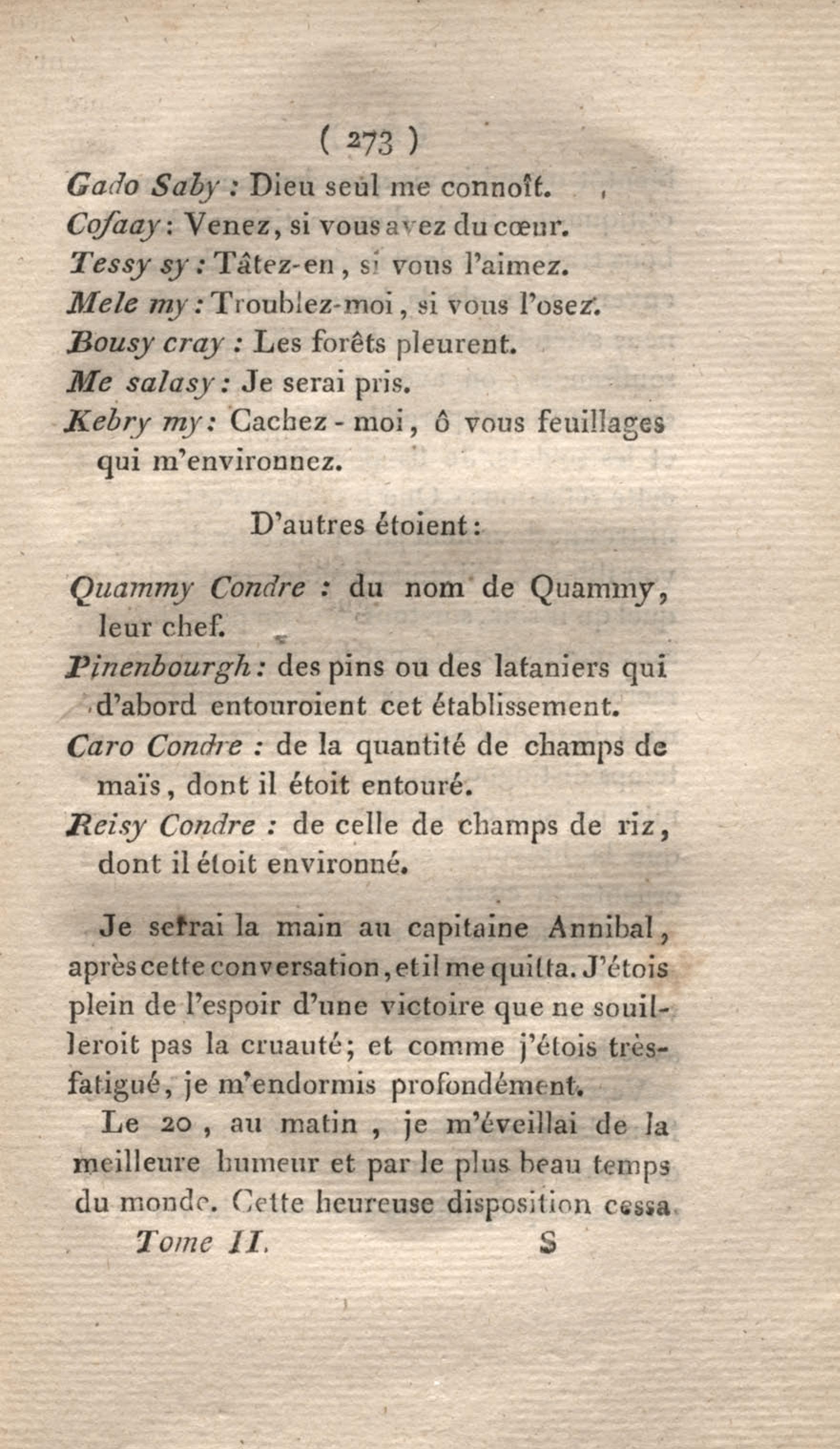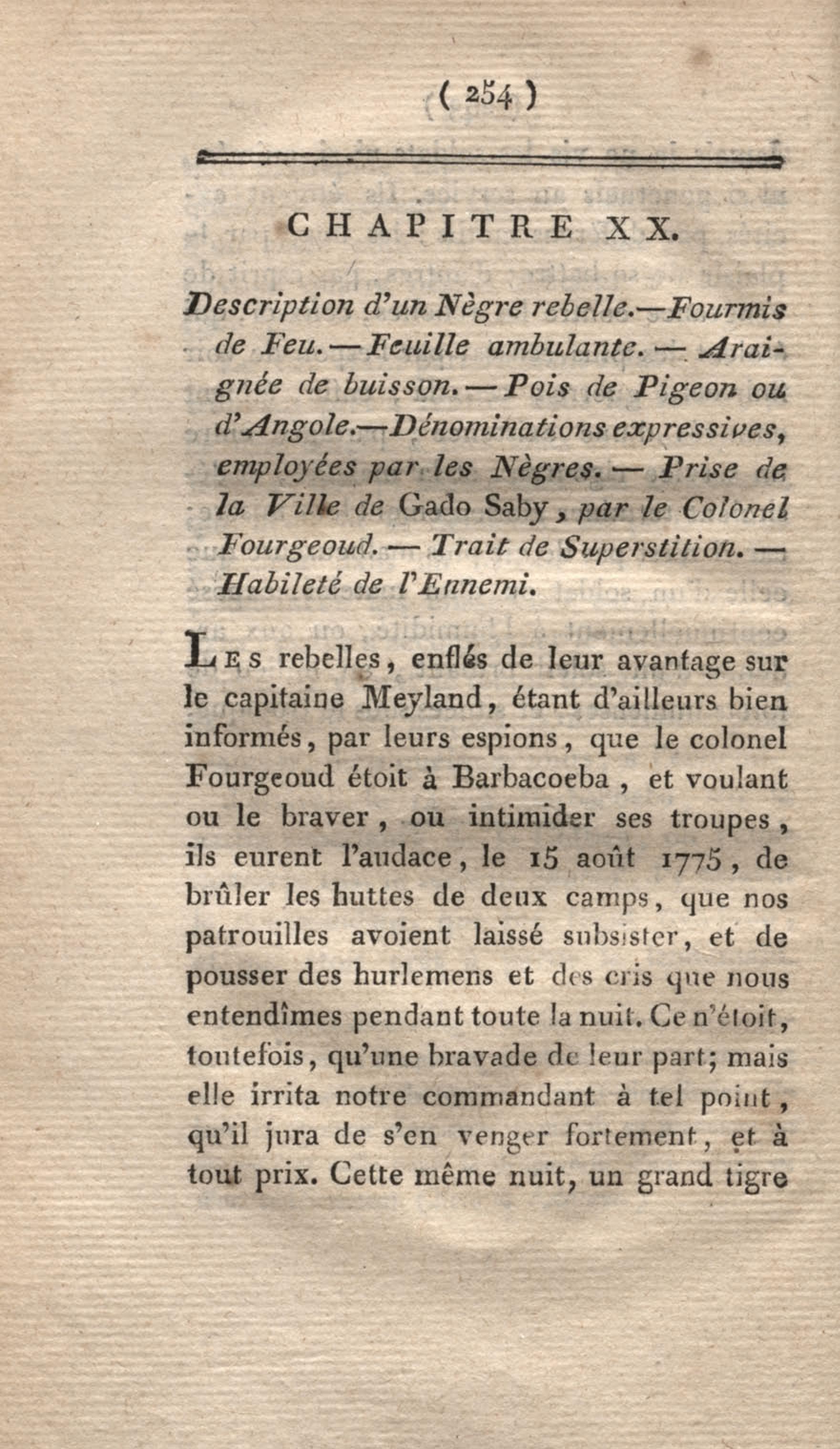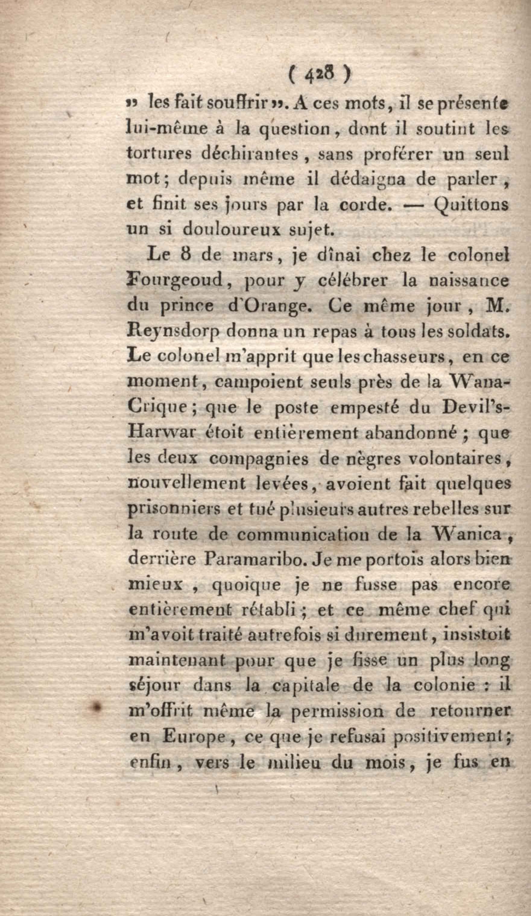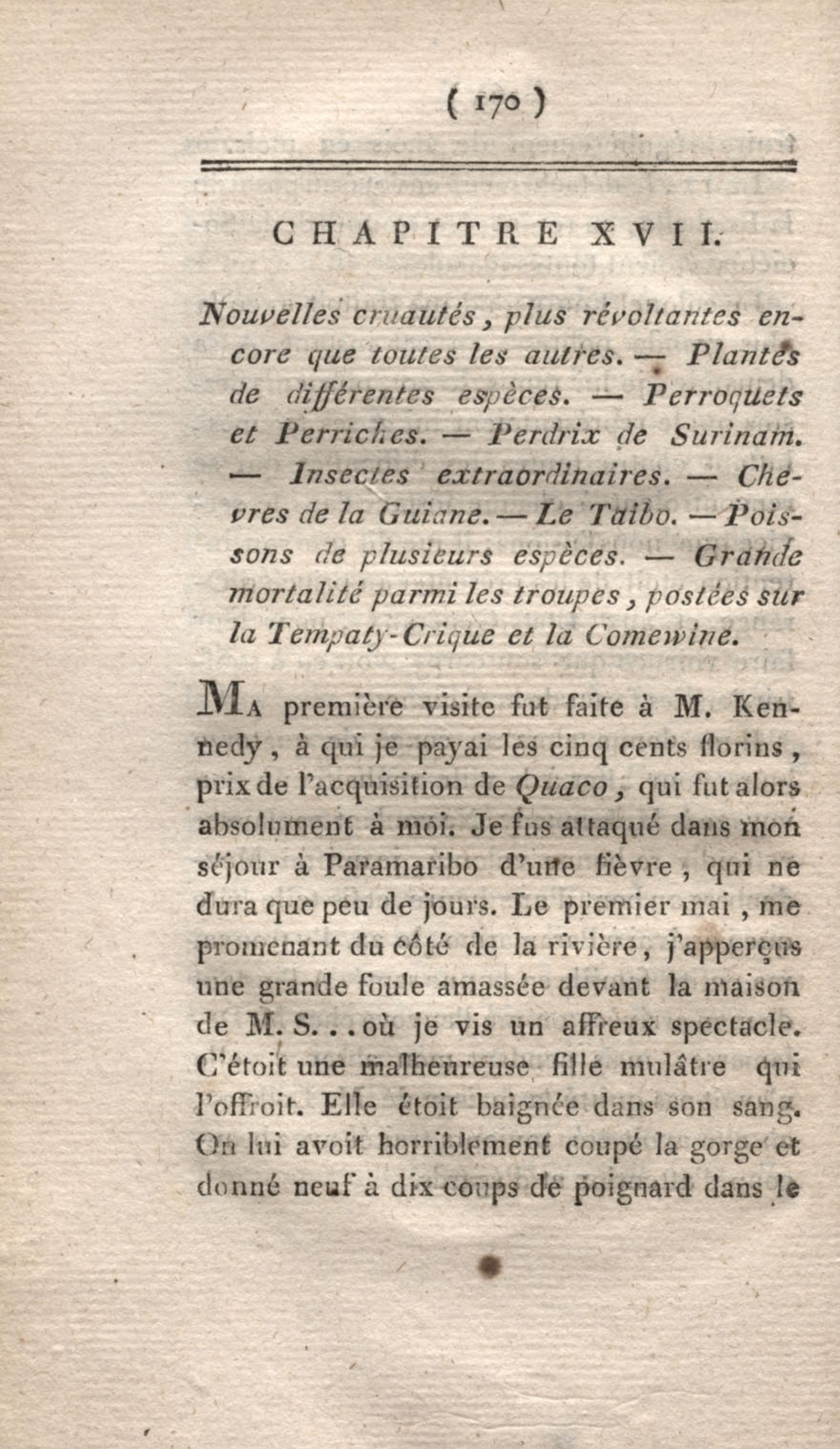 Voyage à Surinam et dans l'intérieur de la Guiane, contenant La Relation de cinq années de courses et d'observations faites dans cette contrée intéressante et peu connue, avec des détails sur les Indiens de la Guiane et les Nègres : suivi du Tableau de la Colonie française de Cayenne. Tome second