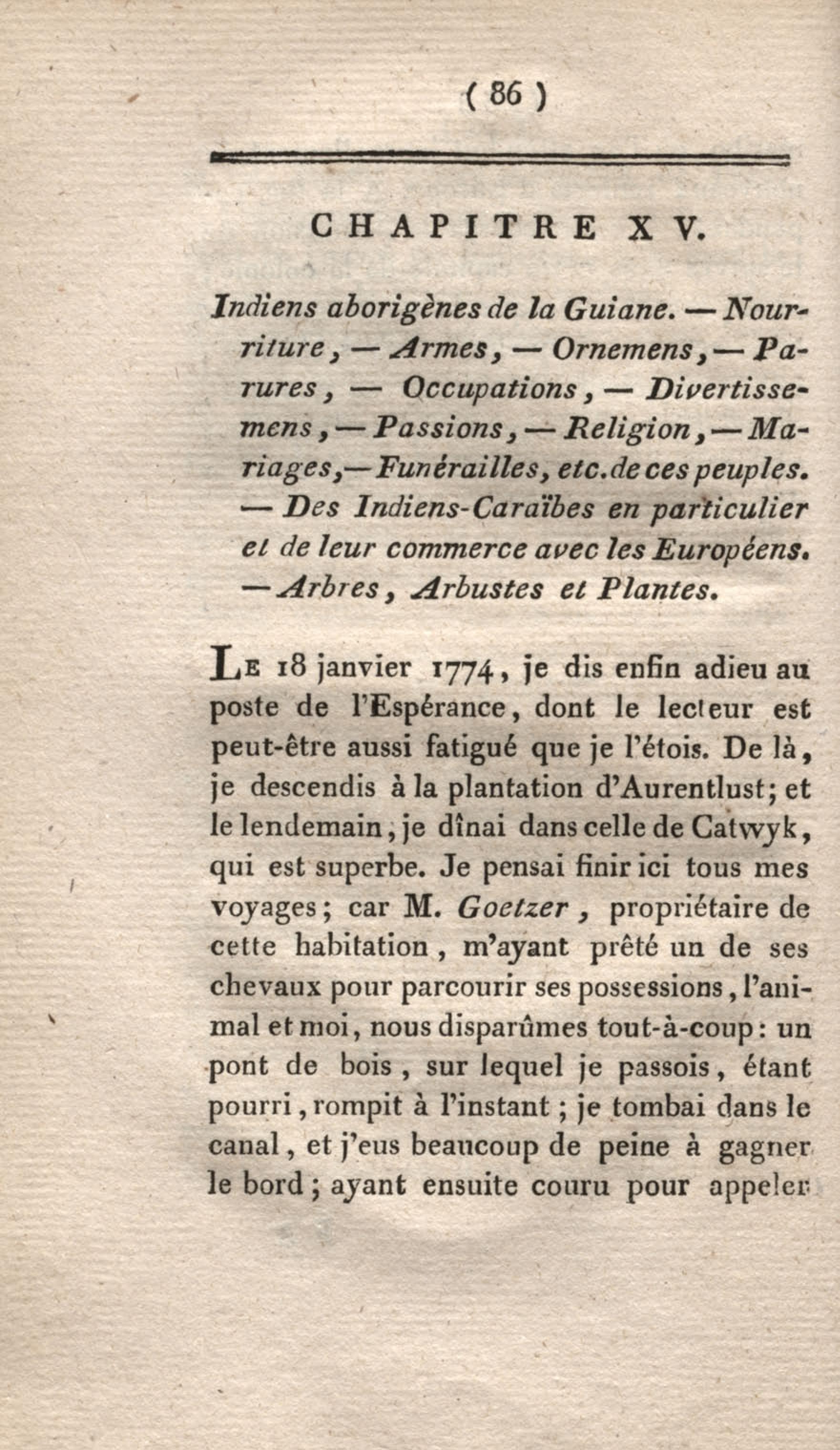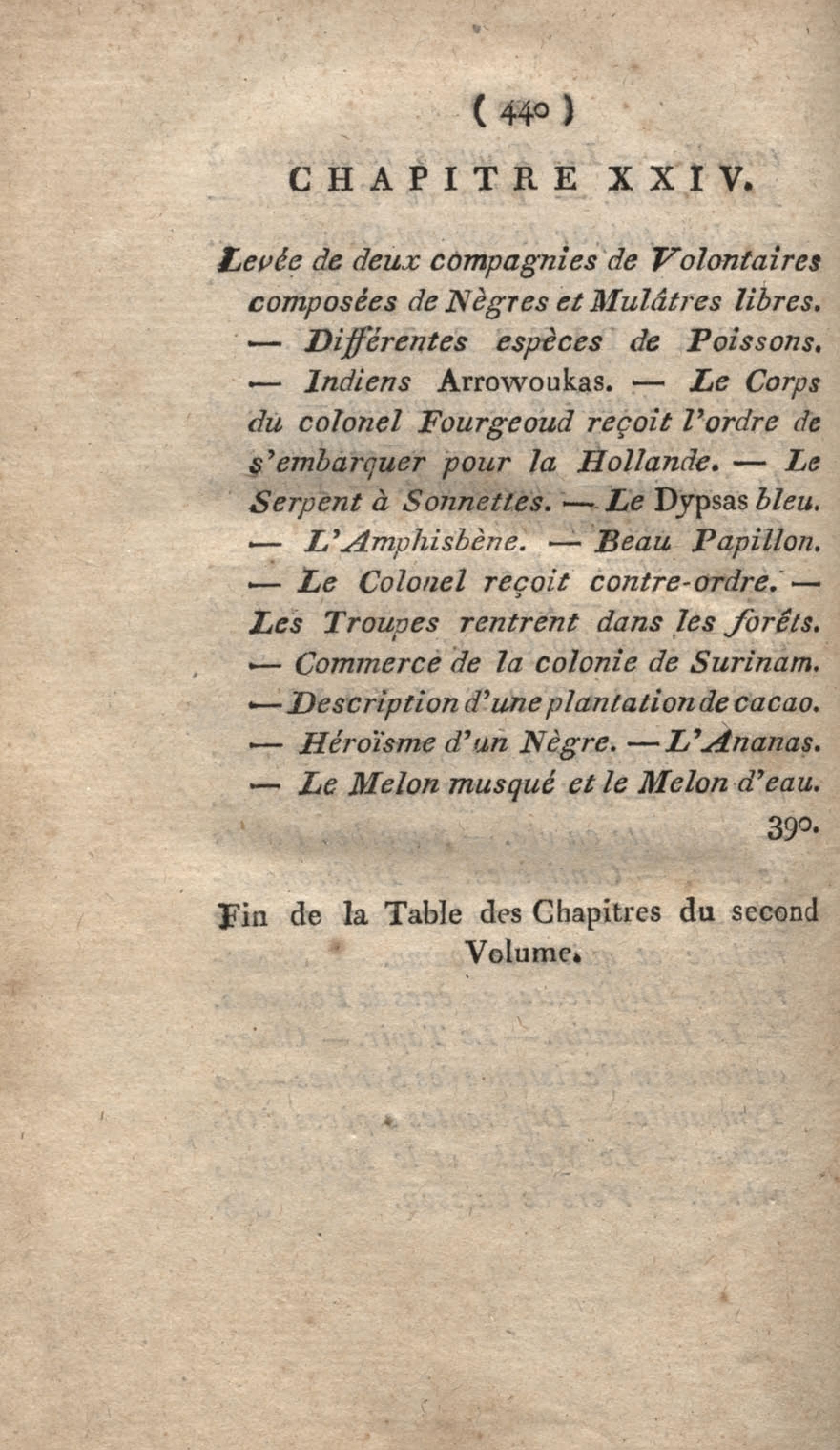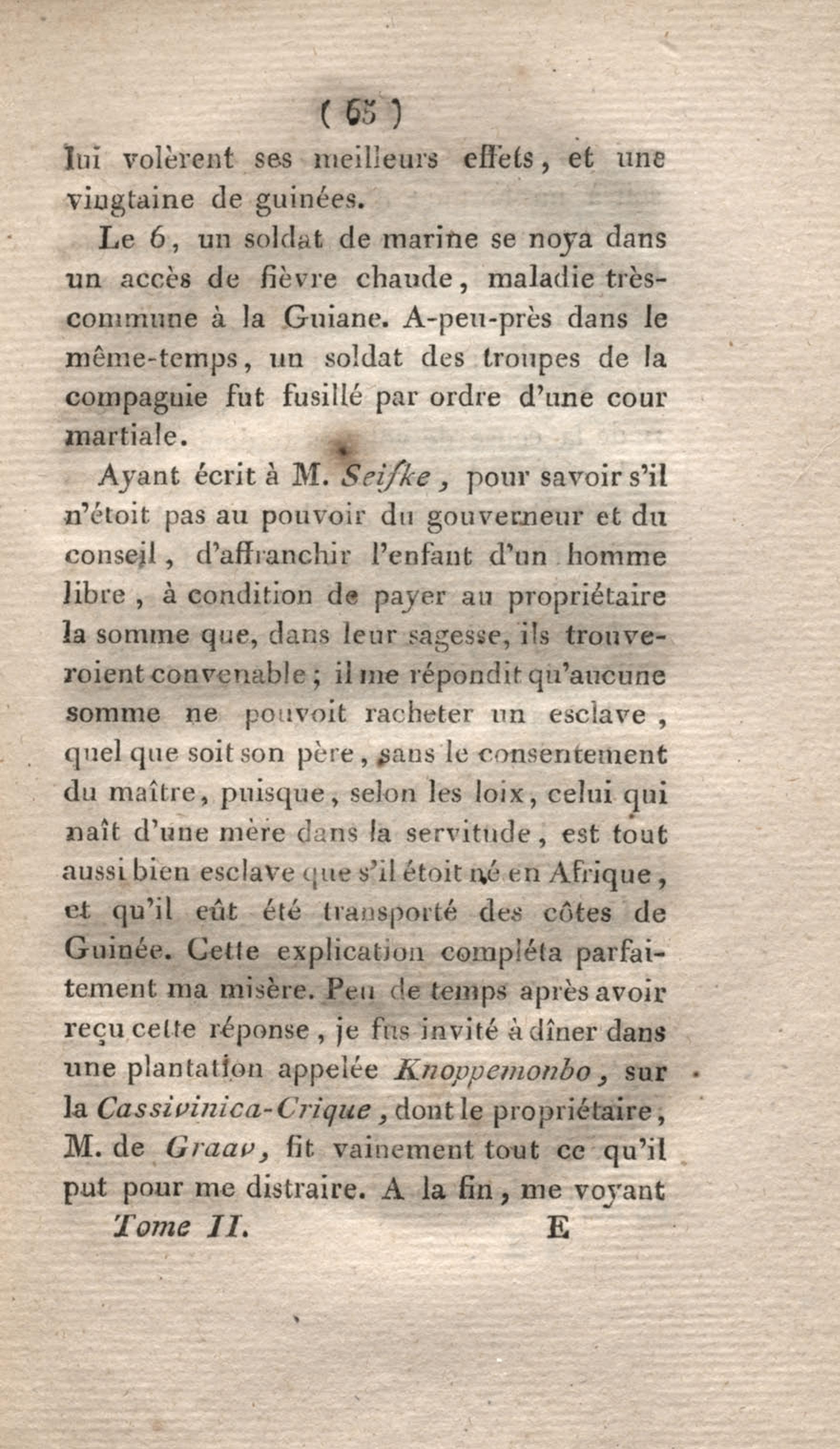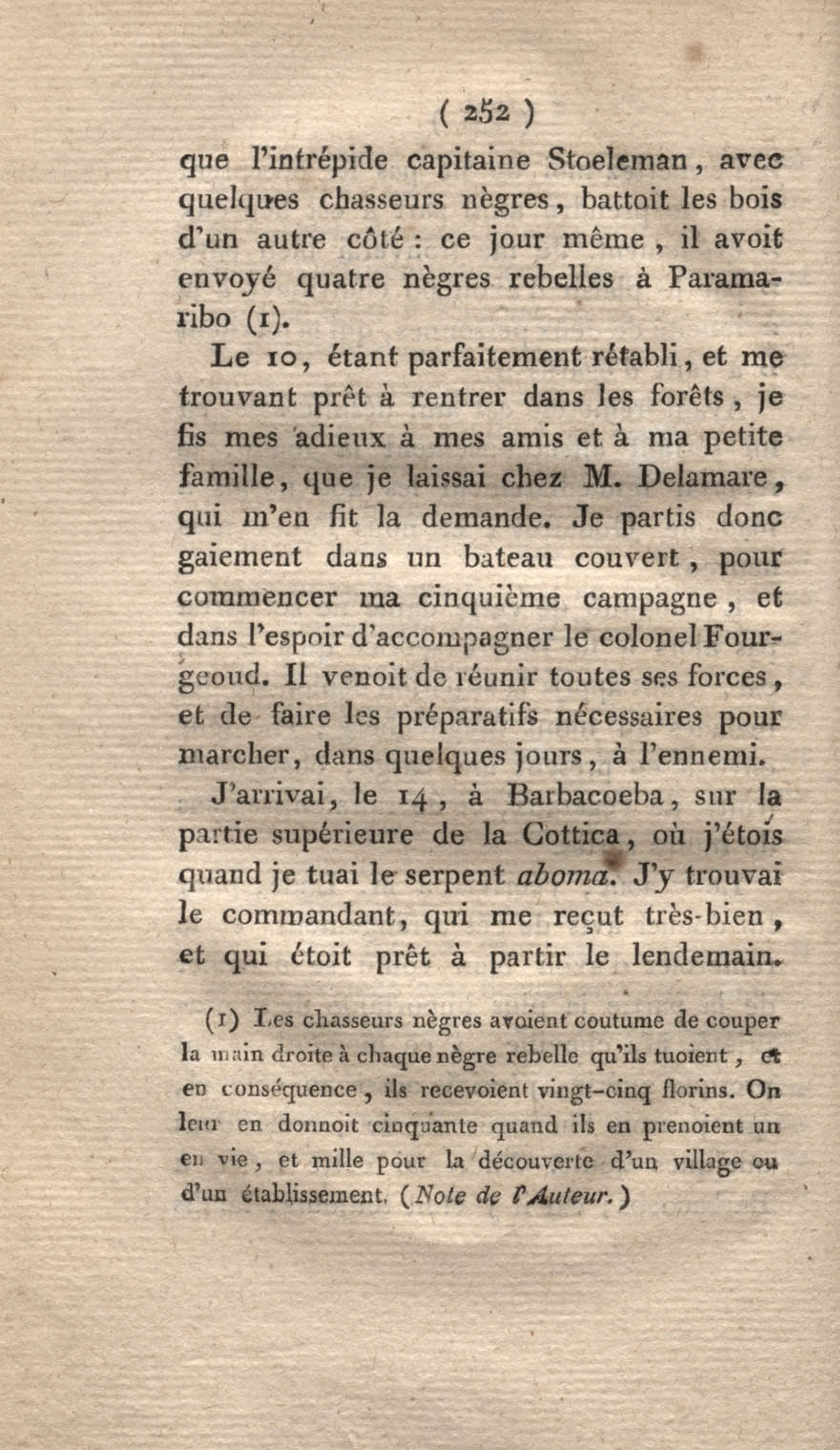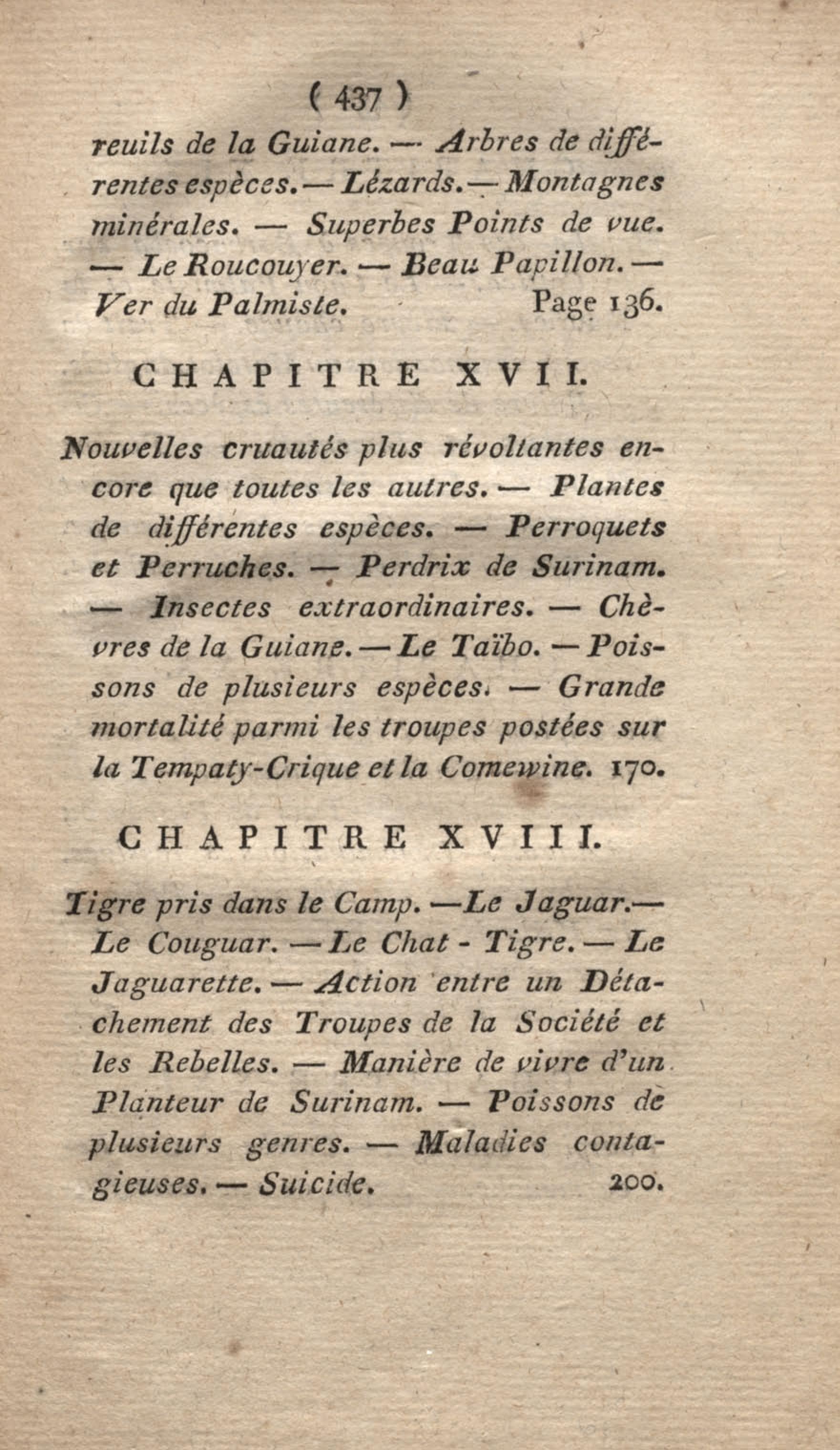- Voyage à Surinam et dans l'intérieur de la Guiane, contenant La Relation de cinq années de courses et d'observations faites dans cette contrée intéressante et peu connue, avec des détails sur les Indiens de la Guiane et les Nègres : suivi du Tableau de la Colonie française de Cayenne. Tome second
