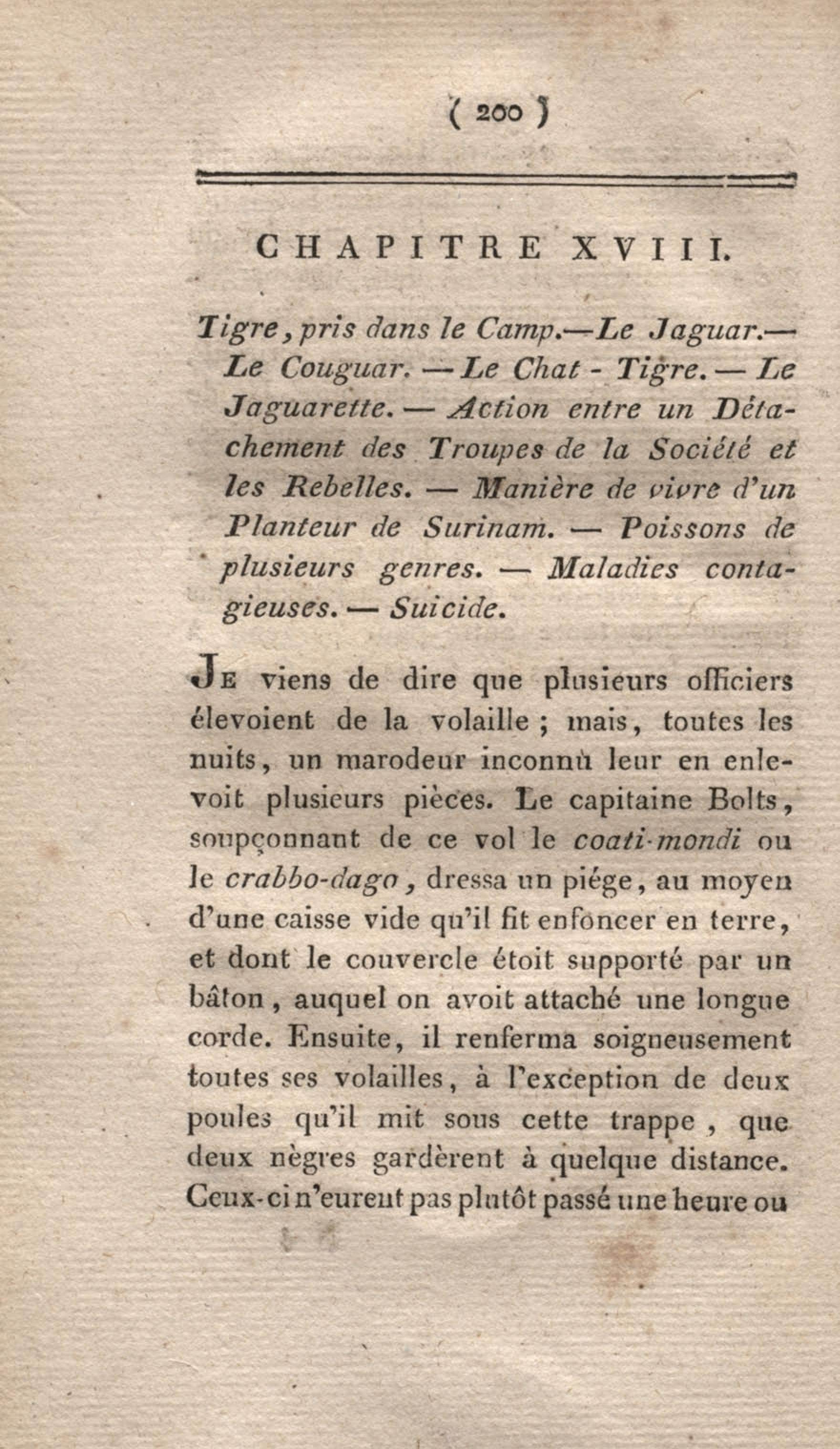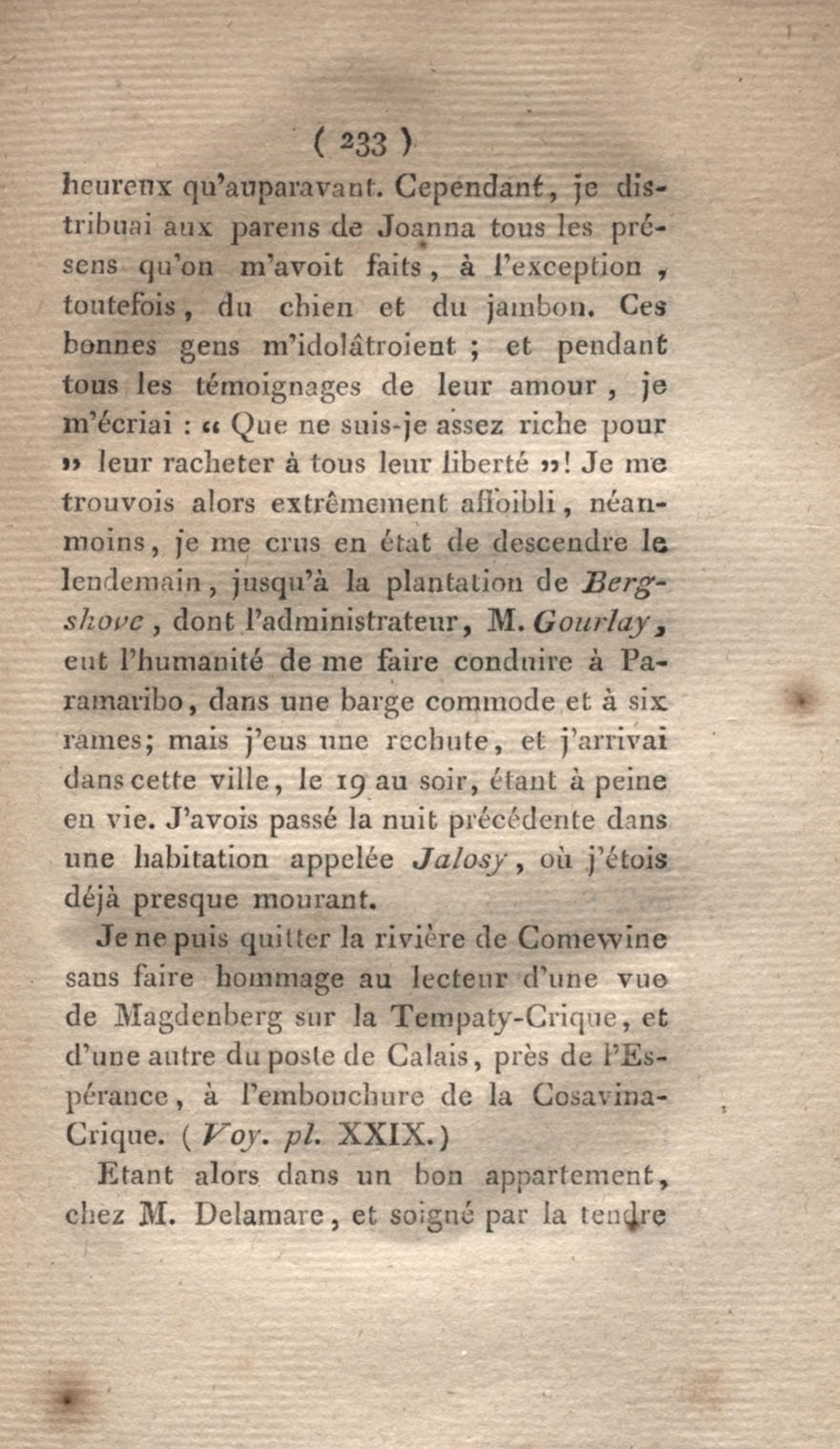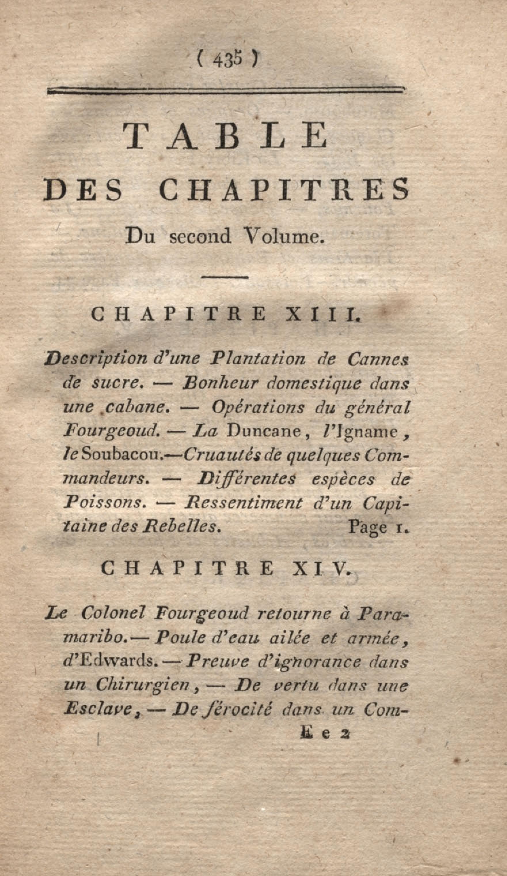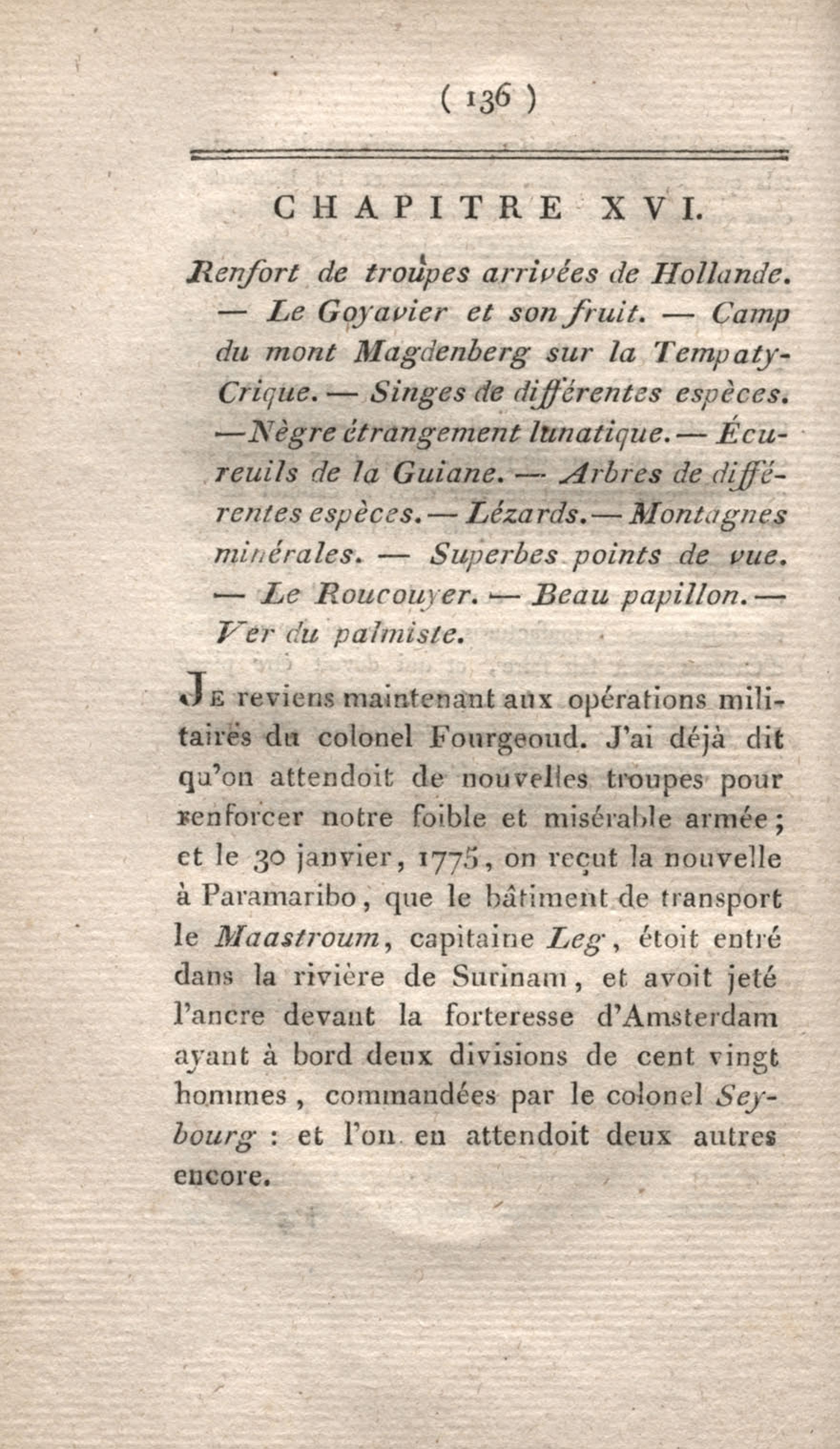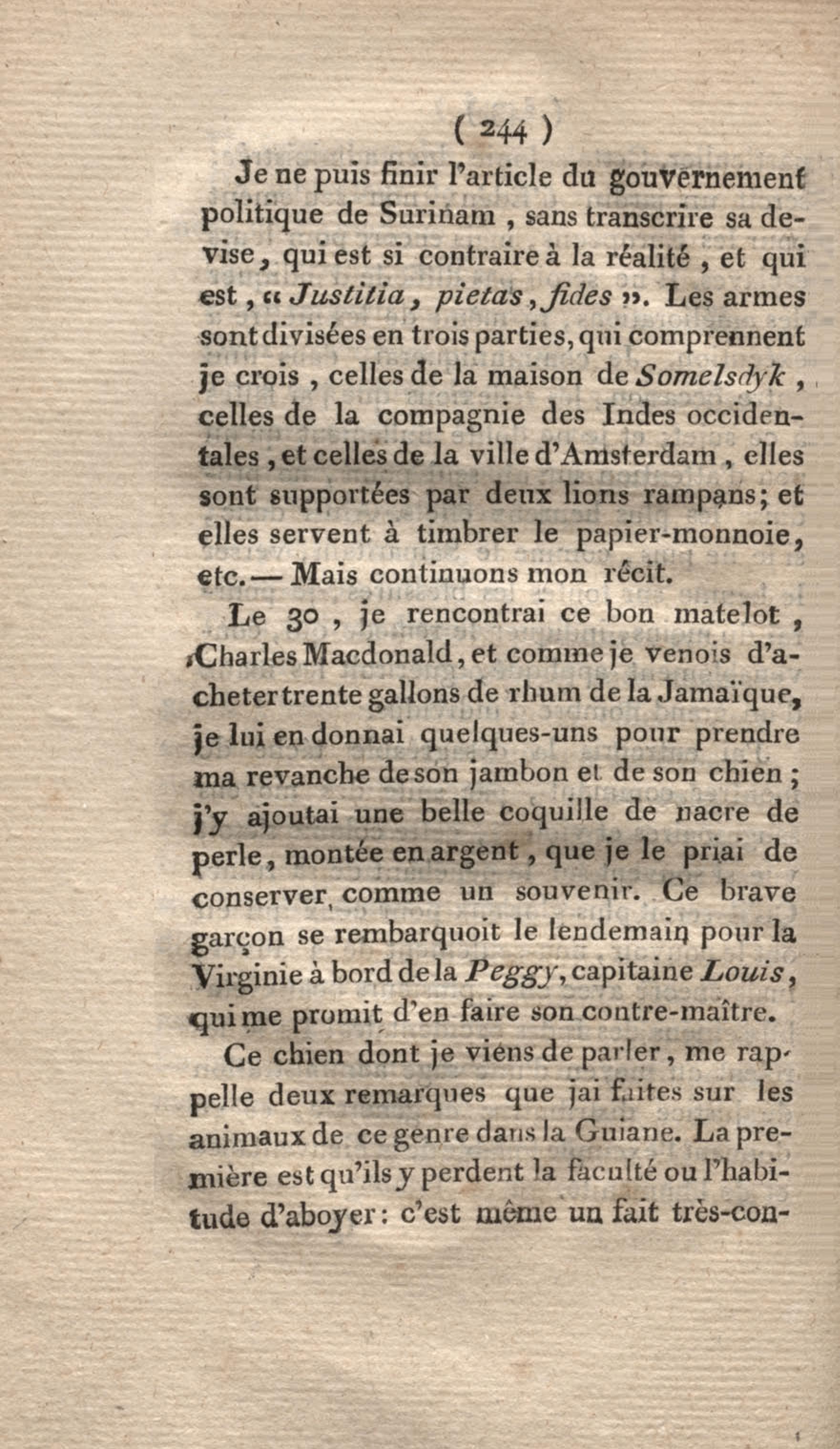 - Voyage à Surinam et dans l'intérieur de la Guiane, contenant La Relation de cinq années de courses et d'observations faites dans cette contrée intéressante et peu connue, avec des détails sur les Indiens de la Guiane et les Nègres : suivi du Tableau de la Colonie française de Cayenne. Tome second