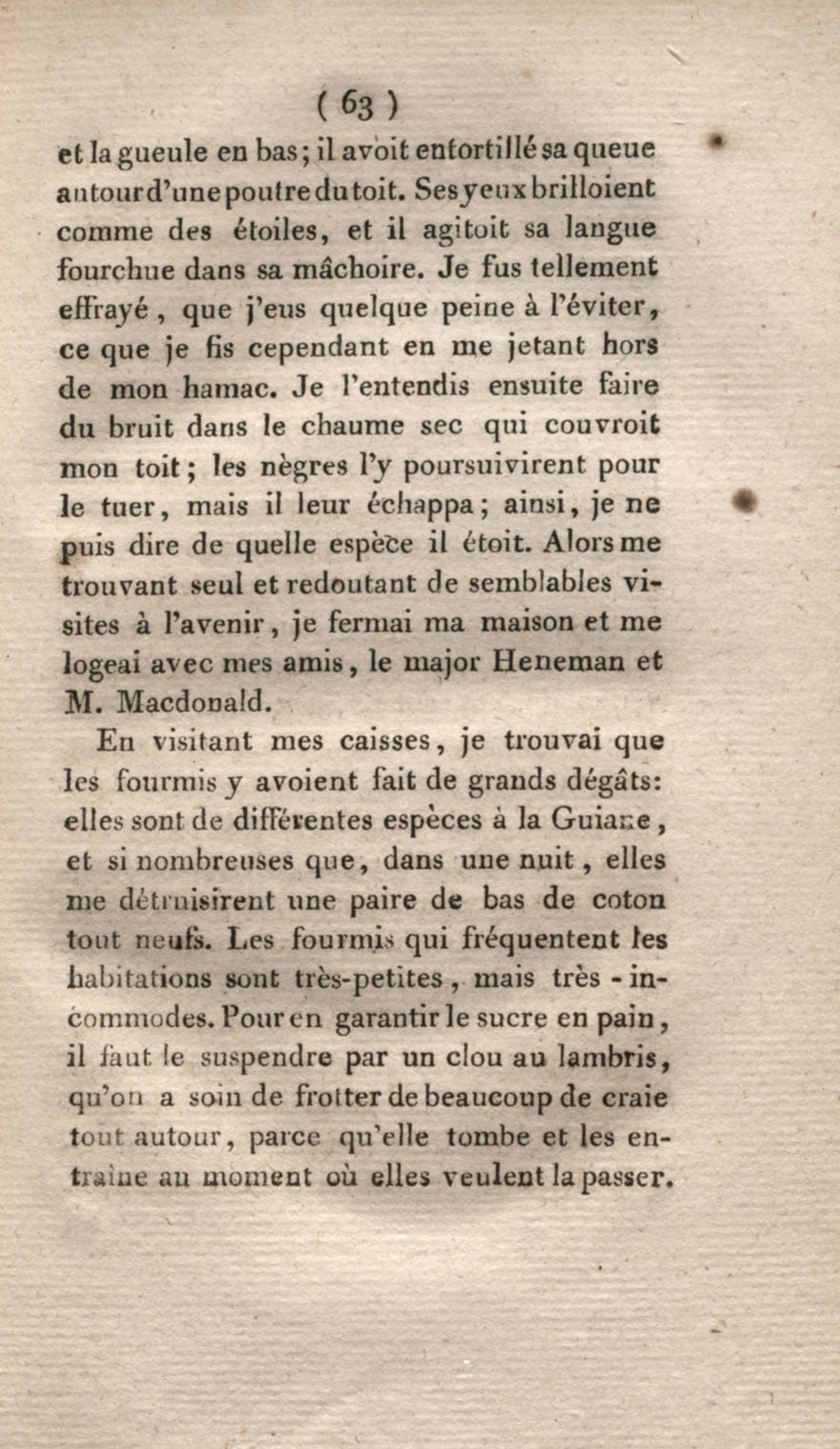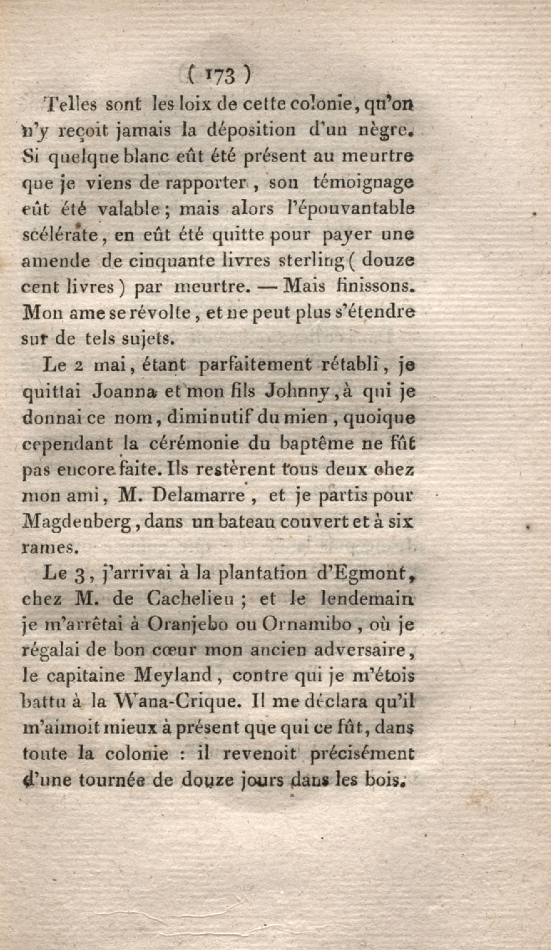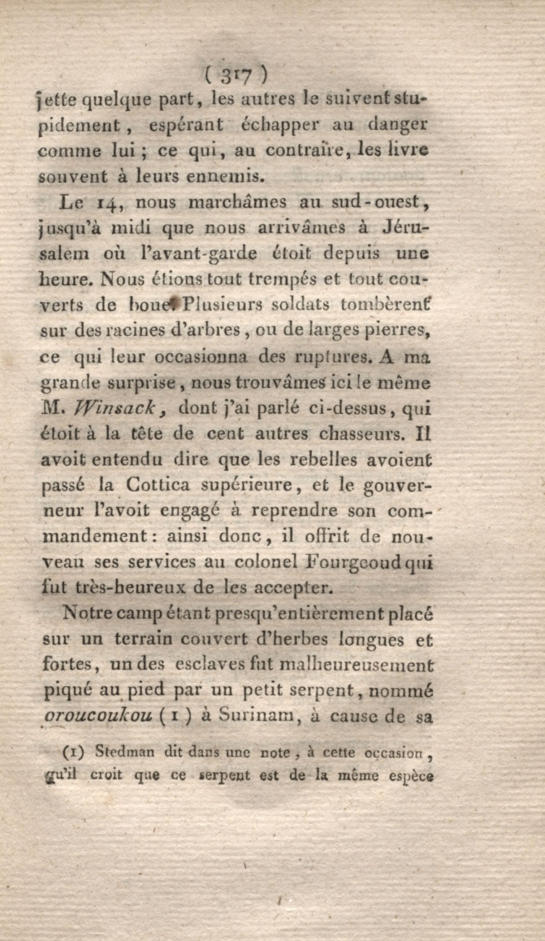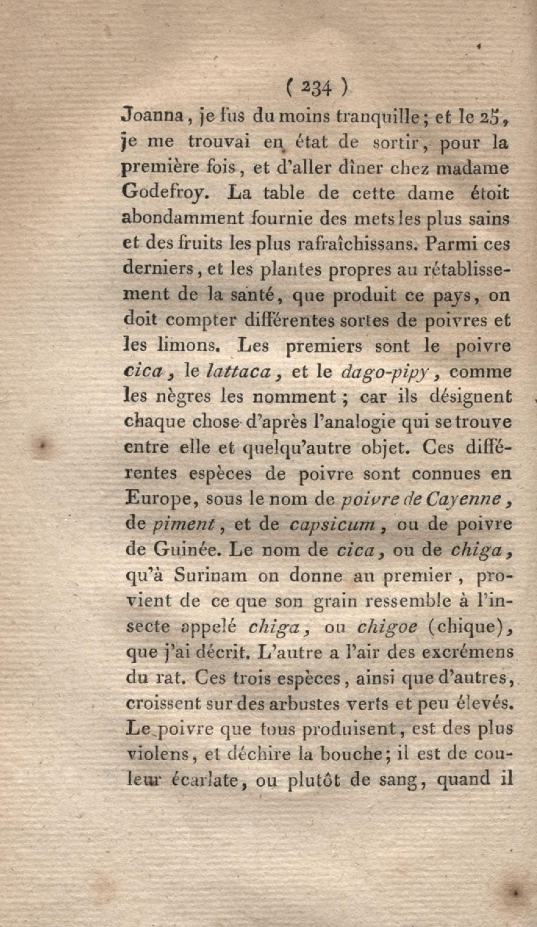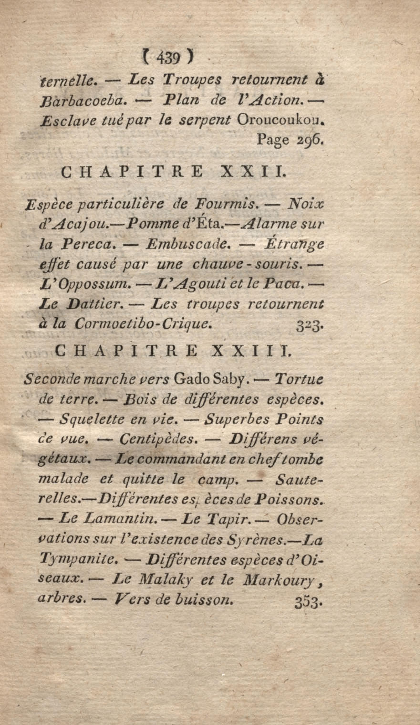 - Voyage à Surinam et dans l'intérieur de la Guiane, contenant La Relation de cinq années de courses et d'observations faites dans cette contrée intéressante et peu connue, avec des détails sur les Indiens de la Guiane et les Nègres : suivi du Tableau de la Colonie française de Cayenne. Tome second