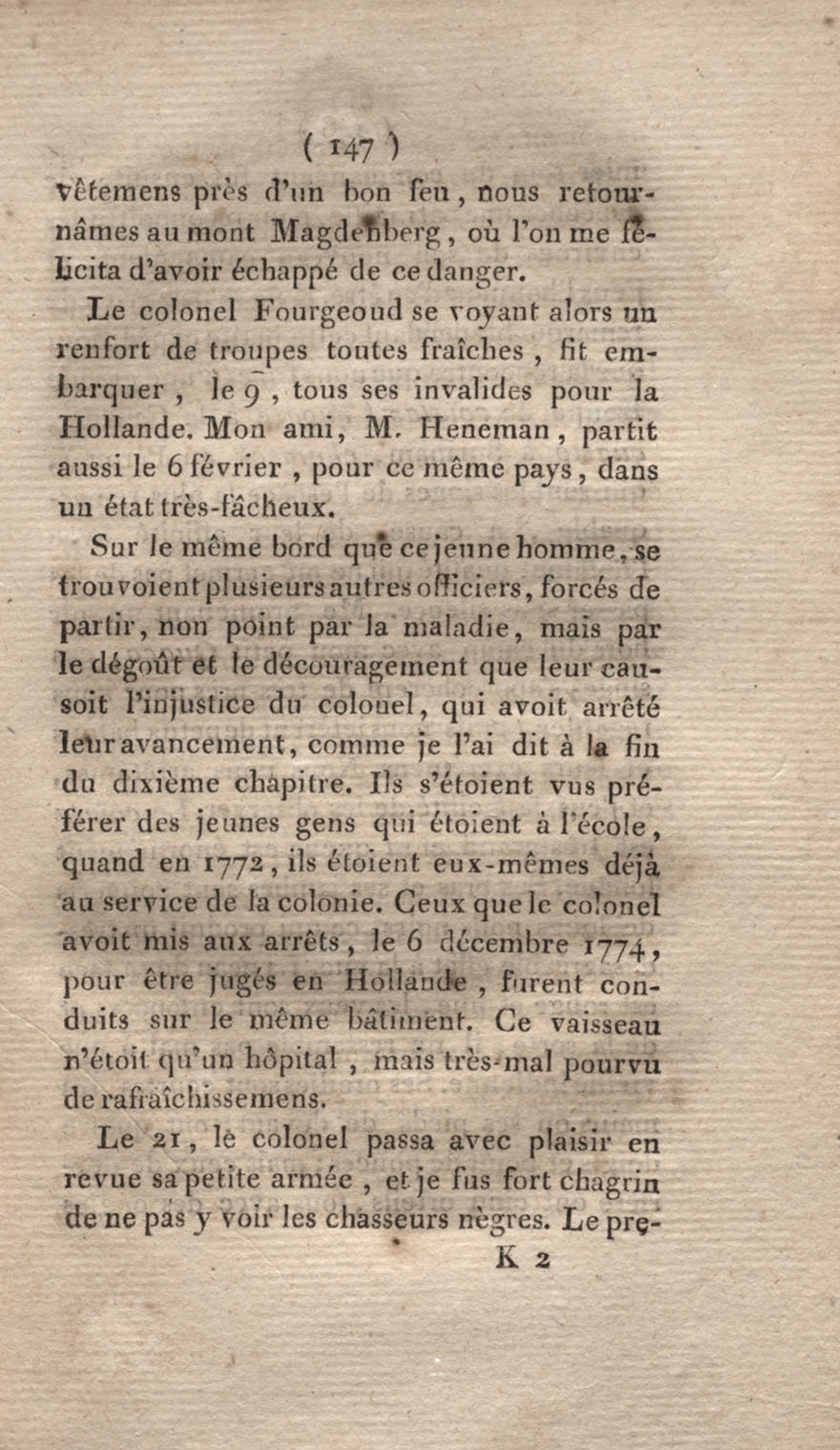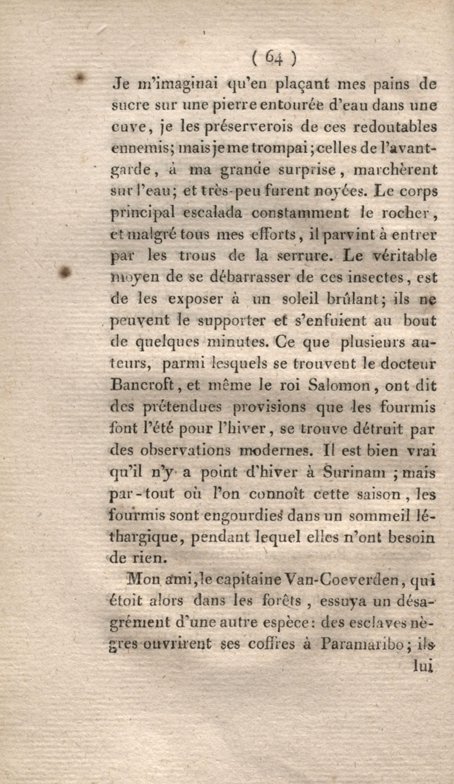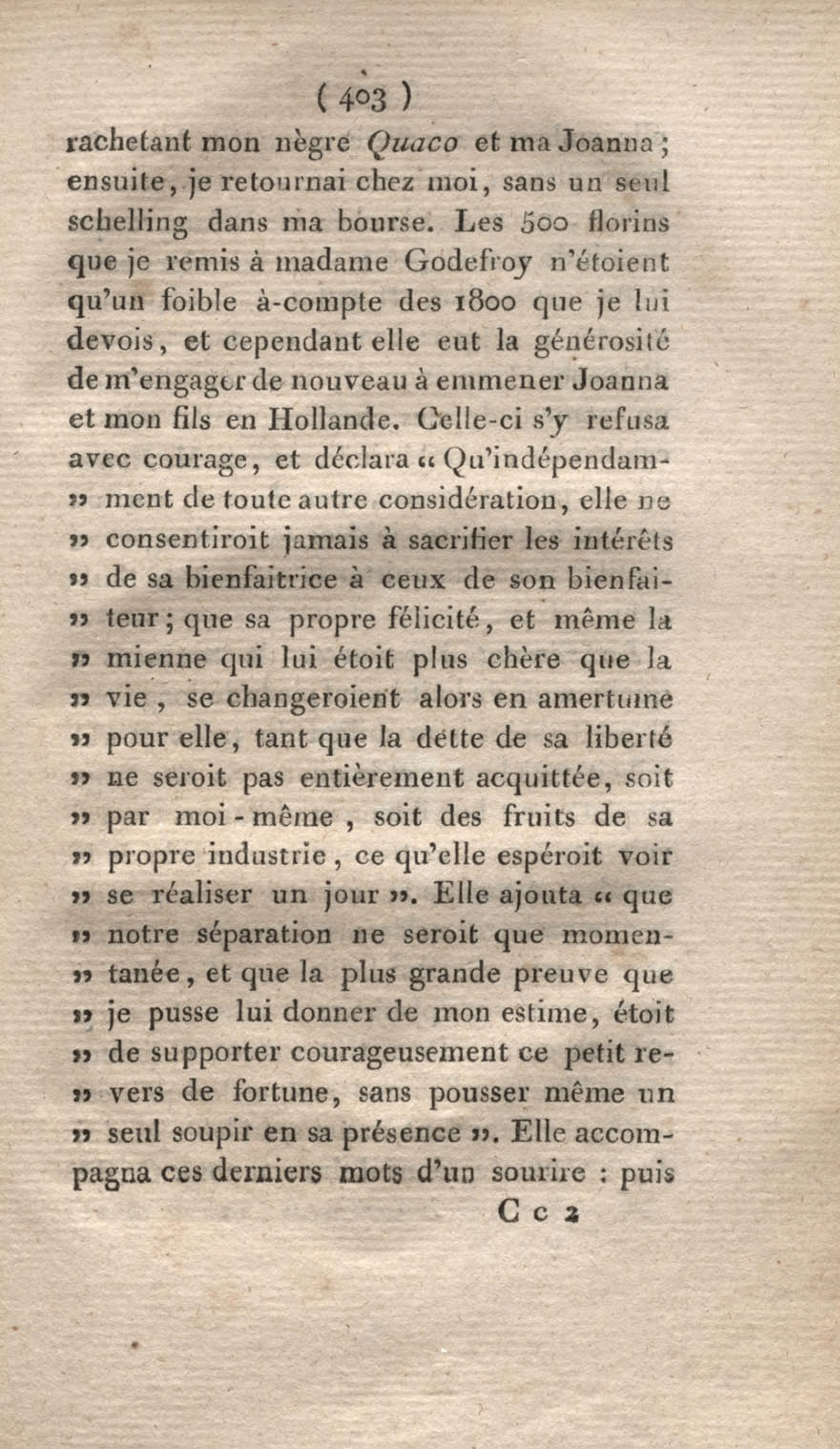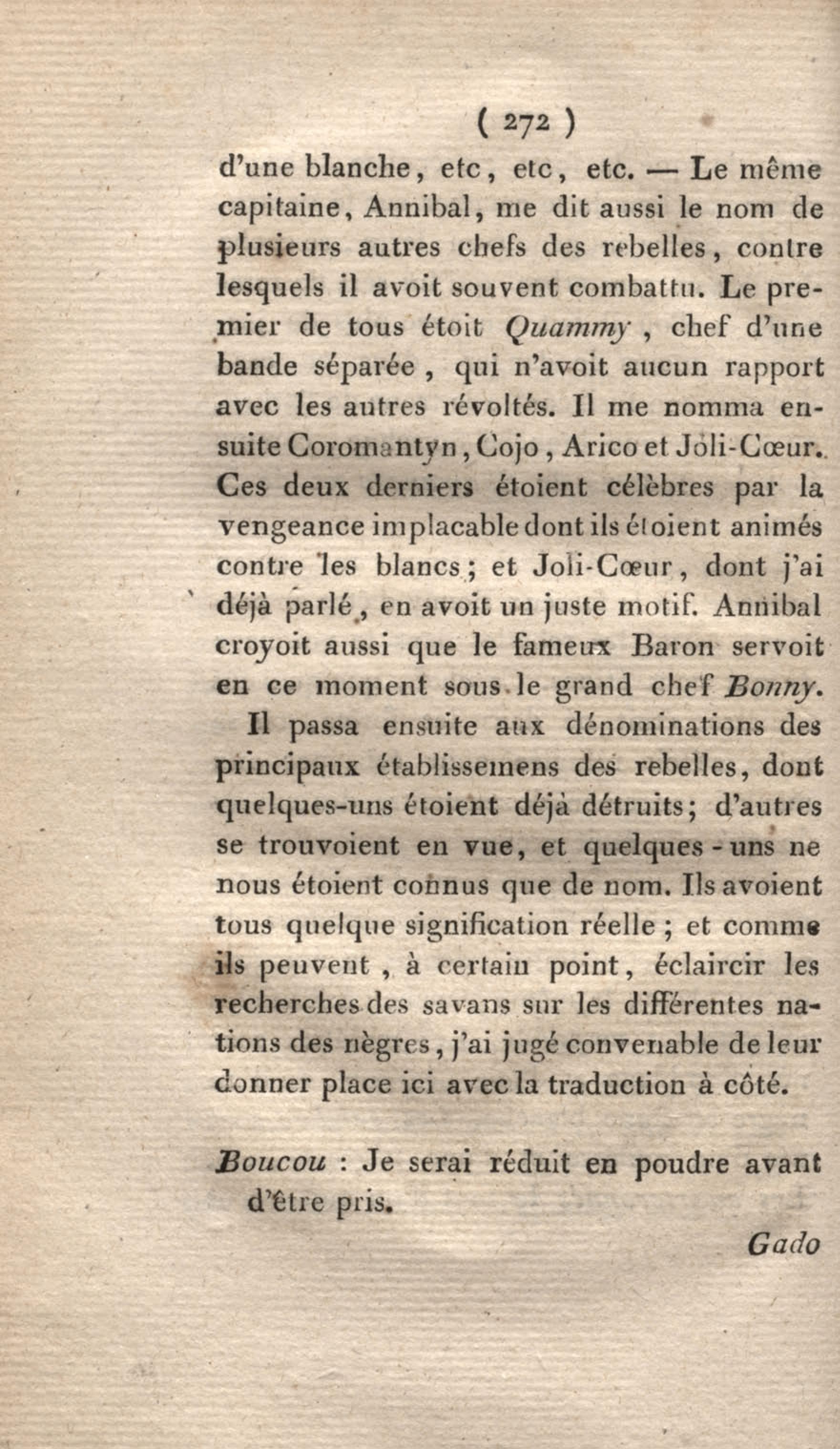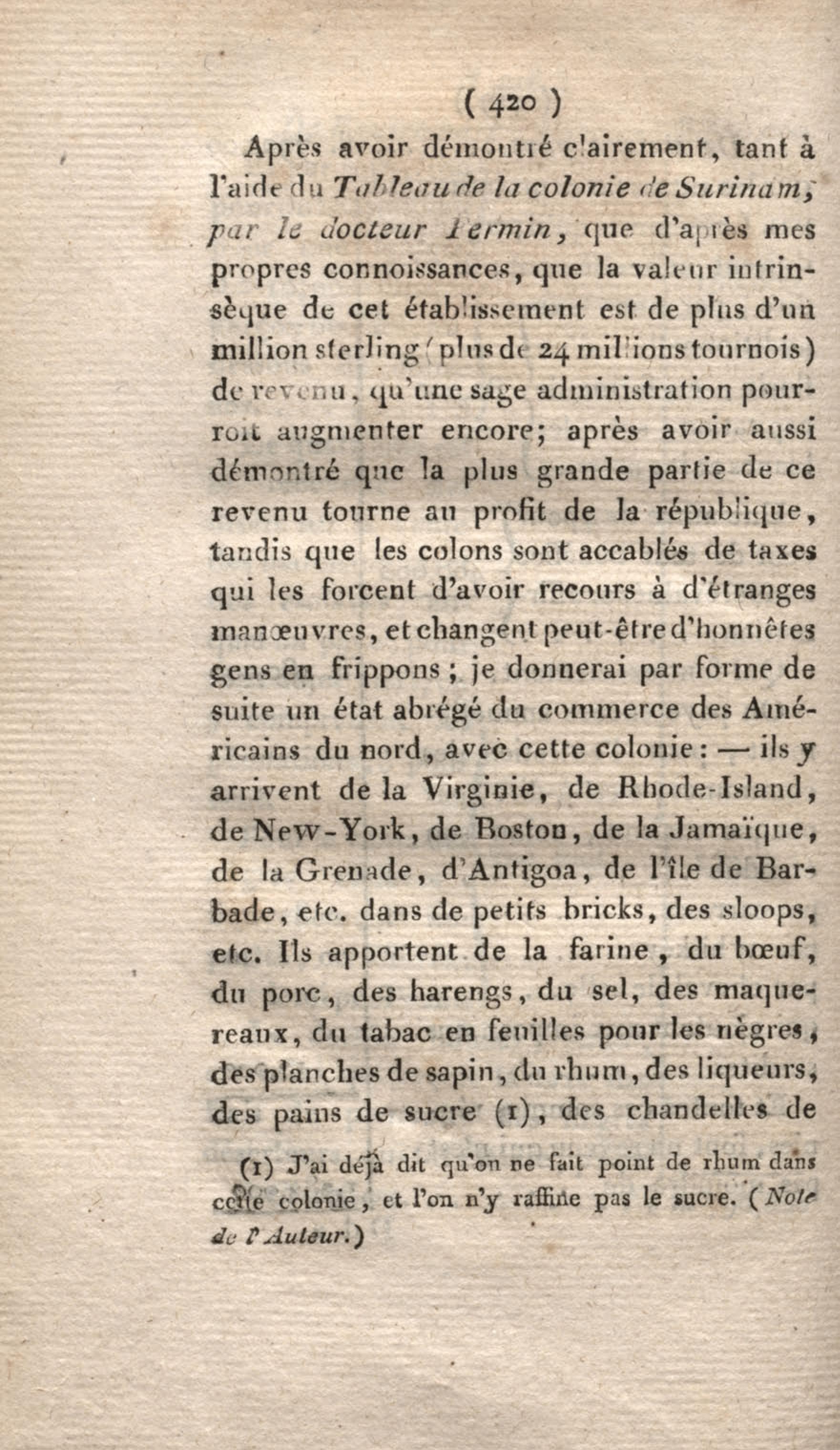 - Voyage à Surinam et dans l'intérieur de la Guiane, contenant La Relation de cinq années de courses et d'observations faites dans cette contrée intéressante et peu connue, avec des détails sur les Indiens de la Guiane et les Nègres : suivi du Tableau de la Colonie française de Cayenne. Tome second