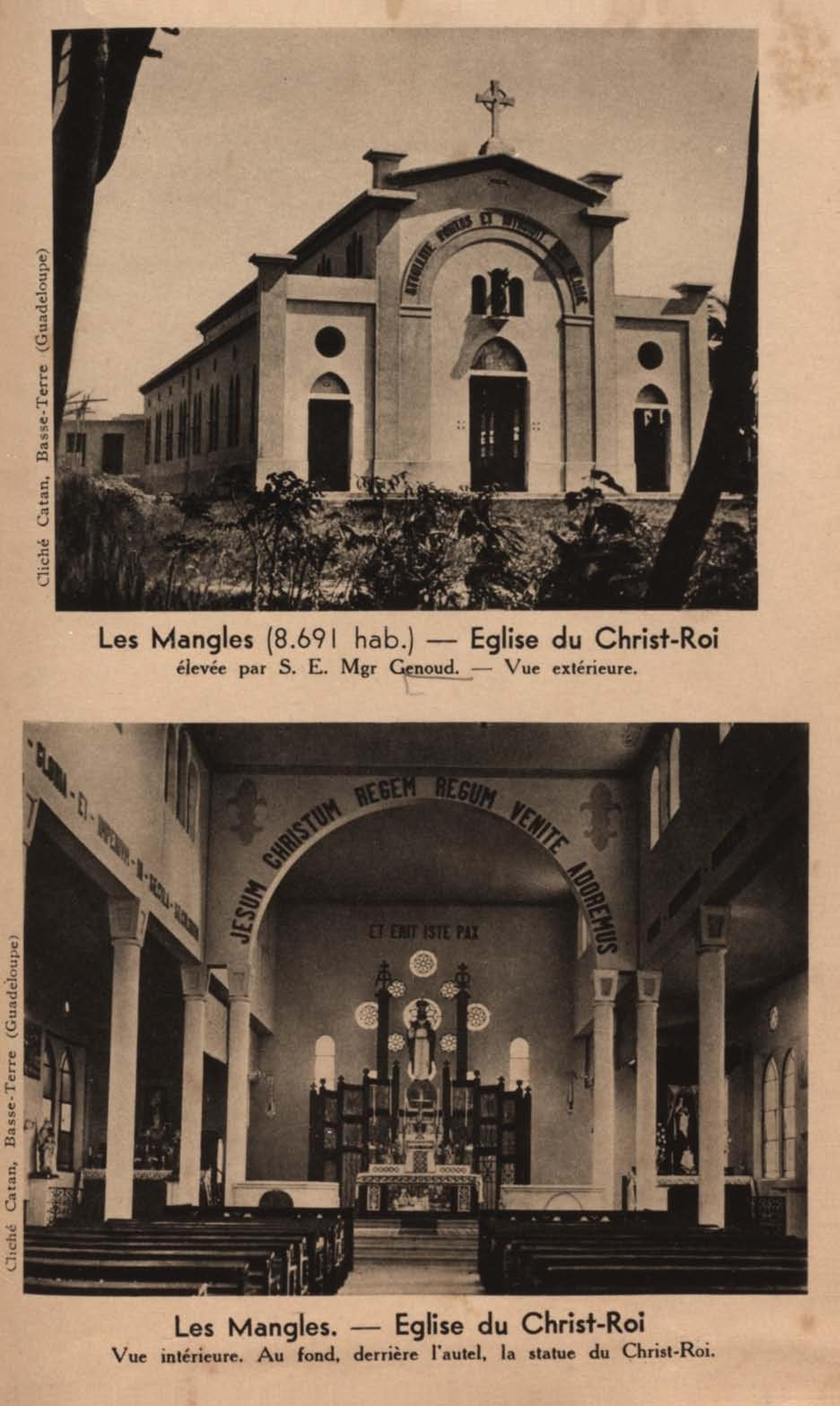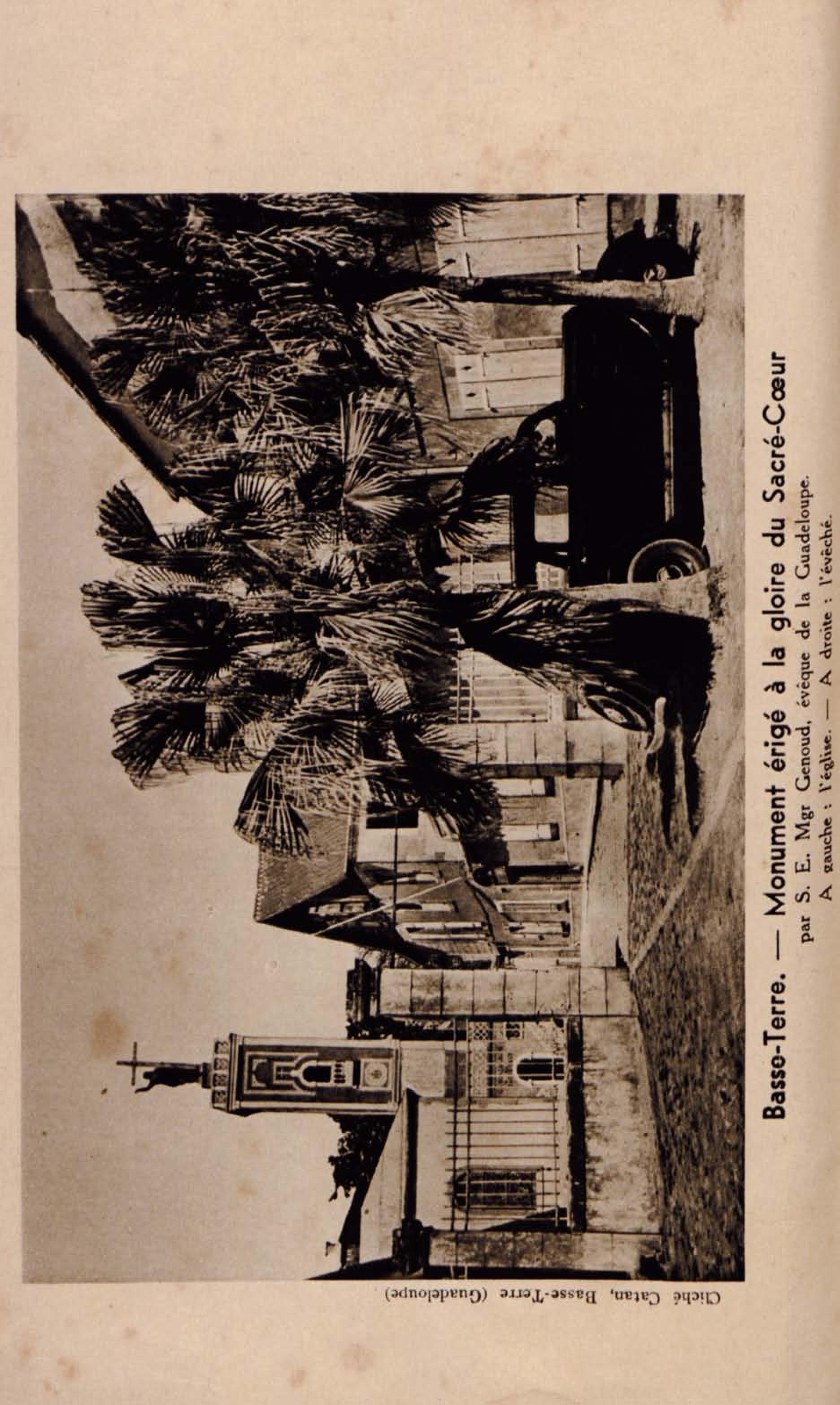 Basse-Terre - Monument érigé à la gloire du Sacré-Coeur par S.E. Mgr Genoud, évêque de la Guadeloupe. A gauche : l'église.- A droite : l'évêché
