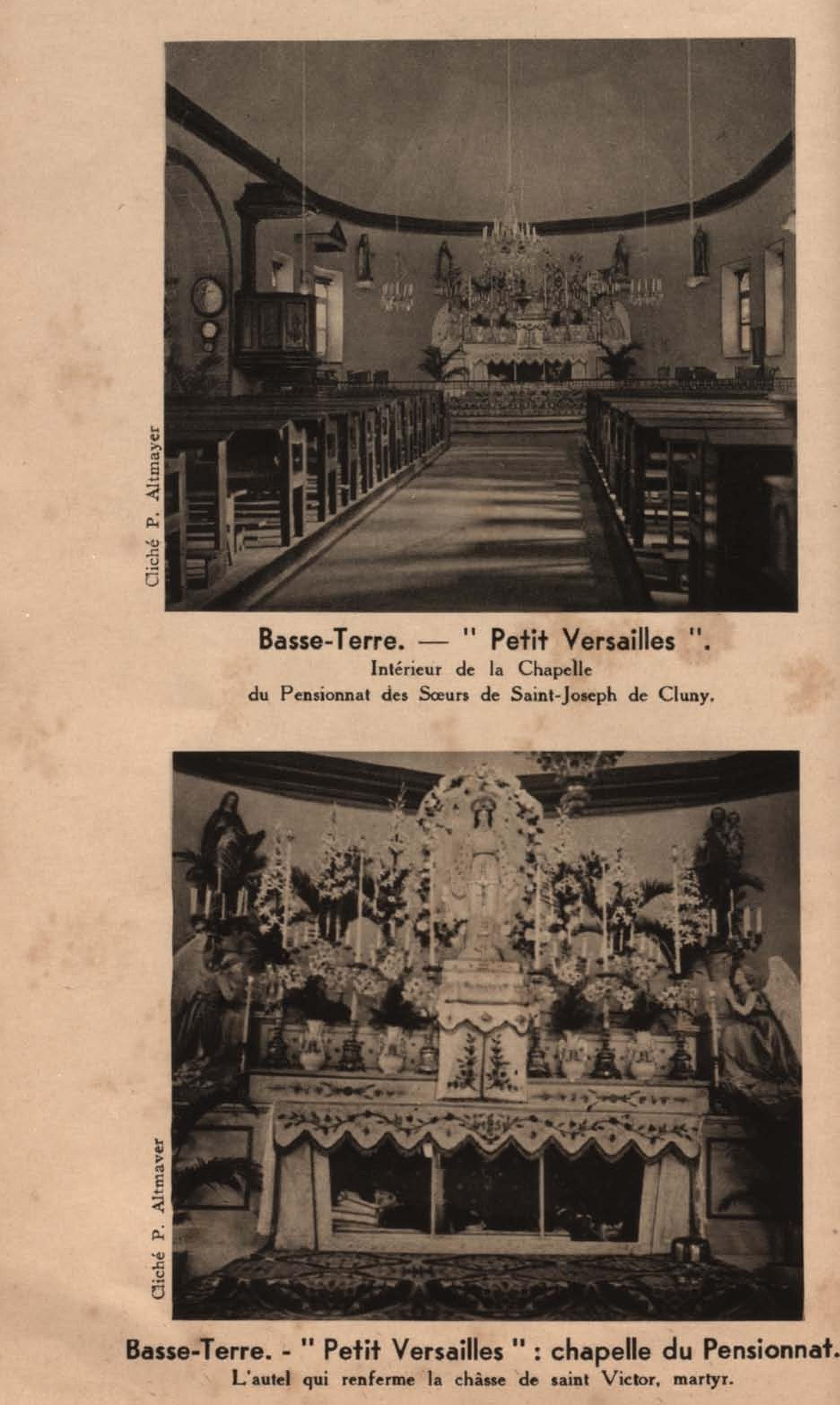 Basse-Terre . - « Petit Versailles »: chapelle du Pensionnat. L' autel qui renferme la châsse de saint Victor, martyr