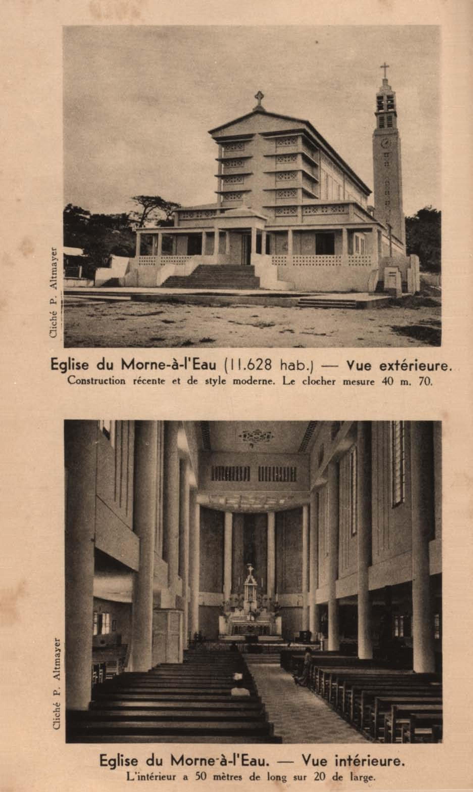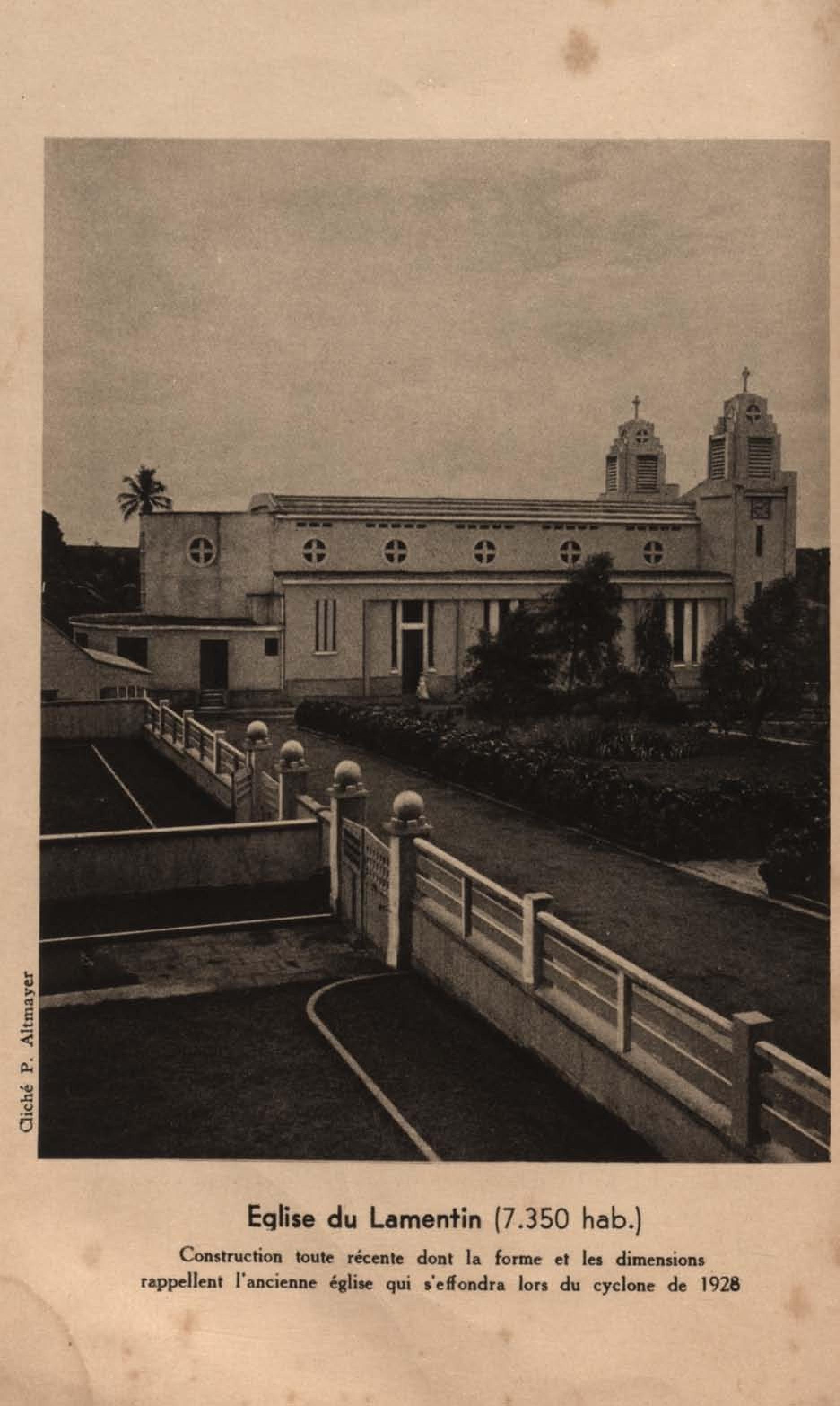 Eglise du Lamentin ( 7.350 hab ). Construction toute récente dont la forme et les dimensions rappellent l'ancienne église qui s'effondra lors du cyclone de 1928