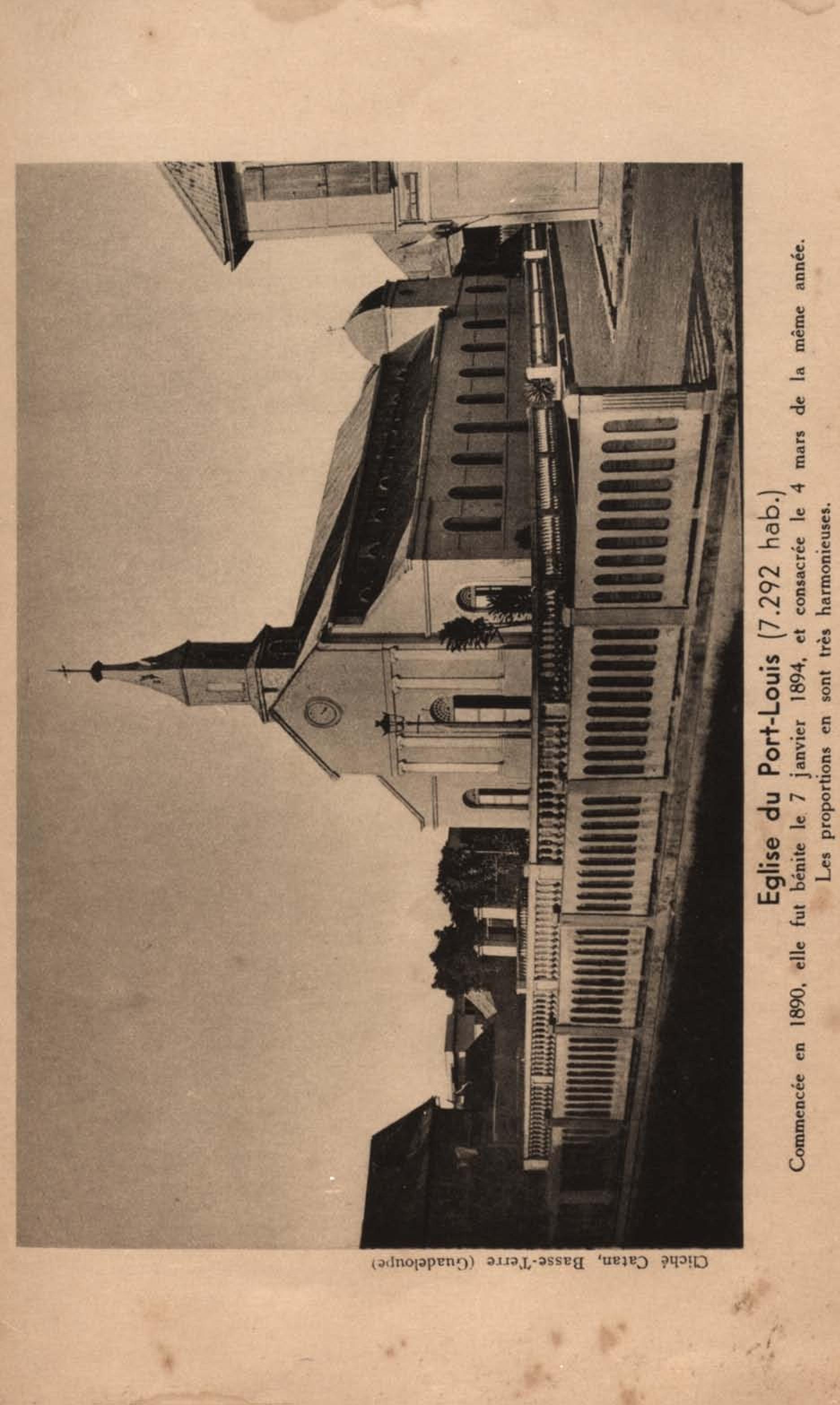 Eglise de Pointe-à-Pitre ( 30.465 hab ). Elle est bâtie sur l'emplacement d'une autre église qui avait été endommagée par le tremblement de terre de 1843. Commencée en 1847, elle fut livrée au culte en 1853, et consacrée le 29 juin 1879. Elle peut contenir 3.000 personnes |