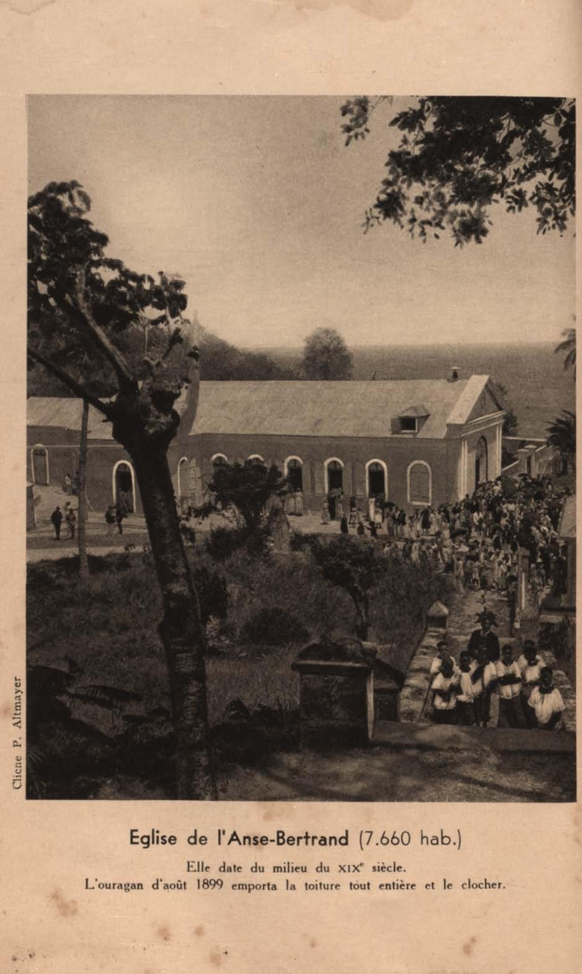Eglise de l'Anse-Bertrand ( 7.660 hab ). Elle date du milieu du XIXe siècle. L'ouragan d'août 1899 emporta la toiture tout entière et le clocher |