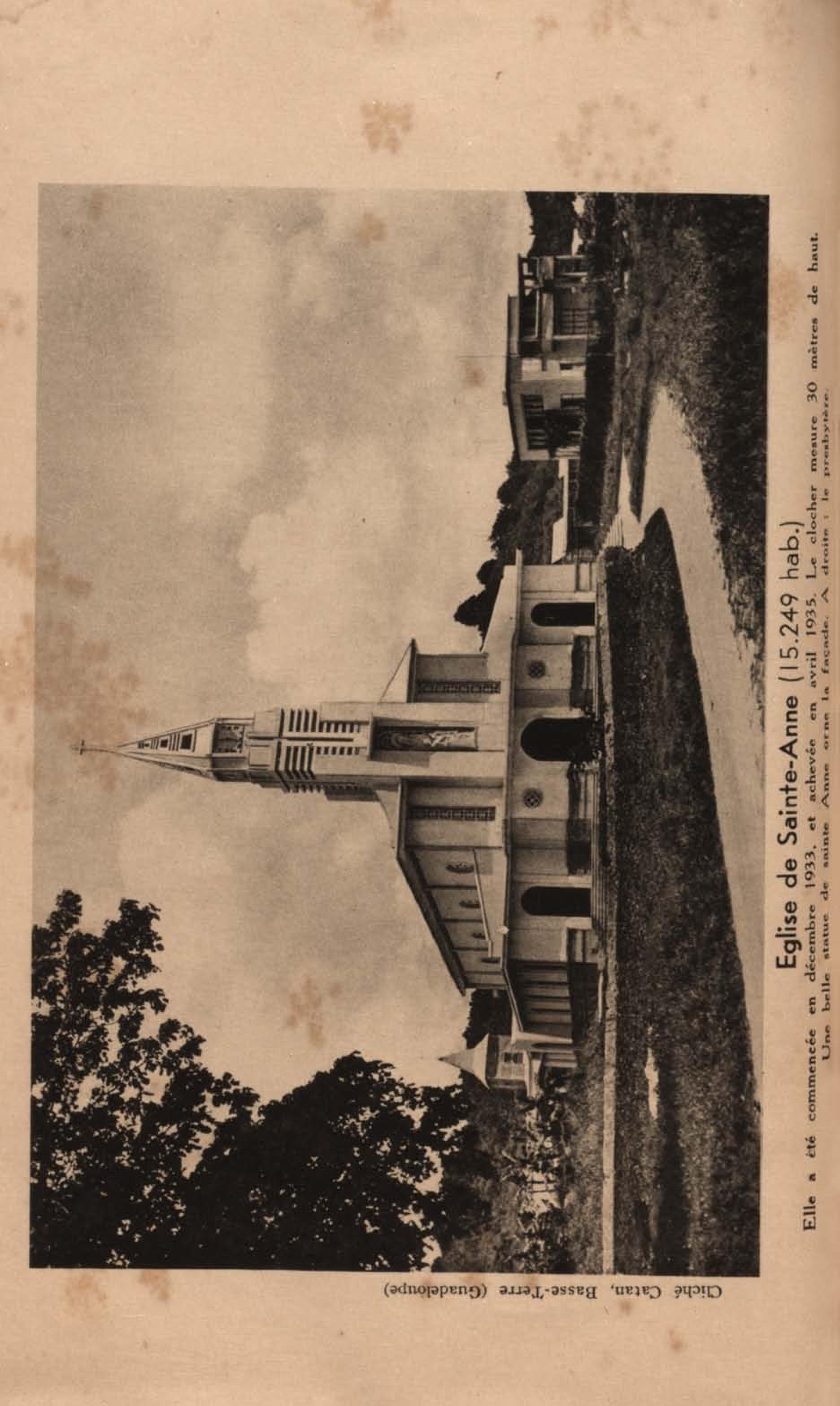 Eglise de Sainte-Anne ( 15.249 hab ). Elle a été commencée en décembre 1933, et achevée en avril 1935. Le clocher mesure 30 mètres de haut. Une belle statue de sainte Anne orne la façade. A droite : le presbytère |