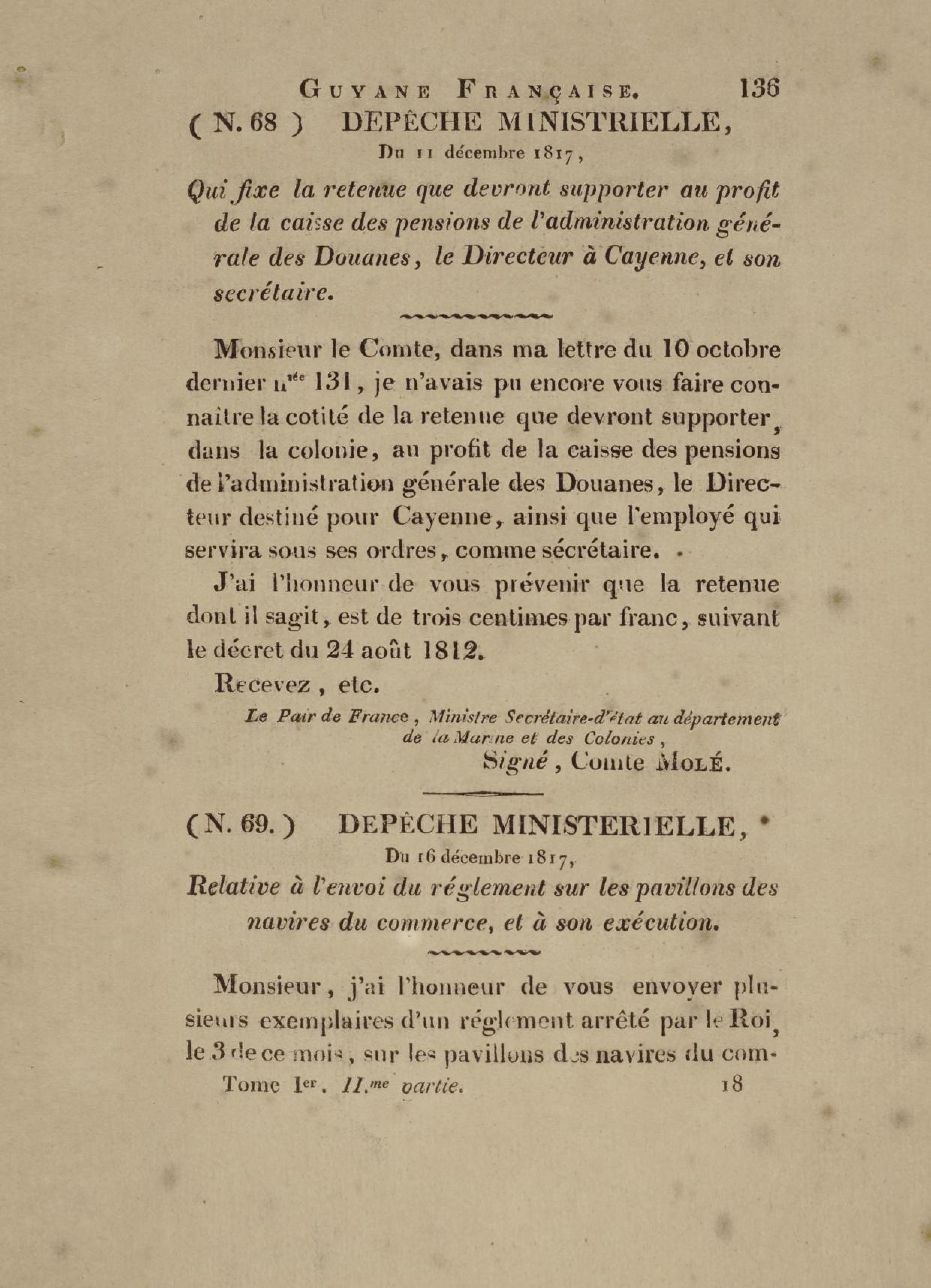 Code de la Guyane française. Deuxième partie, Depuis la reprise de possession par la France, en novembre 1817. Tome premier