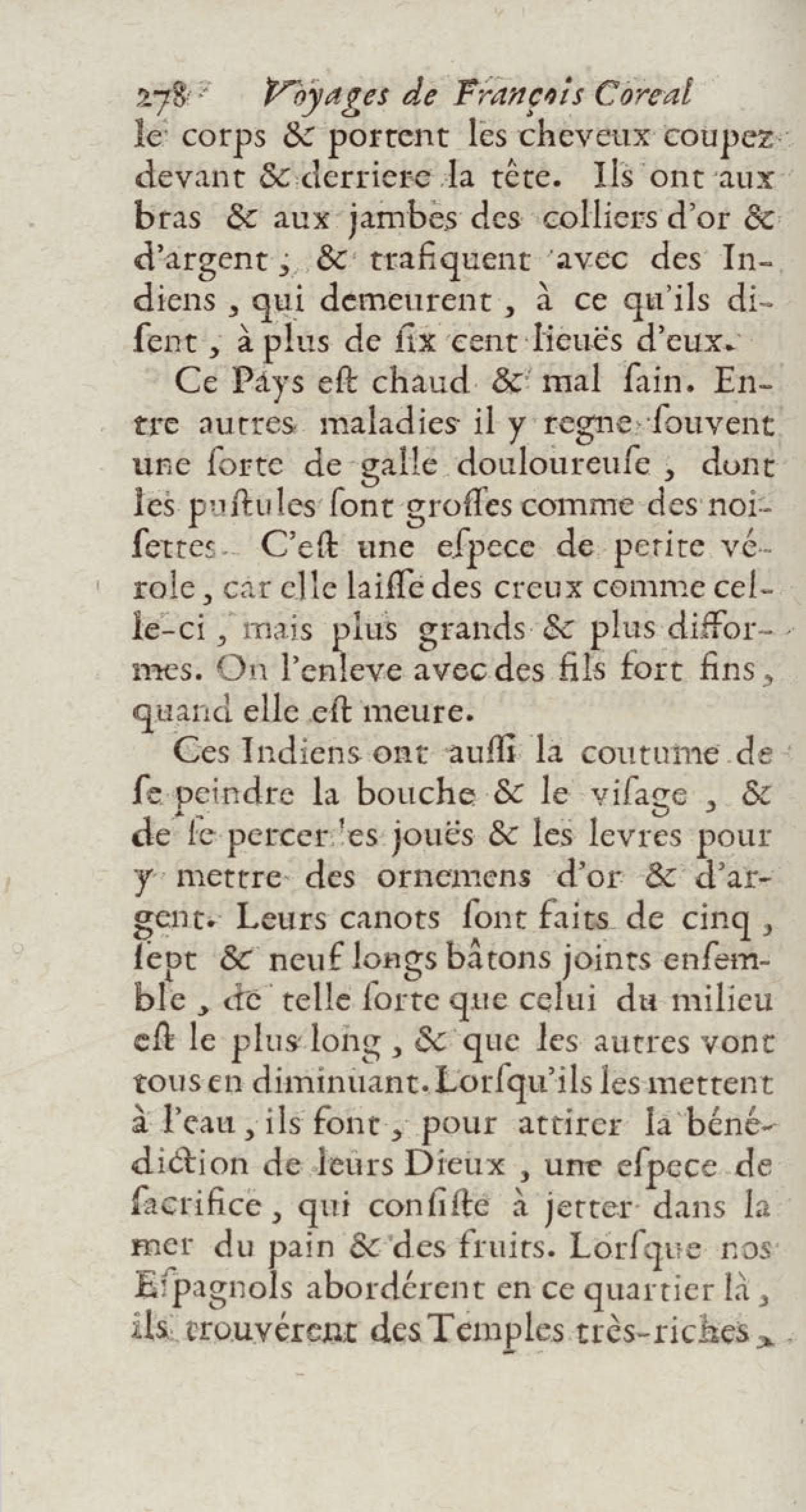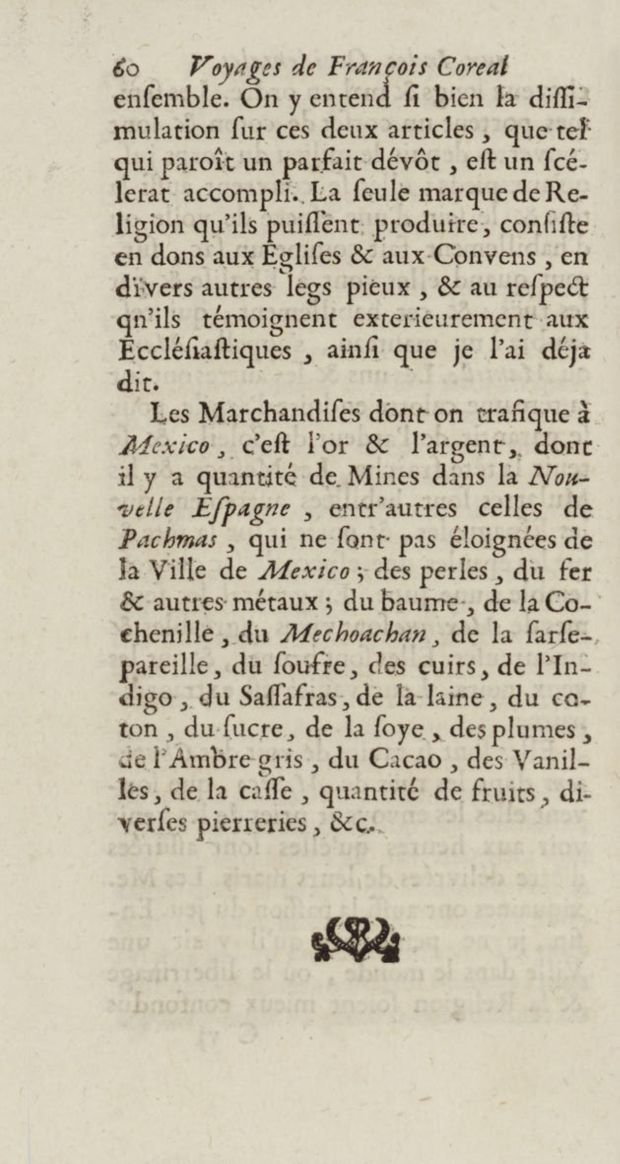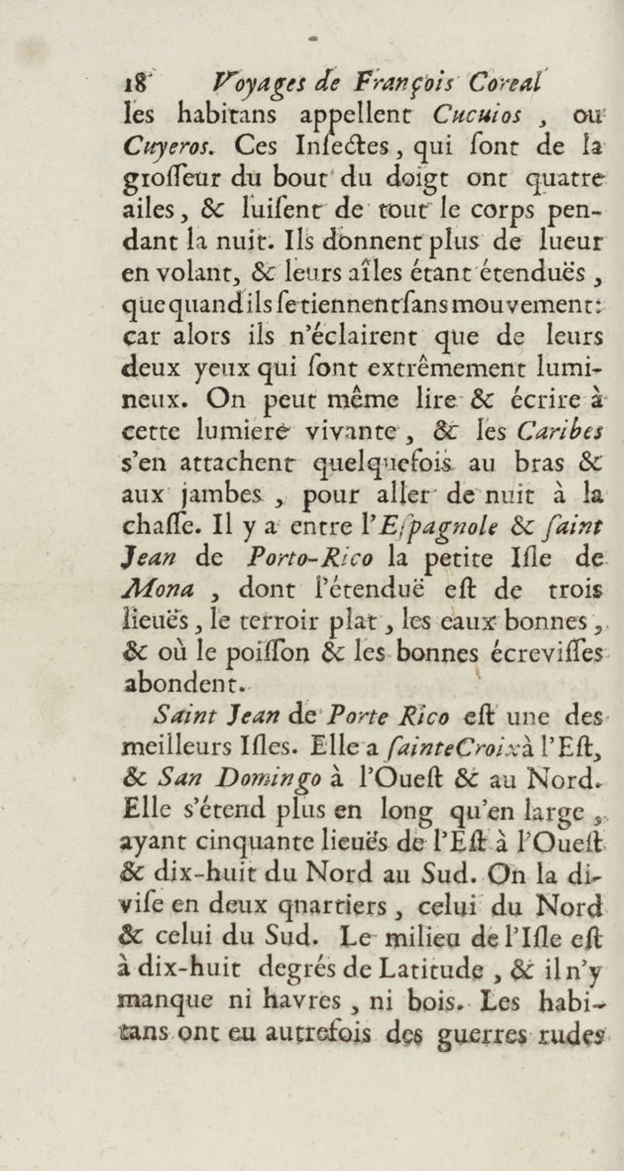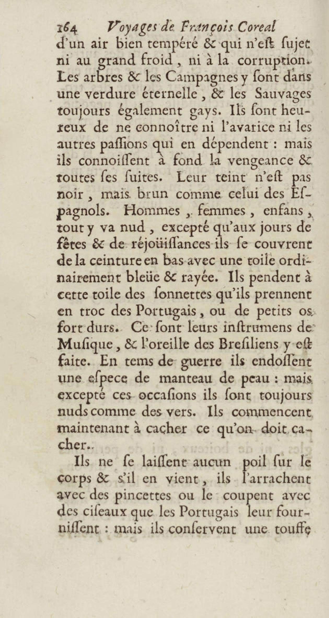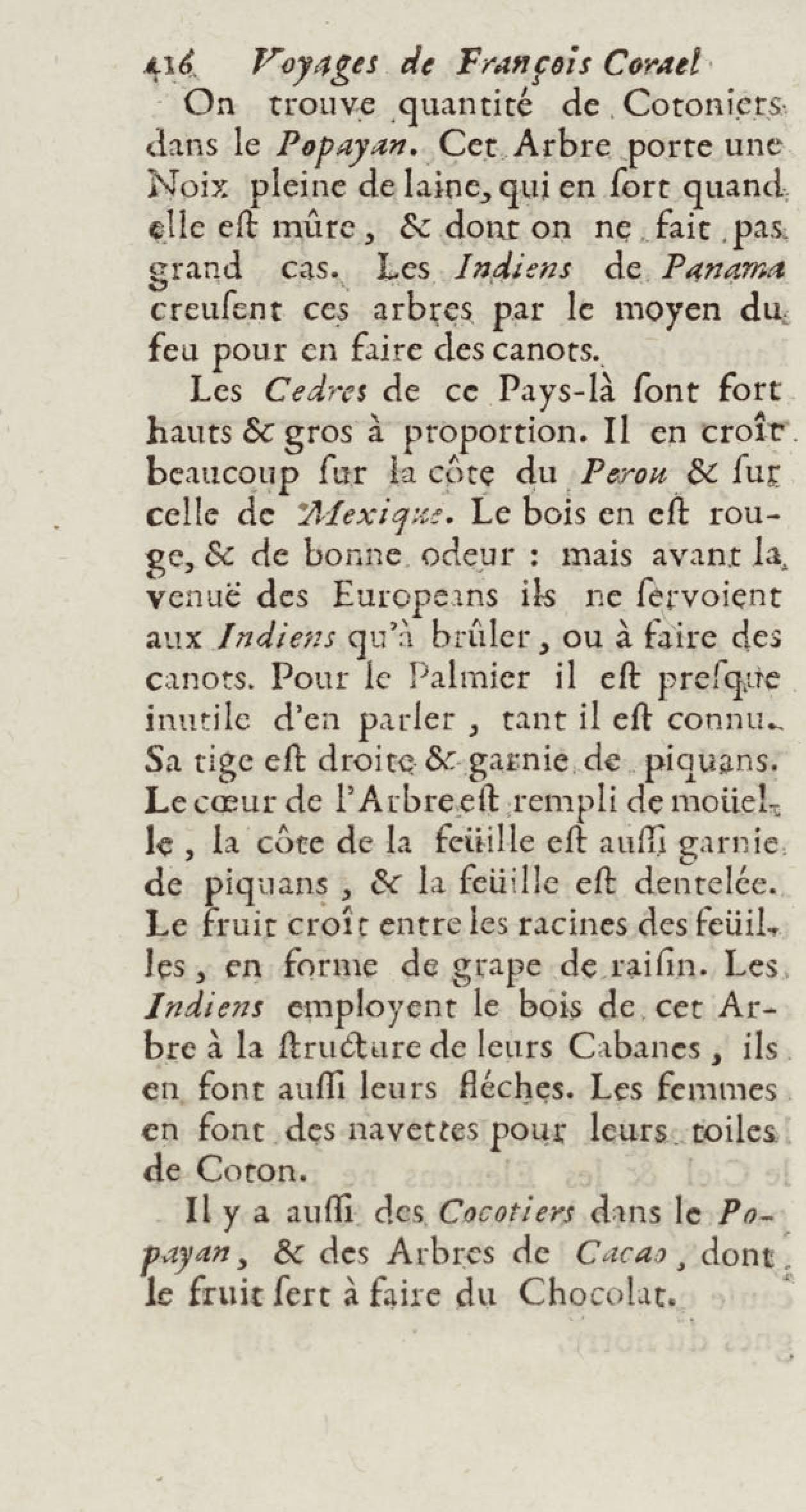 - Voyages de François Coreal aux Indes occidentales, contenant ce qu'il y a vû de plus remarquable pendant son séjour depuis 1666 jusqu'en 1697 : traduits de l'espagnol : avec une relation de la Guiane de Walter Raleigh, & le voyage de Narbrough à la mer du sud par le détroit de Magellan, &c. : nouvelle édition revûë, corrigée, & augmentée d'une nouvelle Découverte des Indes méridionales & des terres australes, enrichie de figures. Tome premier