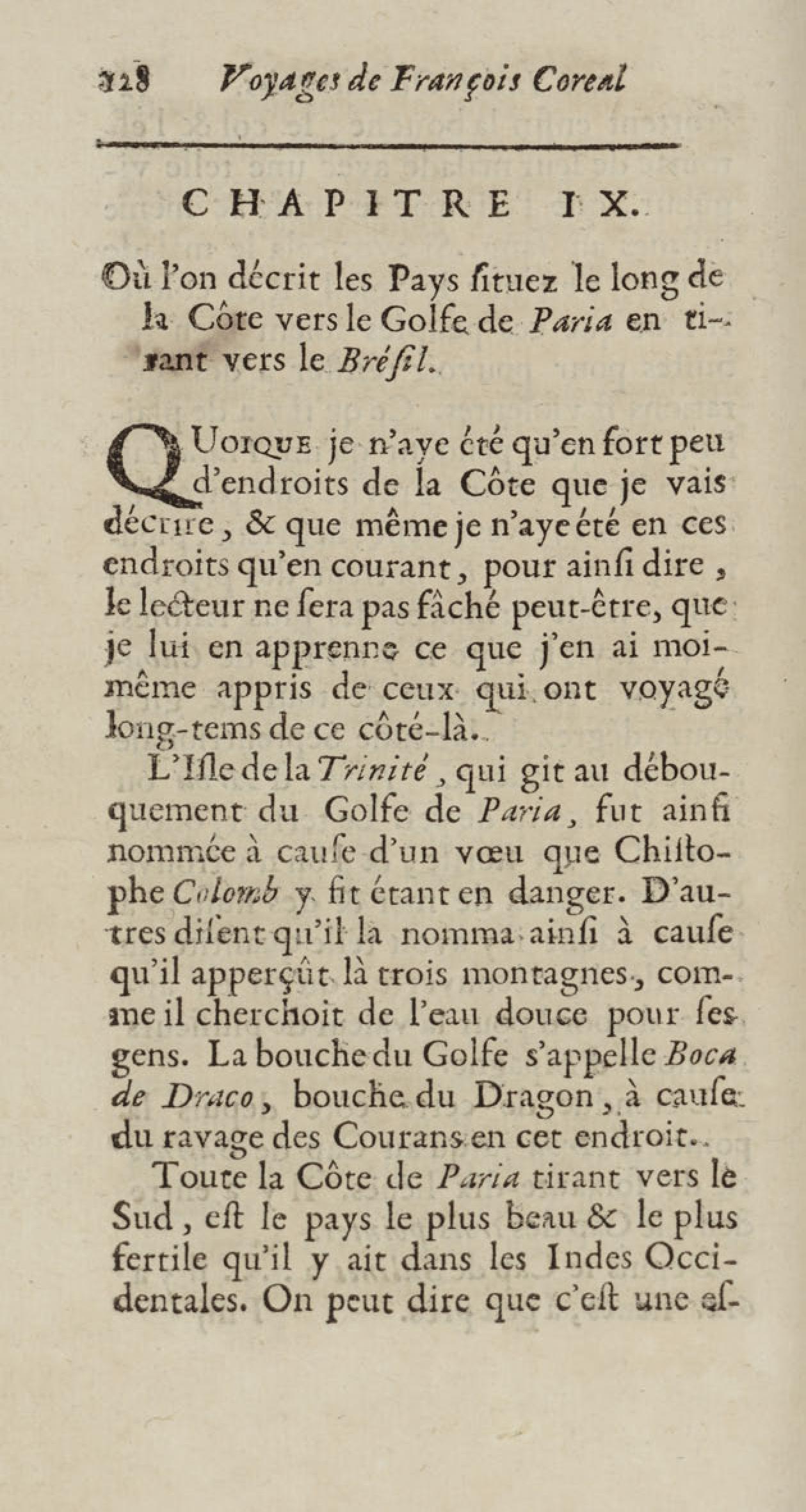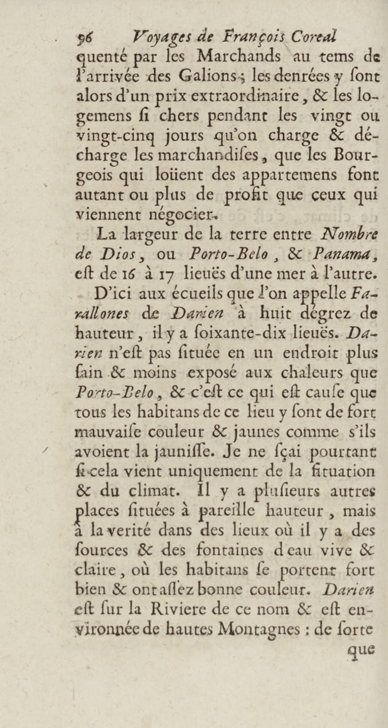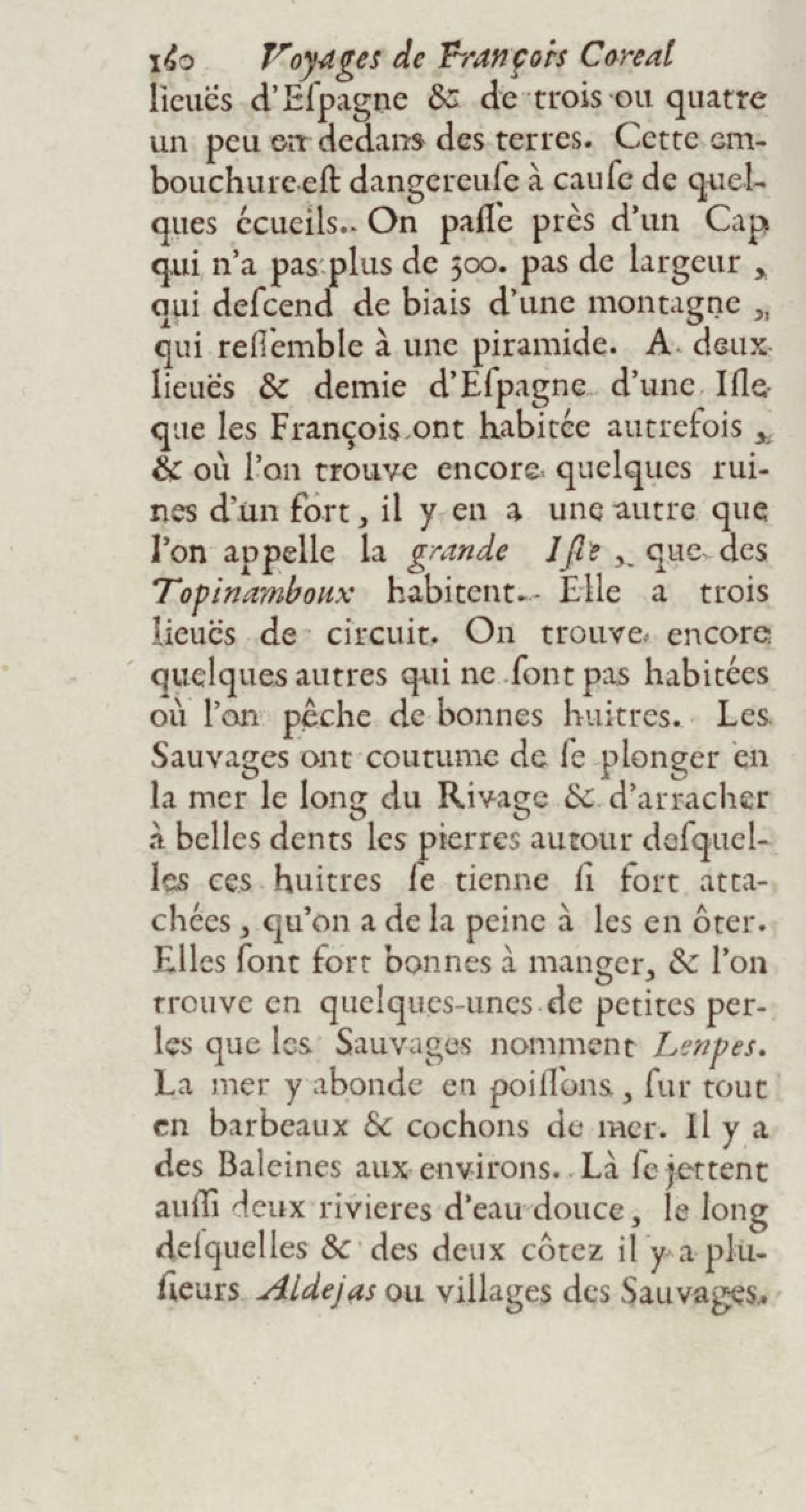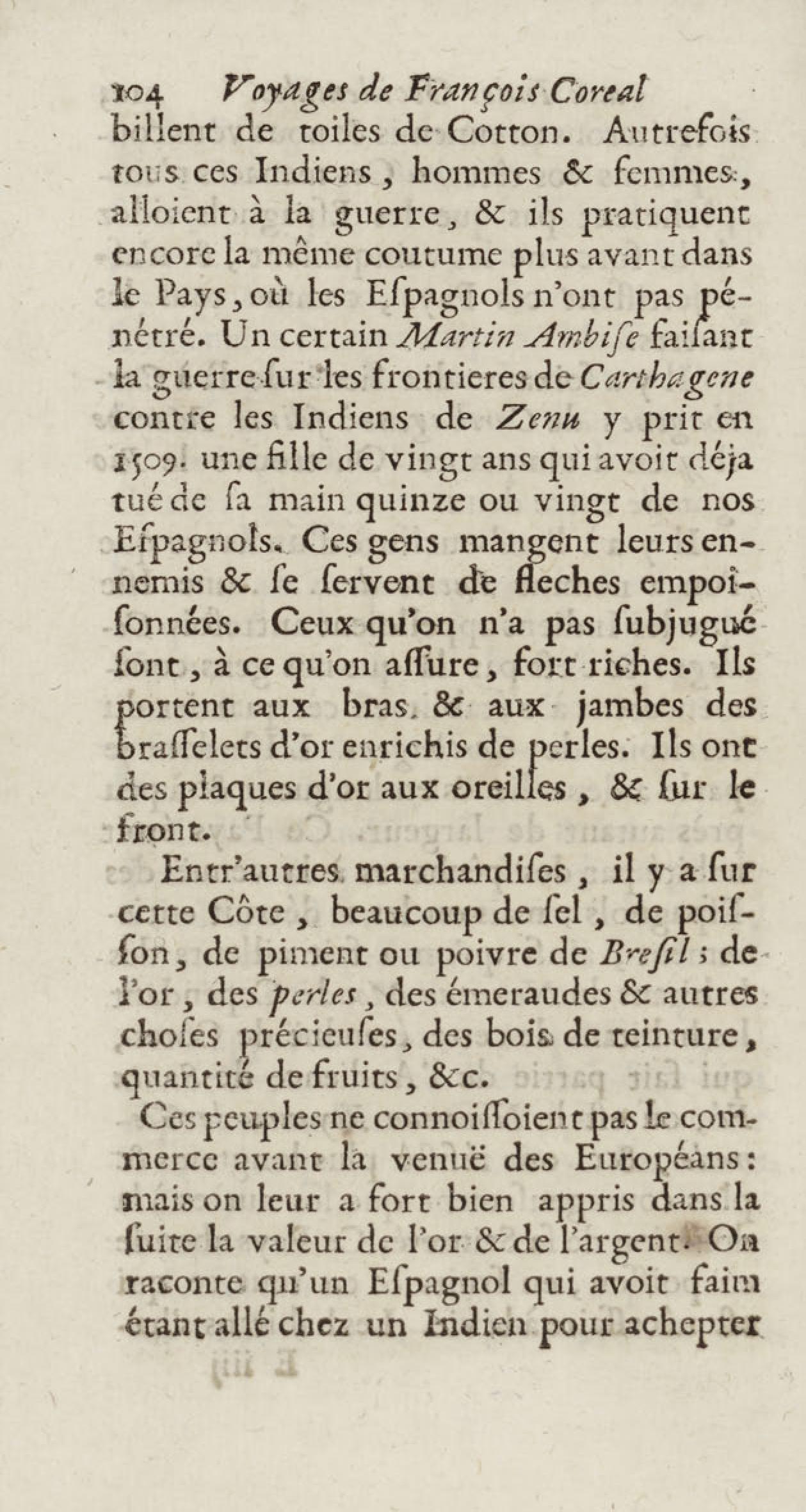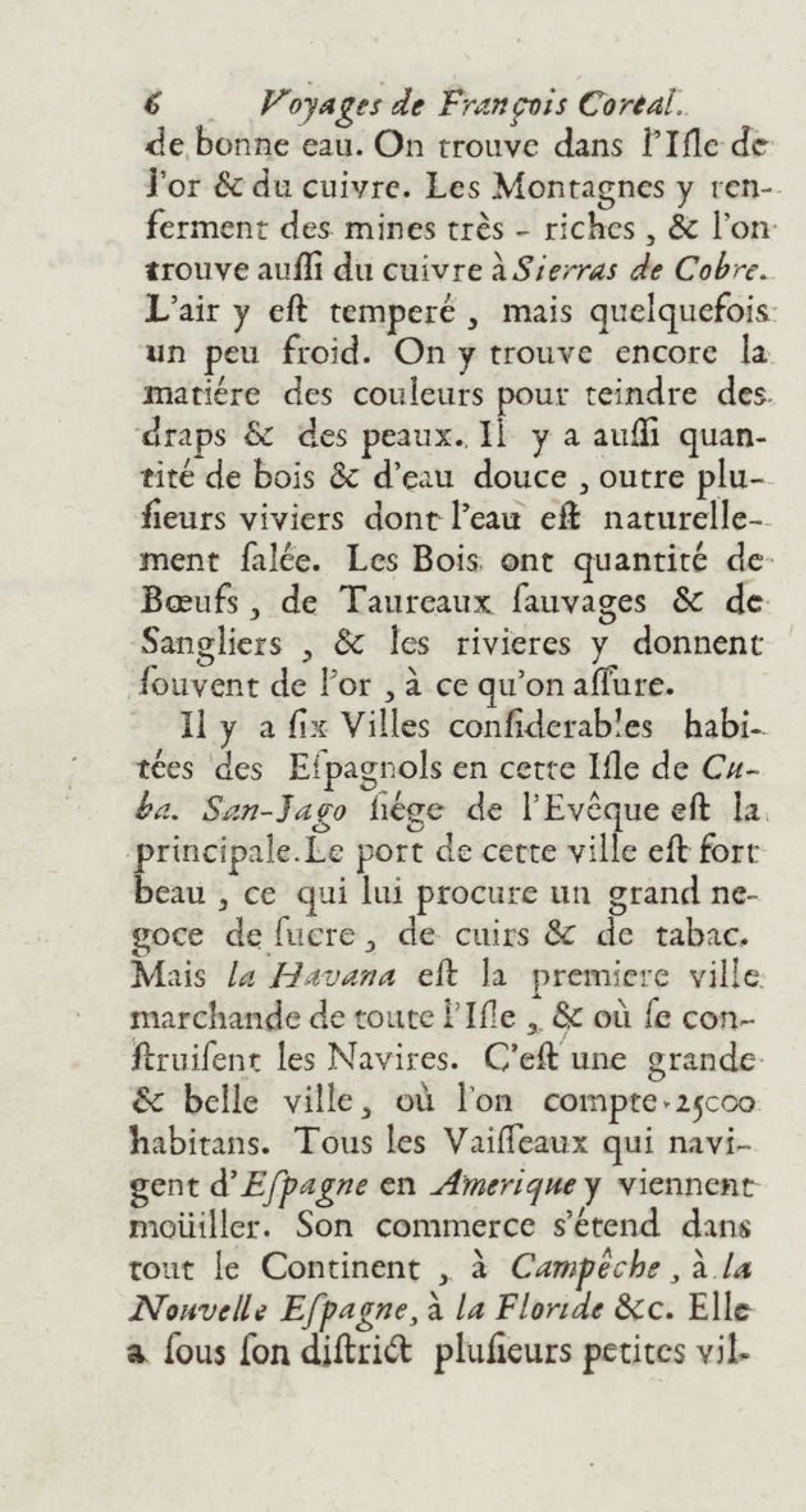 - Voyages de François Coreal aux Indes occidentales, contenant ce qu'il y a vû de plus remarquable pendant son séjour depuis 1666 jusqu'en 1697 : traduits de l'espagnol : avec une relation de la Guiane de Walter Raleigh, & le voyage de Narbrough à la mer du sud par le détroit de Magellan, &c. : nouvelle édition revûë, corrigée, & augmentée d'une nouvelle Découverte des Indes méridionales & des terres australes, enrichie de figures. Tome premier