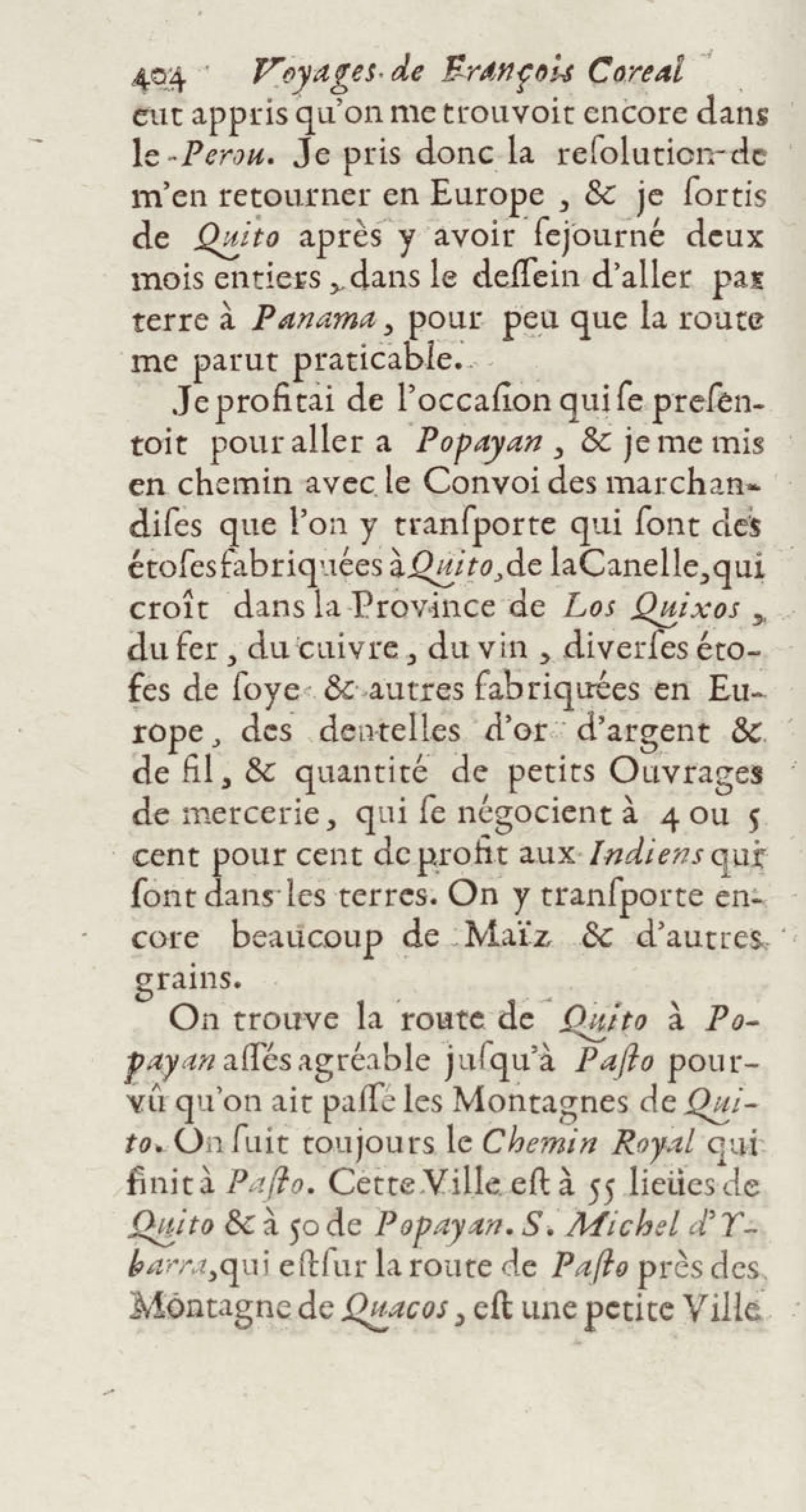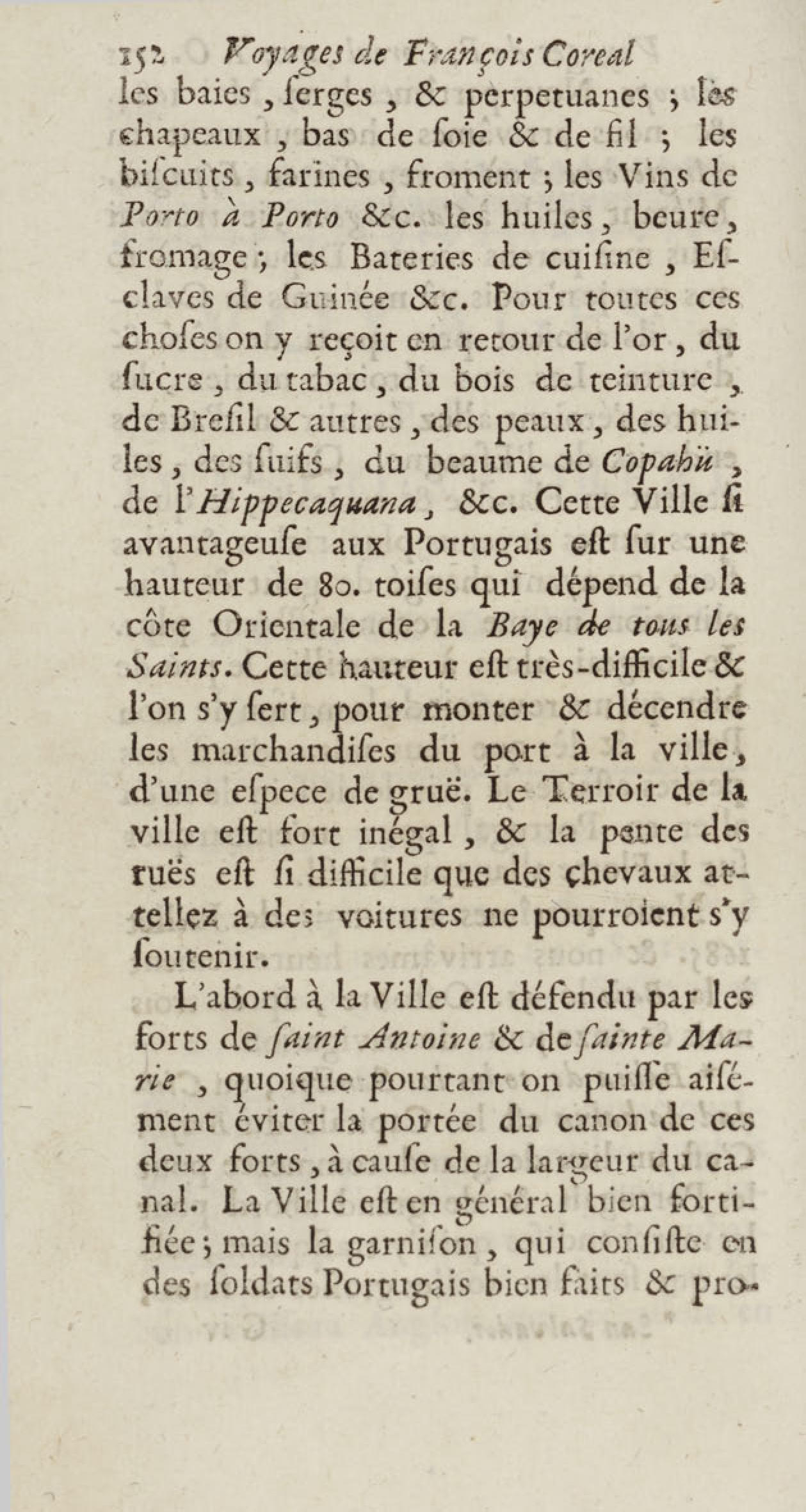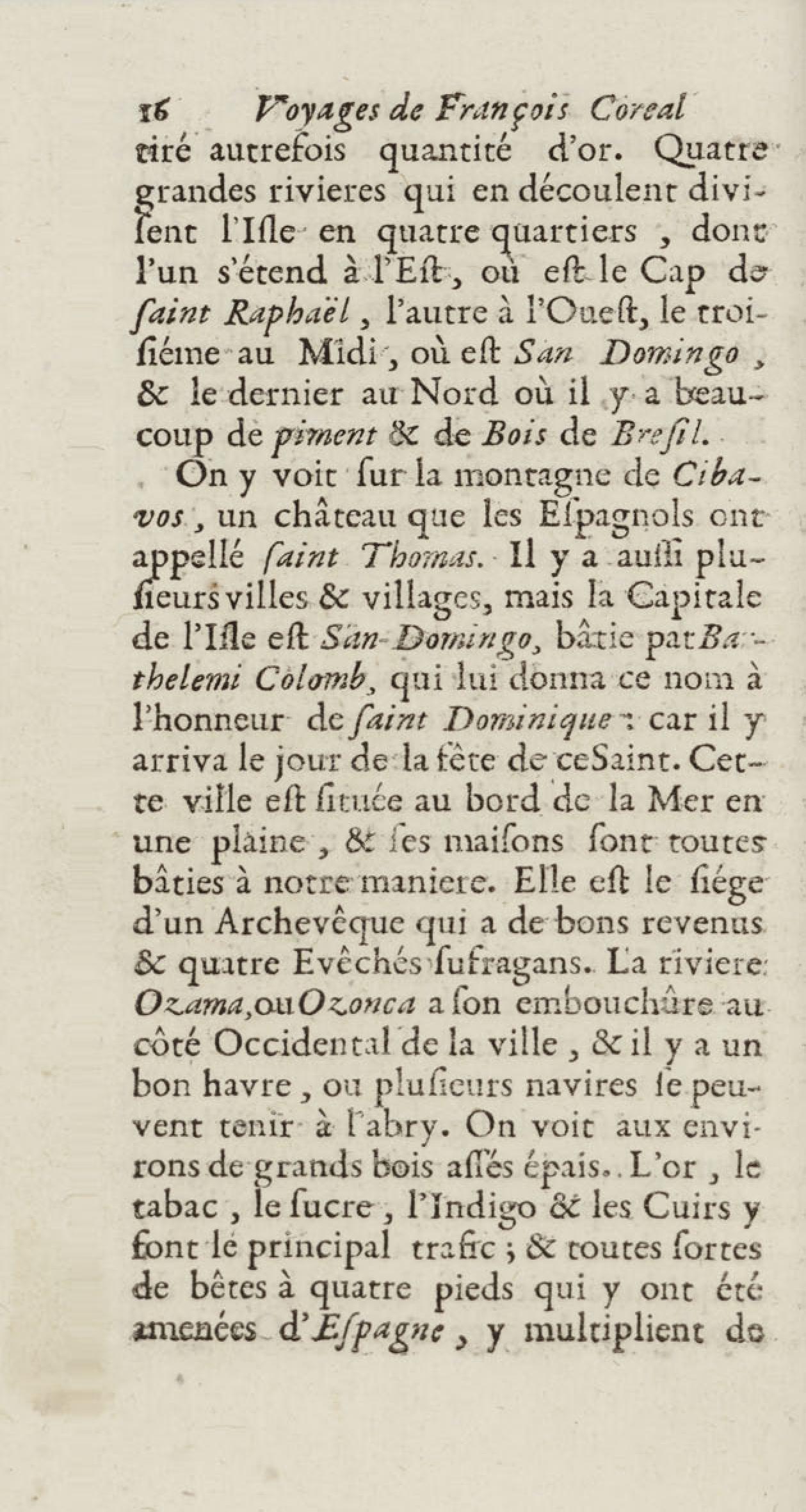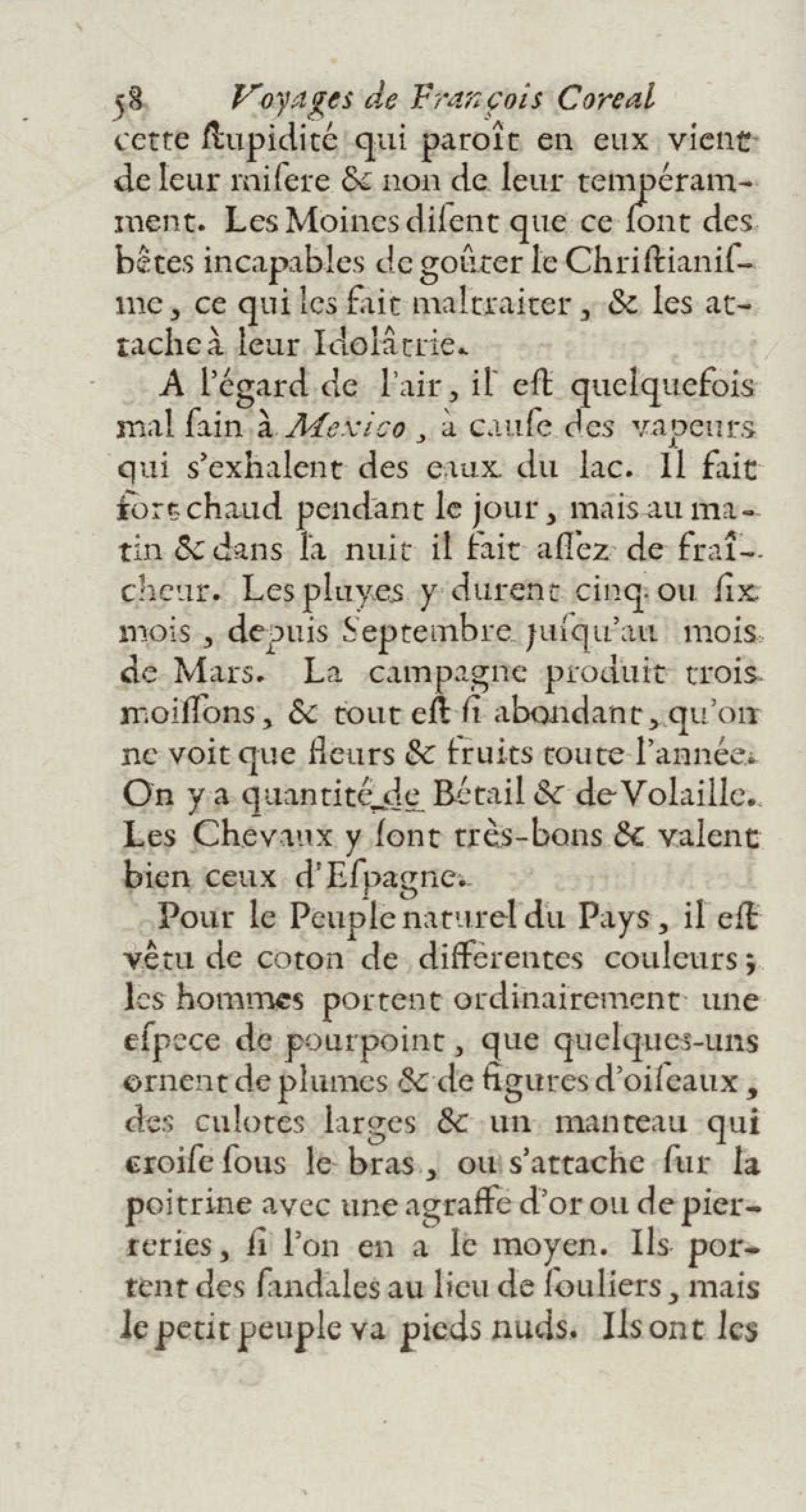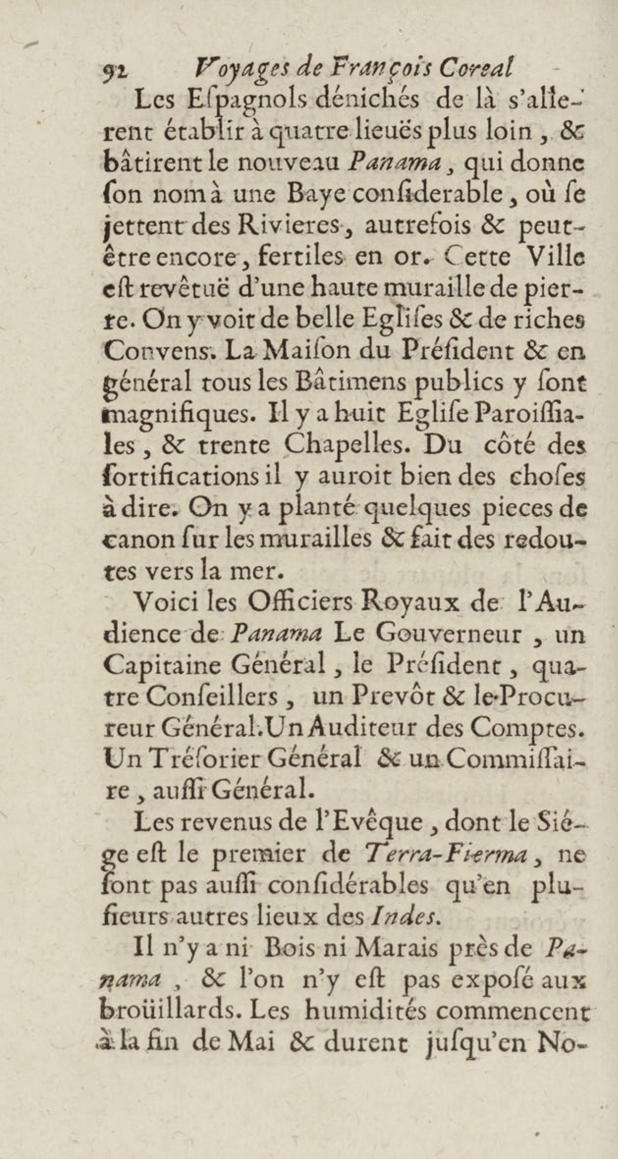 - Voyages de François Coreal aux Indes occidentales, contenant ce qu'il y a vû de plus remarquable pendant son séjour depuis 1666 jusqu'en 1697 : traduits de l'espagnol : avec une relation de la Guiane de Walter Raleigh, & le voyage de Narbrough à la mer du sud par le détroit de Magellan, &c. : nouvelle édition revûë, corrigée, & augmentée d'une nouvelle Découverte des Indes méridionales & des terres australes, enrichie de figures. Tome premier