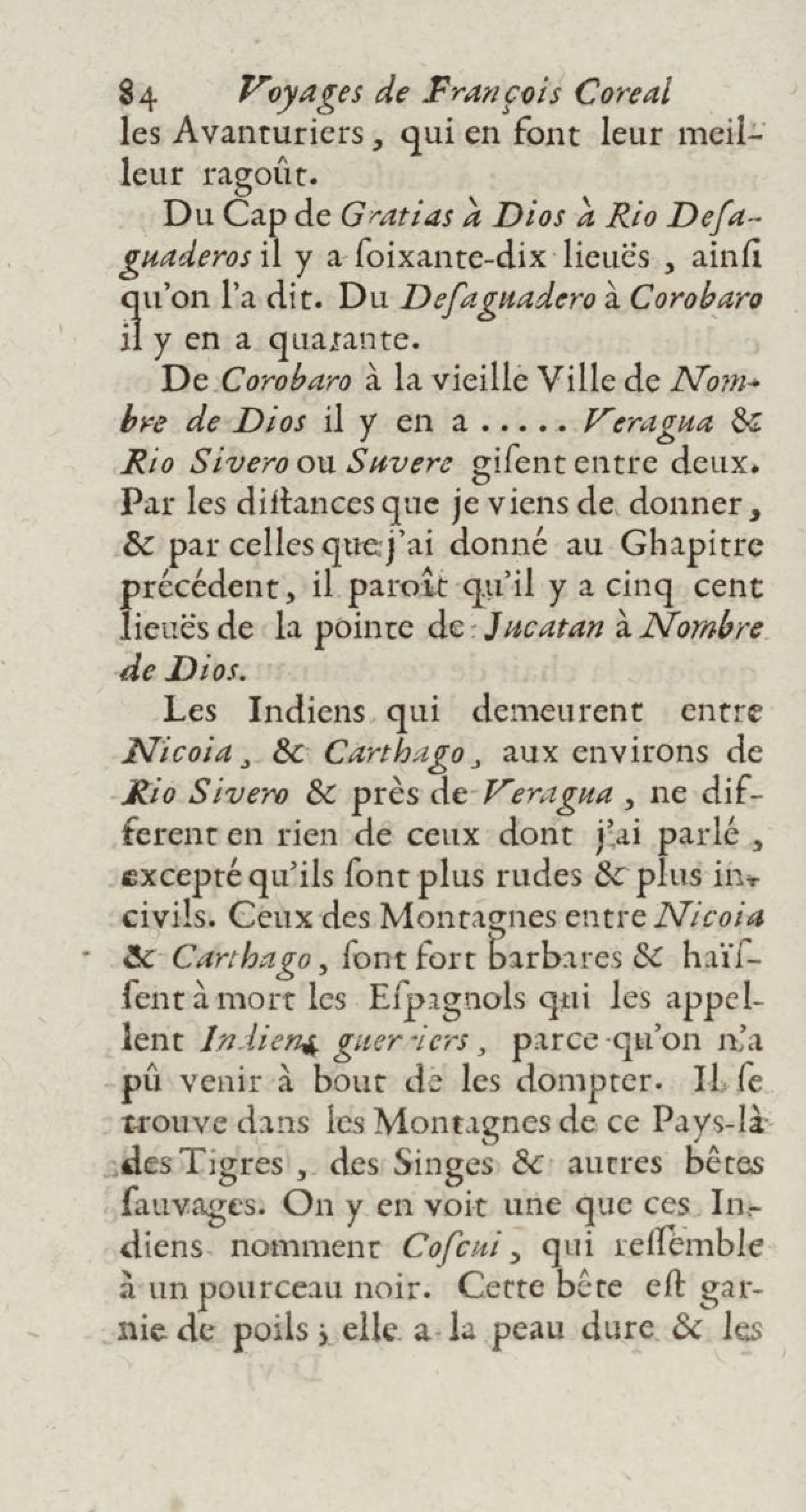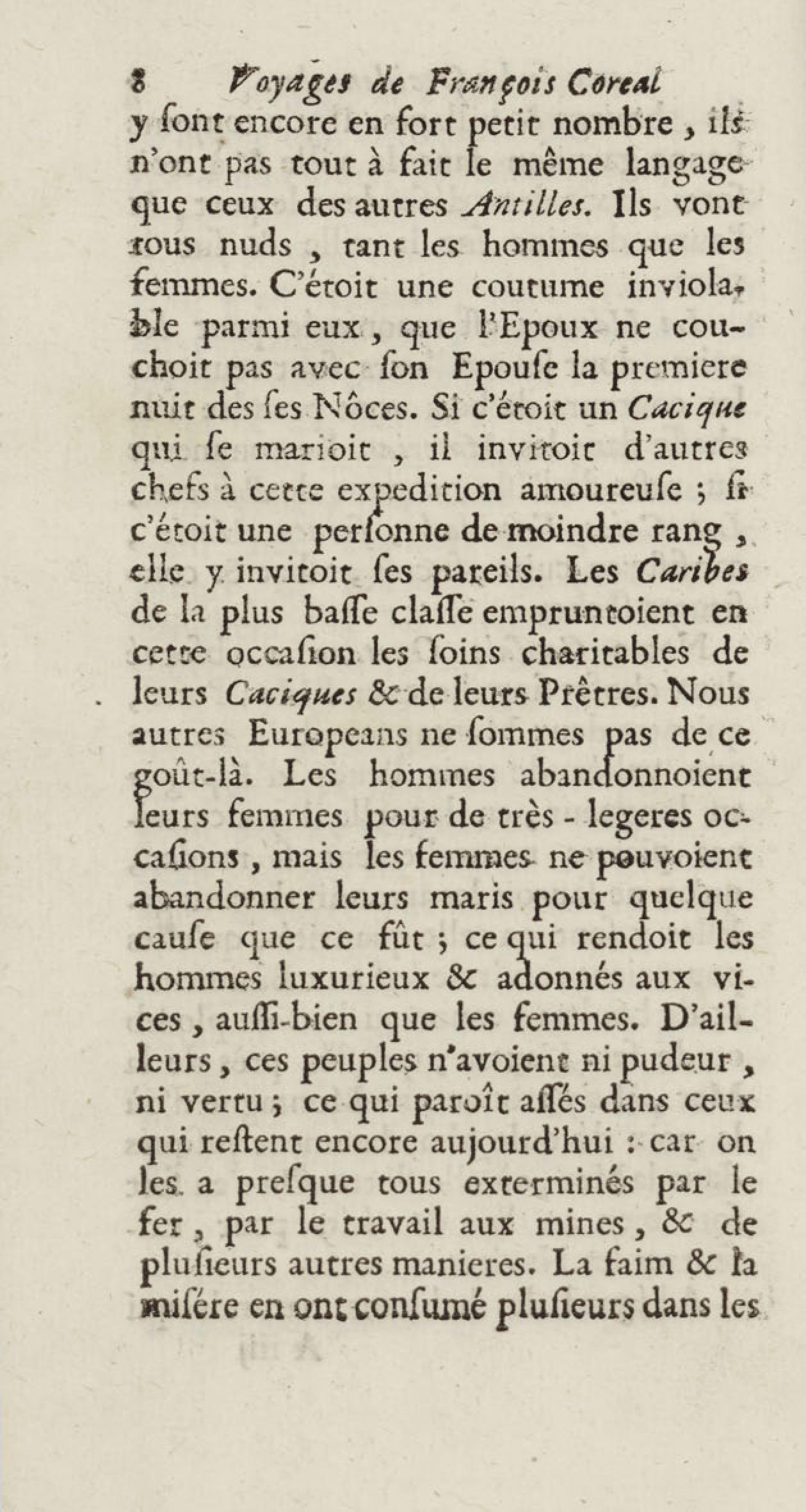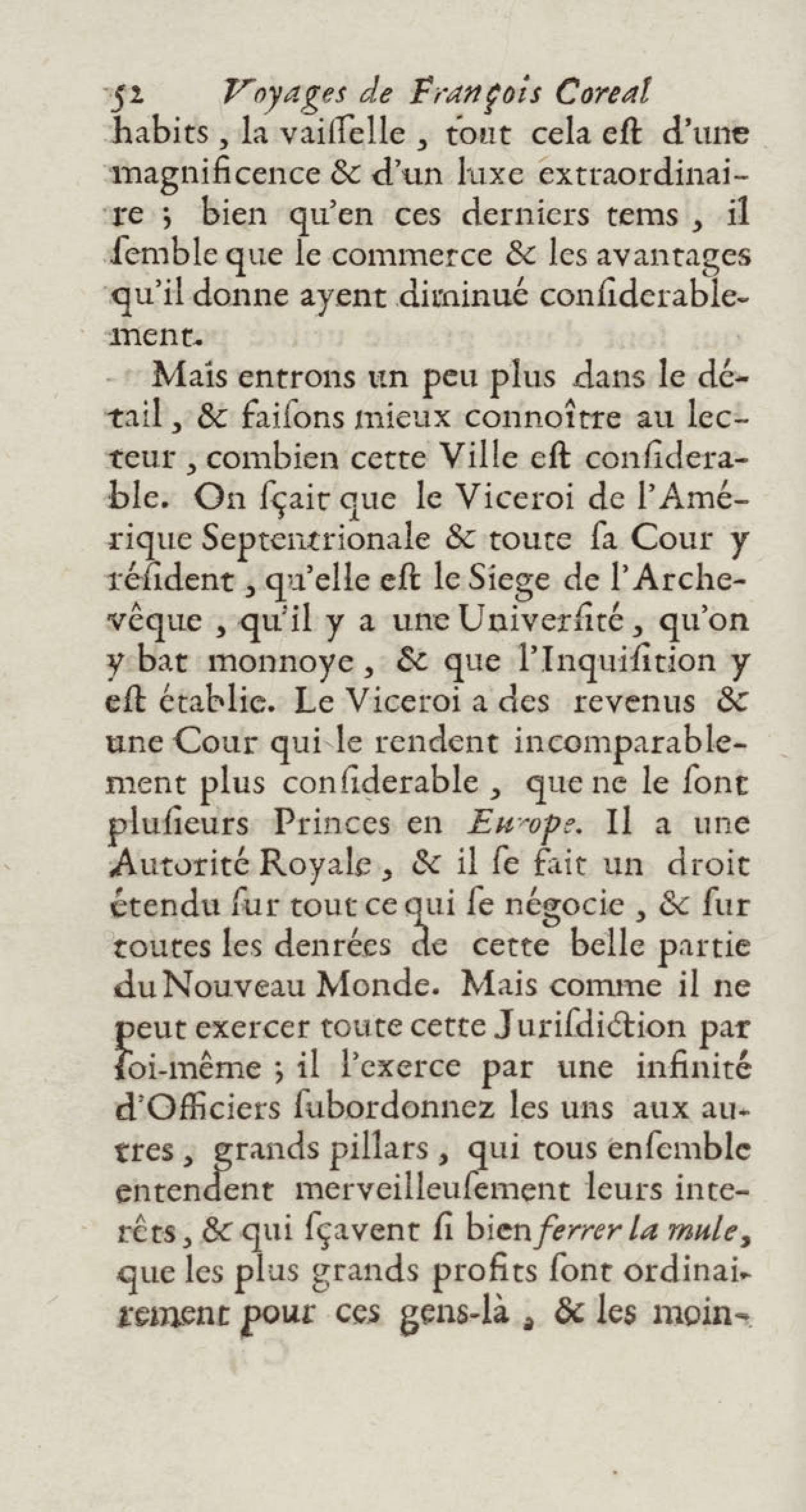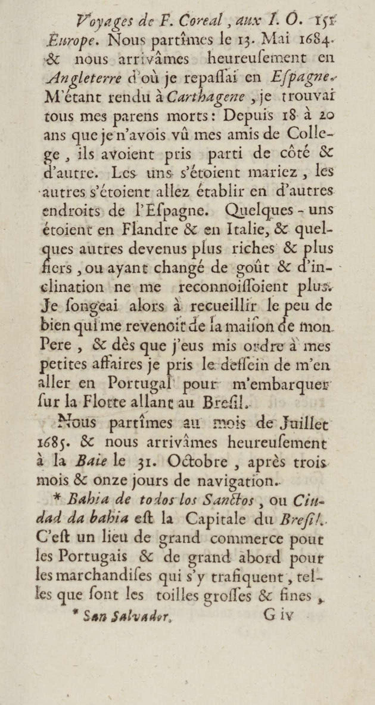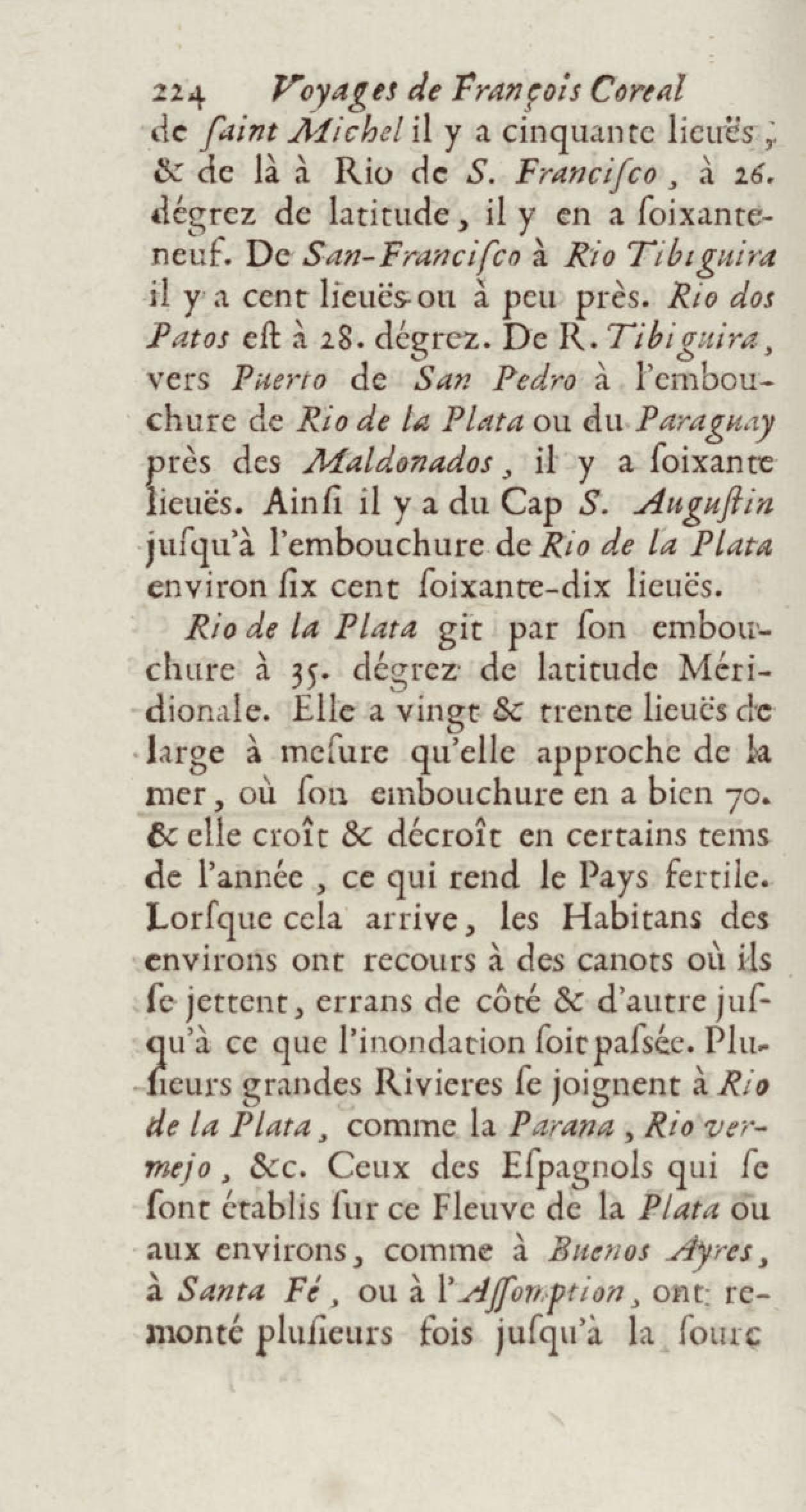 - Voyages de François Coreal aux Indes occidentales, contenant ce qu'il y a vû de plus remarquable pendant son séjour depuis 1666 jusqu'en 1697 : traduits de l'espagnol : avec une relation de la Guiane de Walter Raleigh, & le voyage de Narbrough à la mer du sud par le détroit de Magellan, &c. : nouvelle édition revûë, corrigée, & augmentée d'une nouvelle Découverte des Indes méridionales & des terres australes, enrichie de figures. Tome premier