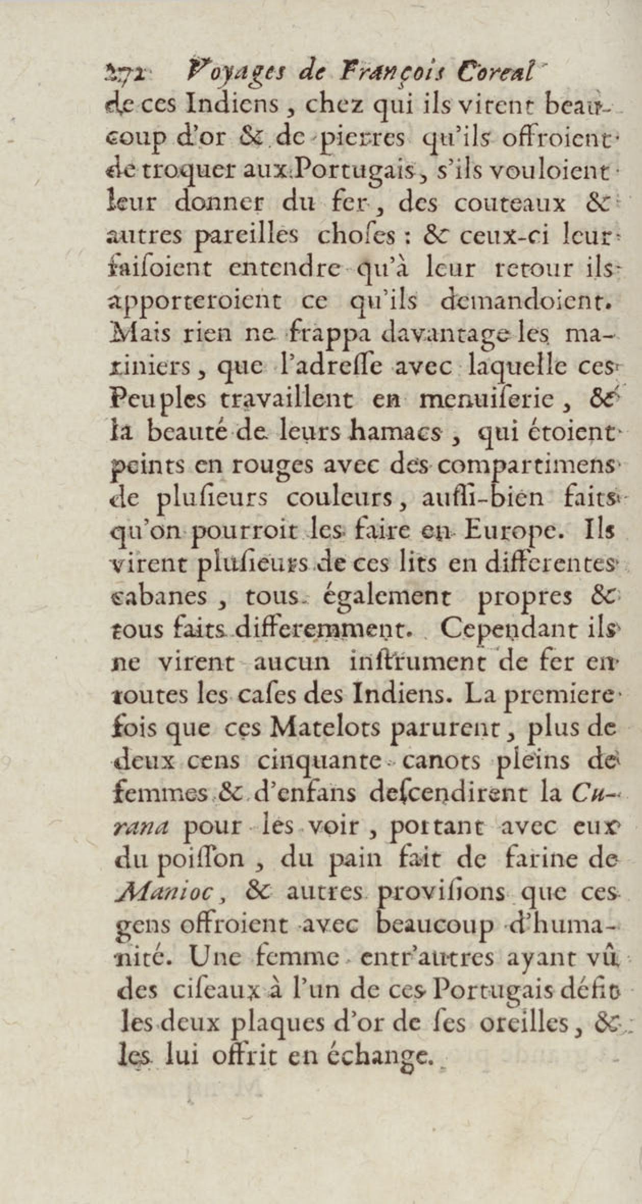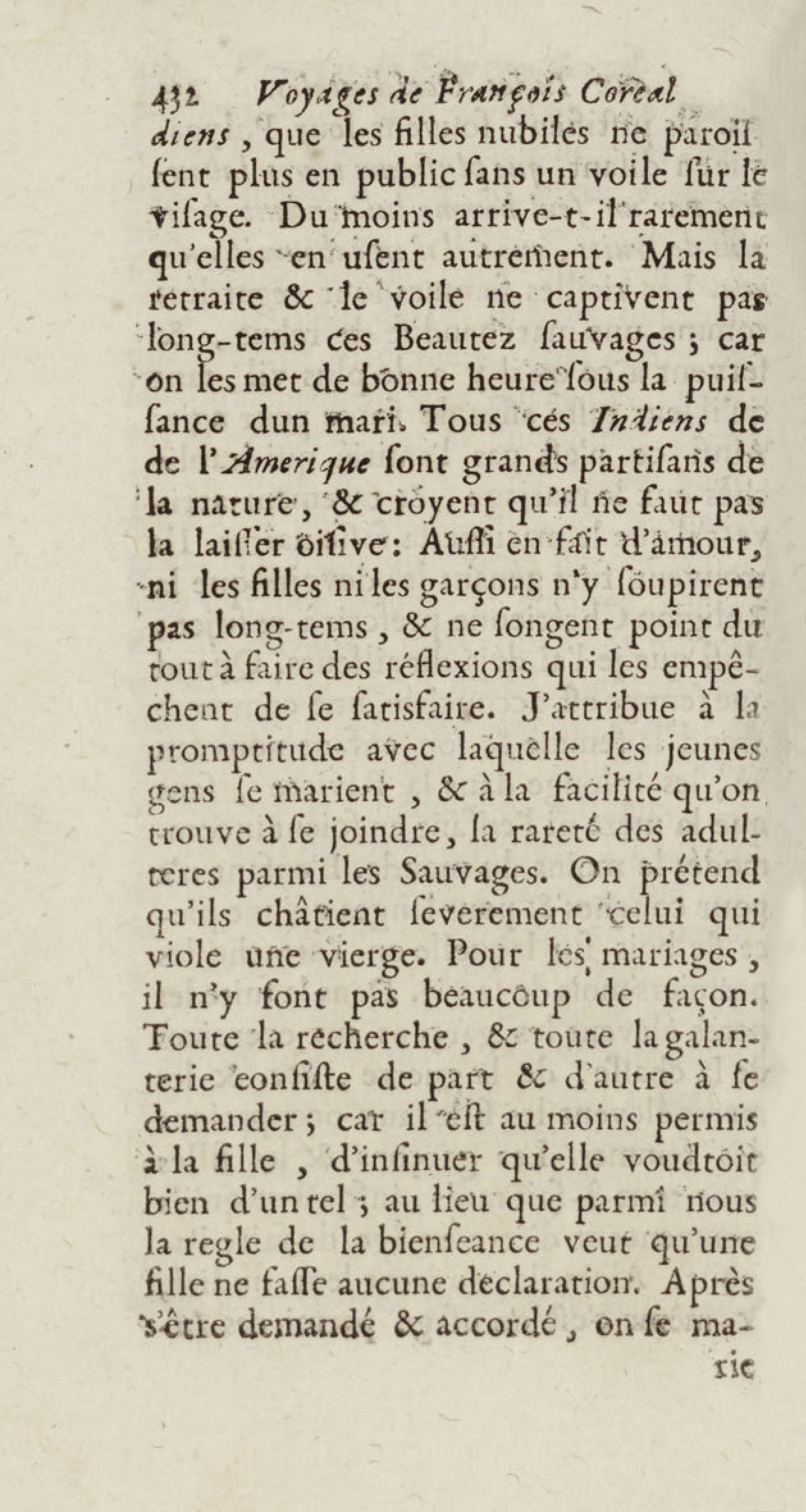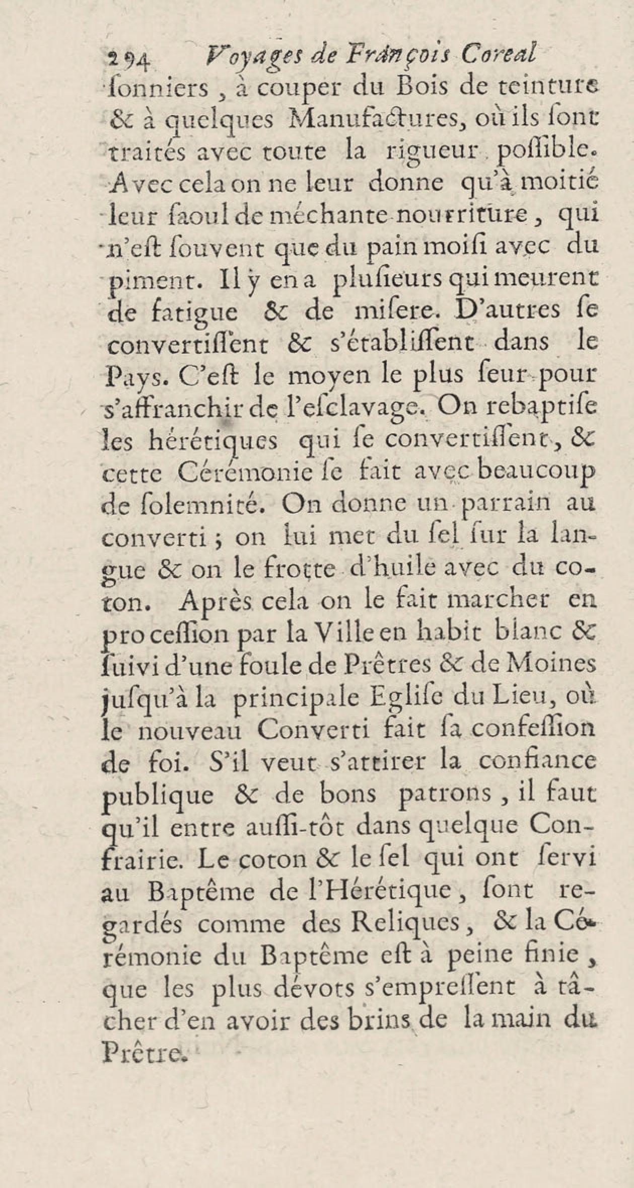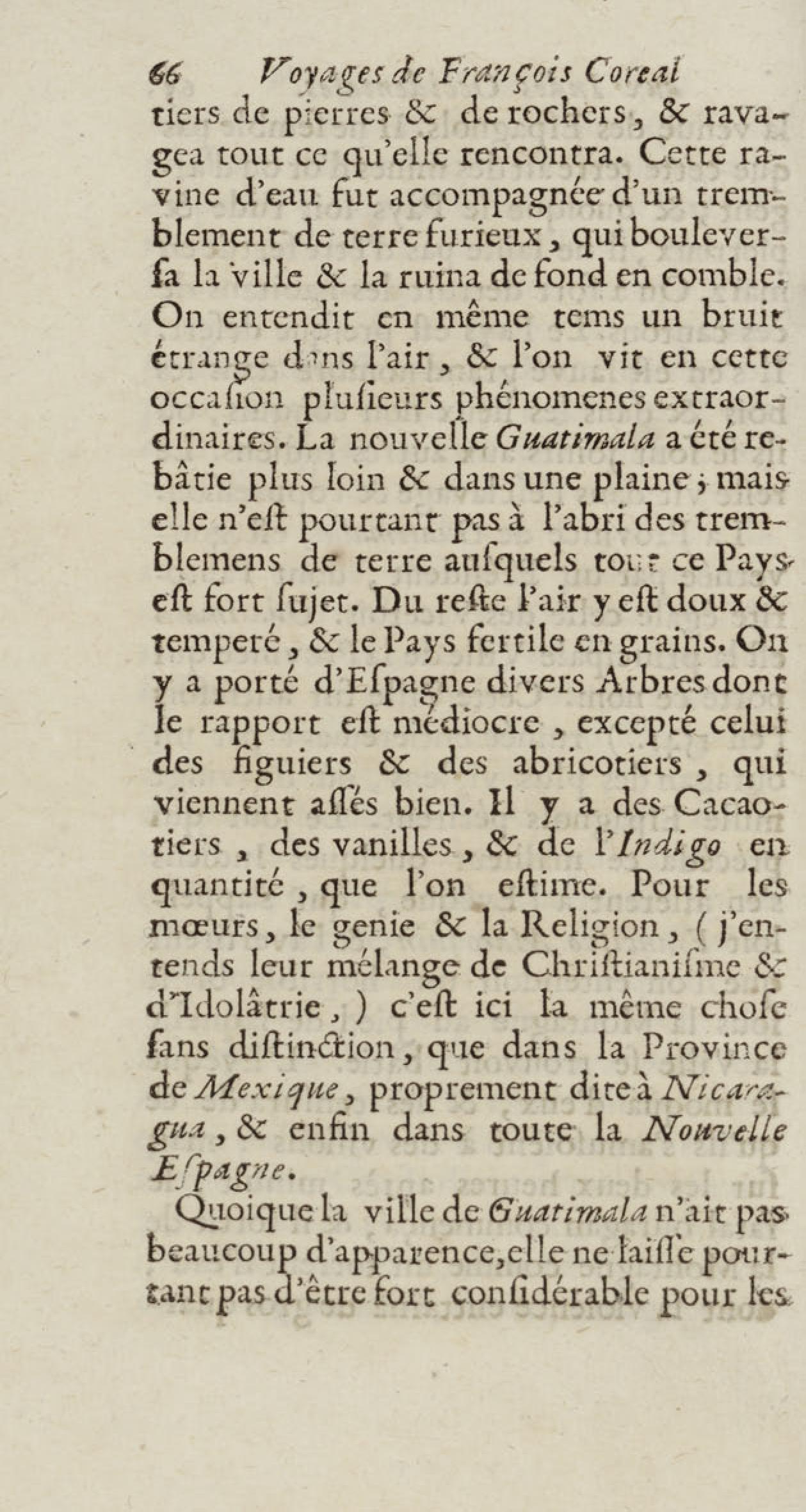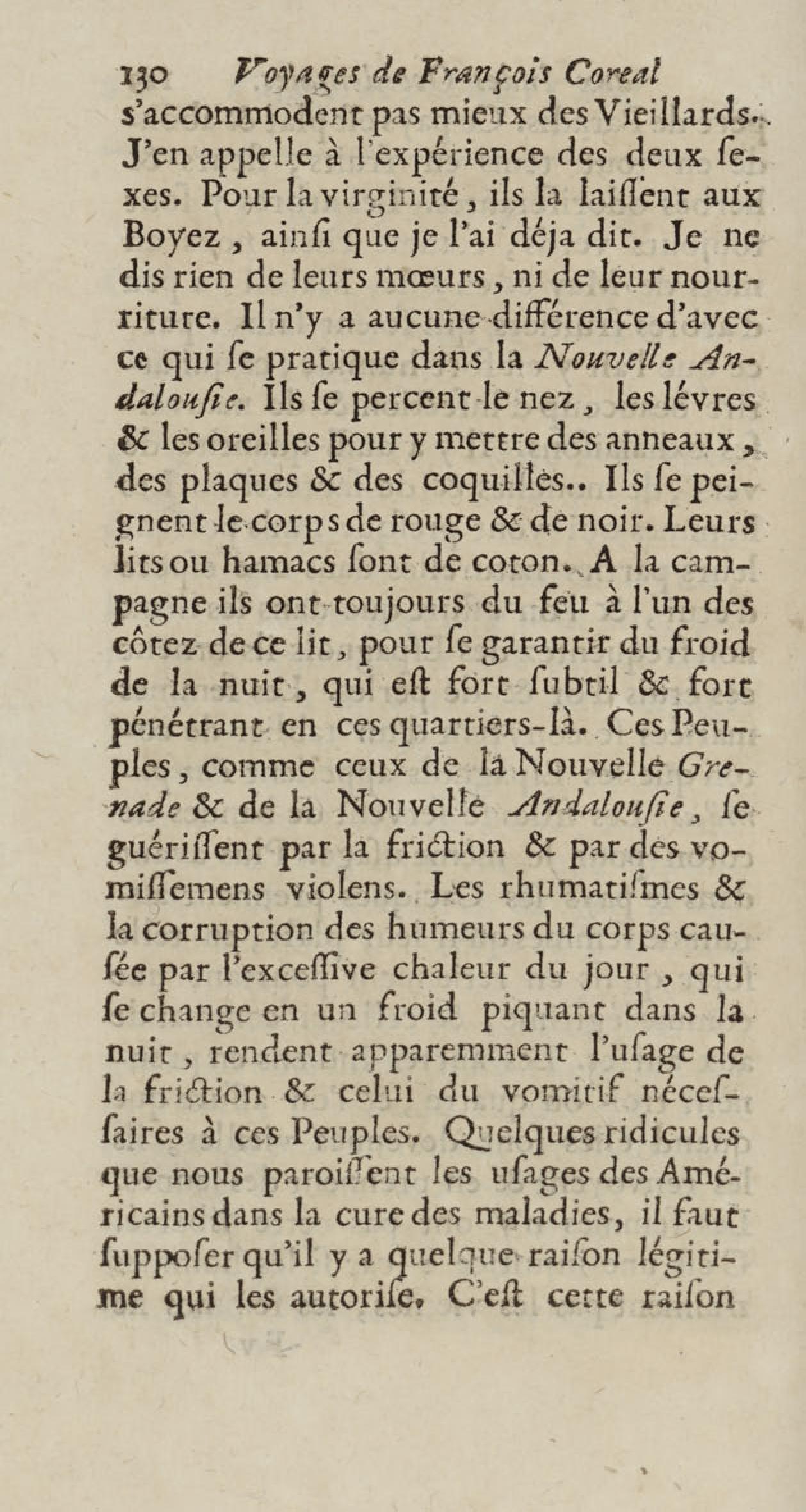 - Voyages de François Coreal aux Indes occidentales, contenant ce qu'il y a vû de plus remarquable pendant son séjour depuis 1666 jusqu'en 1697 : traduits de l'espagnol : avec une relation de la Guiane de Walter Raleigh, & le voyage de Narbrough à la mer du sud par le détroit de Magellan, &c. : nouvelle édition revûë, corrigée, & augmentée d'une nouvelle Découverte des Indes méridionales & des terres australes, enrichie de figures. Tome premier