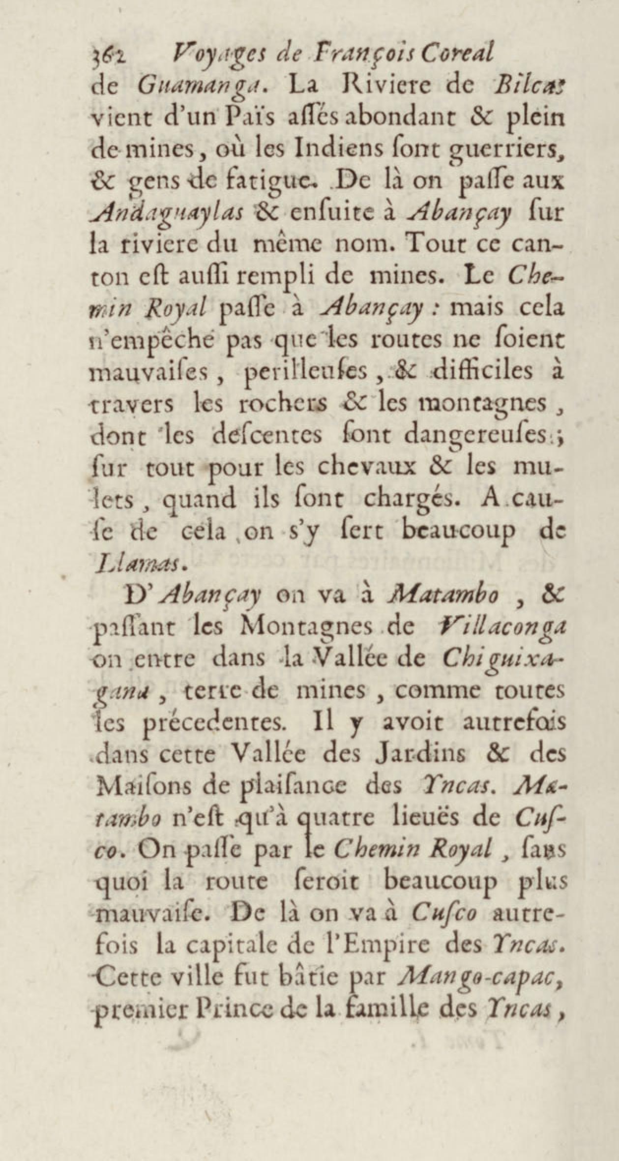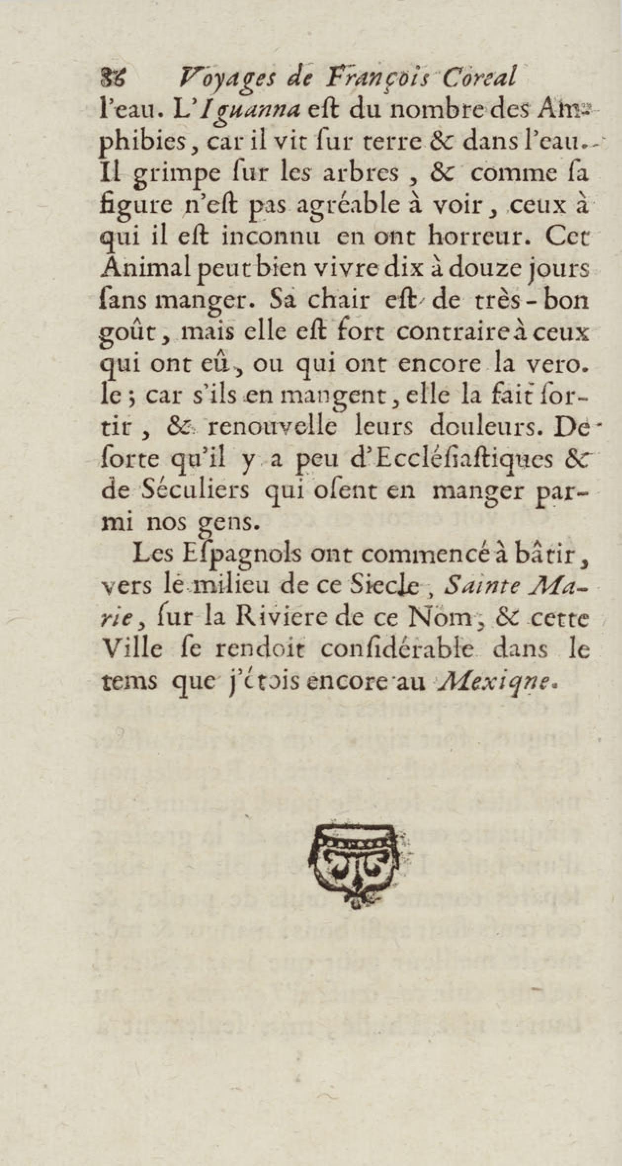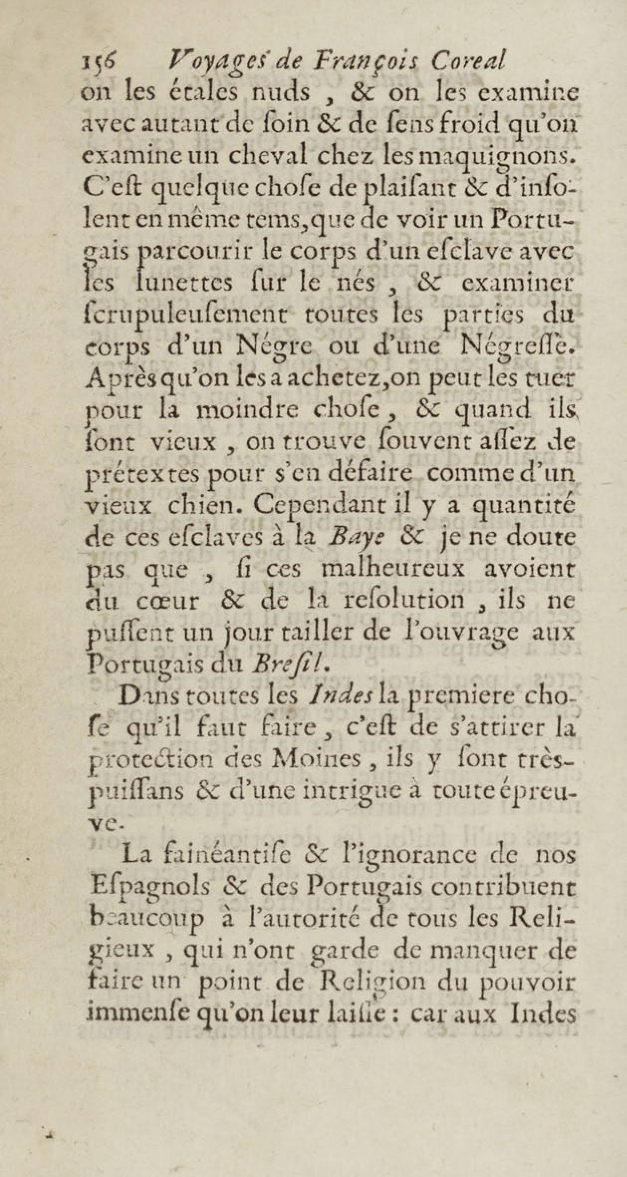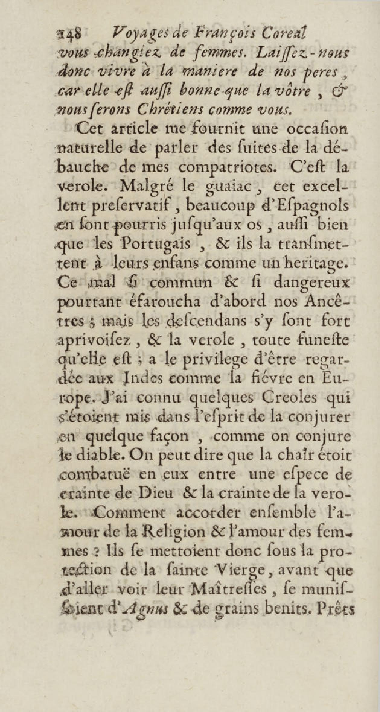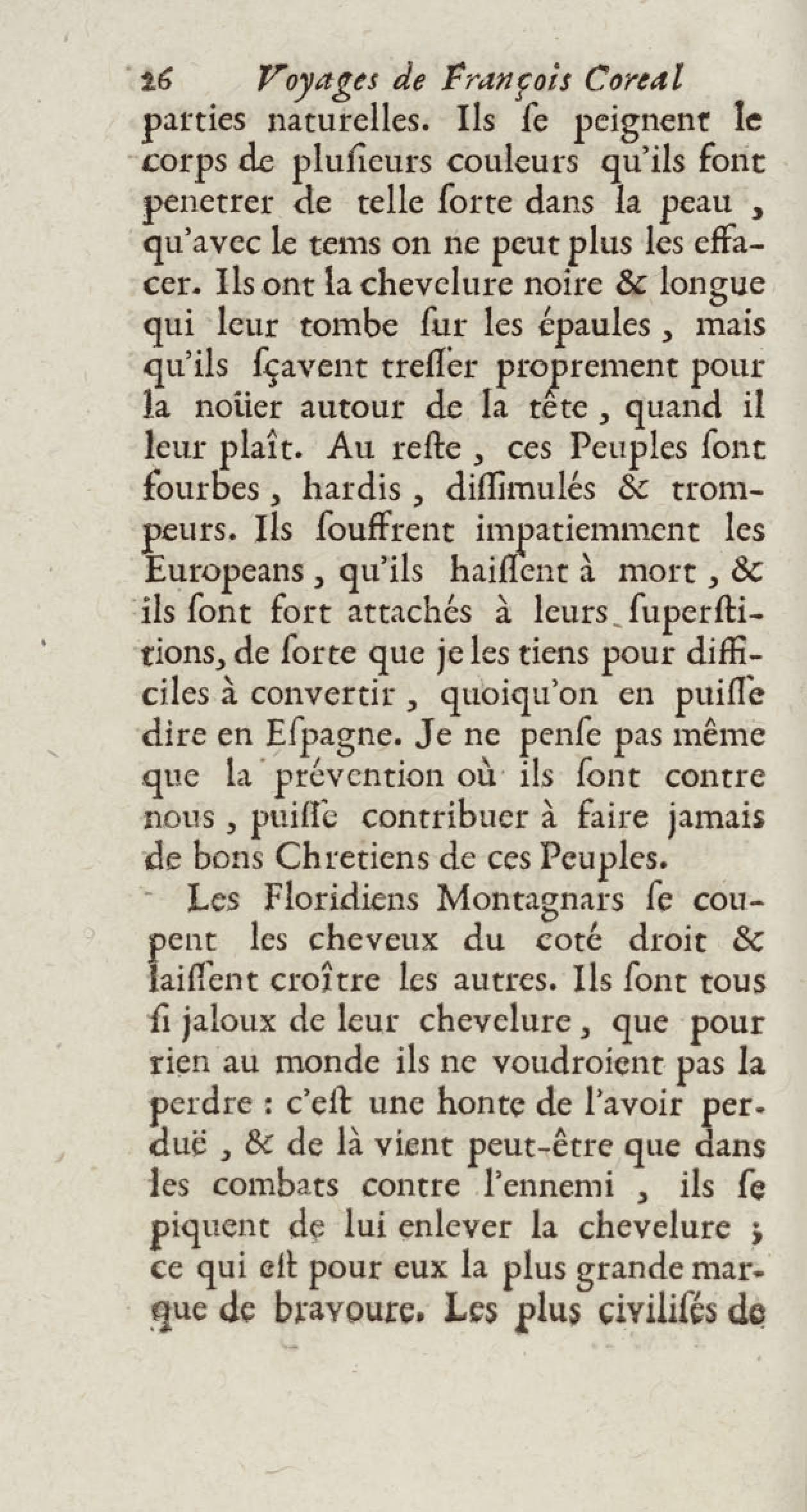 - Voyages de François Coreal aux Indes occidentales, contenant ce qu'il y a vû de plus remarquable pendant son séjour depuis 1666 jusqu'en 1697 : traduits de l'espagnol : avec une relation de la Guiane de Walter Raleigh, & le voyage de Narbrough à la mer du sud par le détroit de Magellan, &c. : nouvelle édition revûë, corrigée, & augmentée d'une nouvelle Découverte des Indes méridionales & des terres australes, enrichie de figures. Tome premier