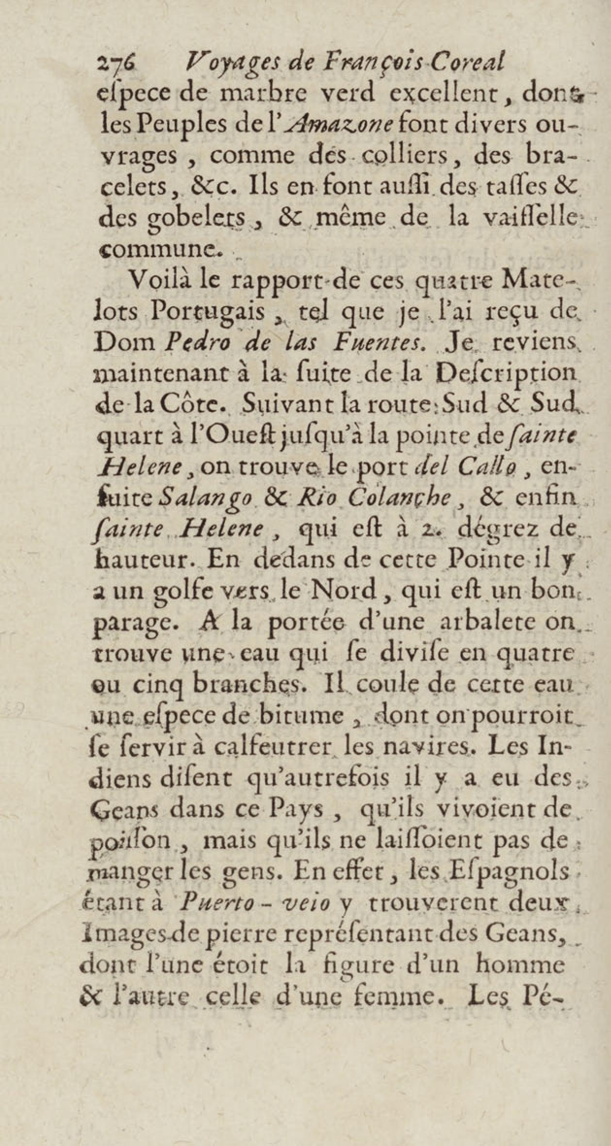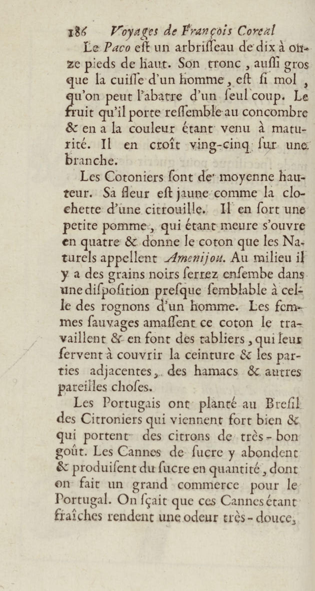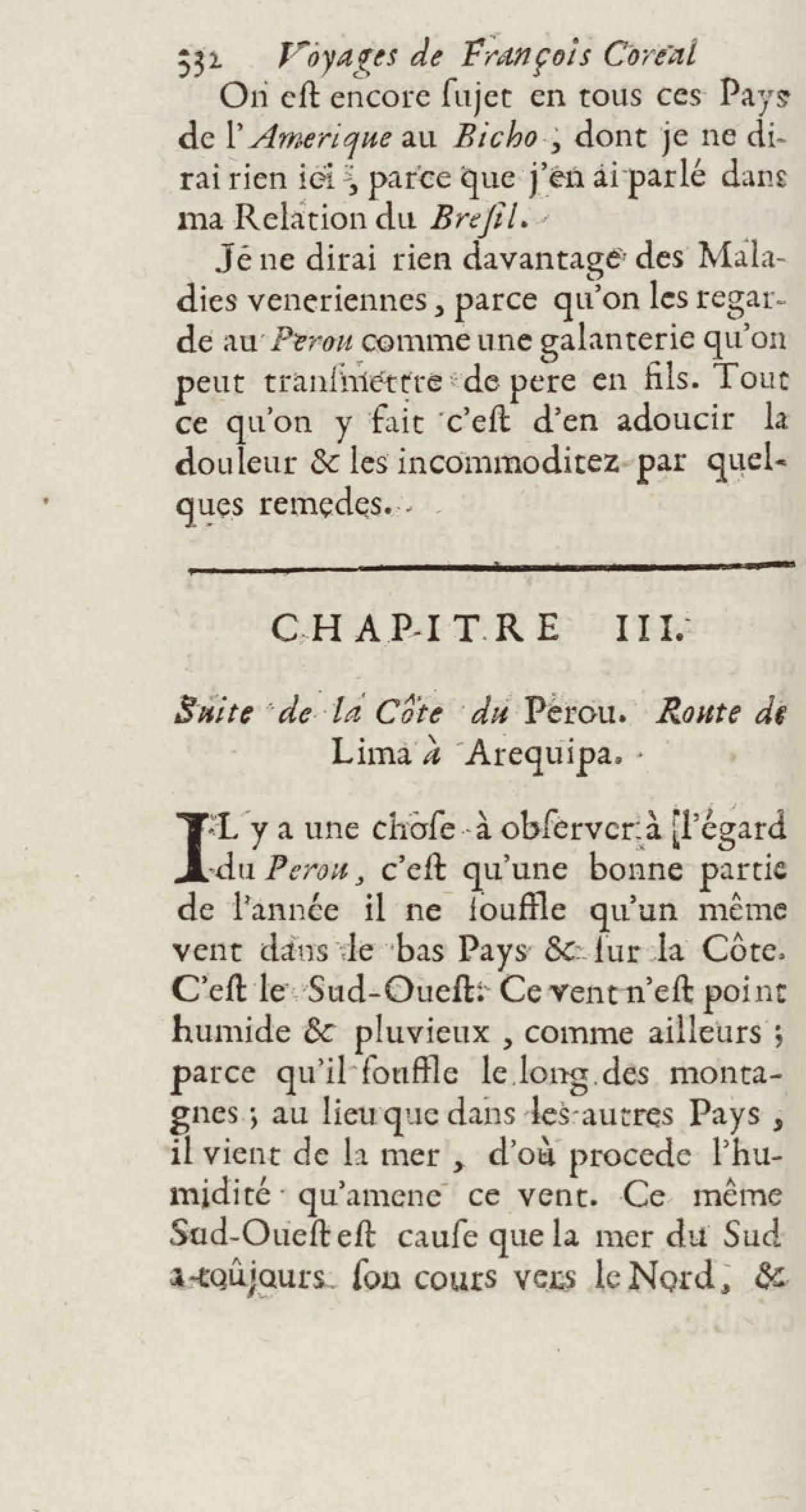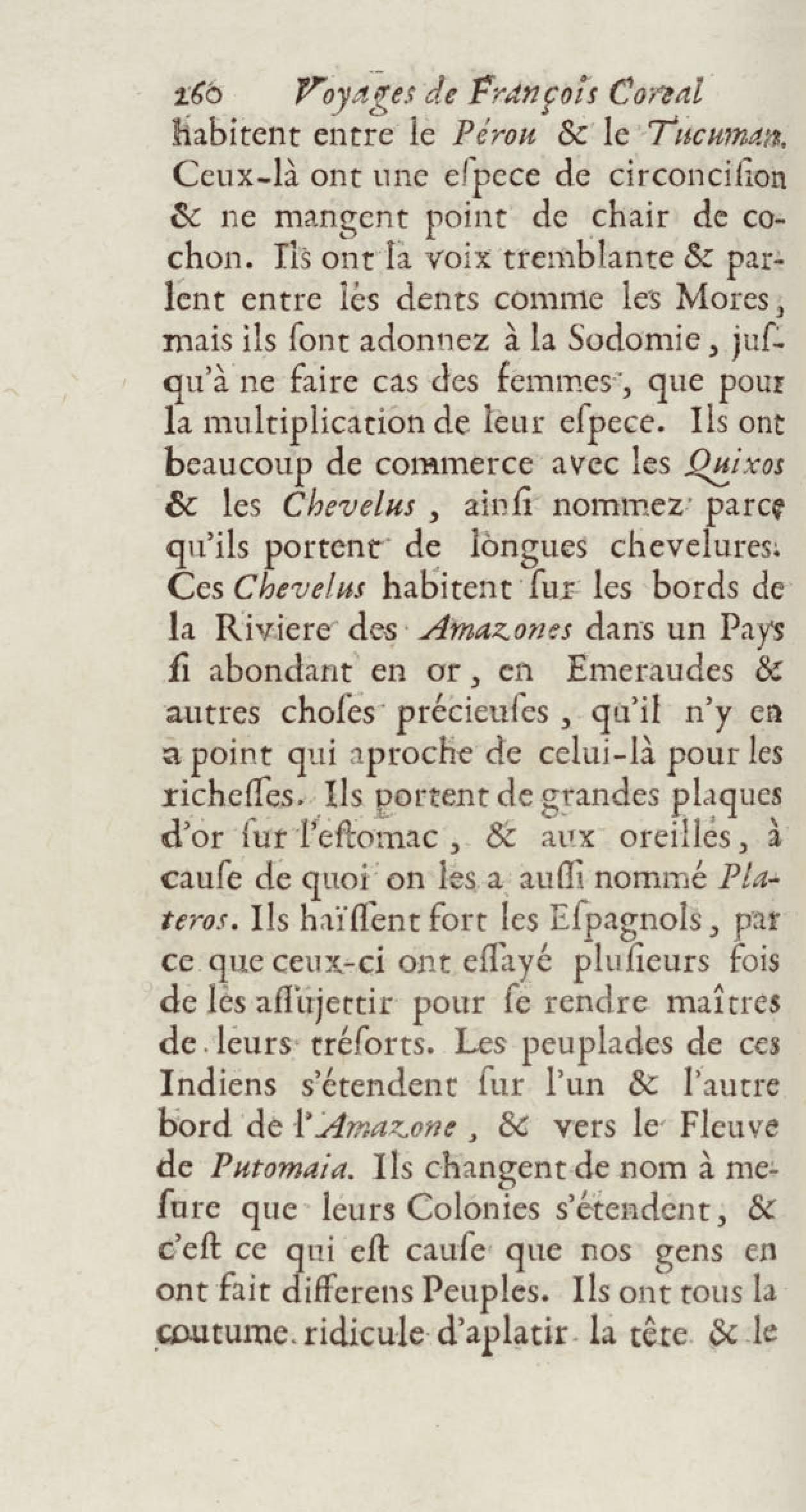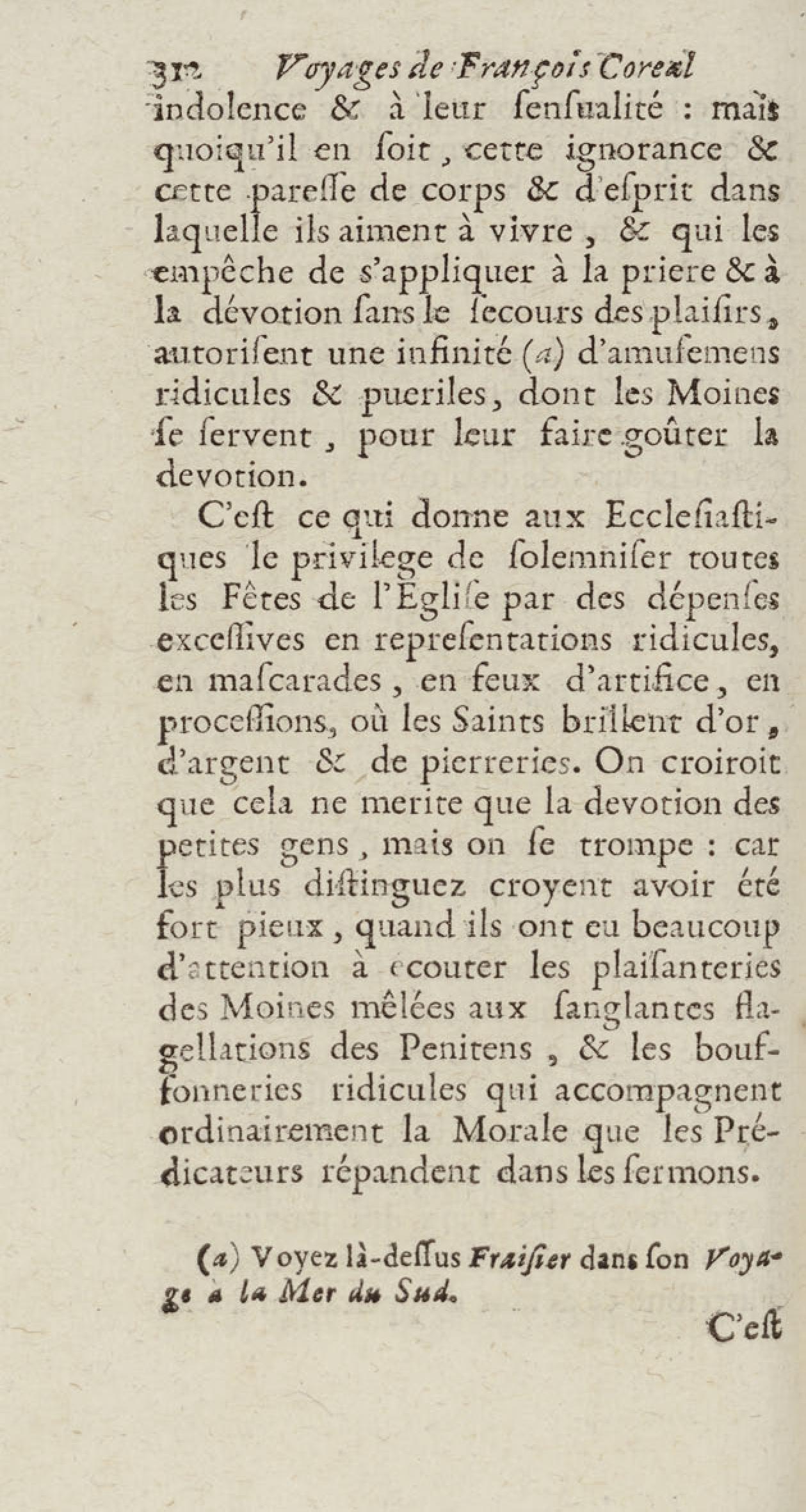 - Voyages de François Coreal aux Indes occidentales, contenant ce qu'il y a vû de plus remarquable pendant son séjour depuis 1666 jusqu'en 1697 : traduits de l'espagnol : avec une relation de la Guiane de Walter Raleigh, & le voyage de Narbrough à la mer du sud par le détroit de Magellan, &c. : nouvelle édition revûë, corrigée, & augmentée d'une nouvelle Découverte des Indes méridionales & des terres australes, enrichie de figures. Tome premier